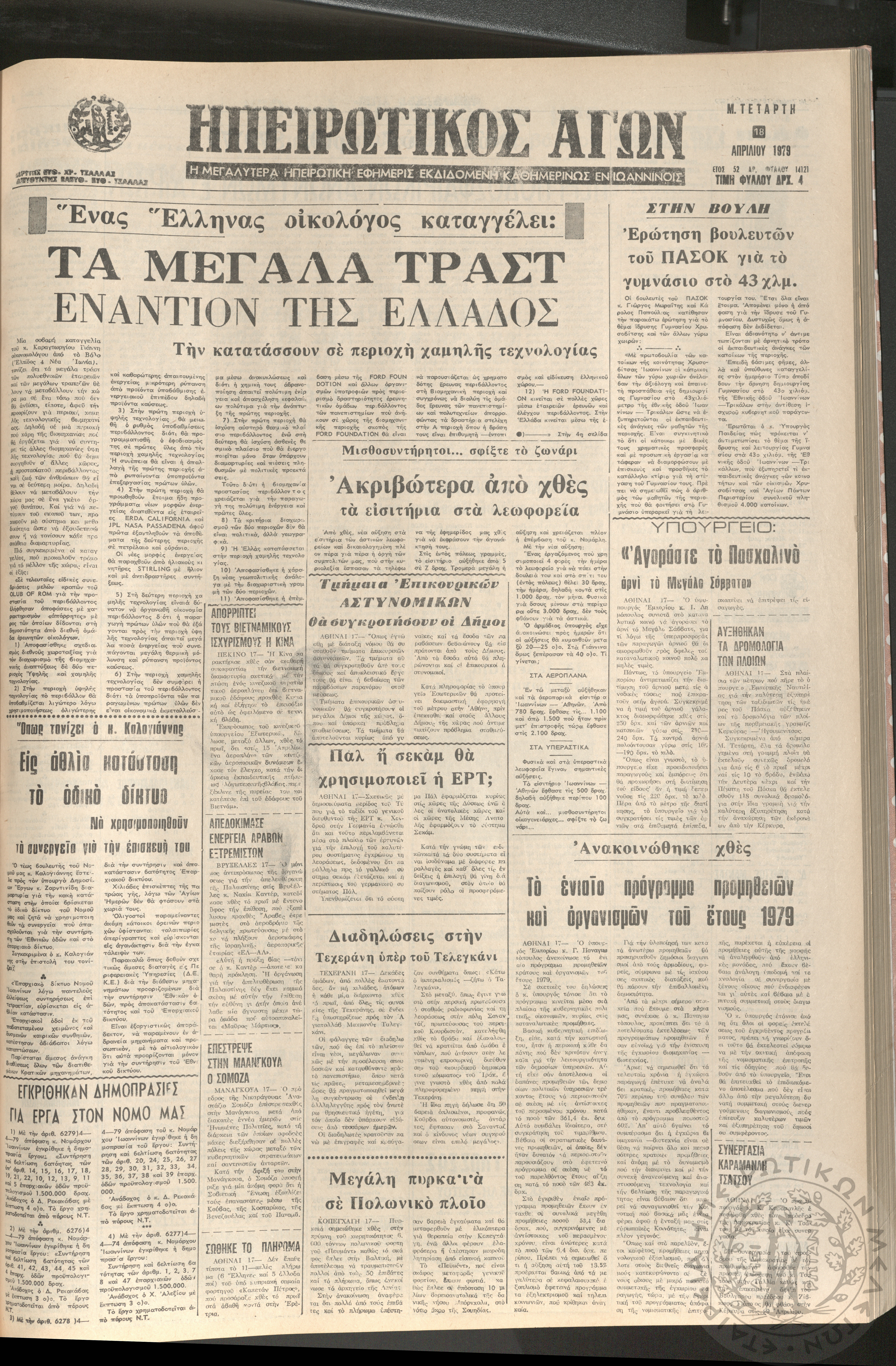 Ηπειρωτικός Αγών: η μεγαλυτέρα Ηπειρωτική εφημερίς εκδιδομένη καθημερινώς εν Ιωαννίνοις, 1979, φ. 14121Έτος 52, φ. 14121...