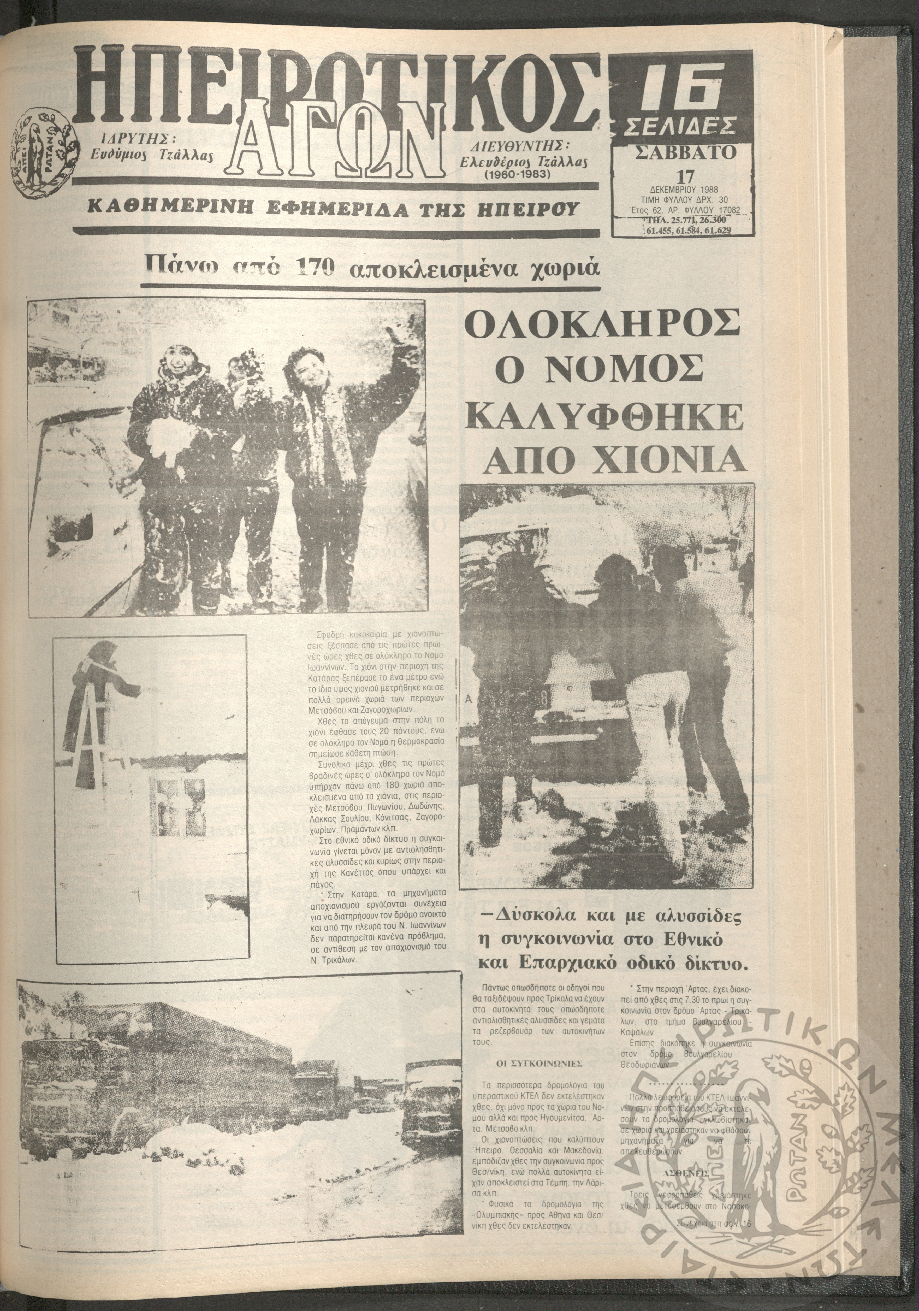 Ηπειρωτικός Αγών: η μεγαλυτέρα Ηπειρωτική εφημερίς εκδιδομένη καθημερινώς εν Ιωαννίνοις, 1979, φ. 14116Έτος 52, φ. 14116...