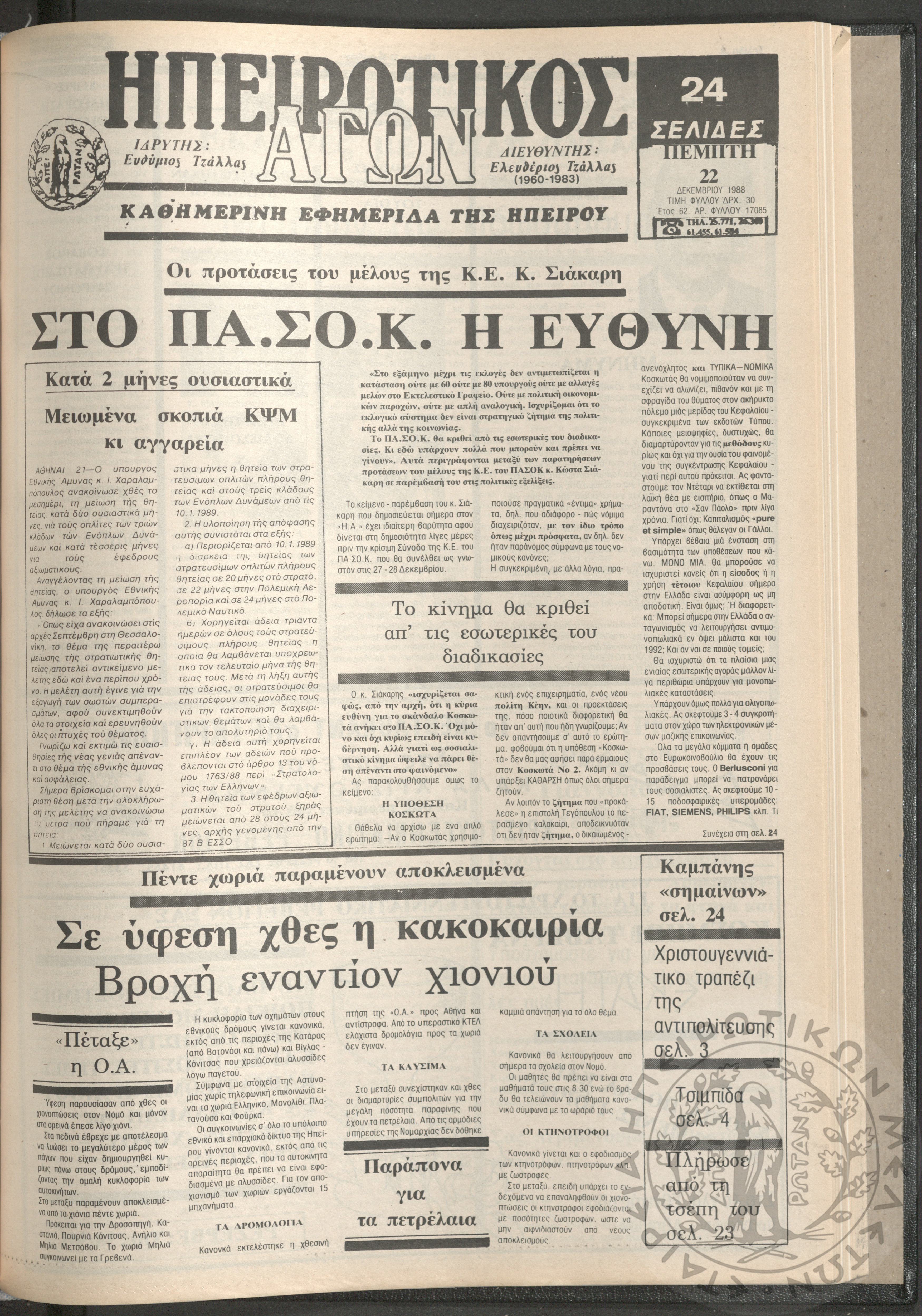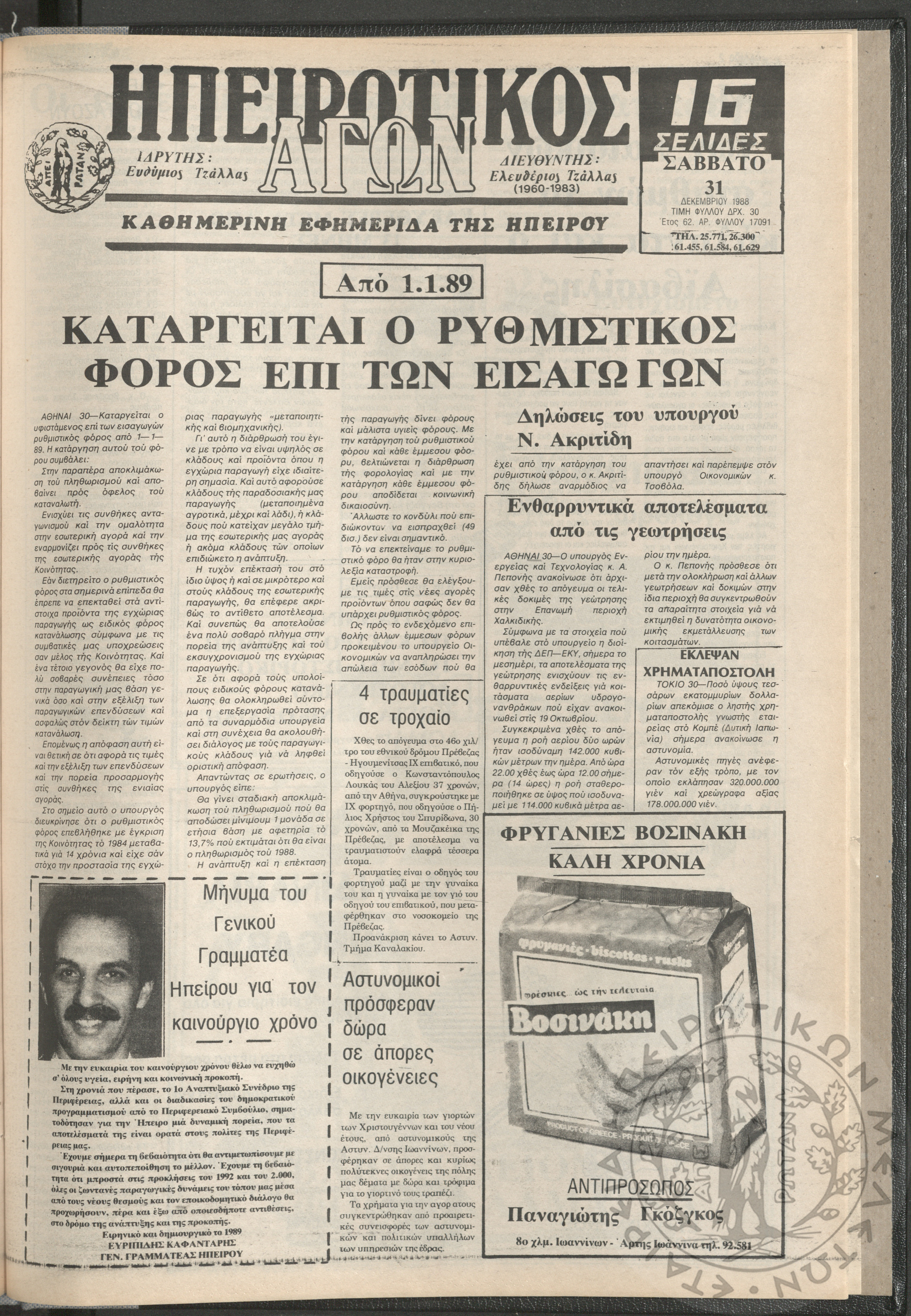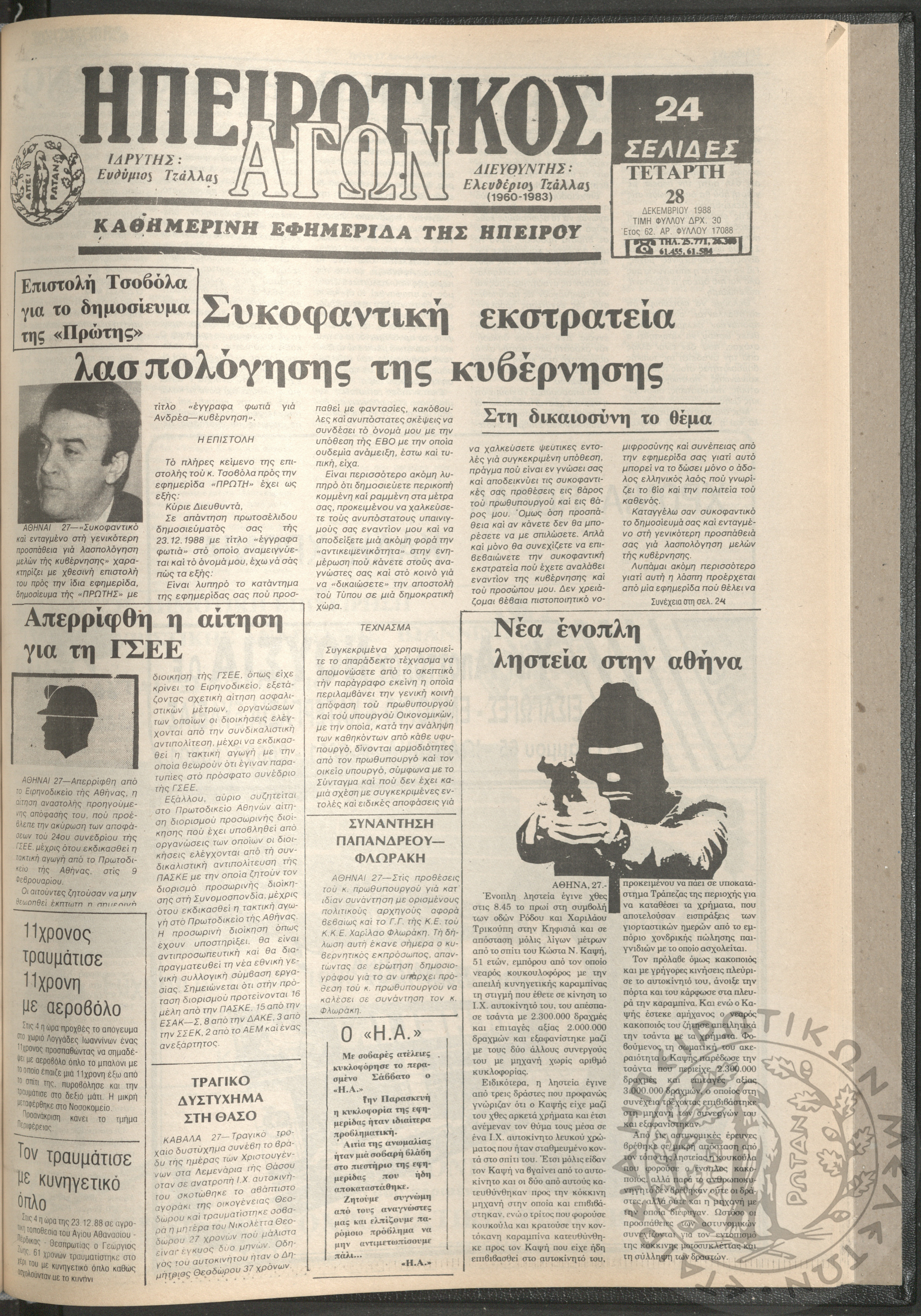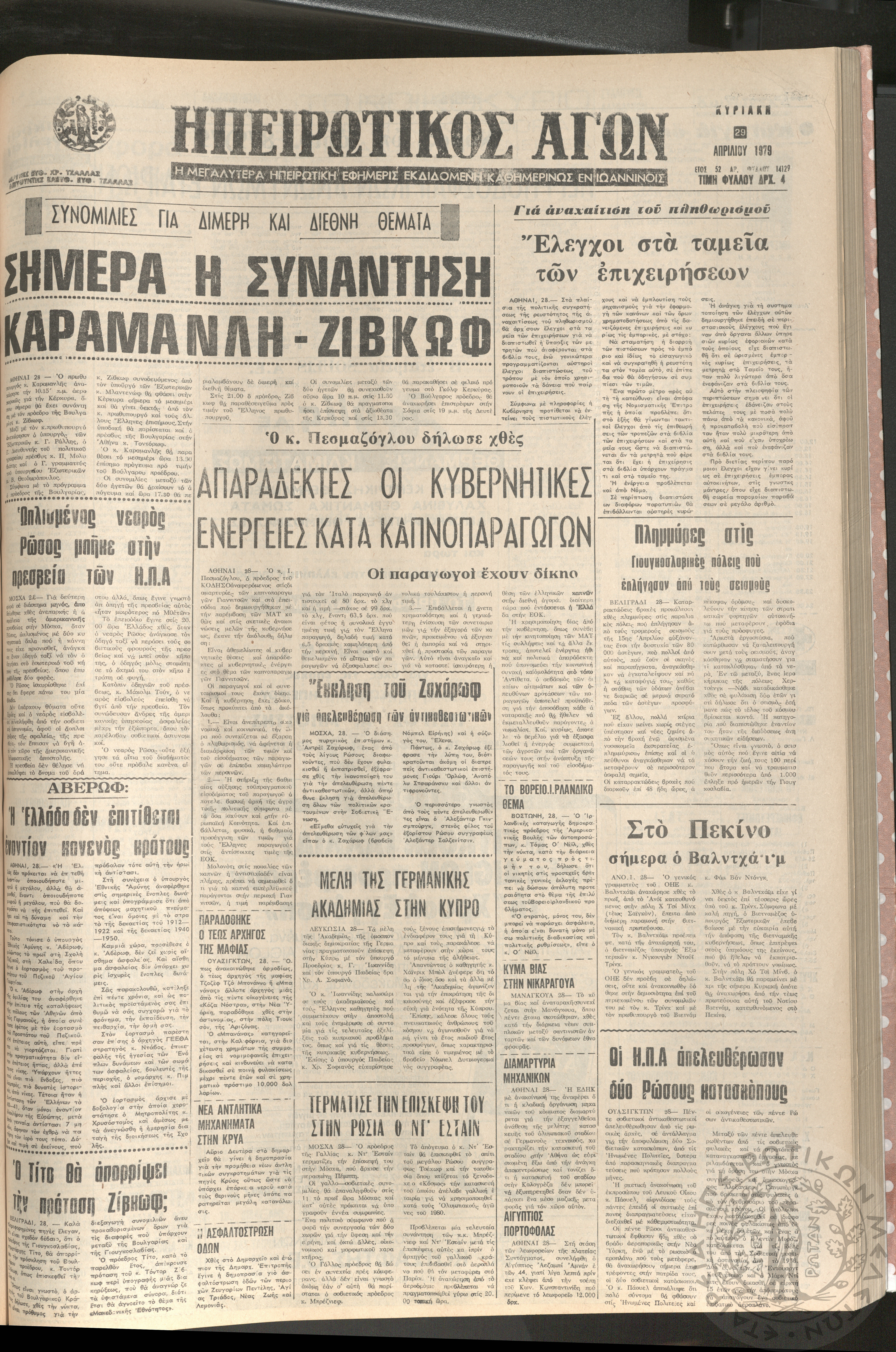 Ηπειρωτικός Αγών: η μεγαλυτέρα Ηπειρωτική εφημερίς εκδιδομένη καθημερινώς εν Ιωαννίνοις, 1979, φ. 14128Έτος 52, φ. 14128...