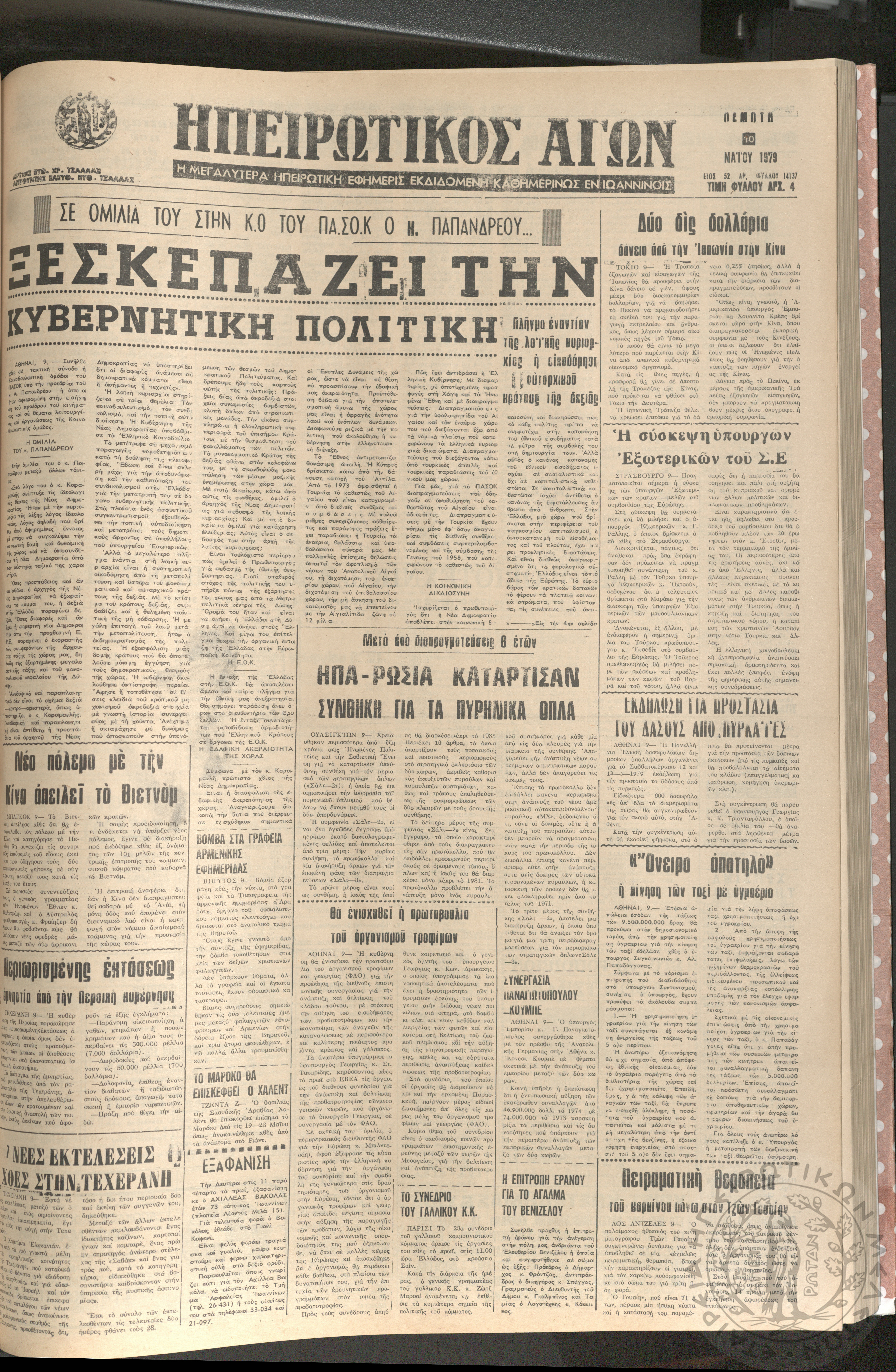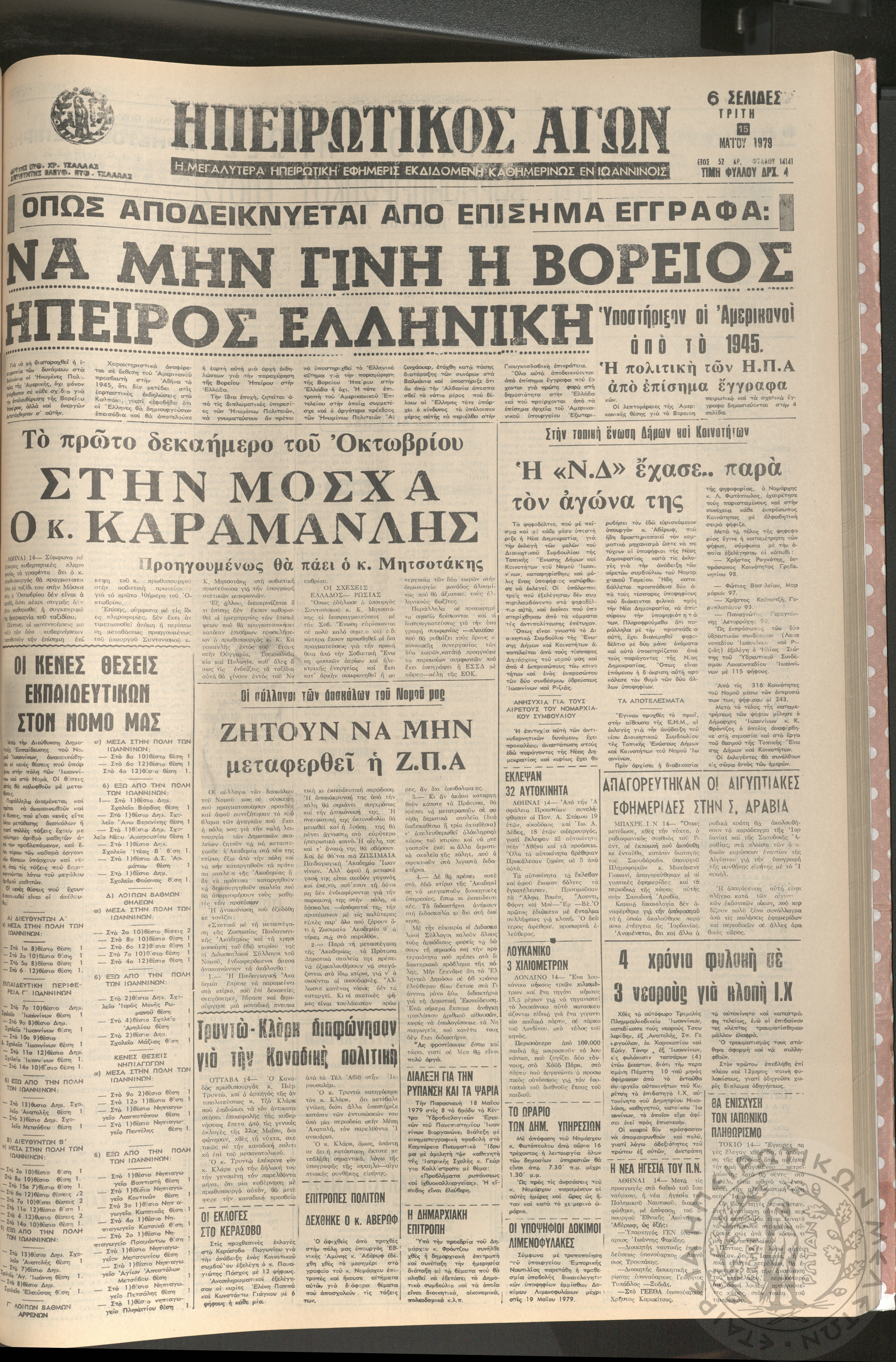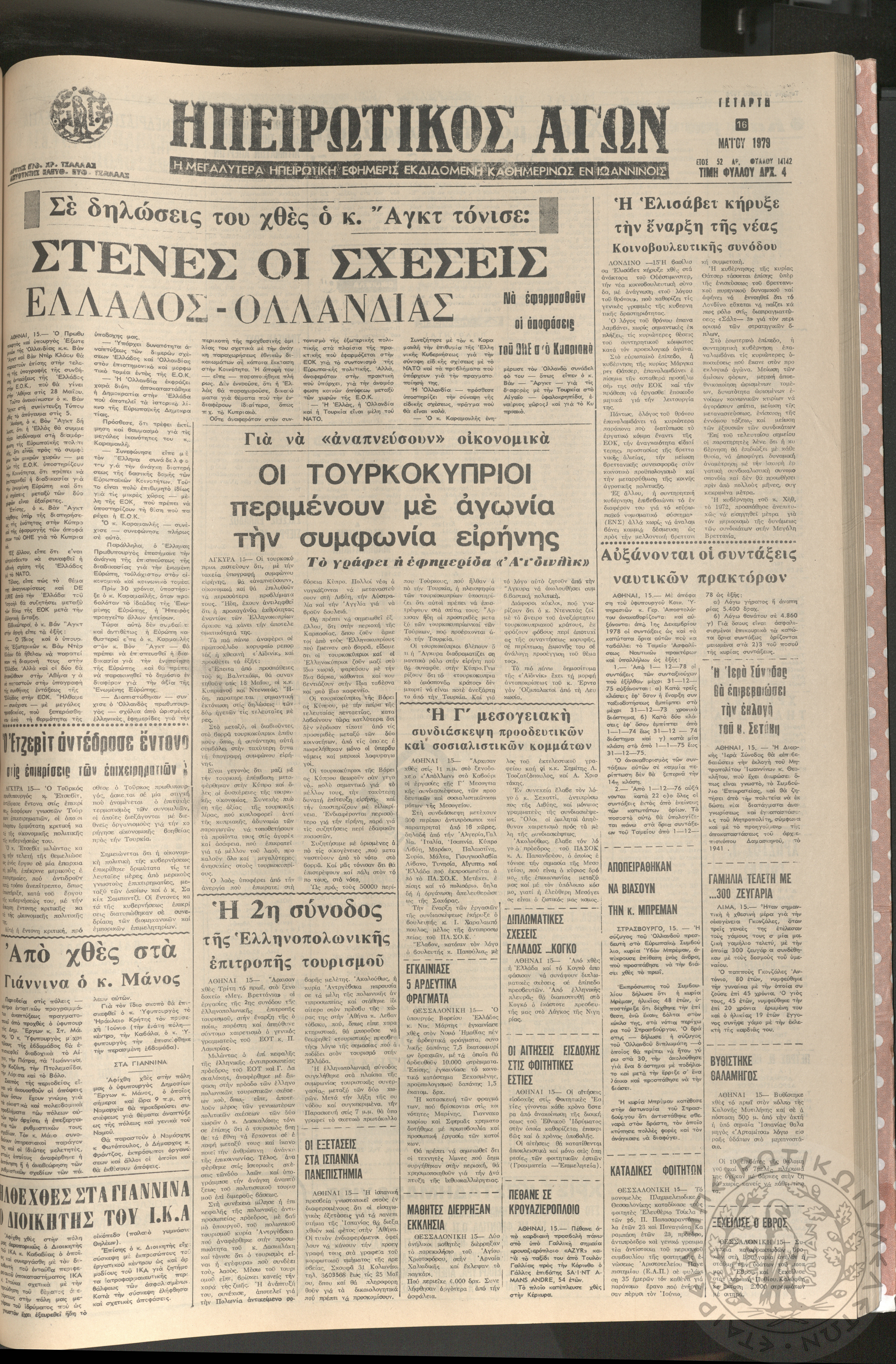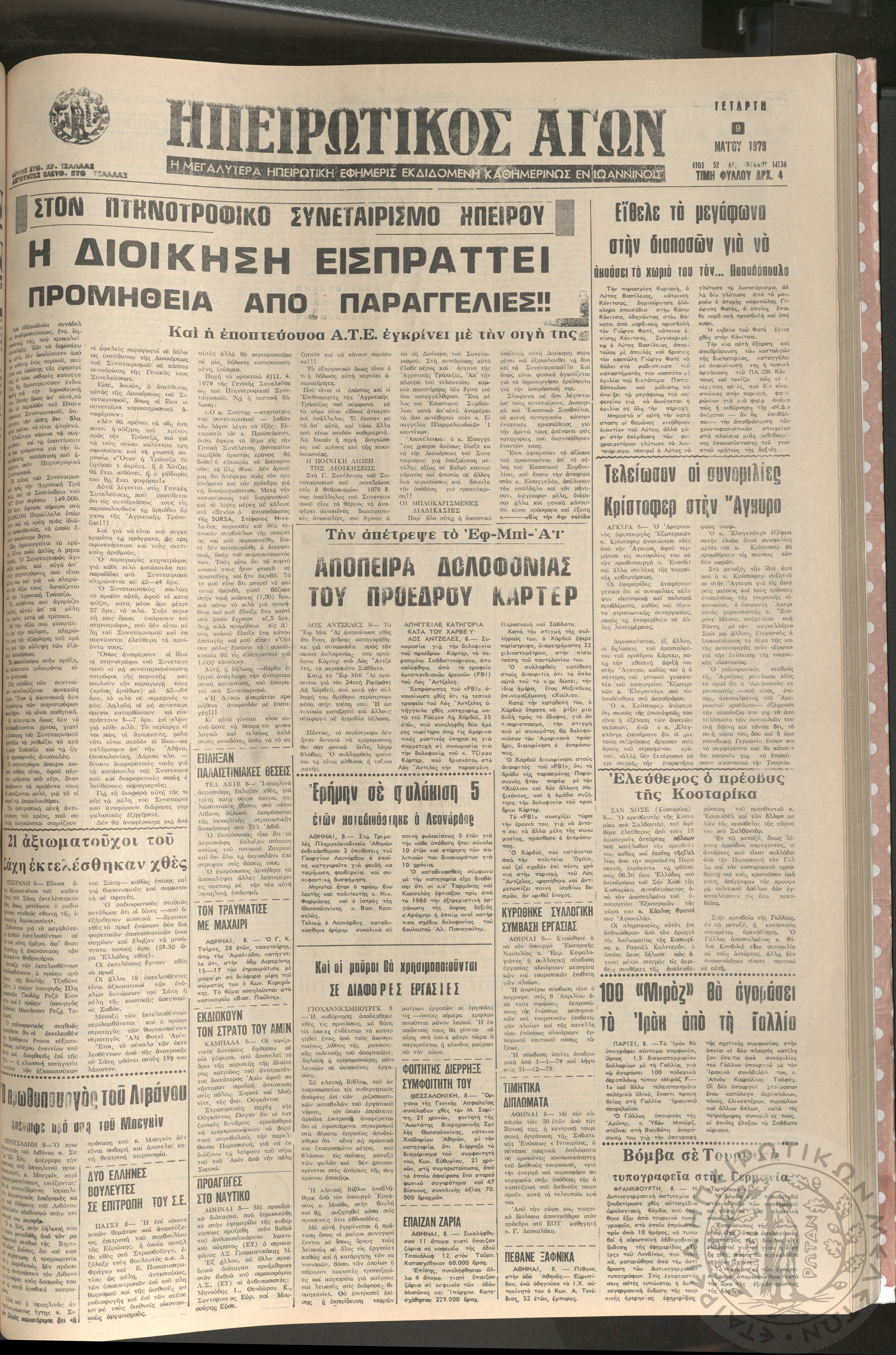 Ηπειρωτικός Αγών: η μεγαλυτέρα Ηπειρωτική εφημερίς εκδιδομένη καθημερινώς εν Ιωαννίνοις, 1979, φ. 14126Έτος 52, φ. 14126...