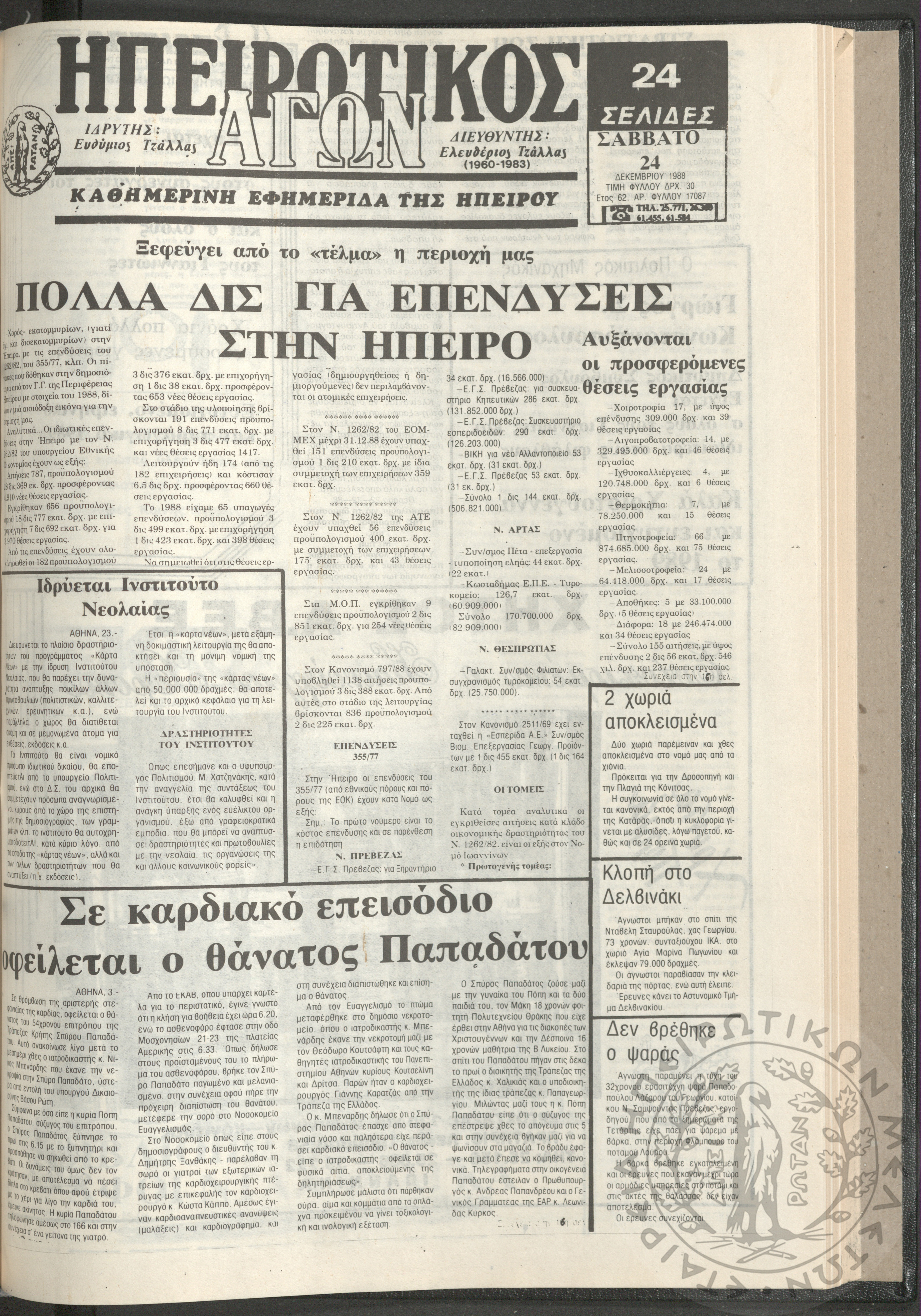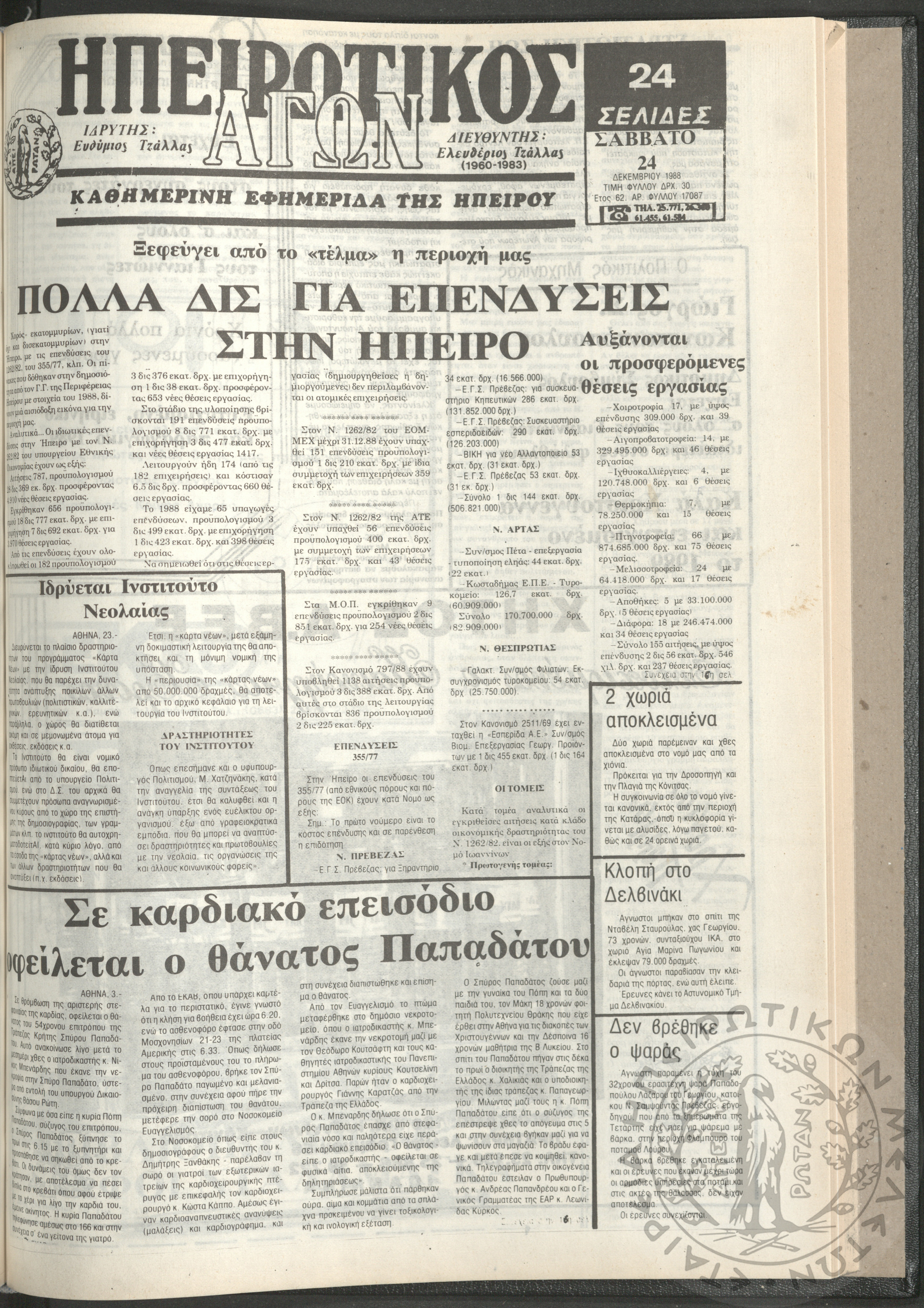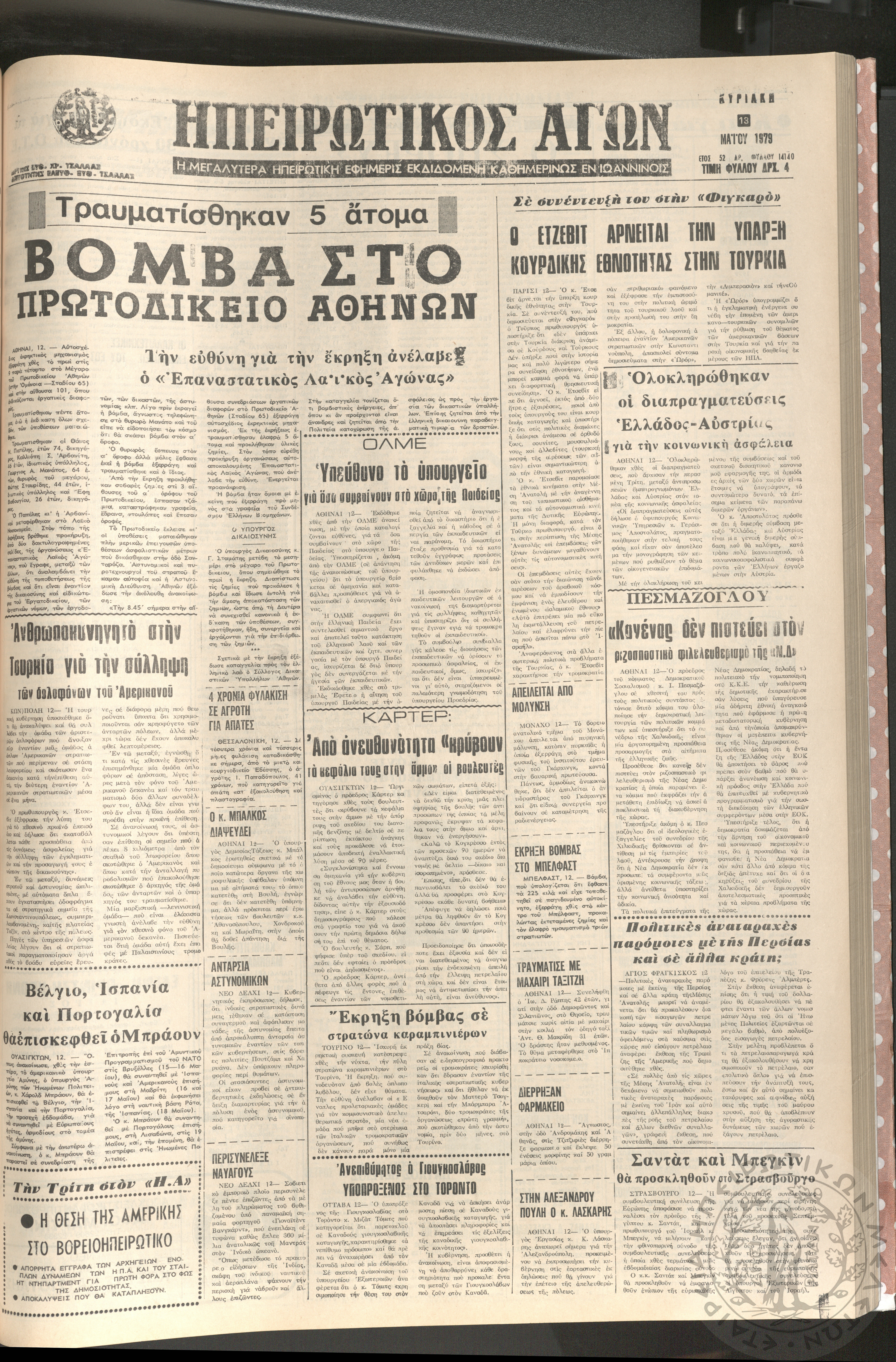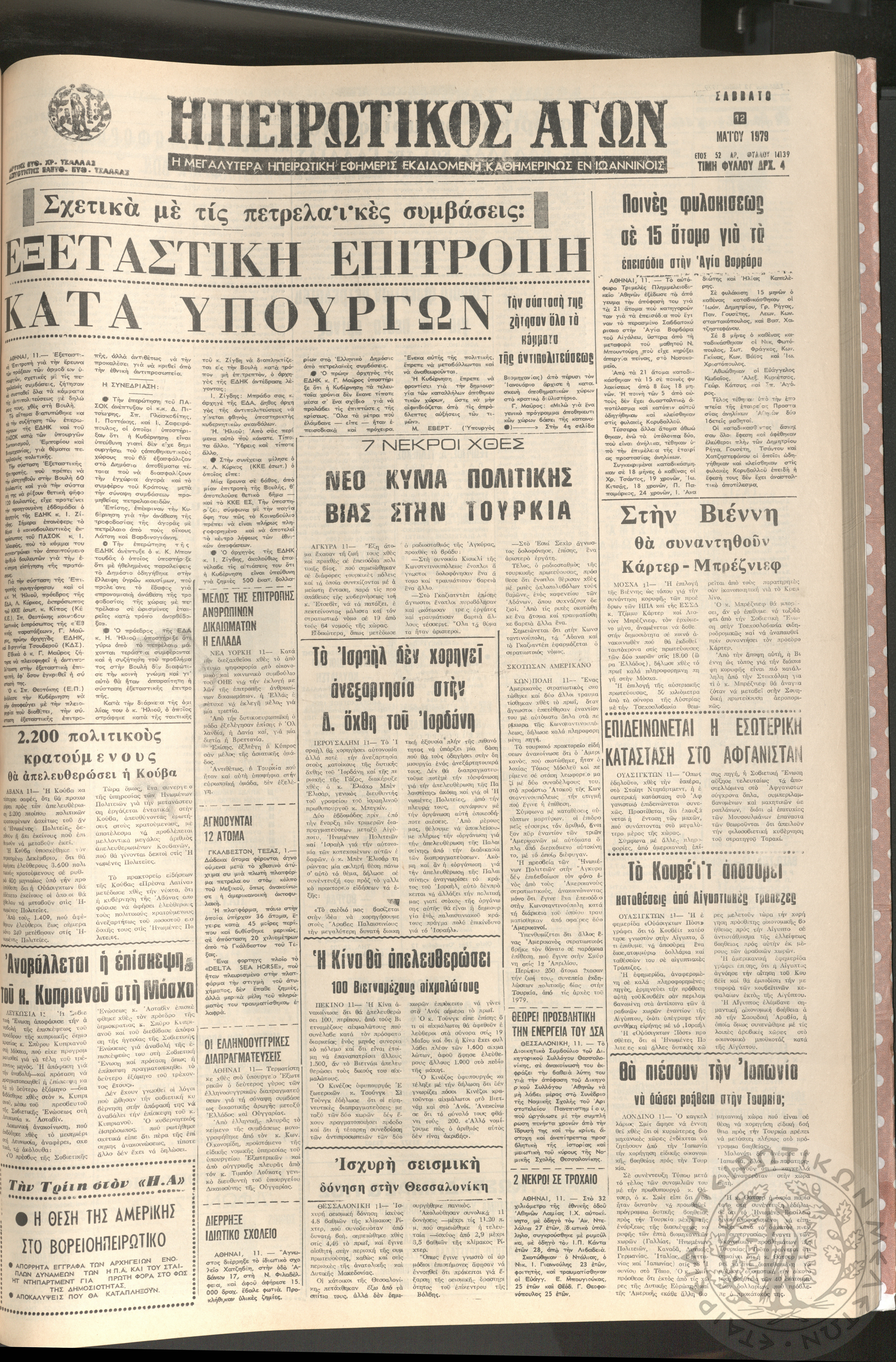 Ηπειρωτικός Αγών: η μεγαλυτέρα Ηπειρωτική εφημερίς εκδιδομένη καθημερινώς εν Ιωαννίνοις, 1979, φ. 14126Έτος 52, φ. 14126...