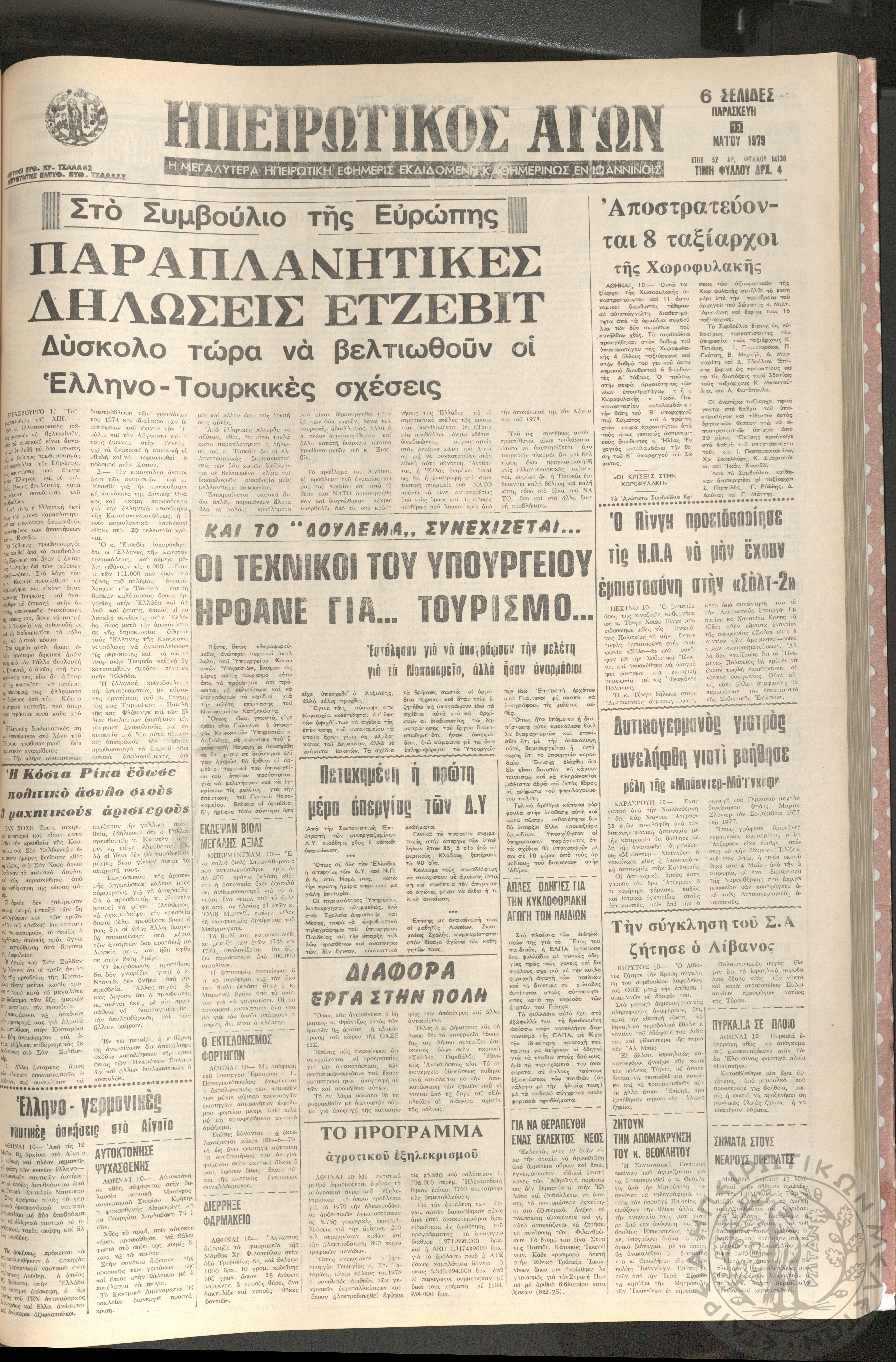 Ηπειρωτικός Αγών: η μεγαλυτέρα Ηπειρωτική εφημερίς εκδιδομένη καθημερινώς εν Ιωαννίνοις, 1979, φ. 14138Έτος 52, φ. 14138...