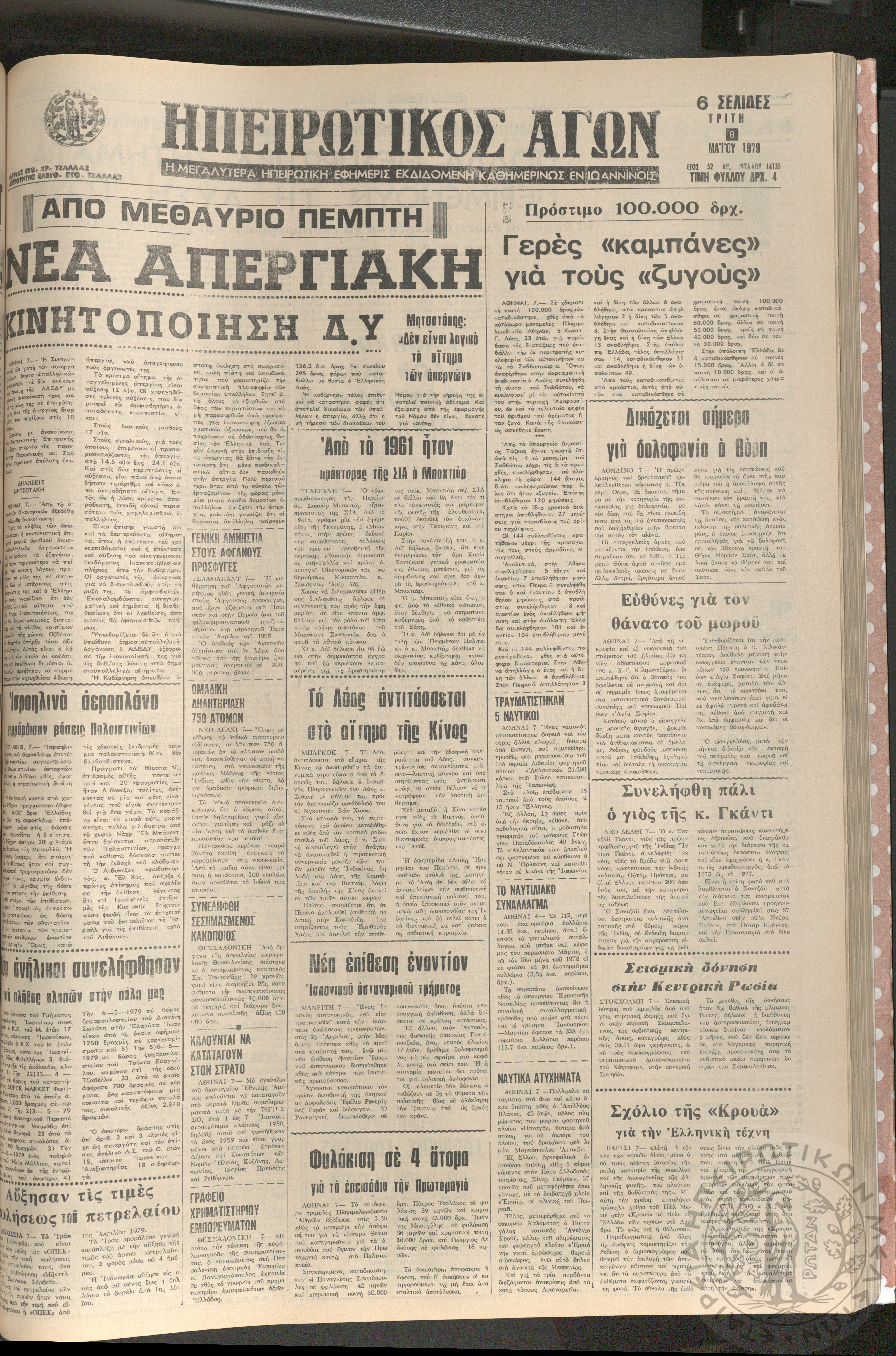 Ηπειρωτικός Αγών: η μεγαλυτέρα Ηπειρωτική εφημερίς εκδιδομένη καθημερινώς εν Ιωαννίνοις, 1979, φ. 14135Έτος 52, φ. 14135...