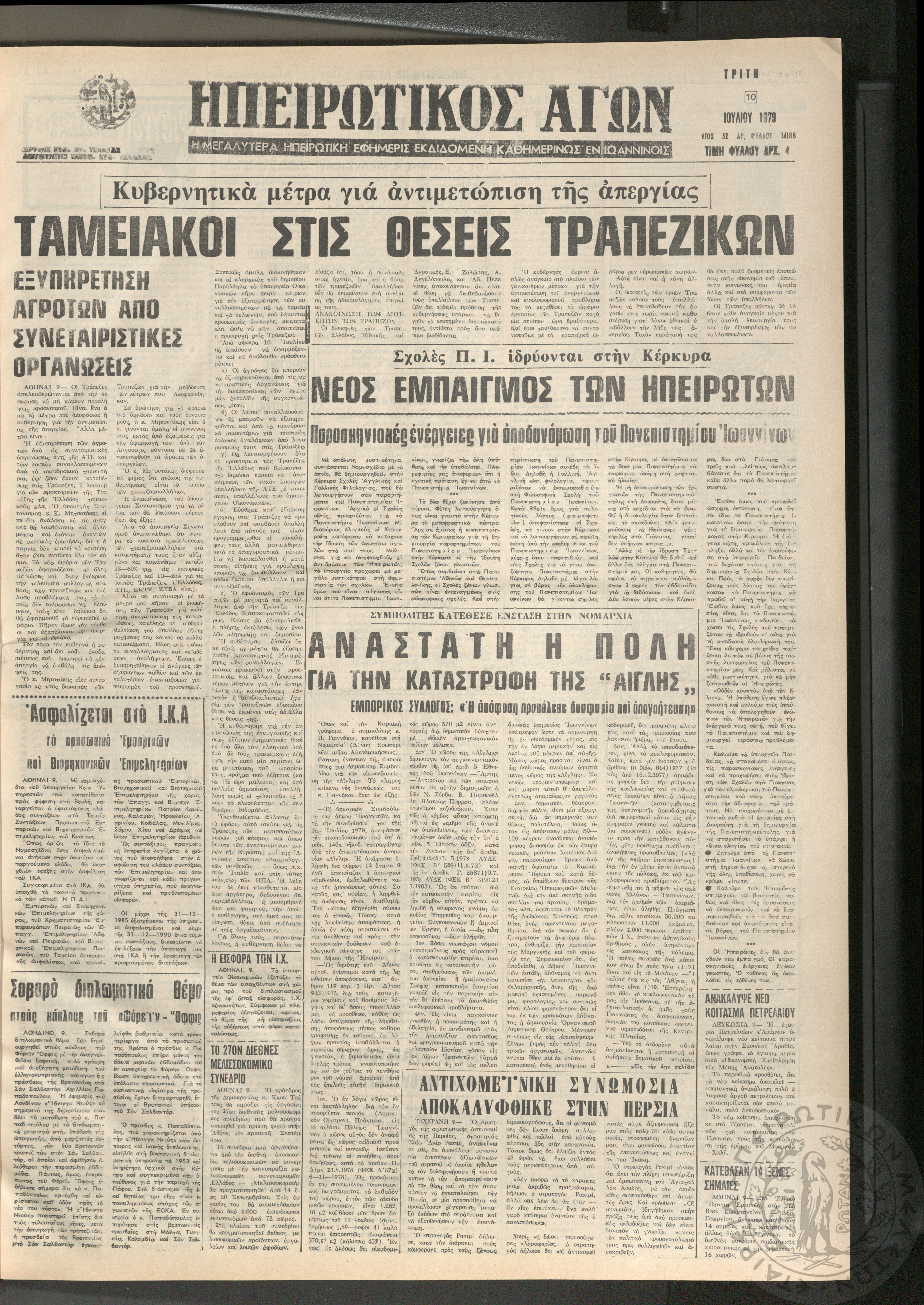 Ηπειρωτικός Αγών: η μεγαλυτέρα Ηπειρωτική εφημερίς εκδιδομένη καθημερινώς εν Ιωαννίνοις, 1979, φ. 14188Έτος 52, φ. 14188...