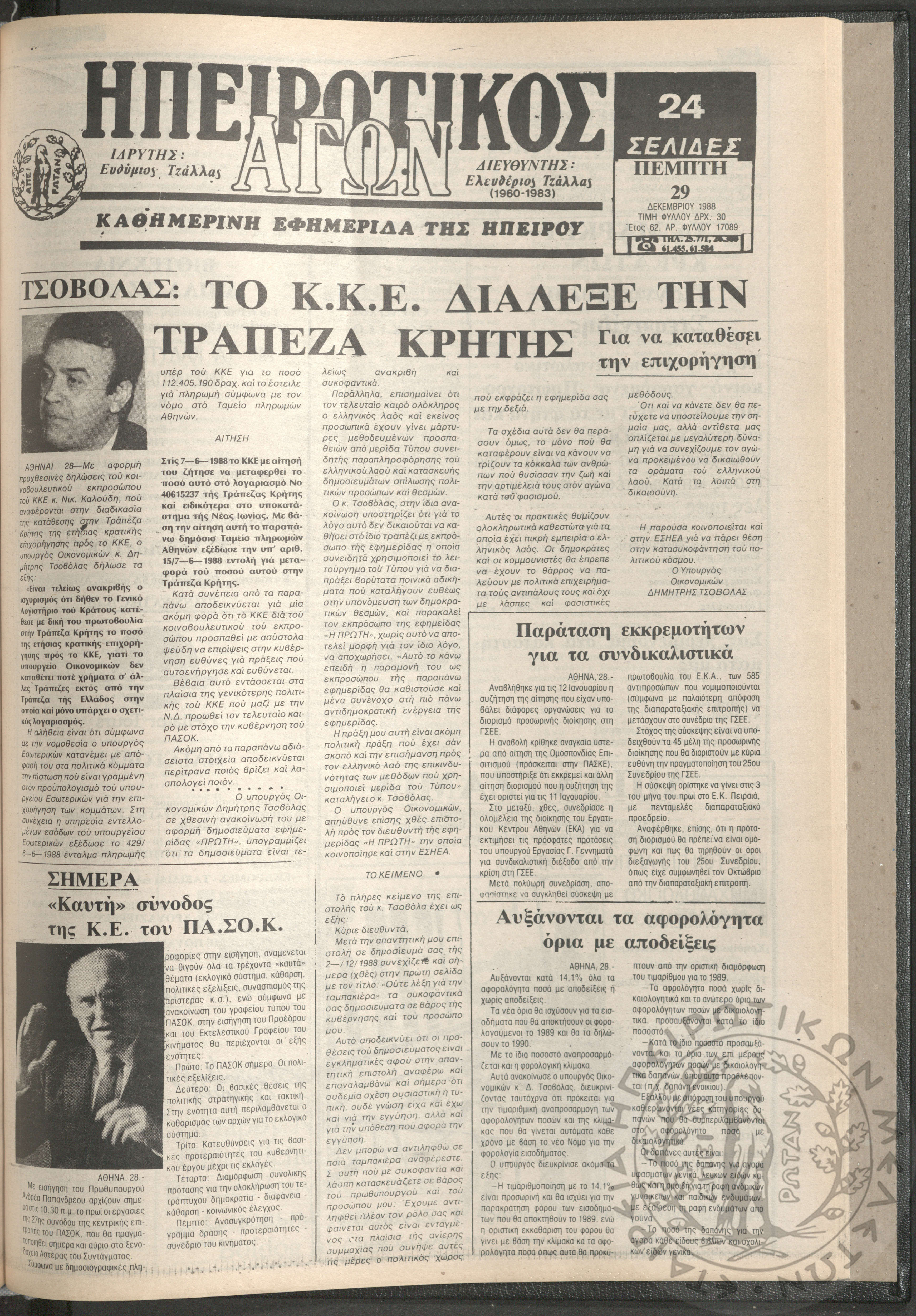 Ηπειρωτικός Αγών: η μεγαλυτέρα Ηπειρωτική εφημερίς εκδιδομένη καθημερινώς εν Ιωαννίνοις, 1979, φ. 14129Έτος 52, φ. 14129...