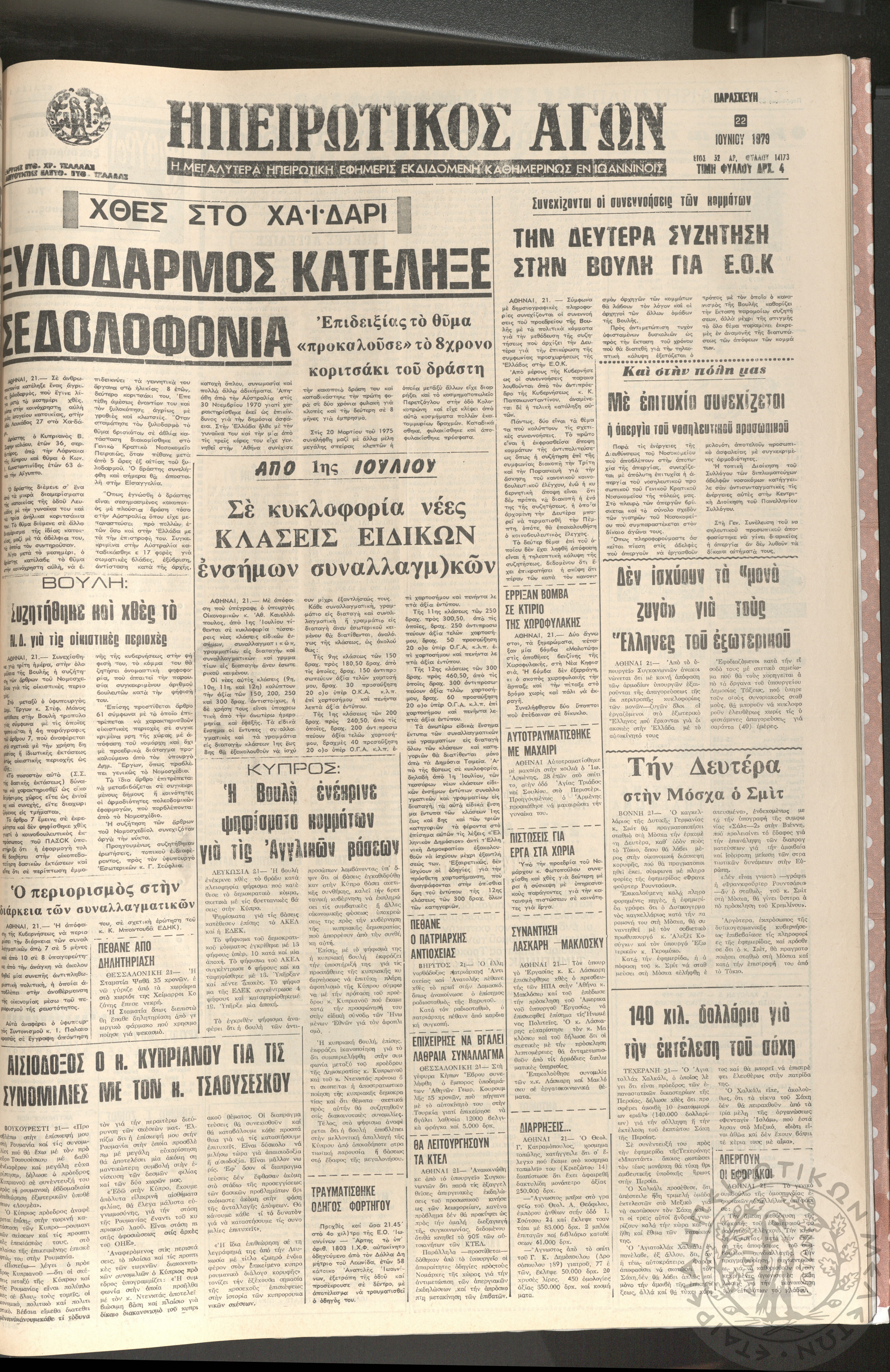 Ηπειρωτικός Αγών: η μεγαλυτέρα Ηπειρωτική εφημερίς εκδιδομένη καθημερινώς εν Ιωαννίνοις, 1979, φ. 14173Έτος 52, φ. 14173...