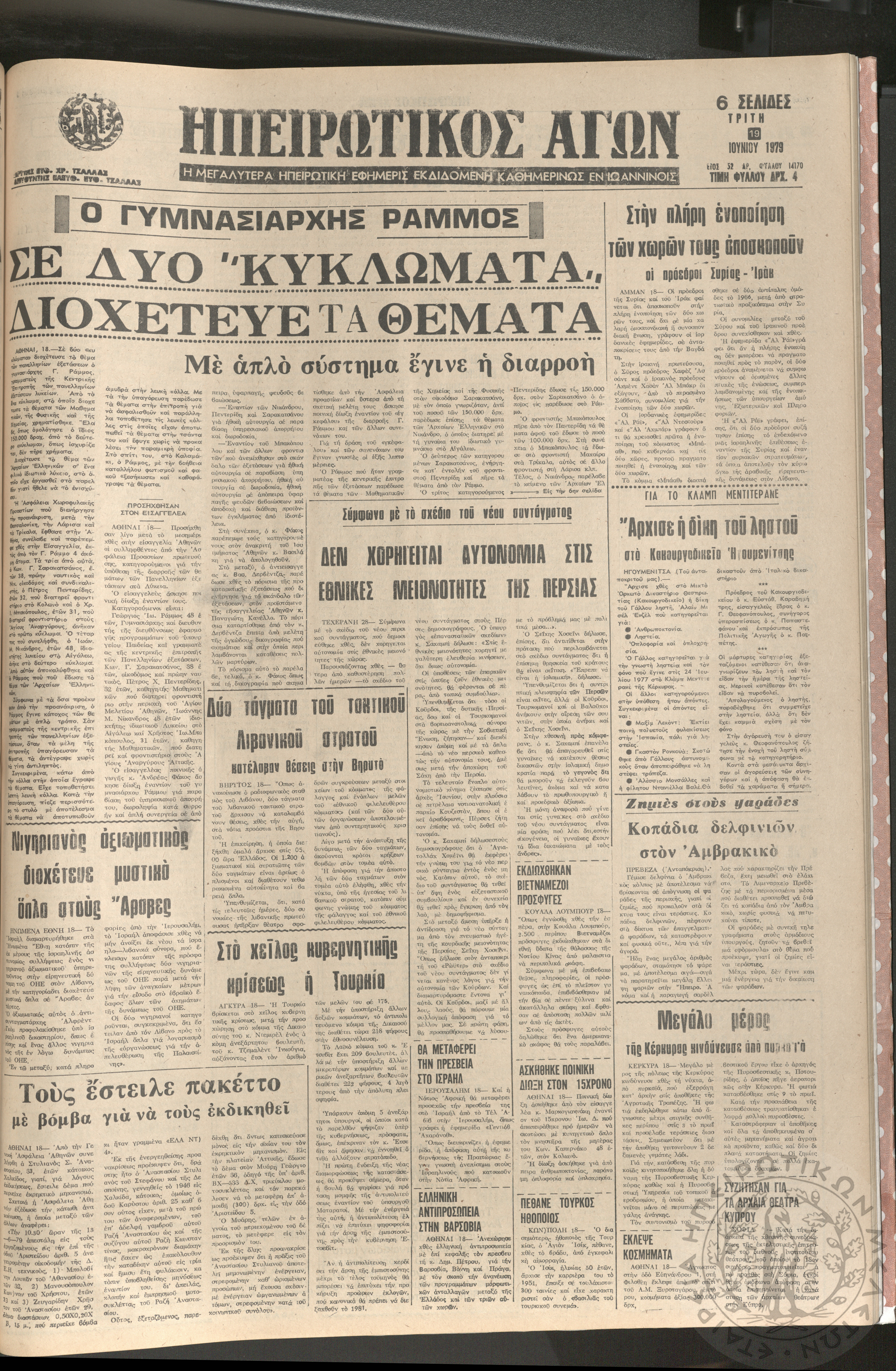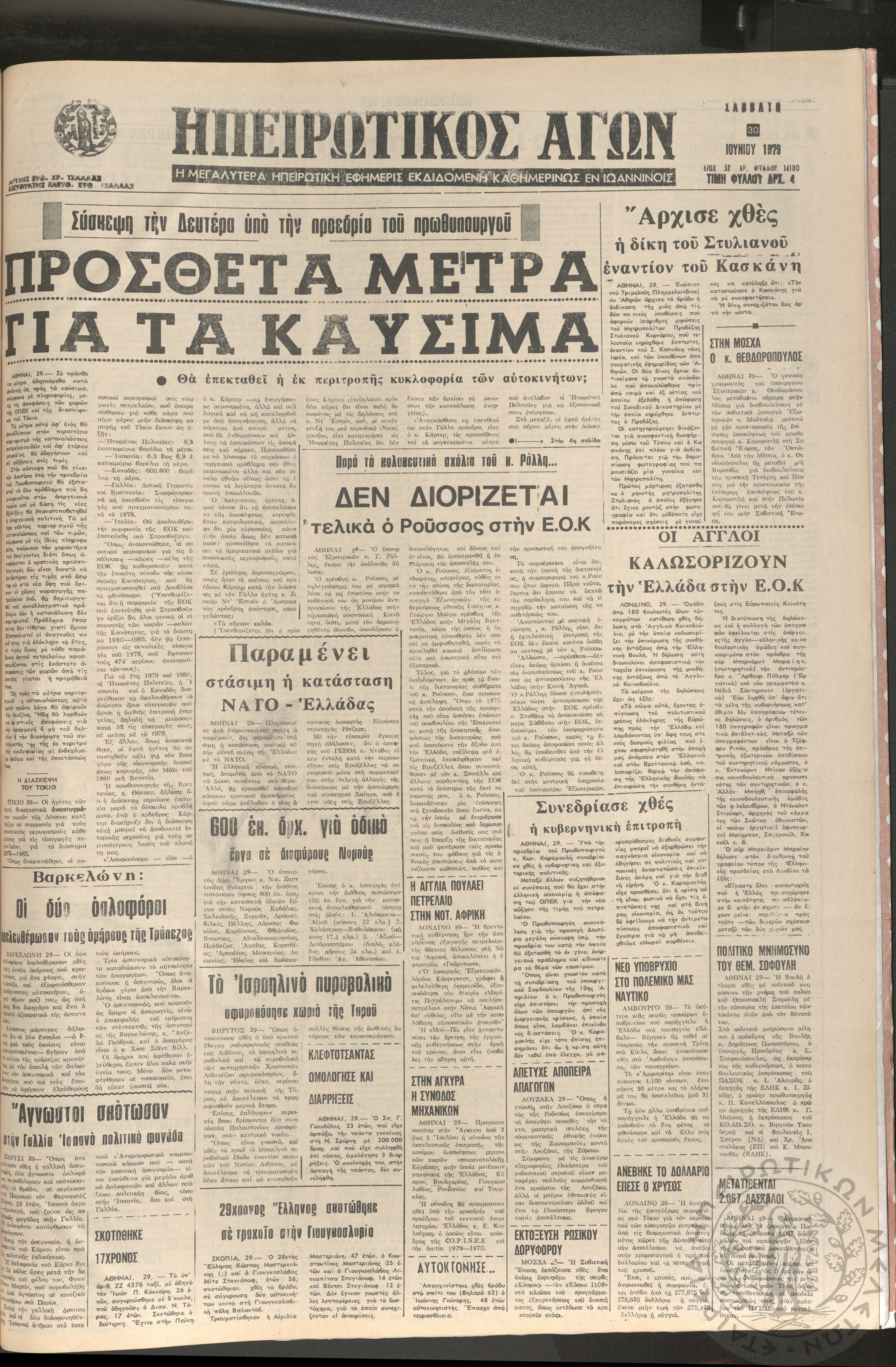 Ηπειρωτικός Αγών: η μεγαλυτέρα Ηπειρωτική εφημερίς εκδιδομένη καθημερινώς εν Ιωαννίνοις, 1979, φ. 14179Έτος 52, φ. 14179...