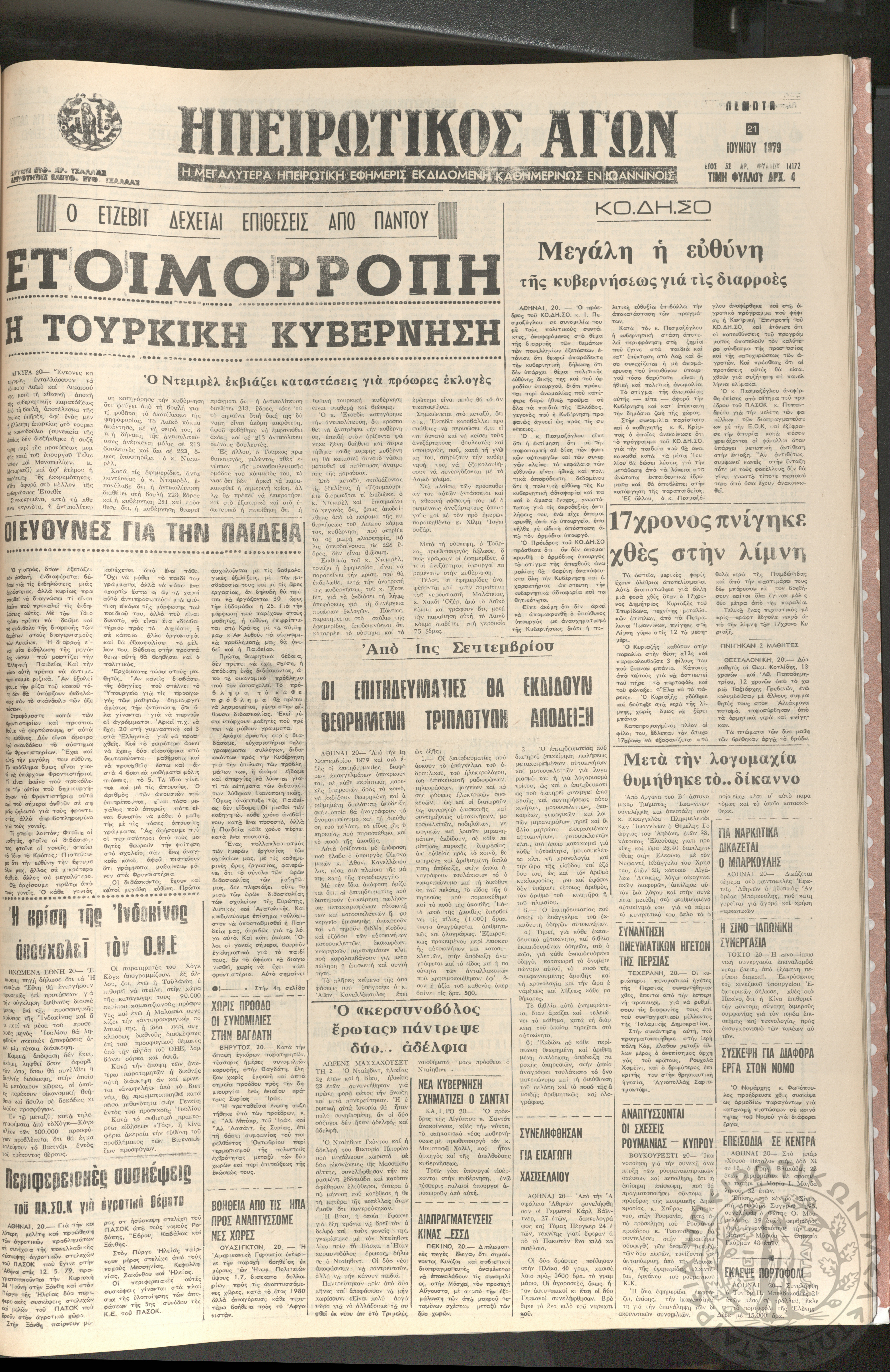 Ηπειρωτικός Αγών: η μεγαλυτέρα Ηπειρωτική εφημερίς εκδιδομένη καθημερινώς εν Ιωαννίνοις, 1979, φ. 14177Έτος 52, φ. 14177...