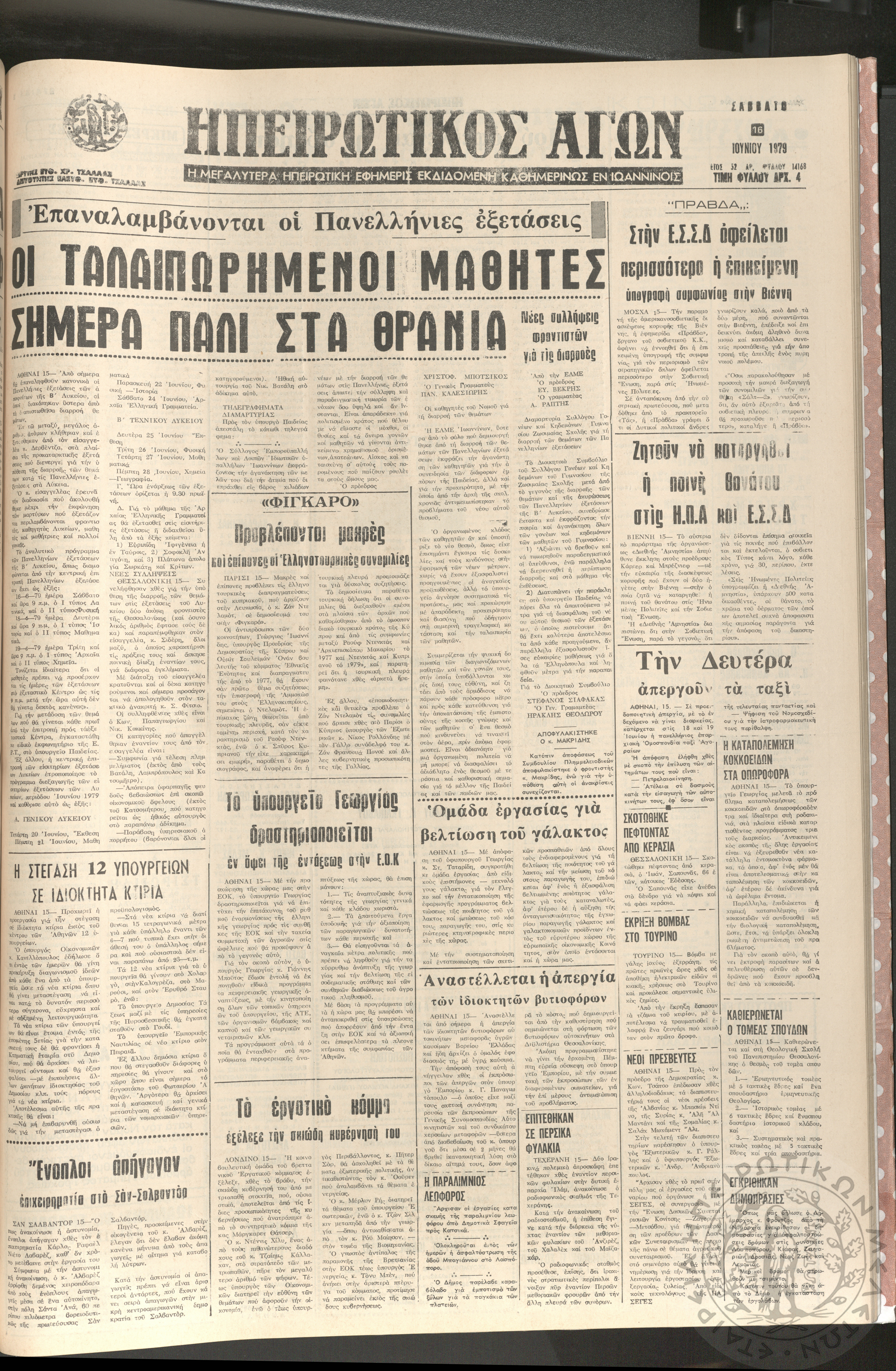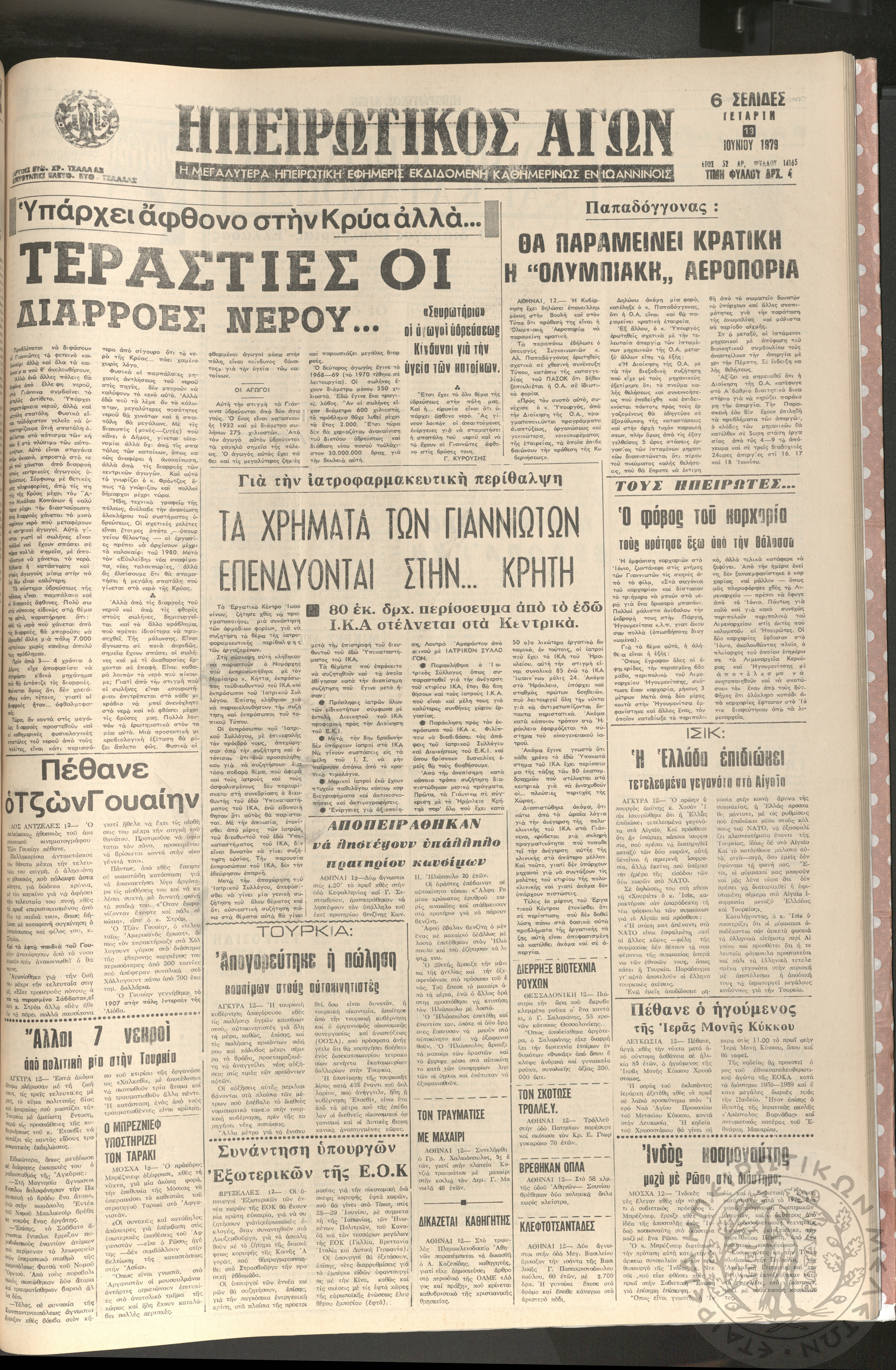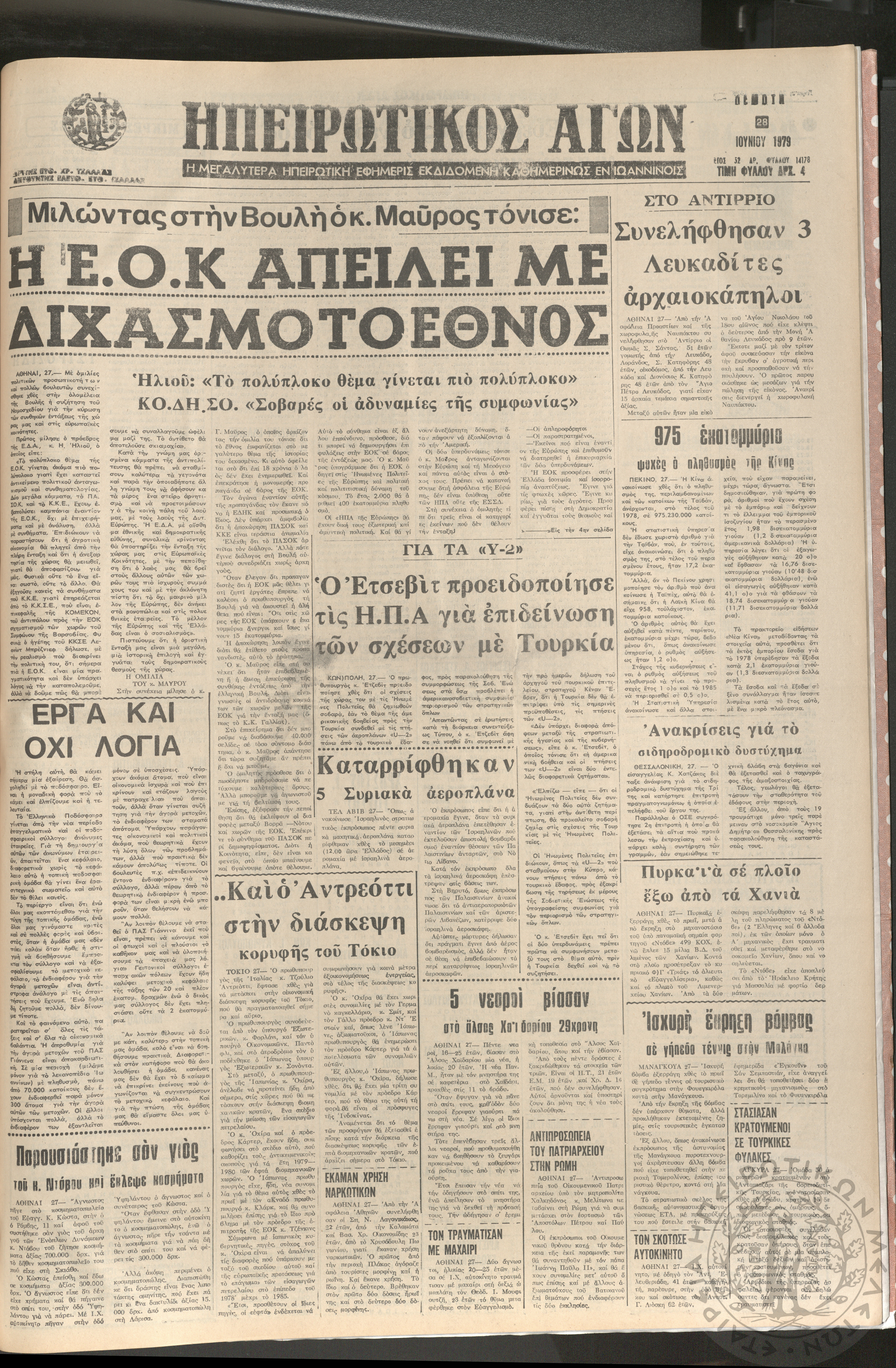Ηπειρωτικός Αγών: η μεγαλυτέρα Ηπειρωτική εφημερίς εκδιδομένη καθημερινώς εν Ιωαννίνοις, 1979, φ. 14168Έτος 52, φ. 14168...