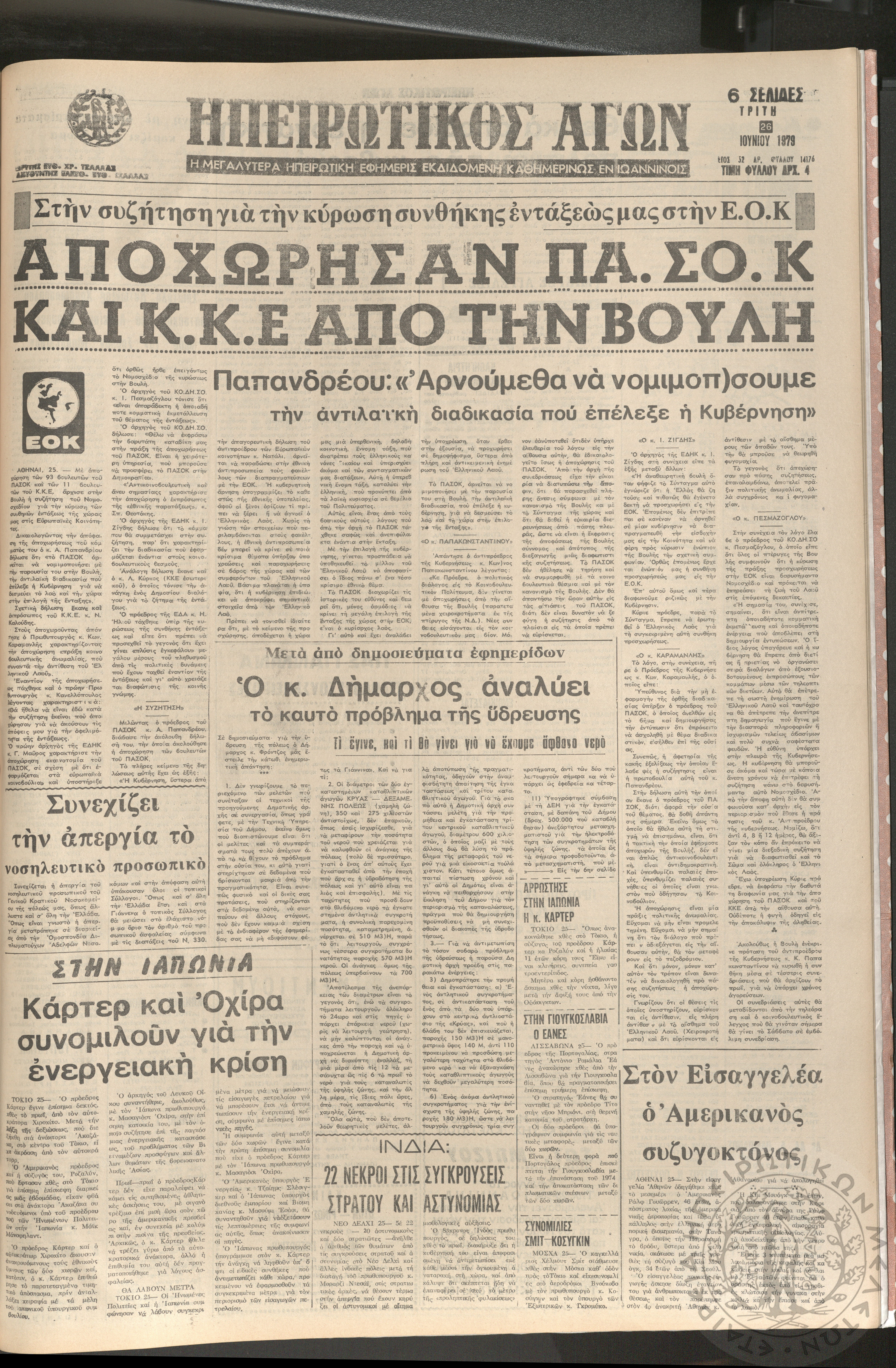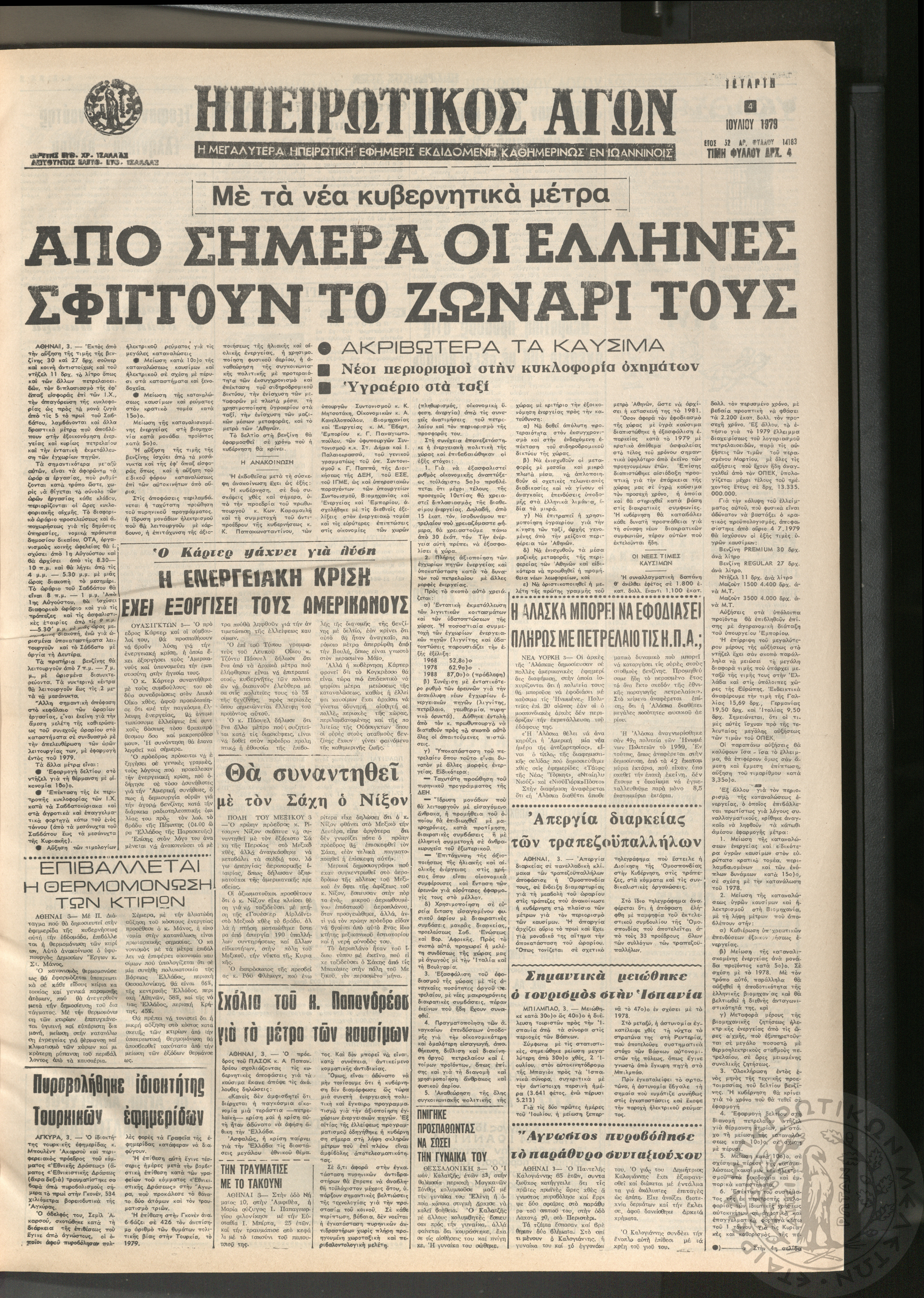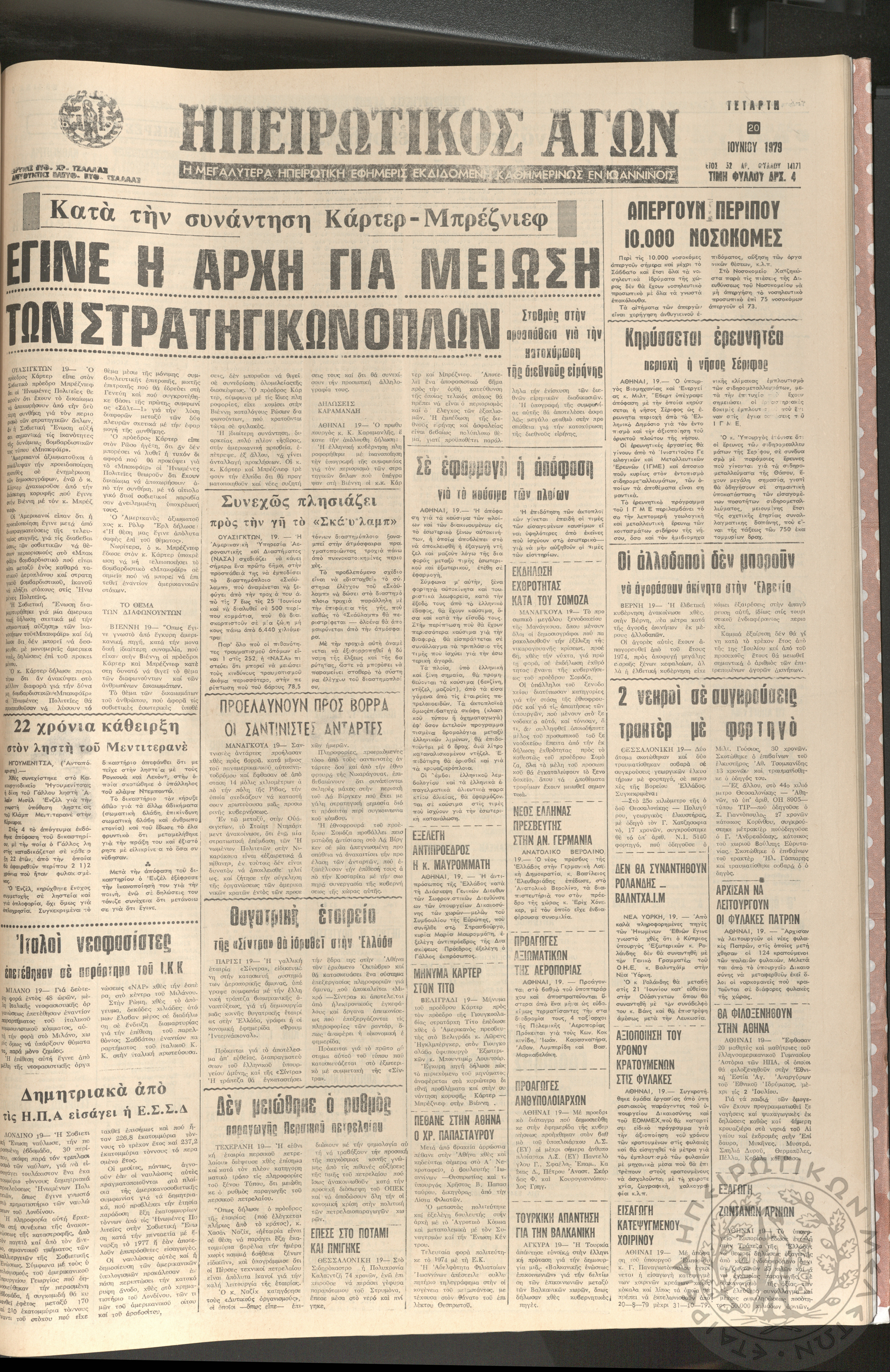Ηπειρωτικός Αγών: η μεγαλυτέρα Ηπειρωτική εφημερίς εκδιδομένη καθημερινώς εν Ιωαννίνοις, 1979, φ. 14168Έτος 52, φ. 14168...