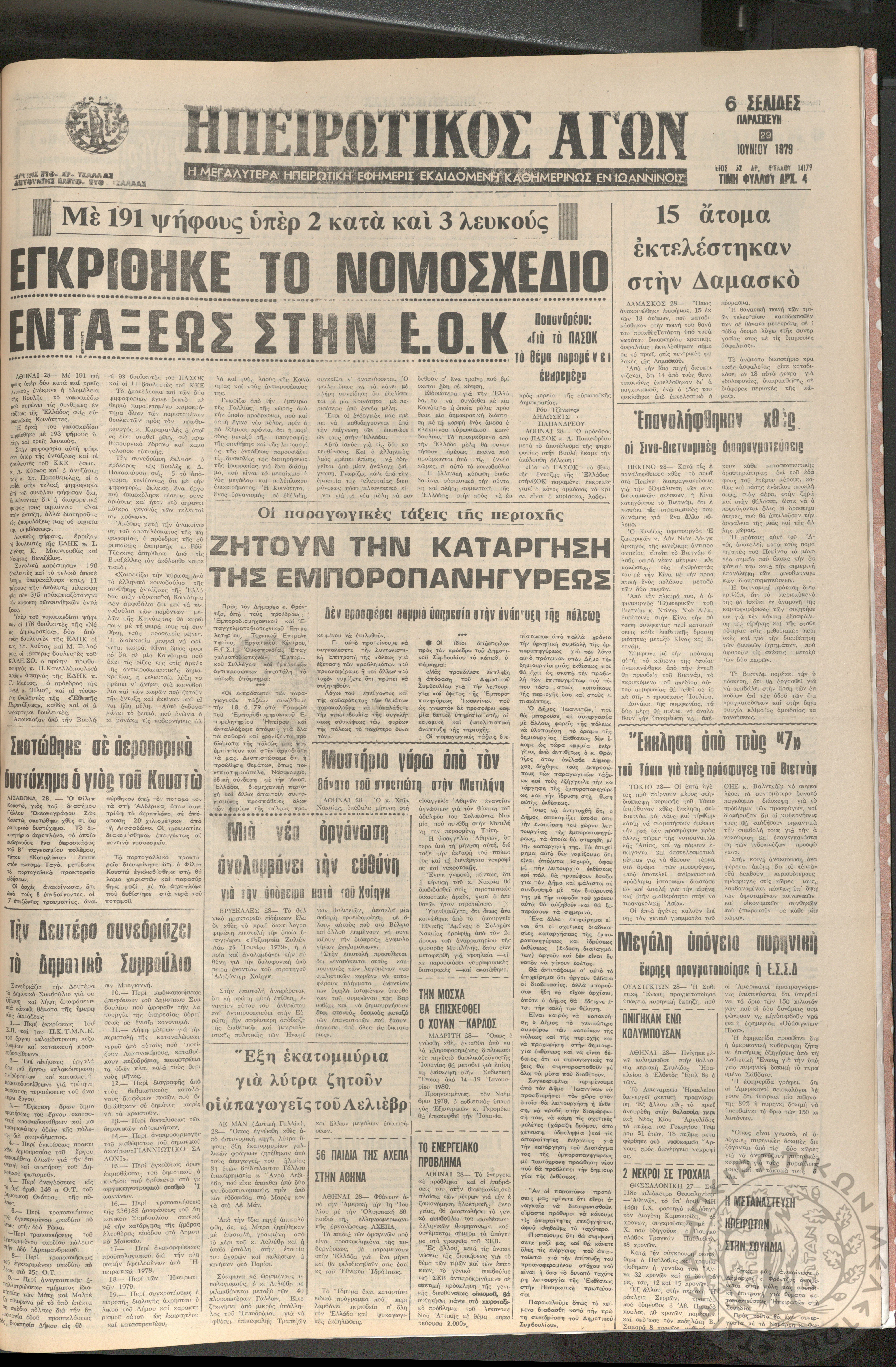 Ηπειρωτικός Αγών: η μεγαλυτέρα Ηπειρωτική εφημερίς εκδιδομένη καθημερινώς εν Ιωαννίνοις, 1979, φ. 14178Έτος 52, φ. 14178...