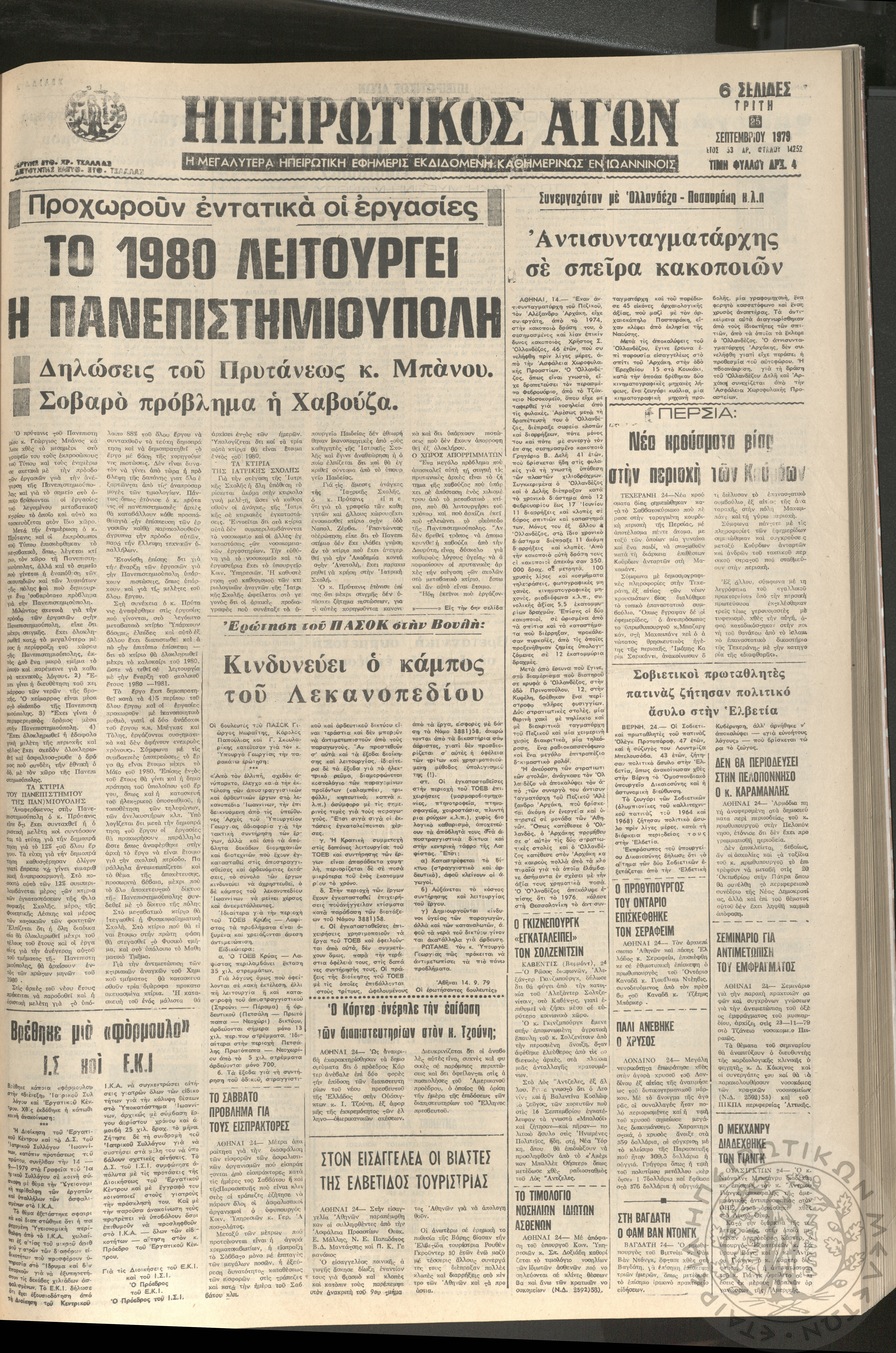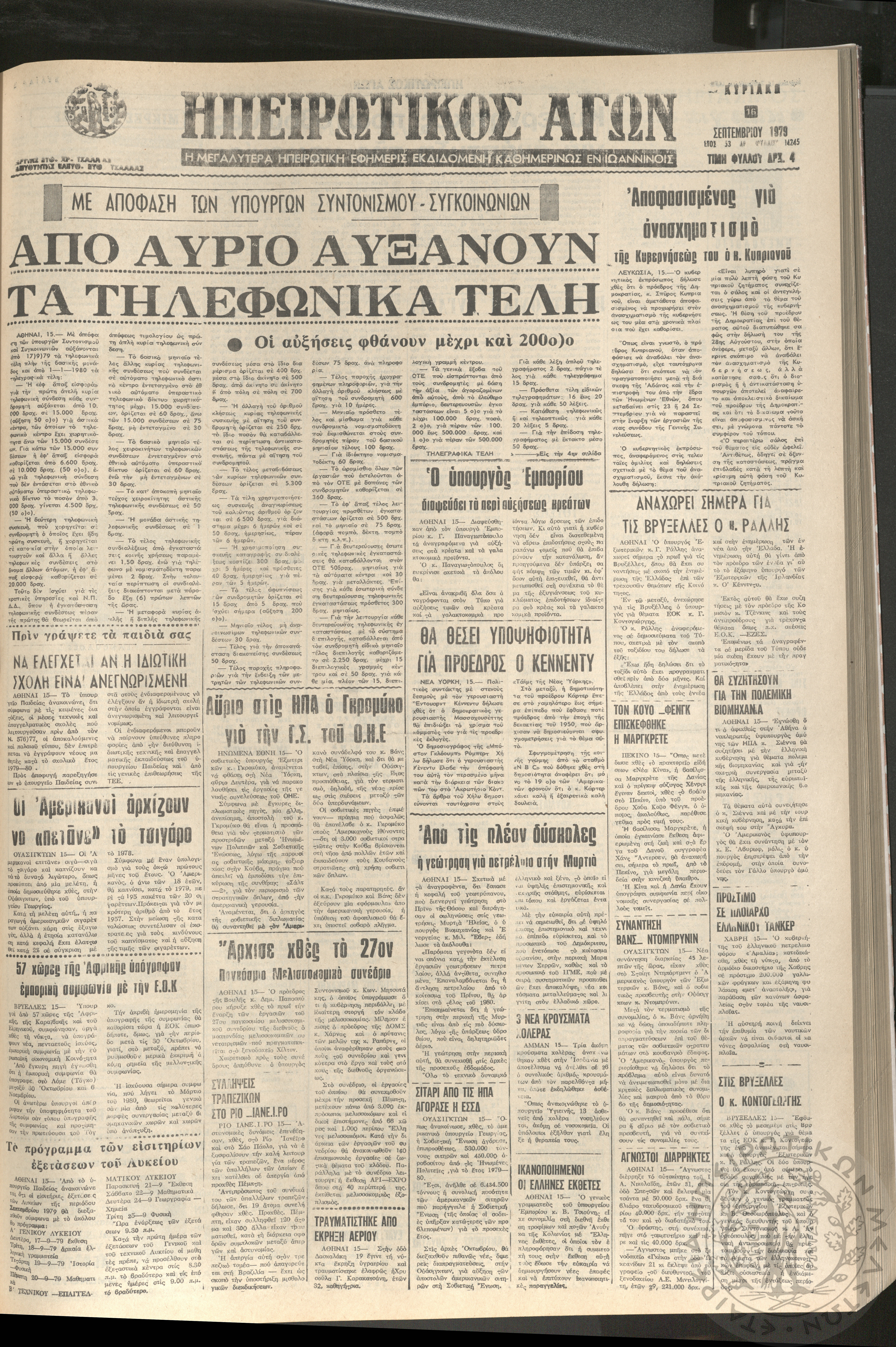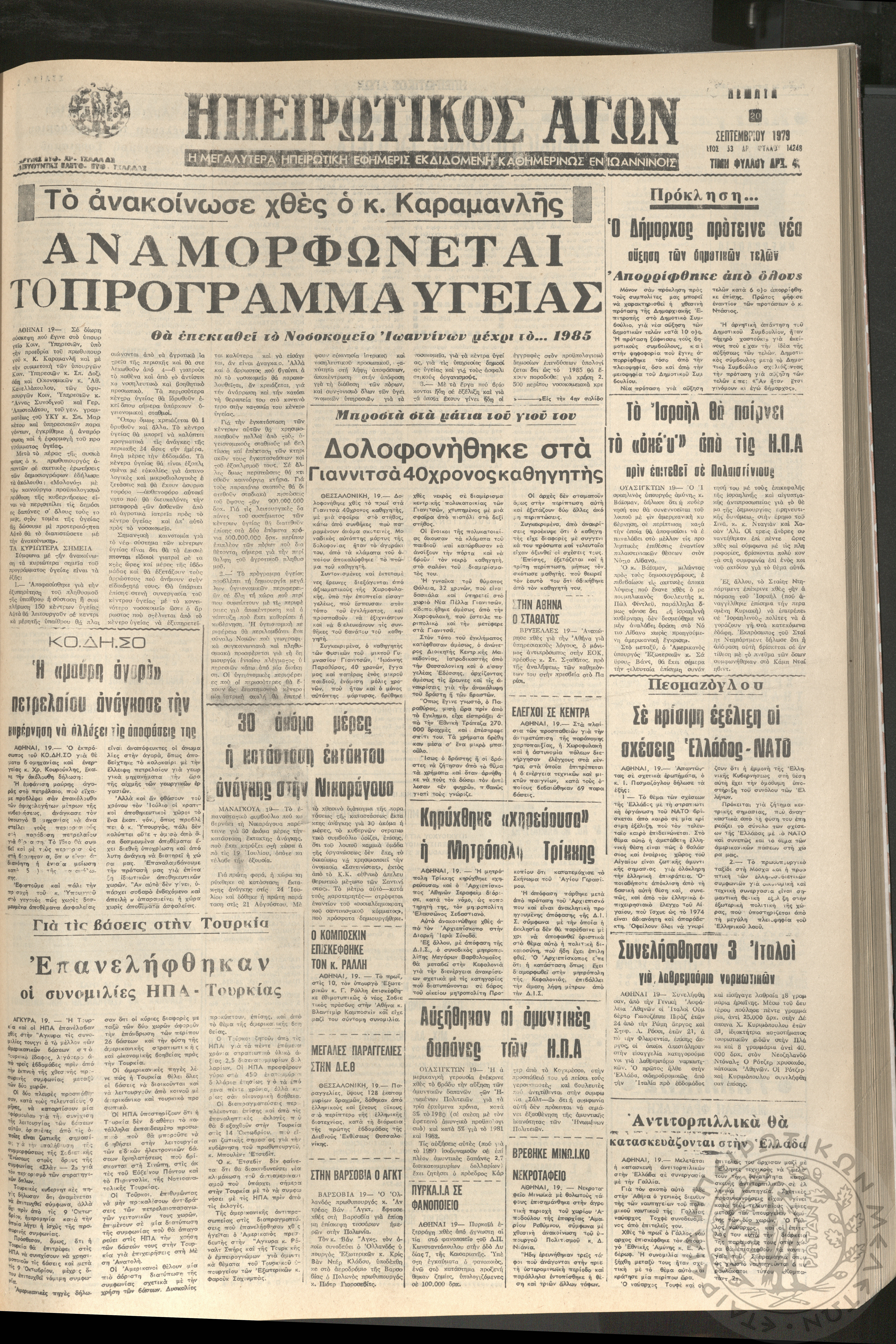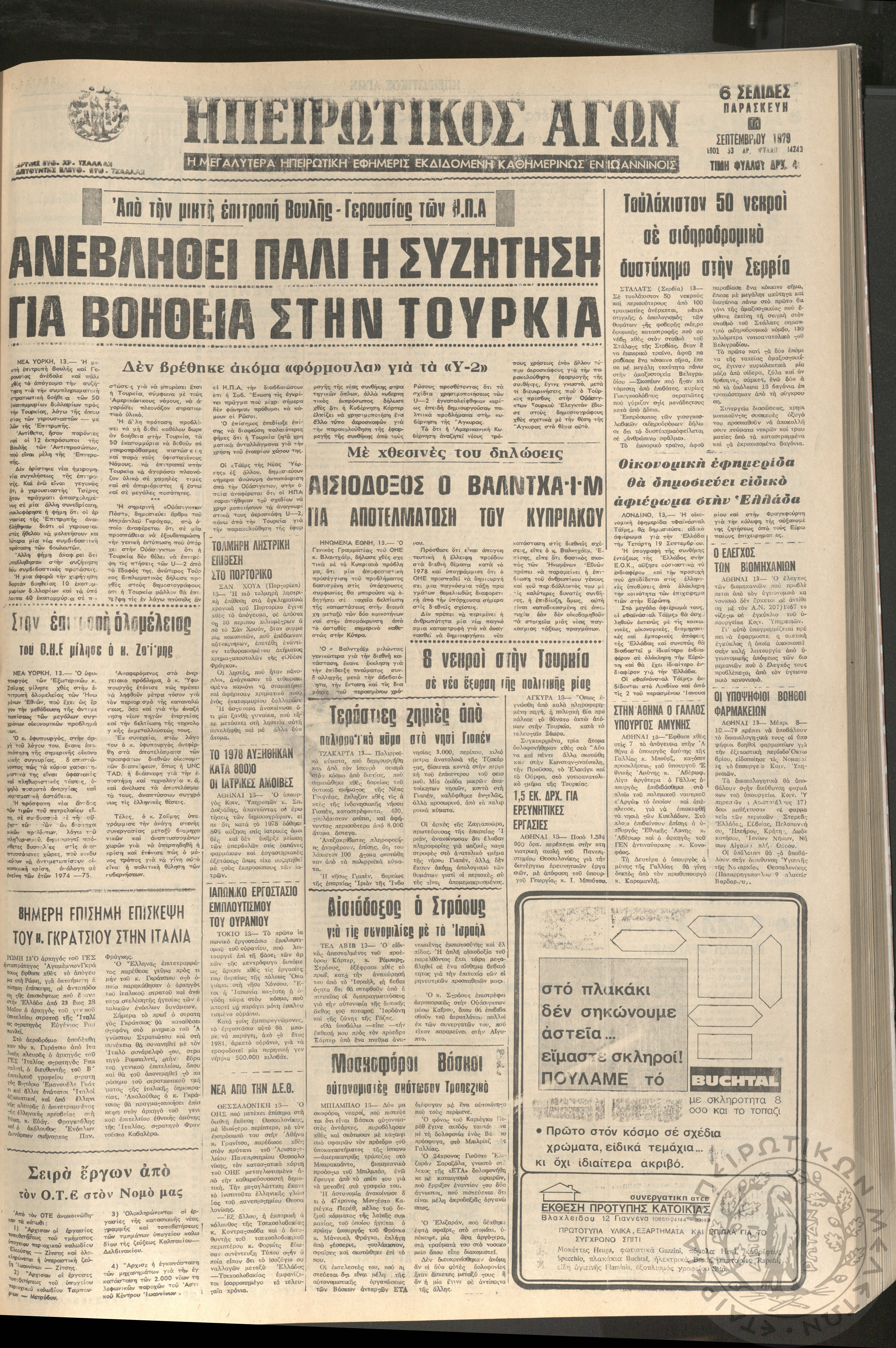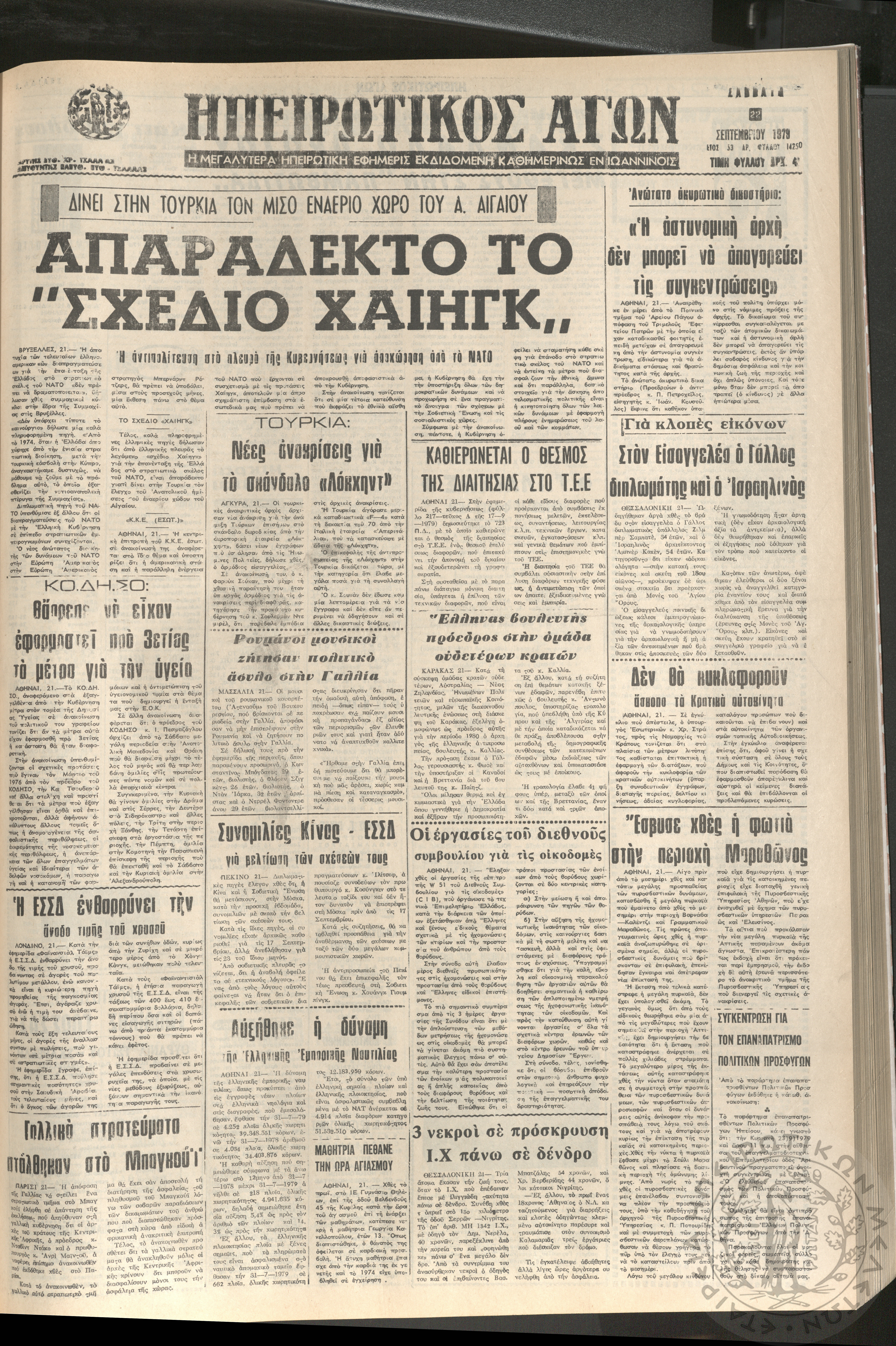 Ηπειρωτικός Αγών: η μεγαλυτέρα Ηπειρωτική εφημερίς εκδιδομένη καθημερινώς εν Ιωαννίνοις, 1979, φ. 14250Έτος 53, φ. 14250...