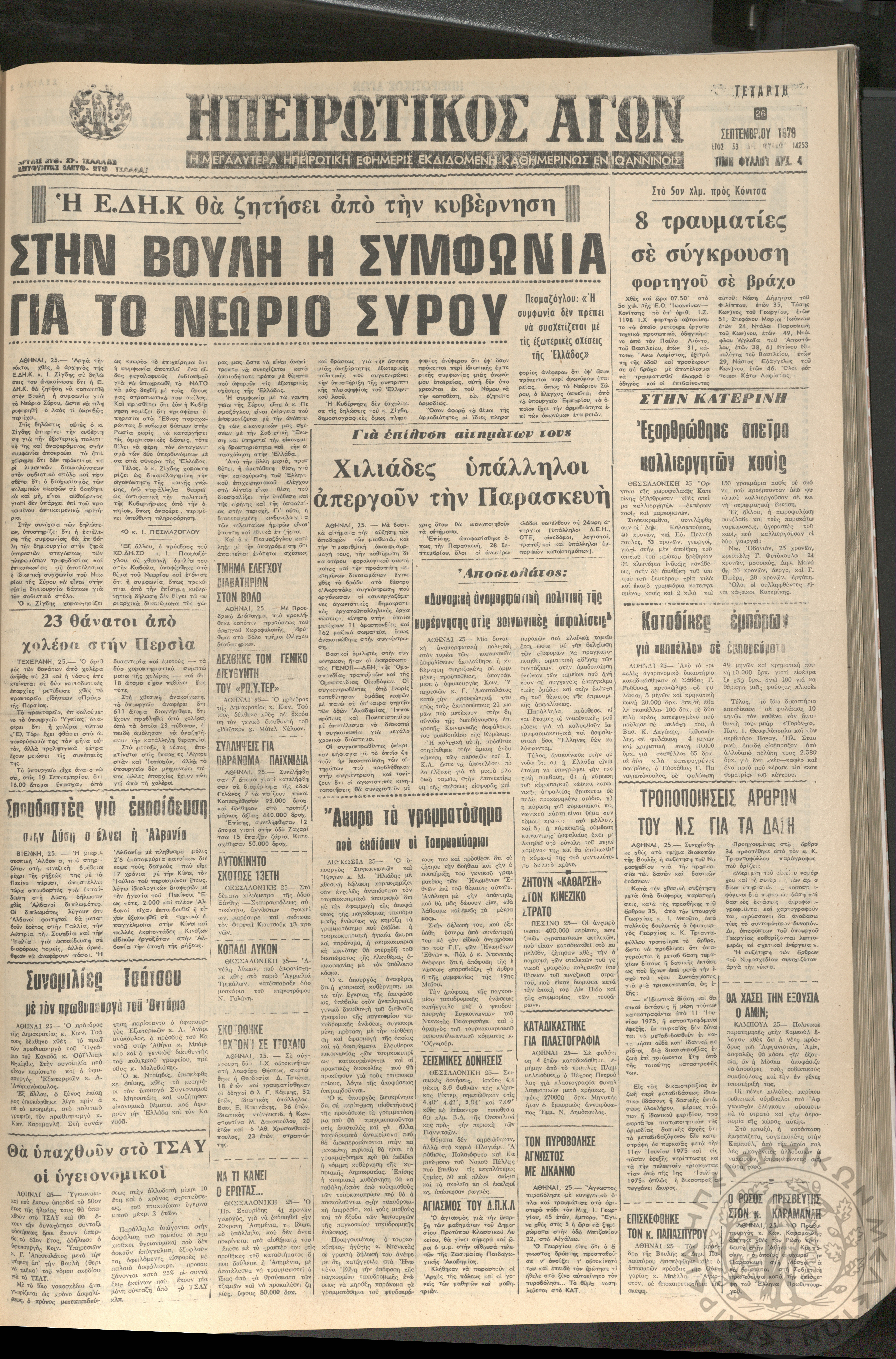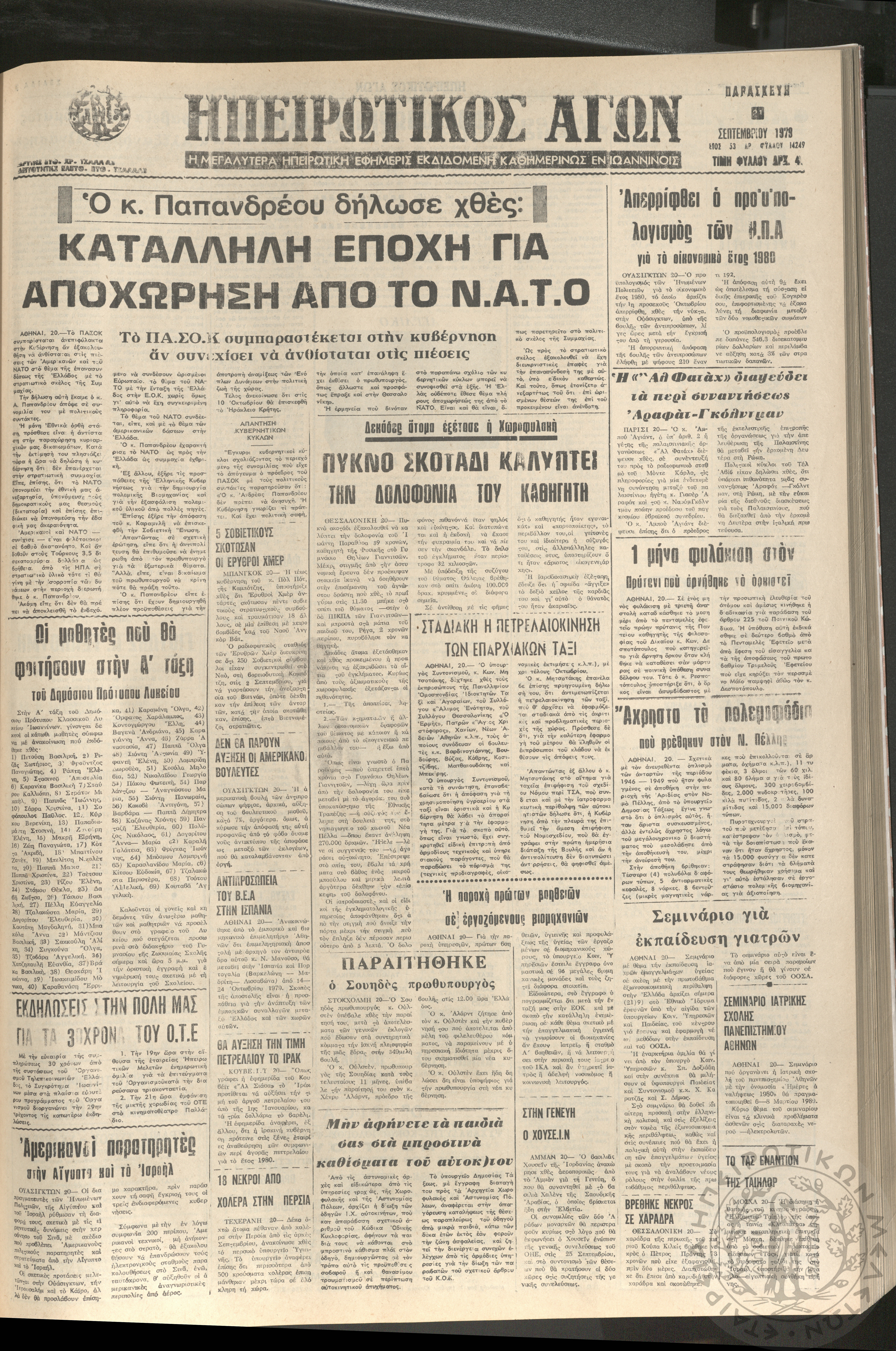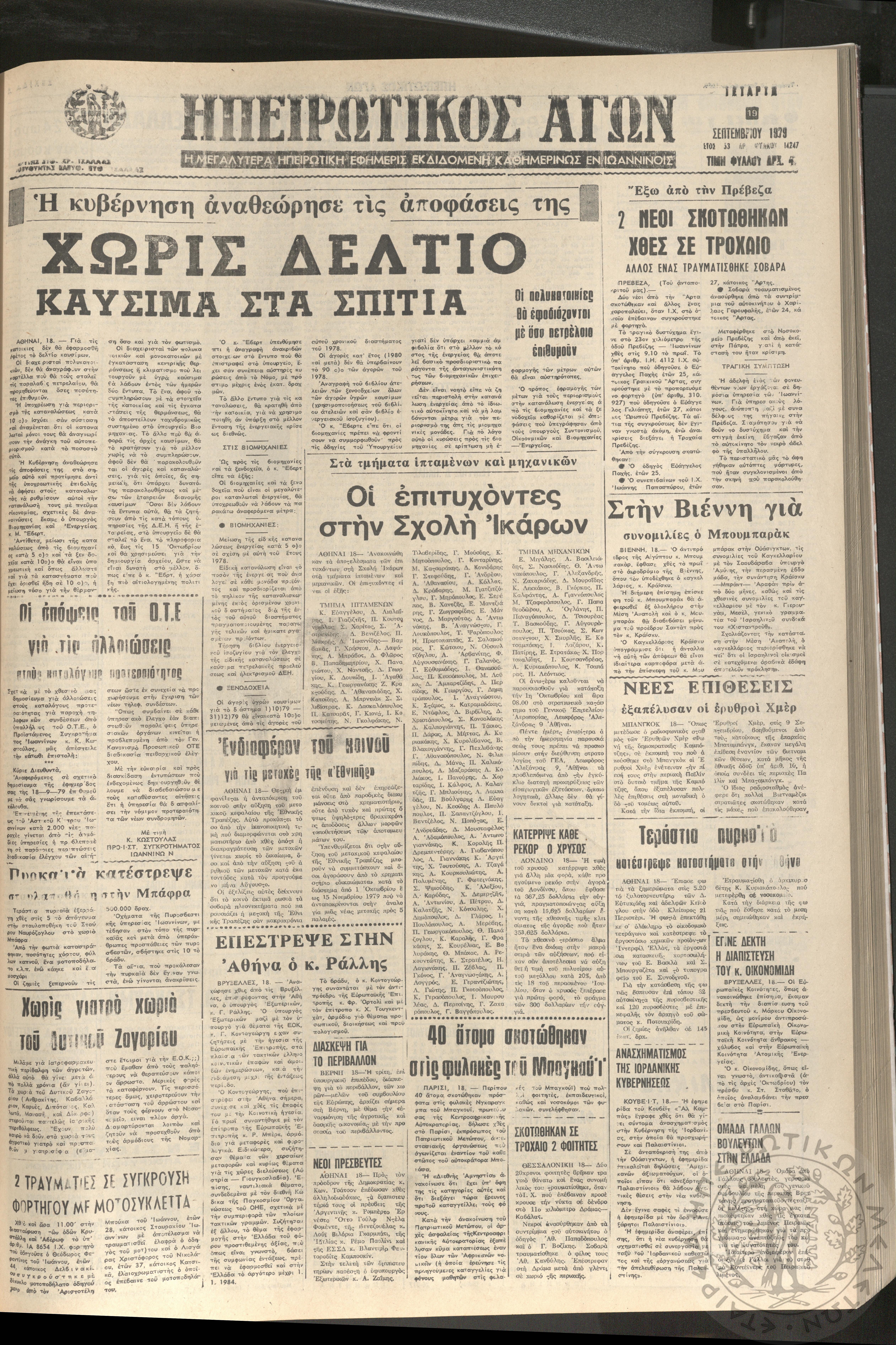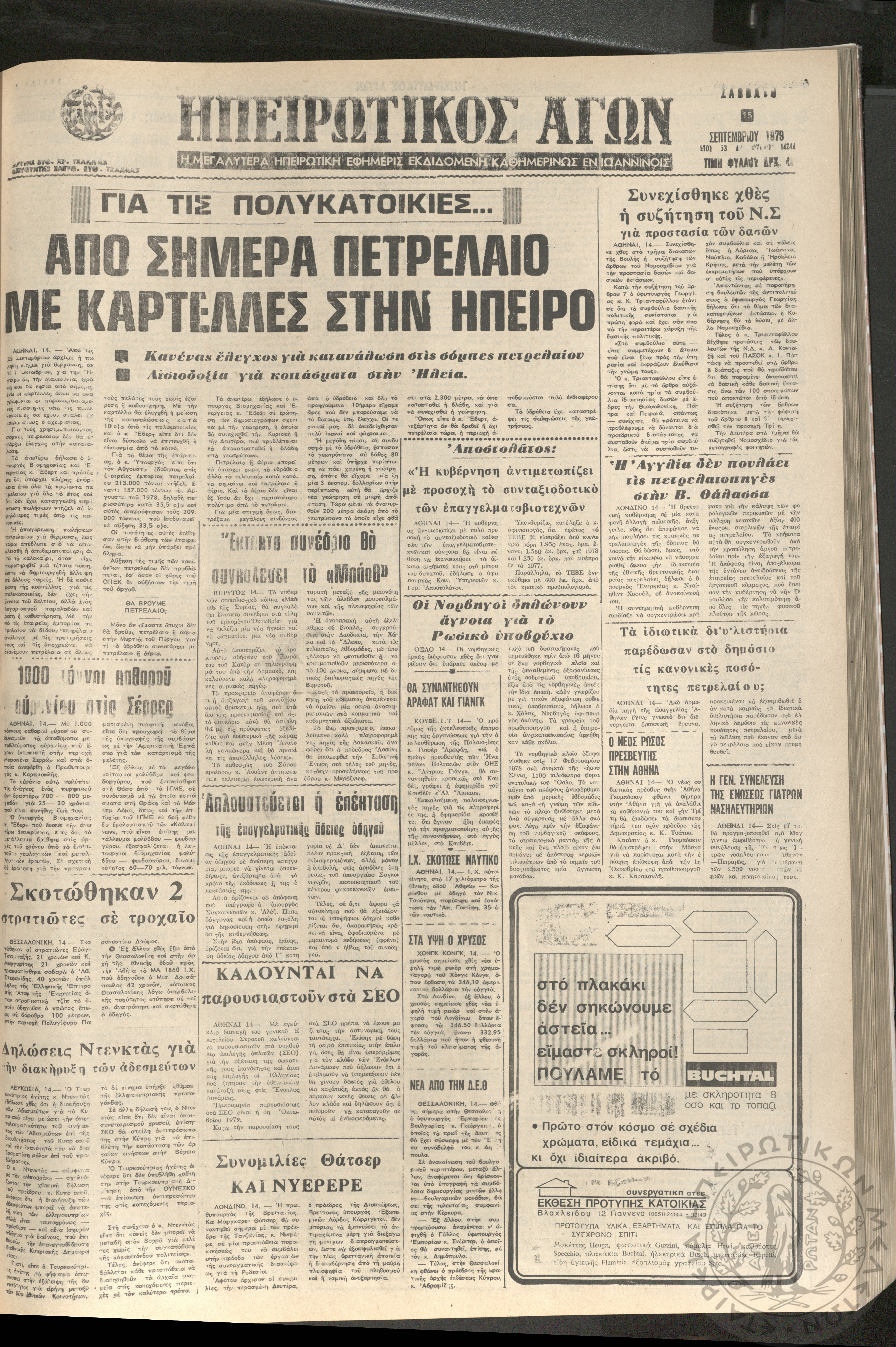 Ηπειρωτικός Αγών: η μεγαλυτέρα Ηπειρωτική εφημερίς εκδιδομένη καθημερινώς εν Ιωαννίνοις, 1979, φ. 14250Έτος 53, φ. 14250...