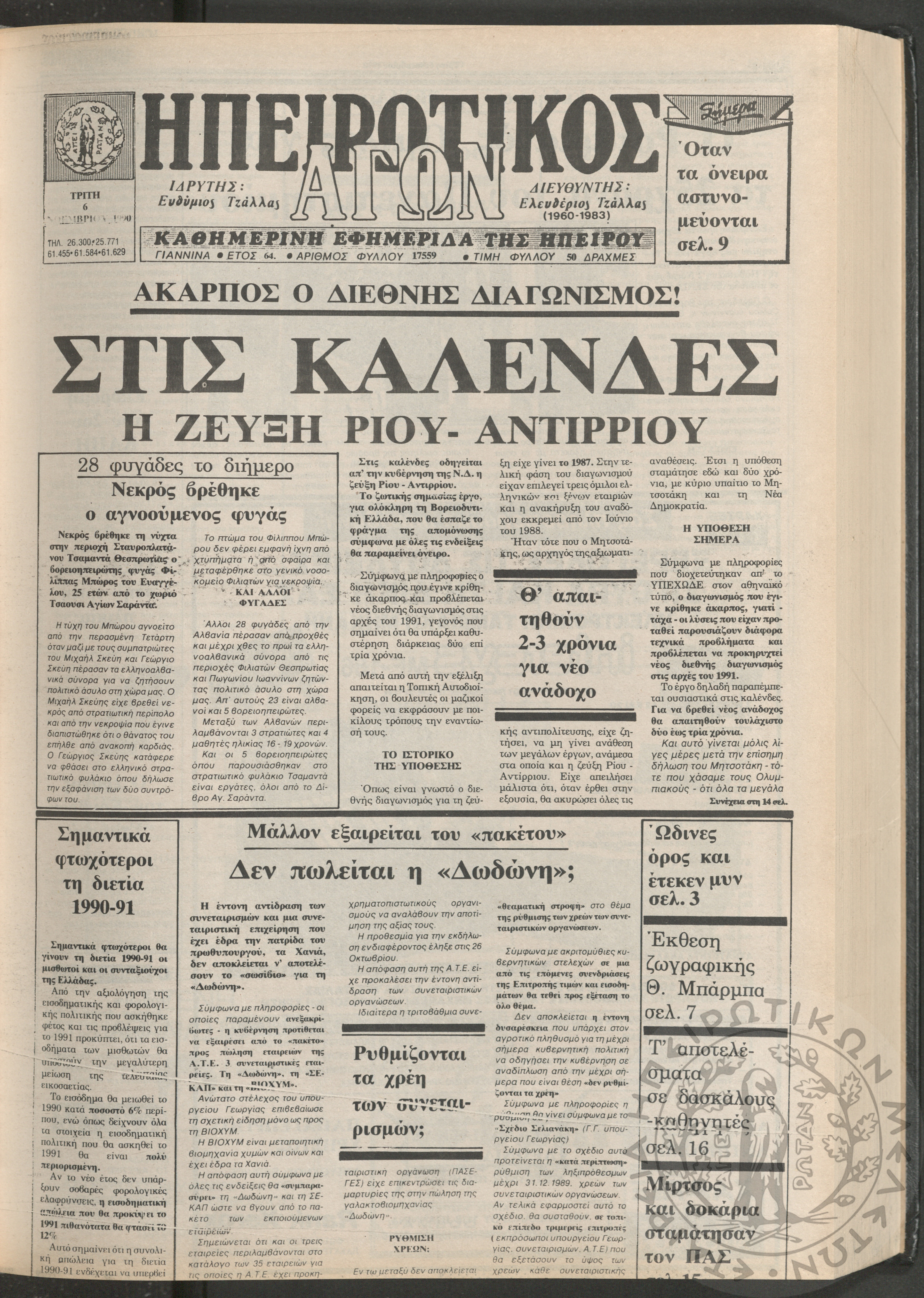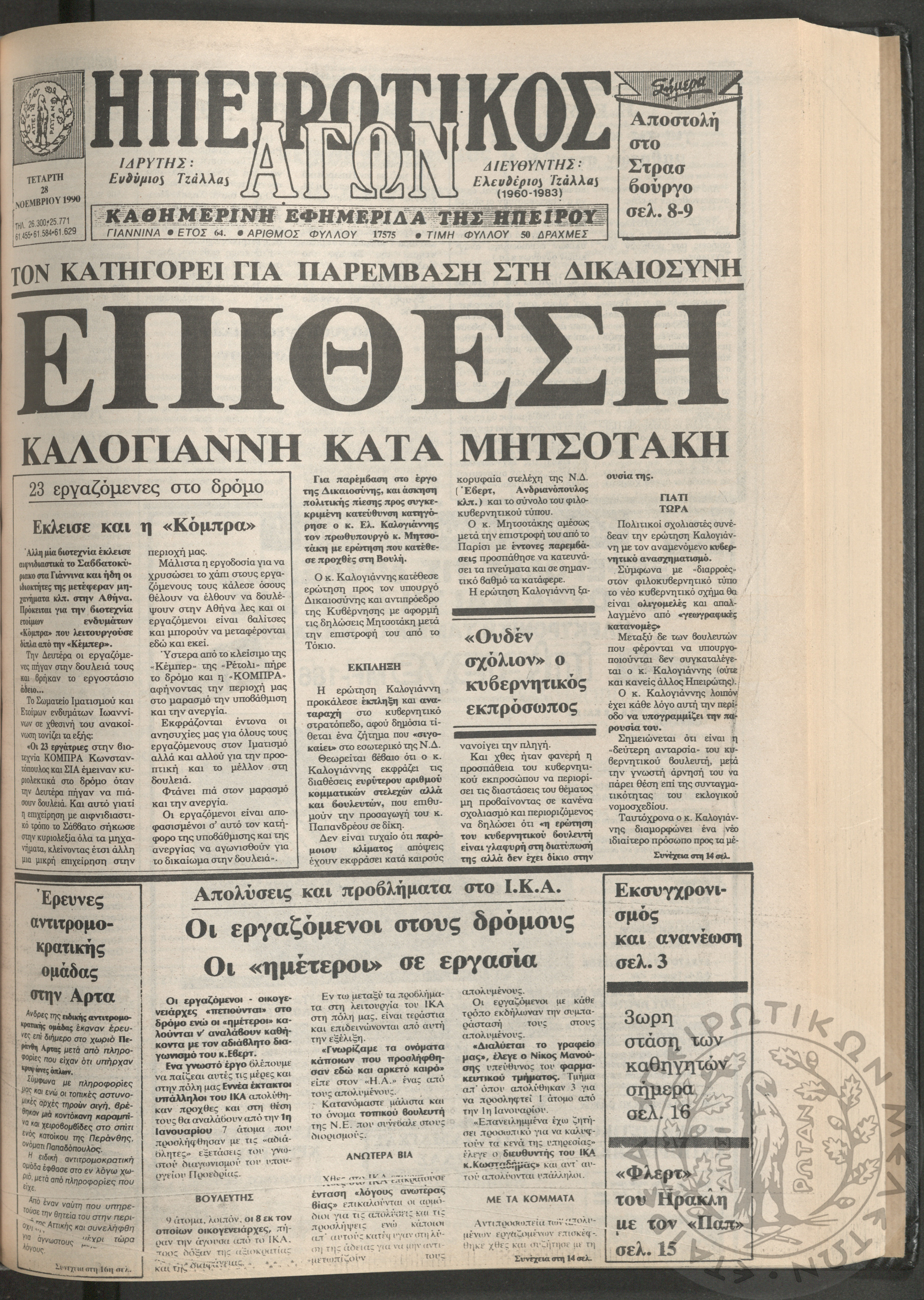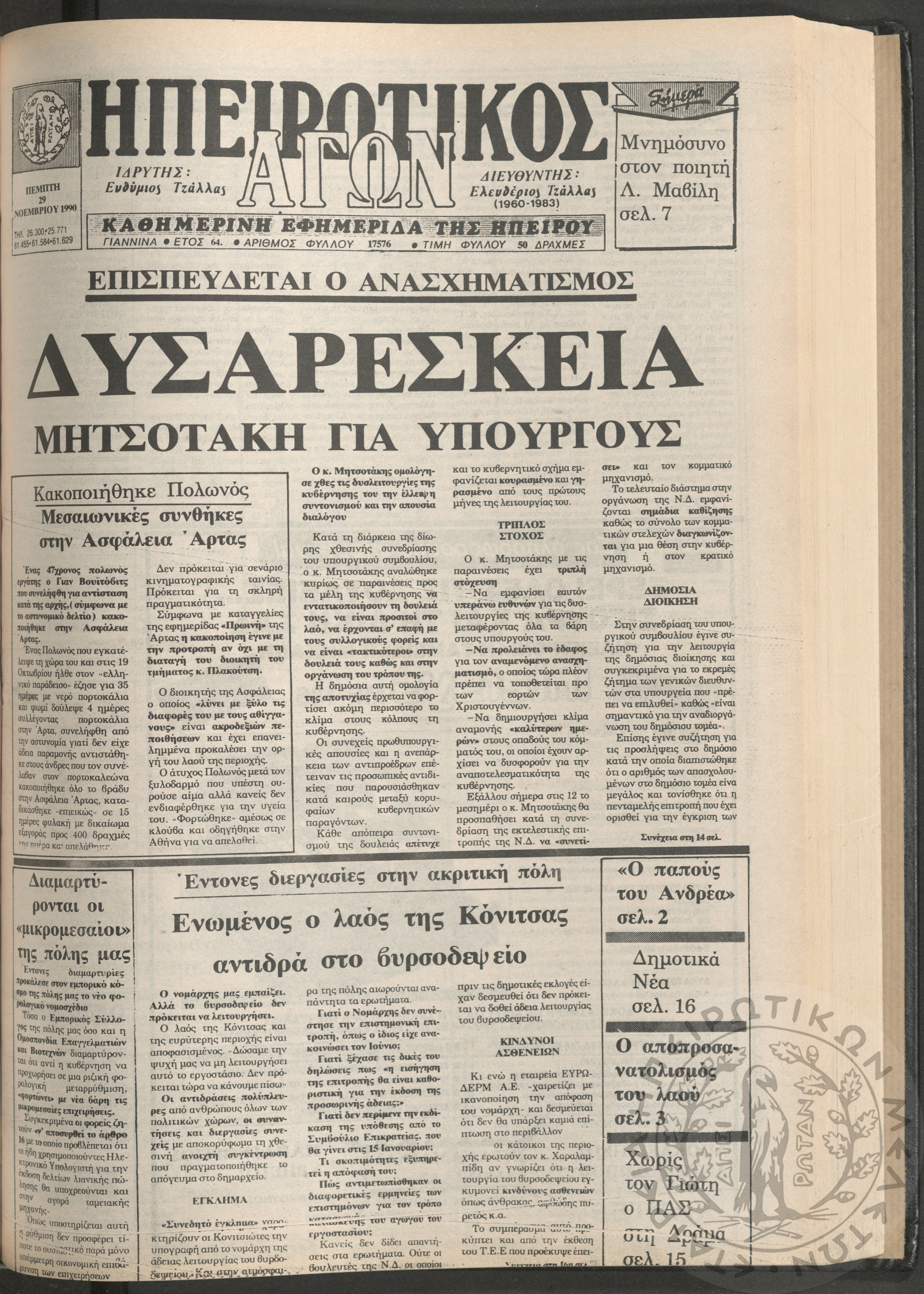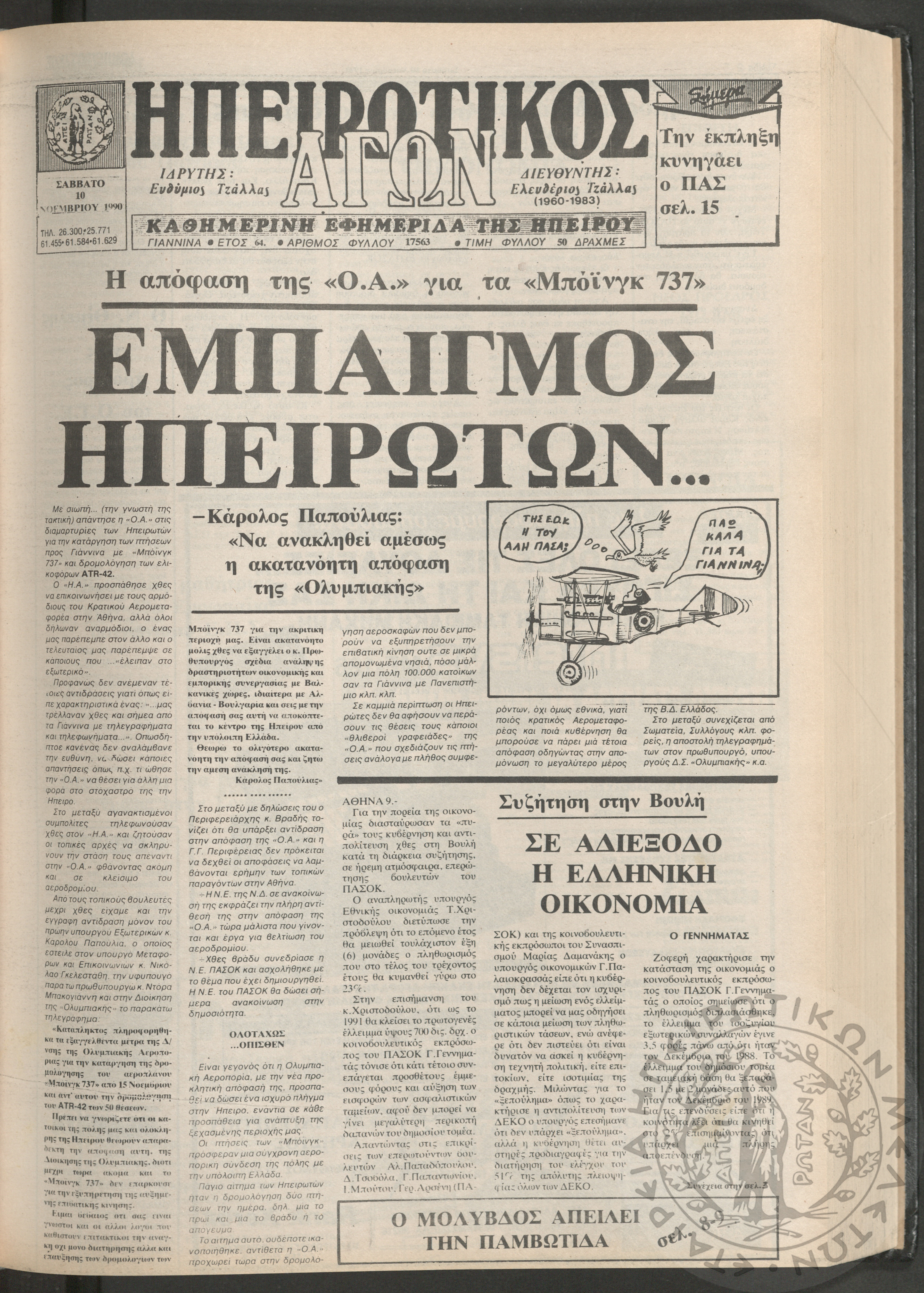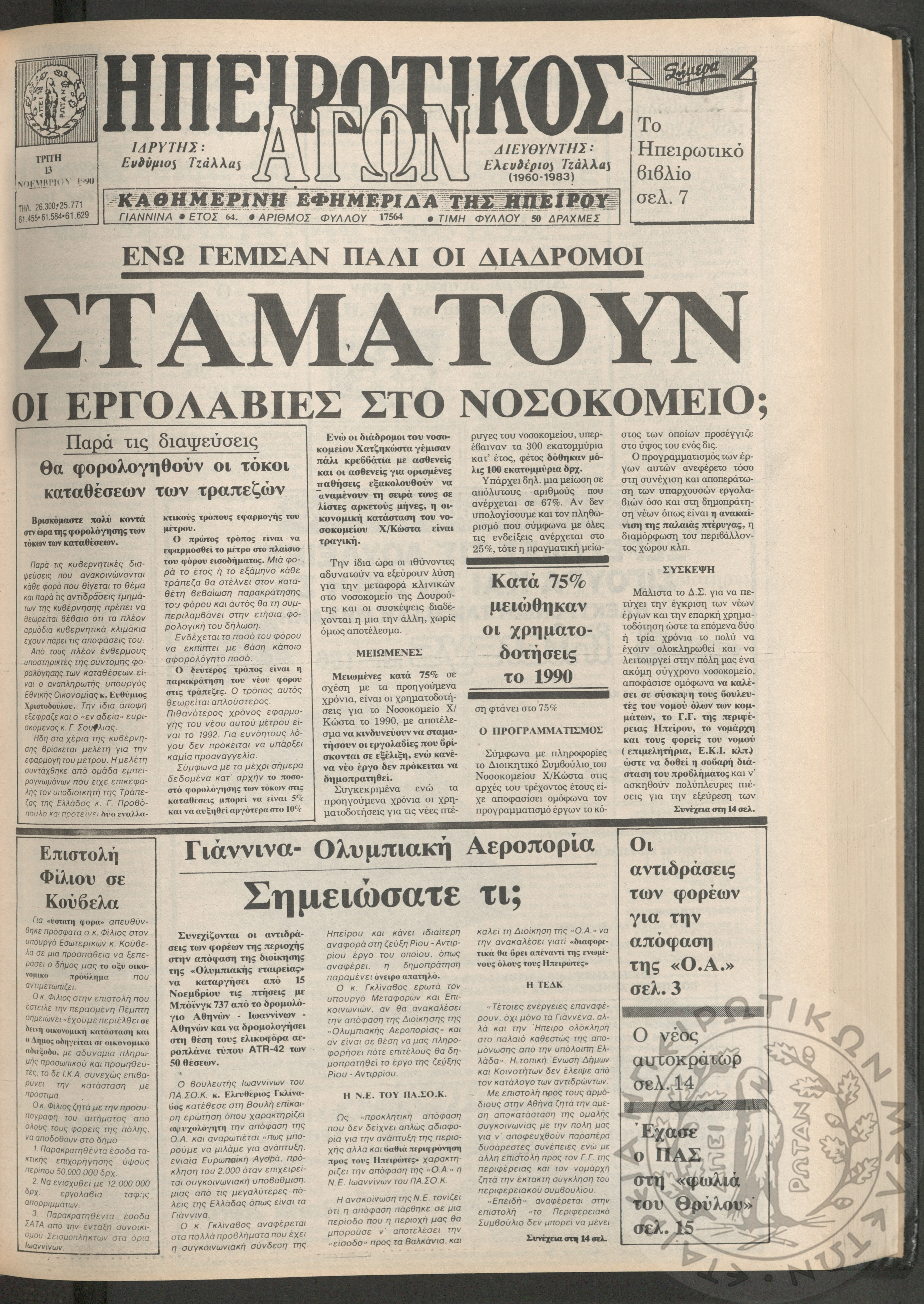 Ηπειρωτικός Αγών: η μεγαλυτέρα Ηπειρωτική εφημερίς εκδιδομένη καθημερινώς εν Ιωαννίνοις, 1979, φ. 14250Έτος 53, φ. 14250...