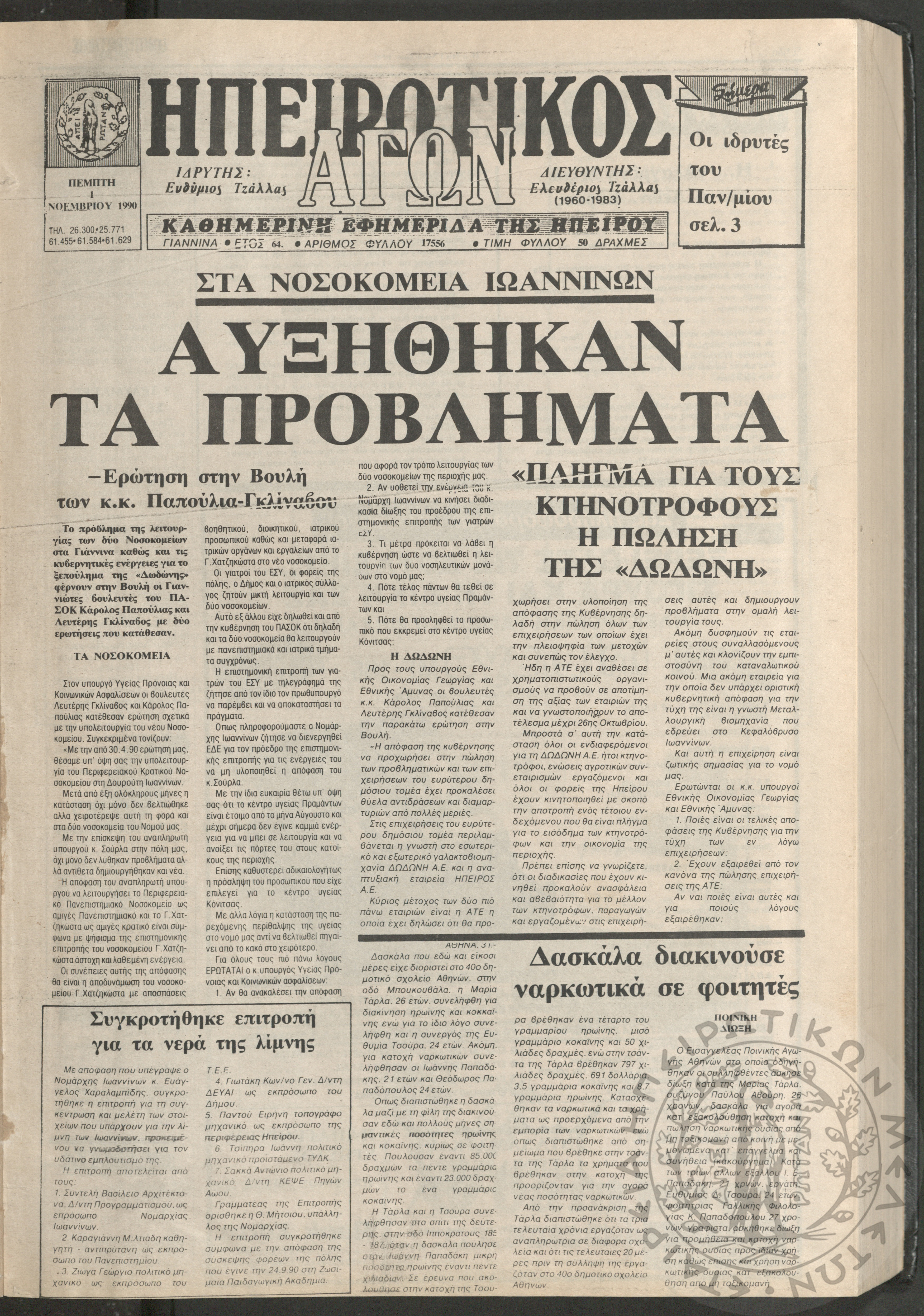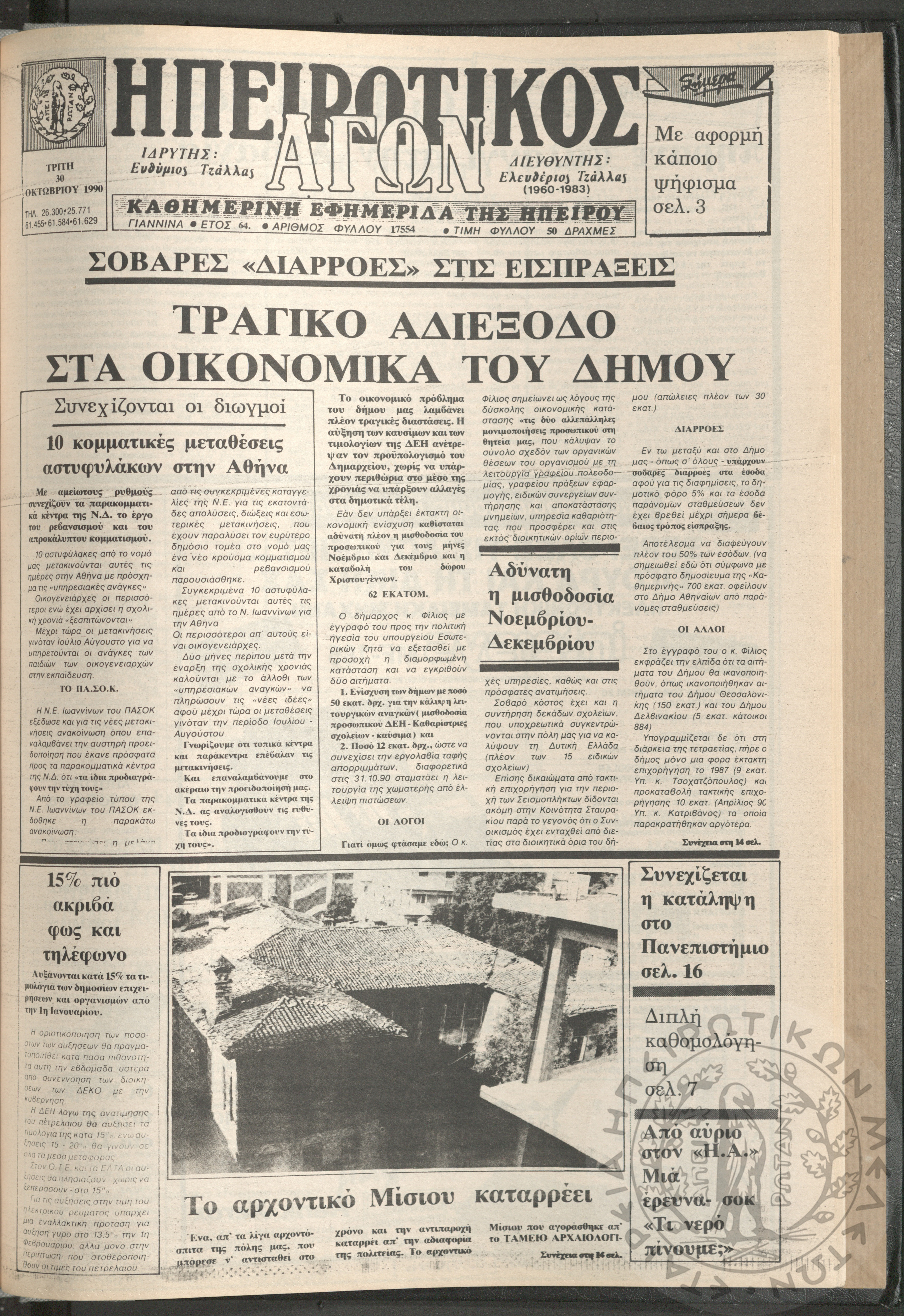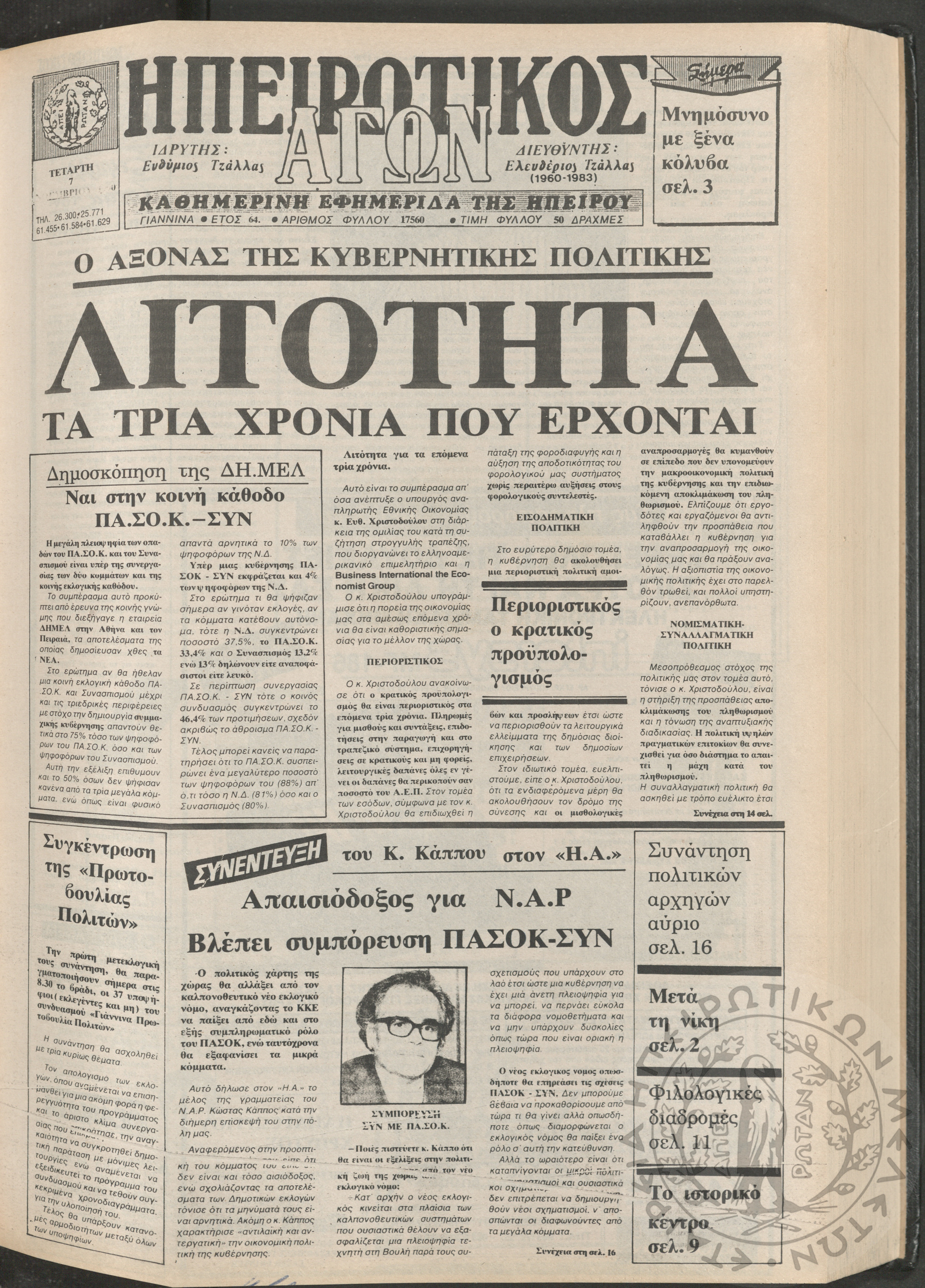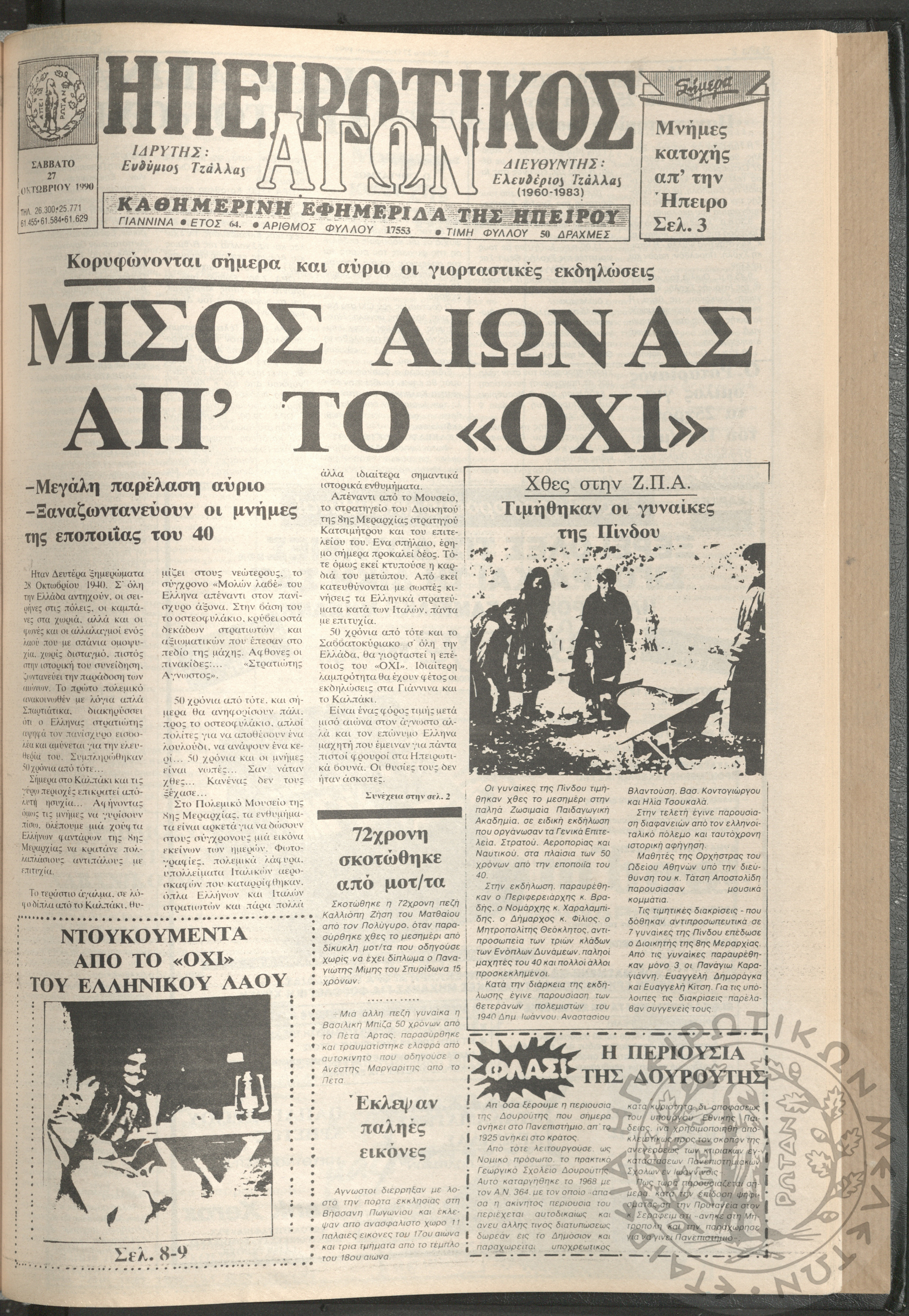 Ηπειρωτικός Αγών: η μεγαλυτέρα Ηπειρωτική εφημερίς εκδιδομένη καθημερινώς εν Ιωαννίνοις, 1979, φ. 14250Έτος 53, φ. 14250...