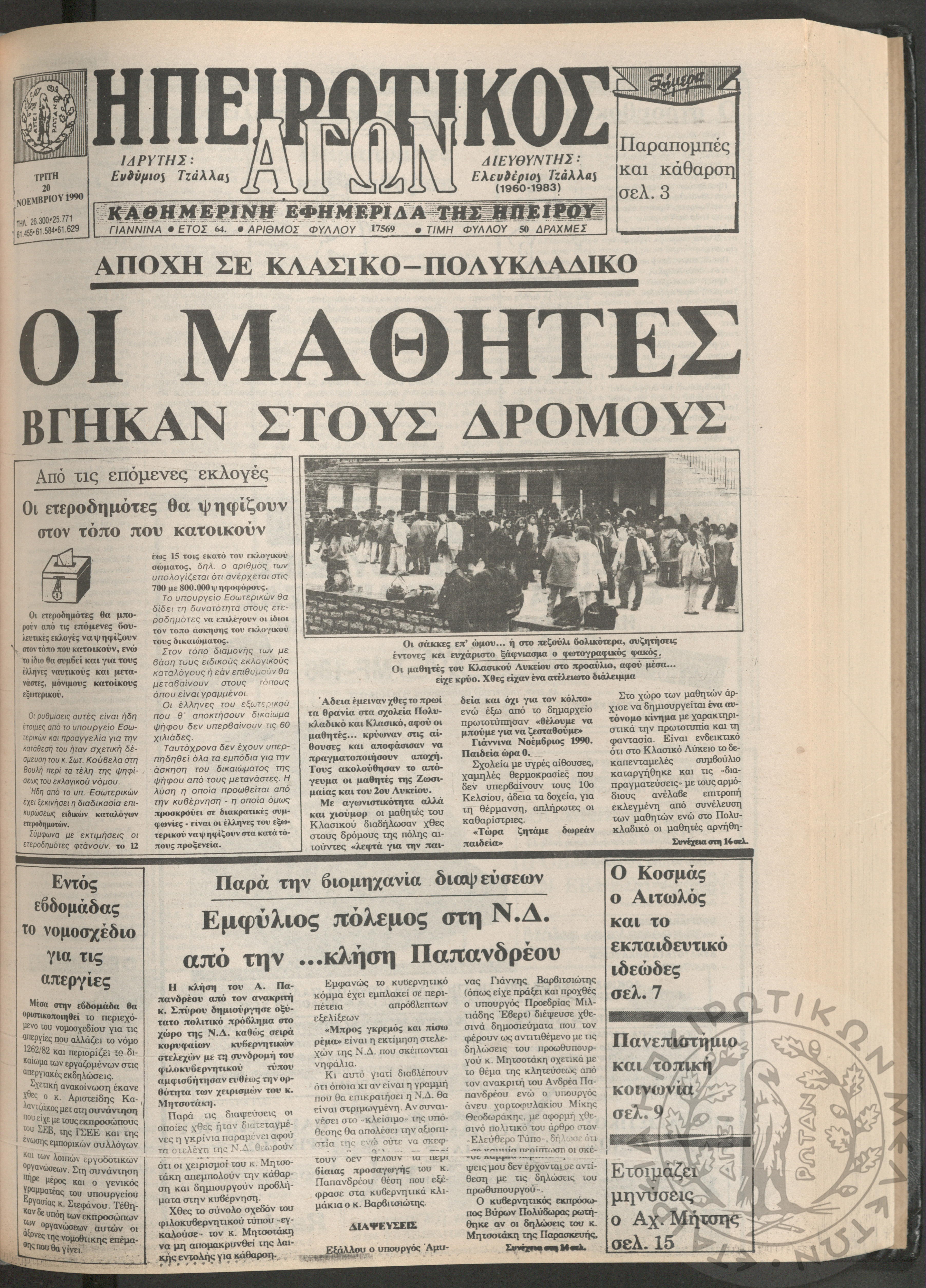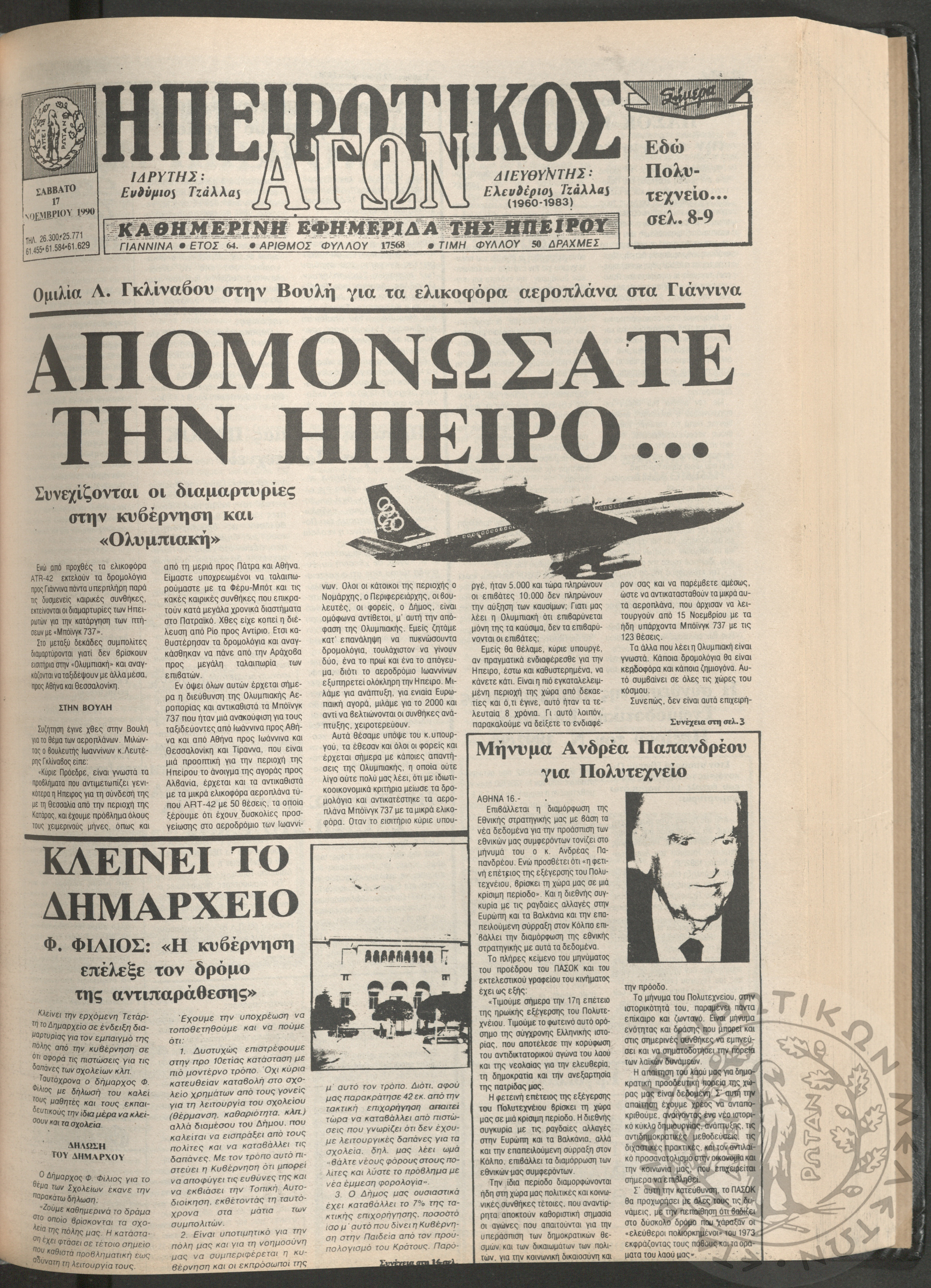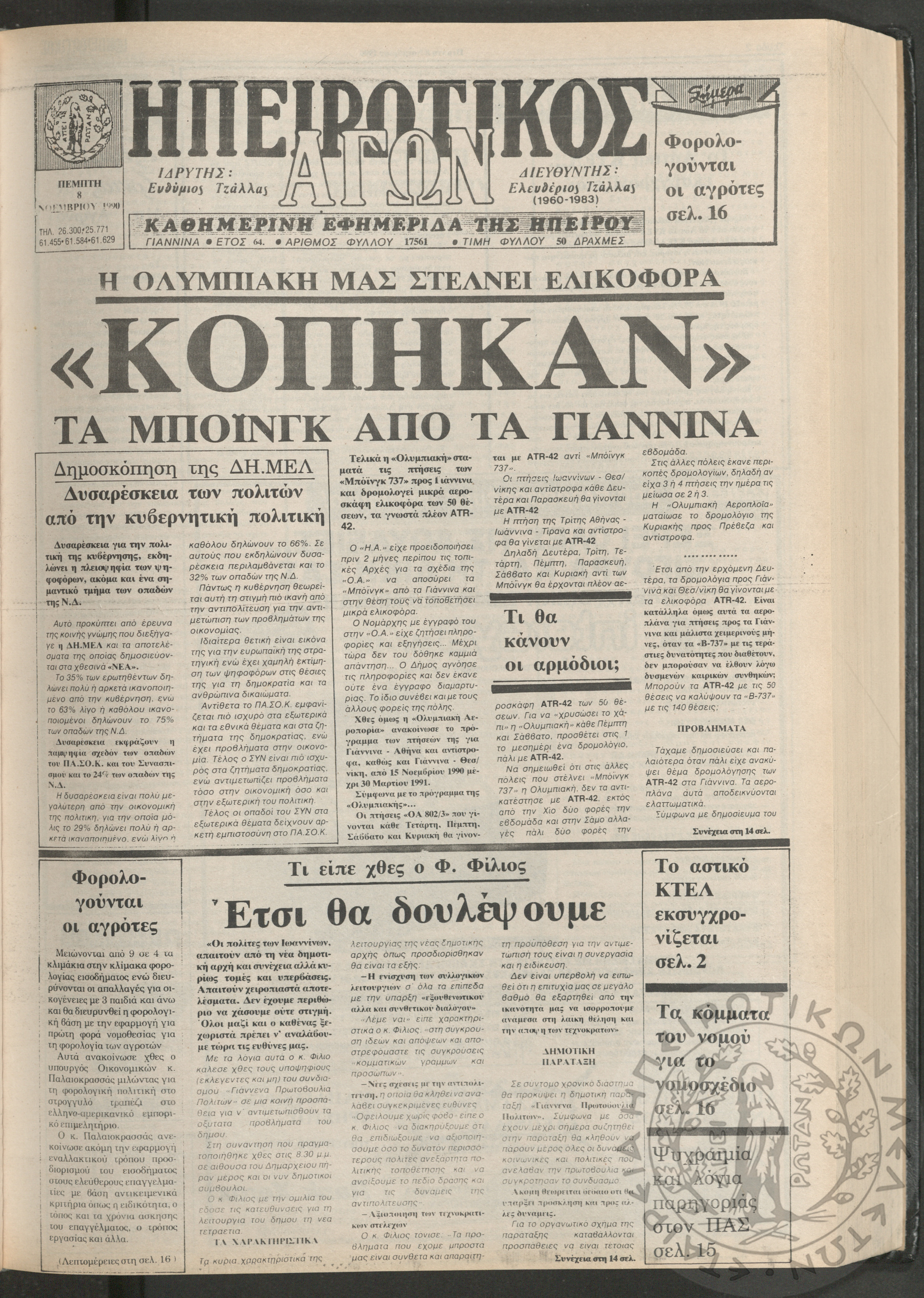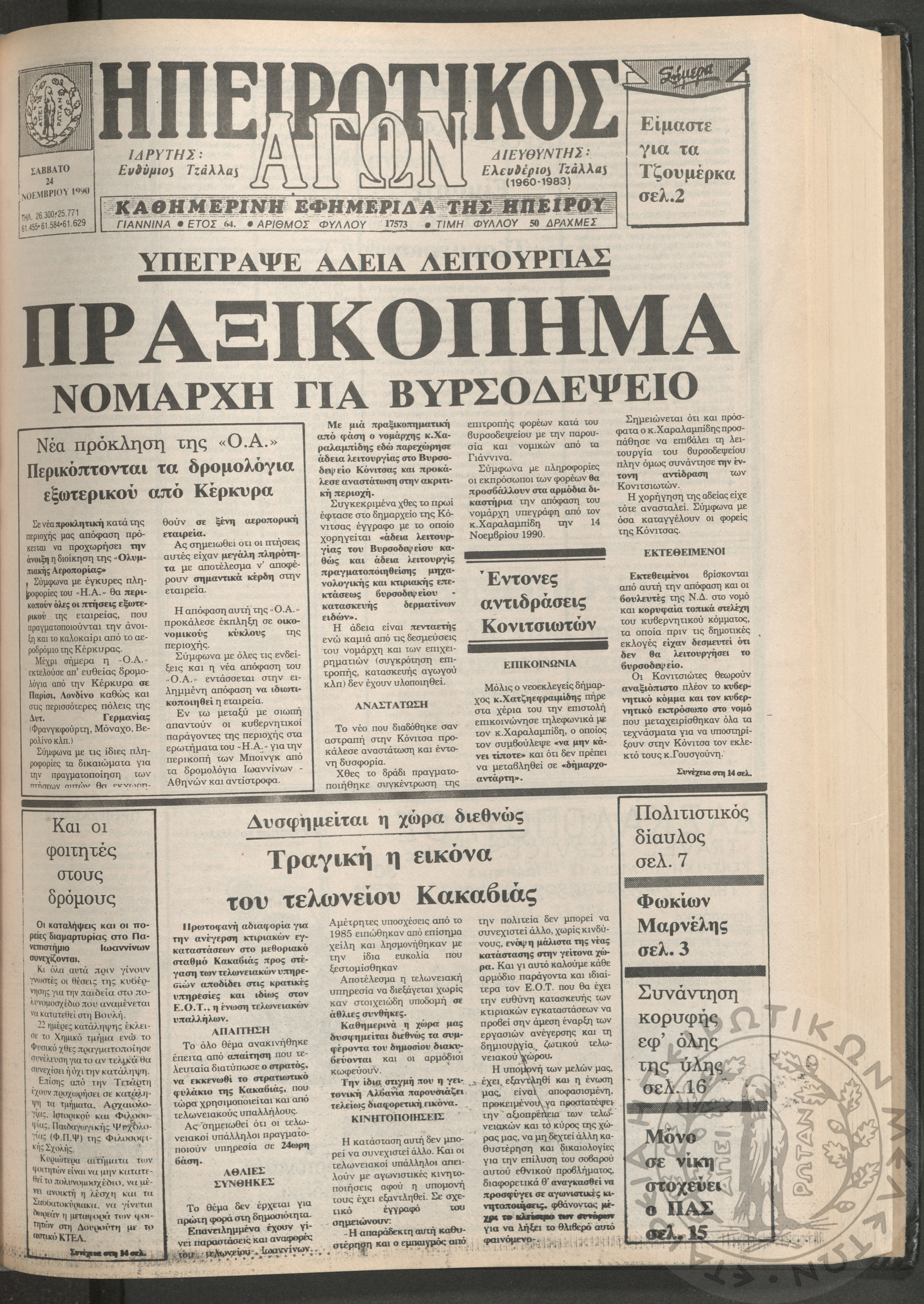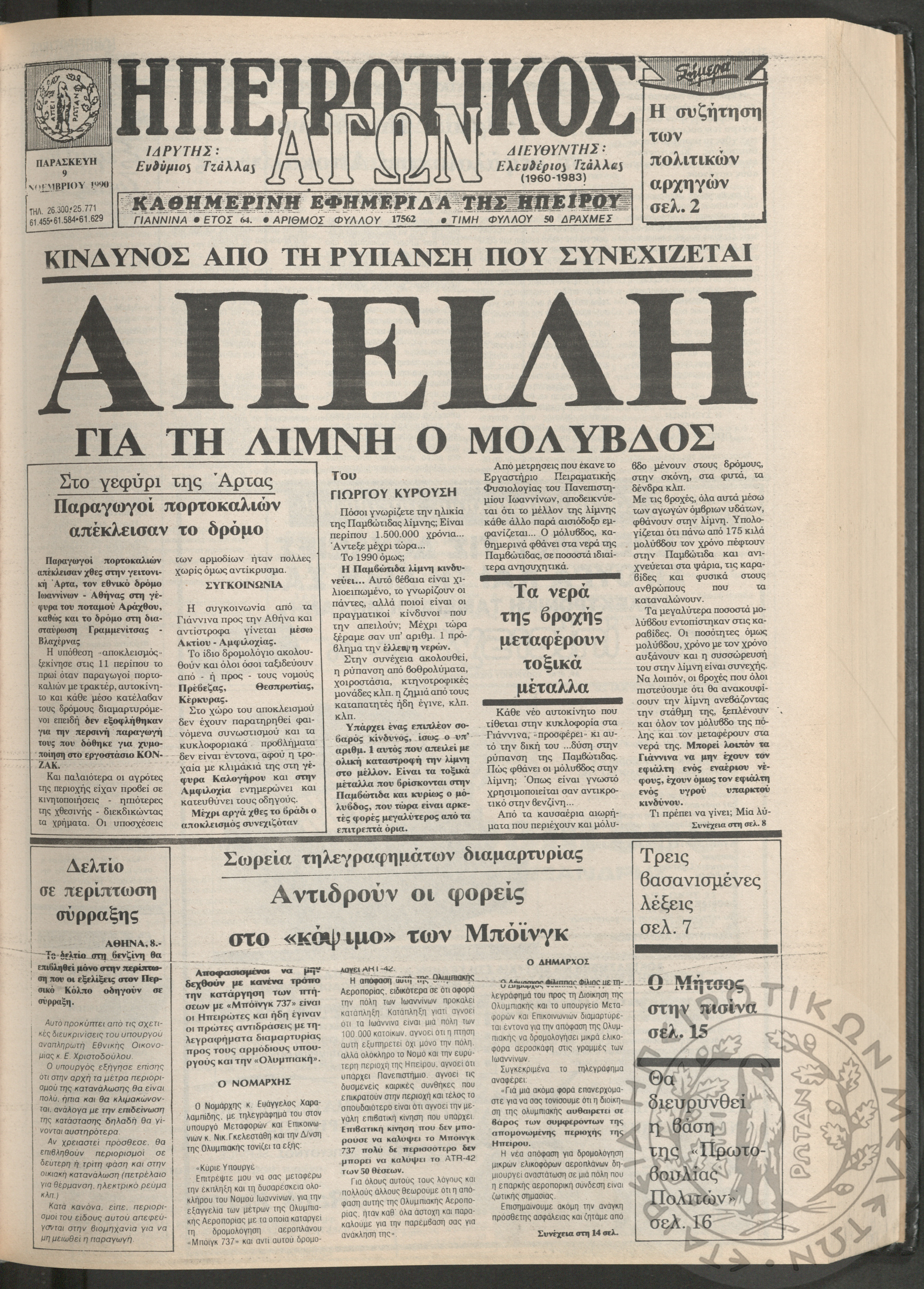 Ηπειρωτικός Αγών: η μεγαλυτέρα Ηπειρωτική εφημερίς εκδιδομένη καθημερινώς εν Ιωαννίνοις, 1979, φ. 14250Έτος 53, φ. 14250...