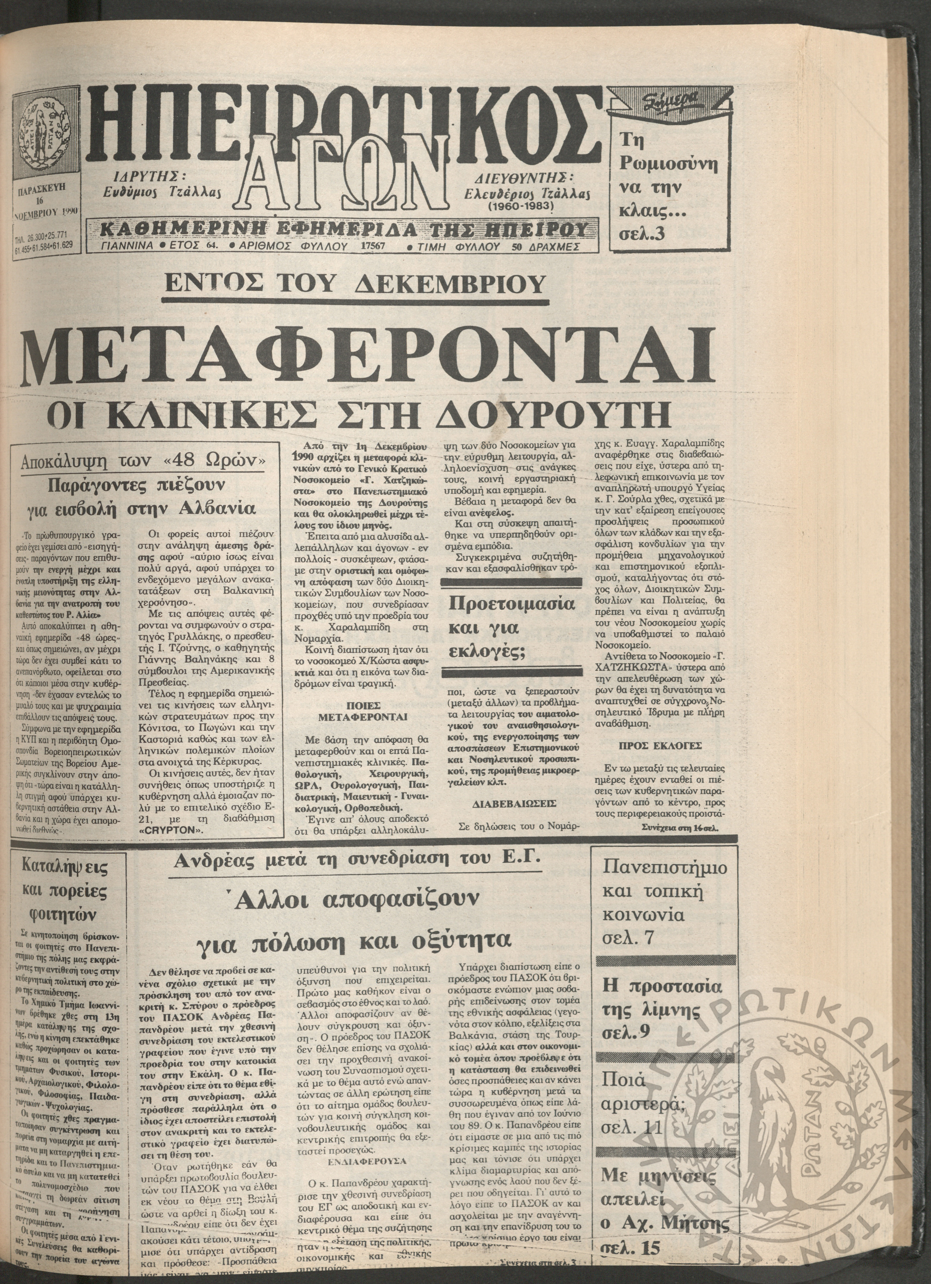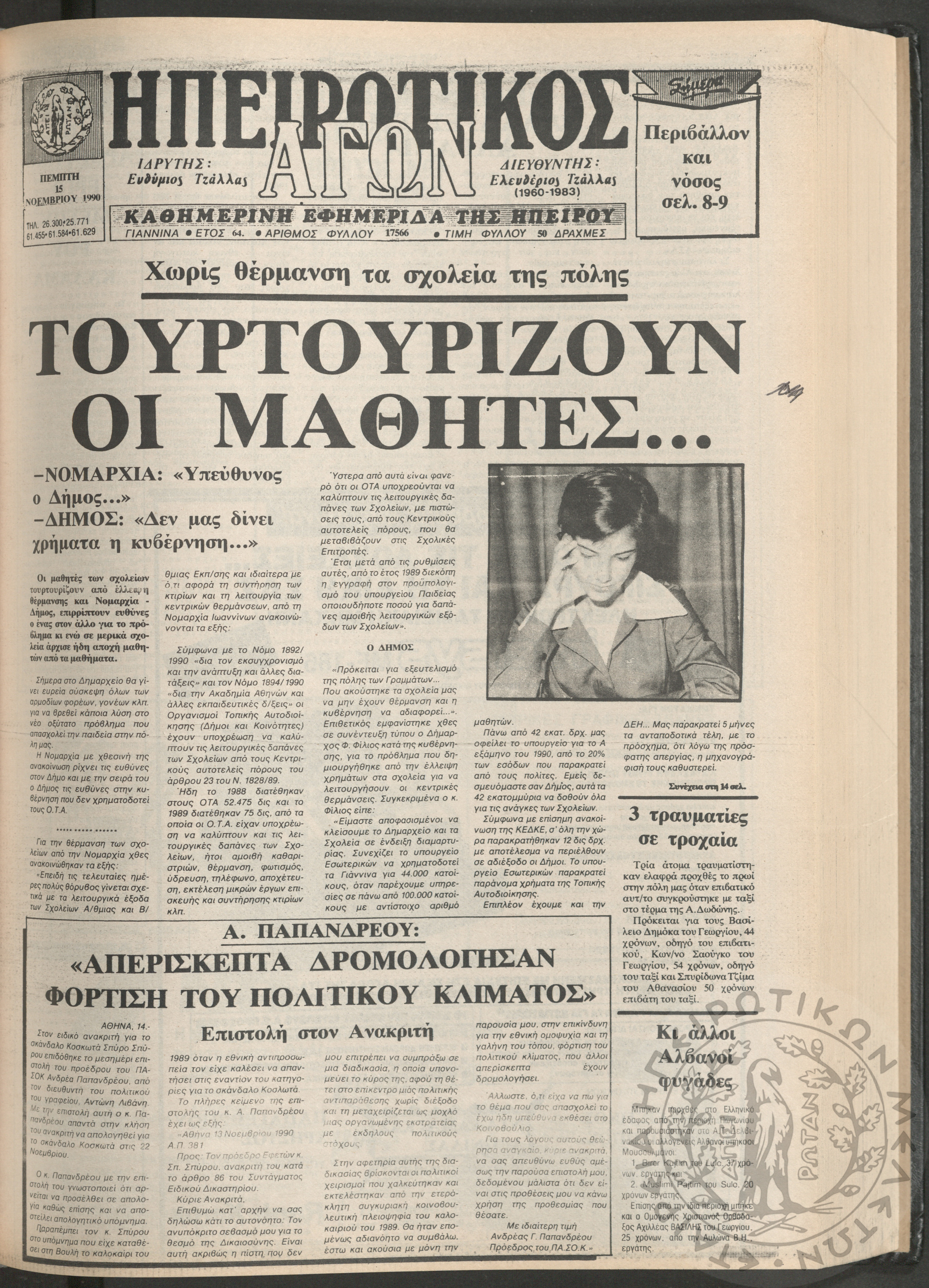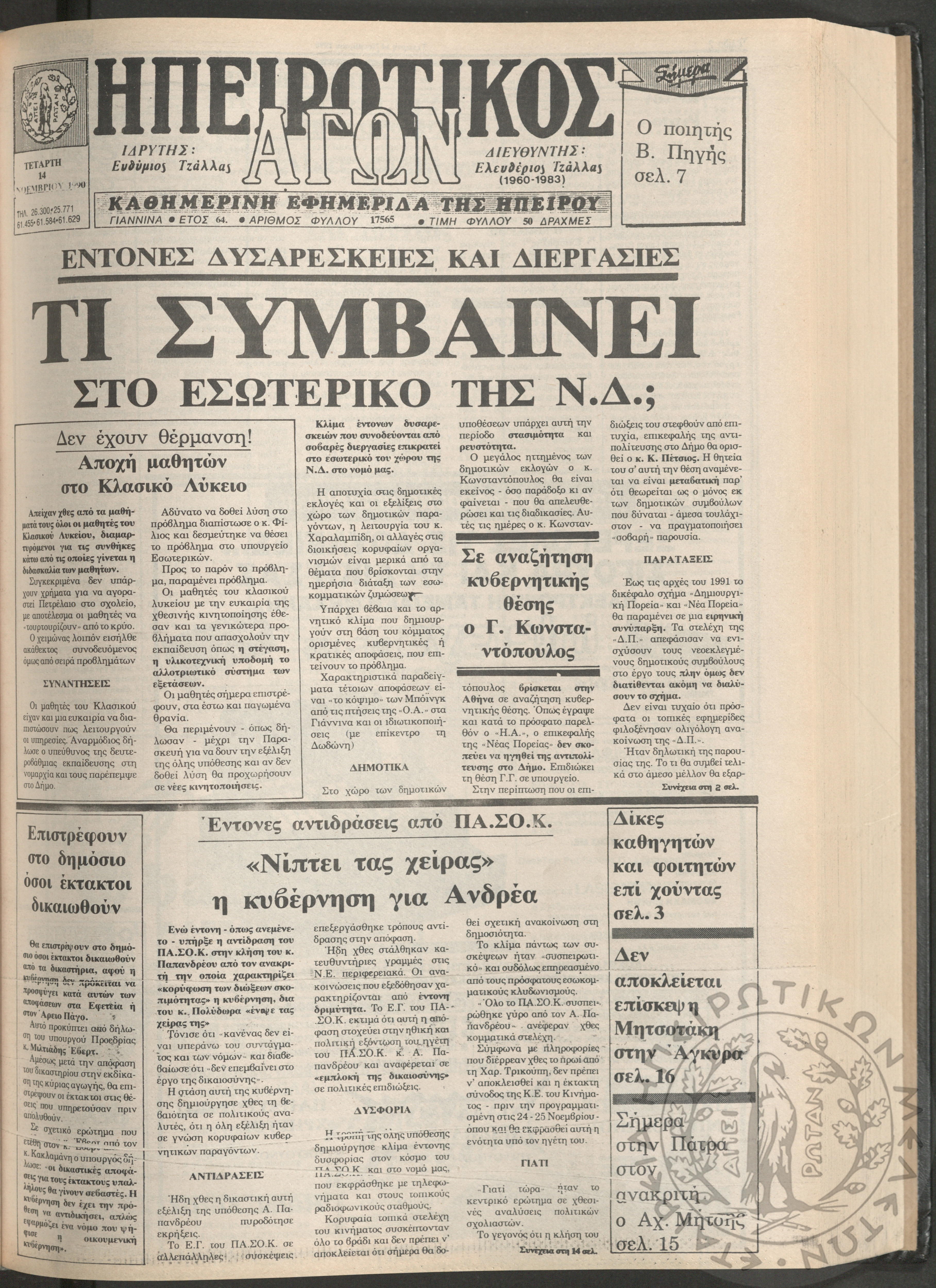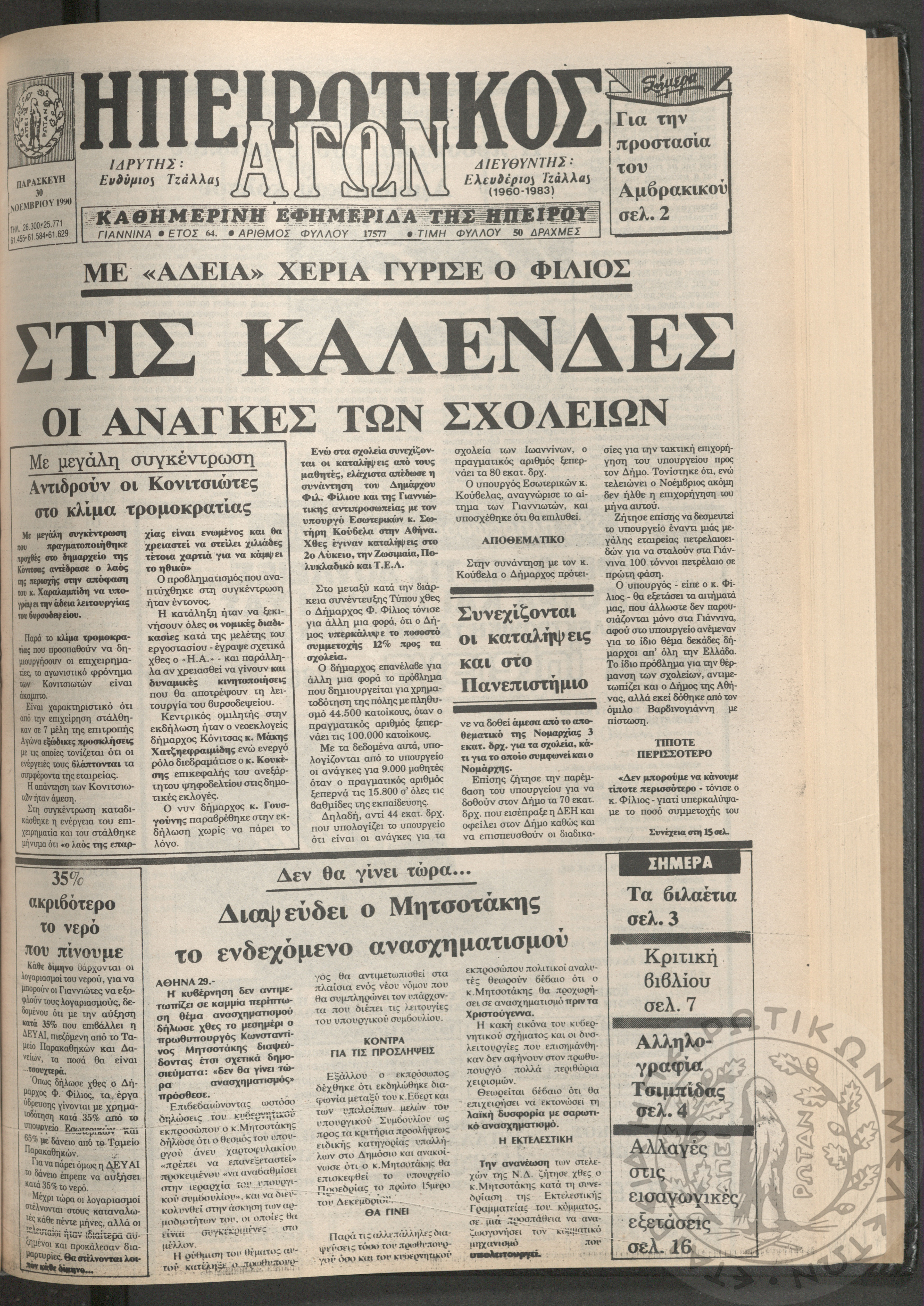 Ηπειρωτικός Αγών: η μεγαλυτέρα Ηπειρωτική εφημερίς εκδιδομένη καθημερινώς εν Ιωαννίνοις, 1979, φ. 14250Έτος 53, φ. 14250...