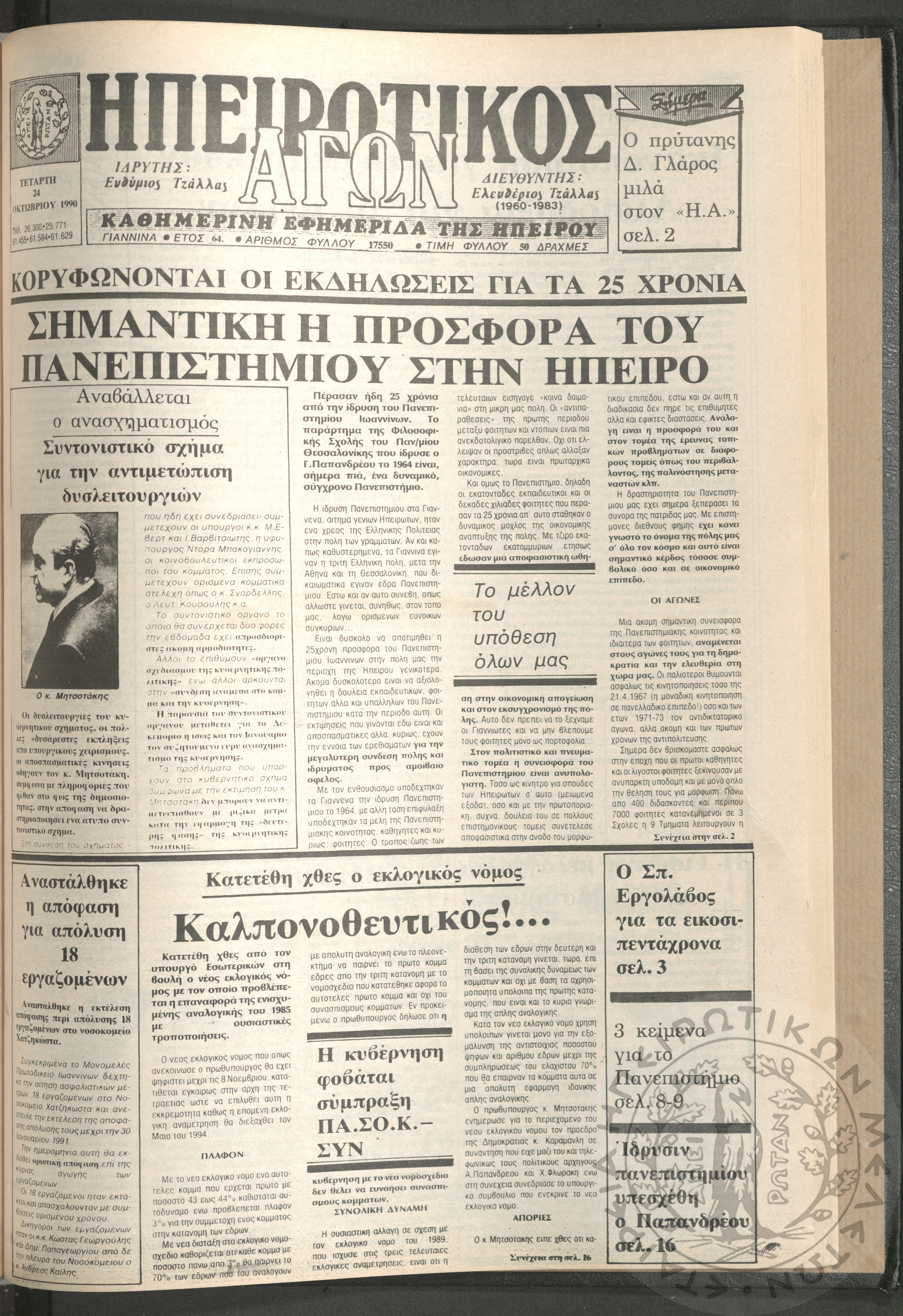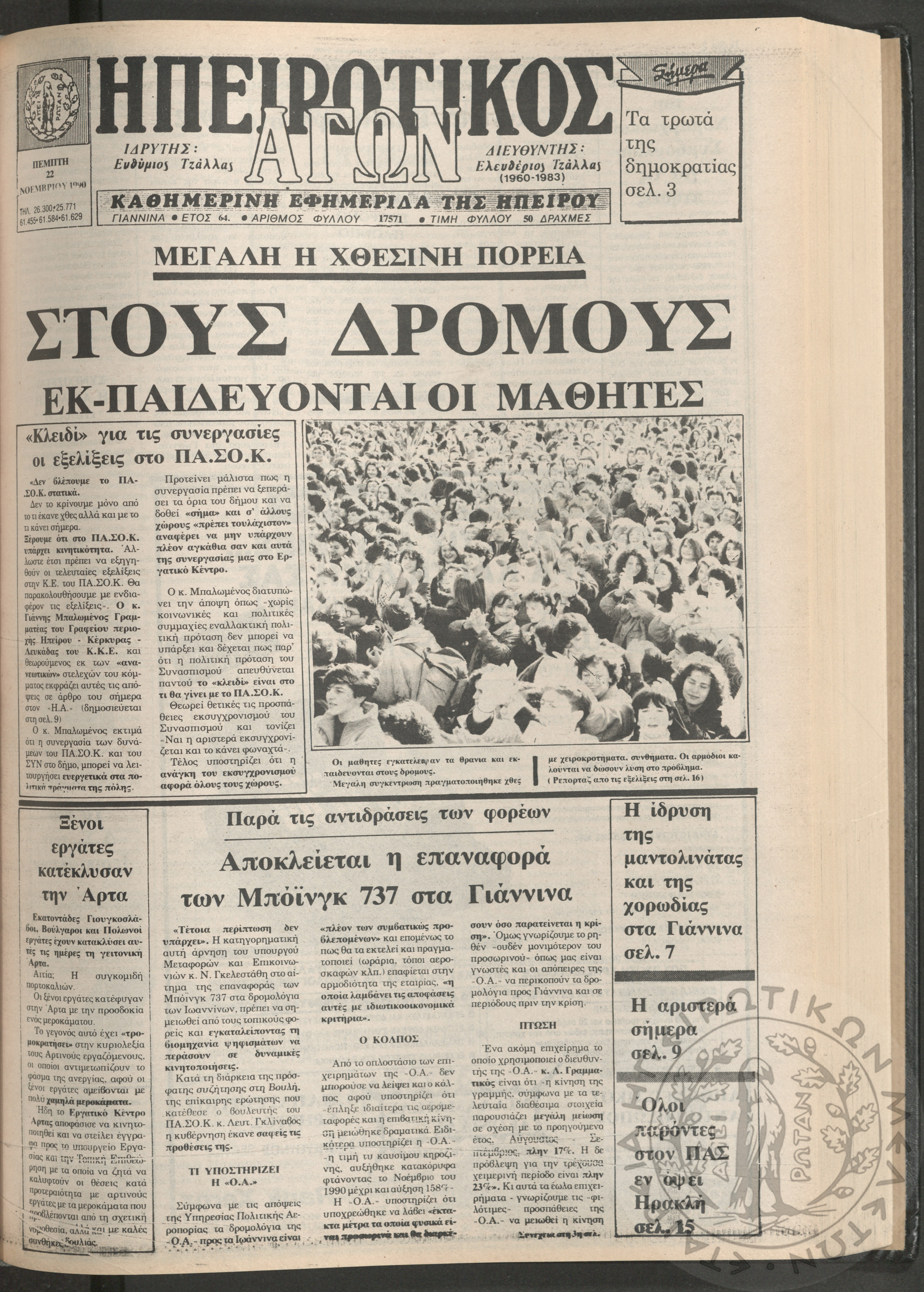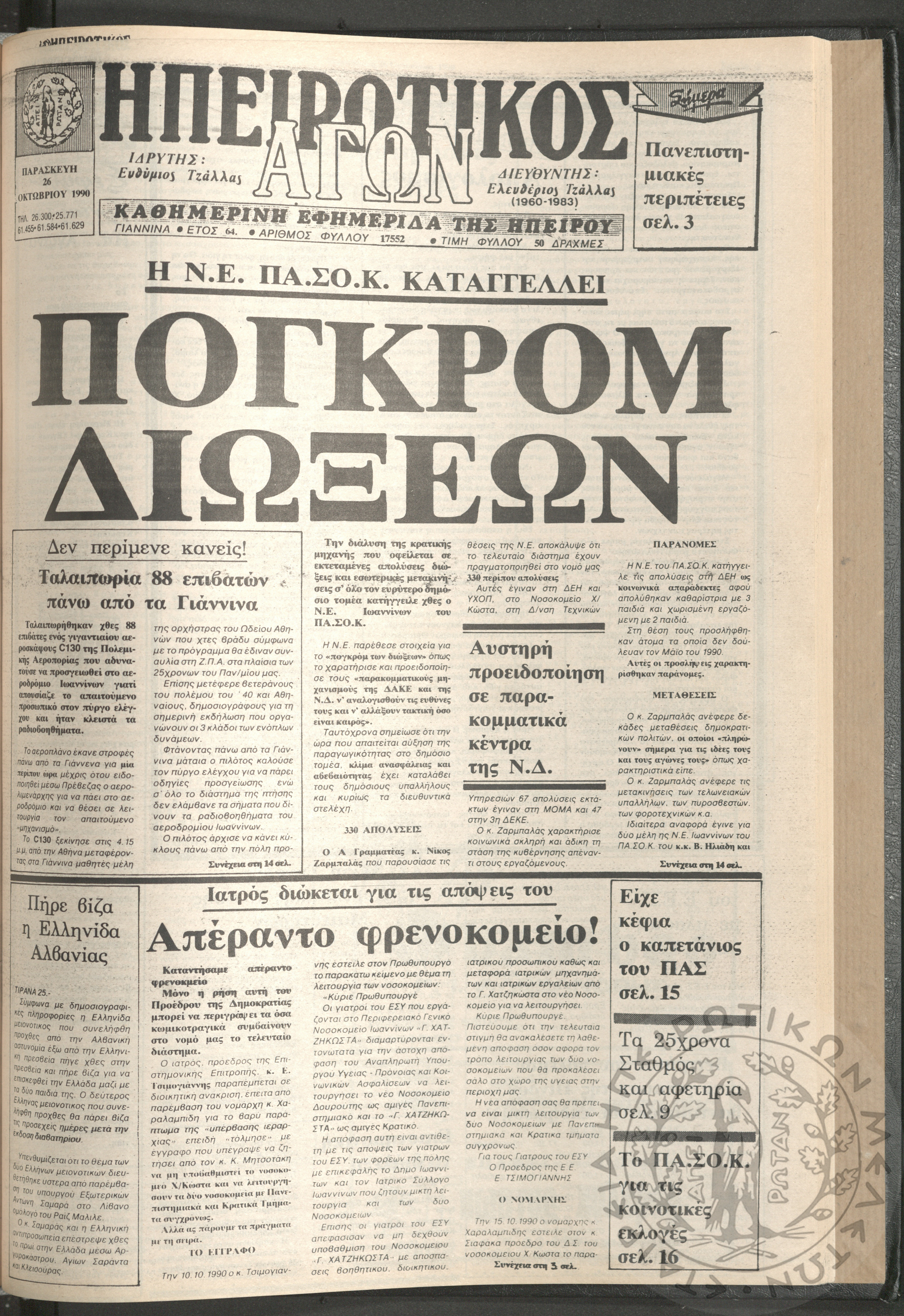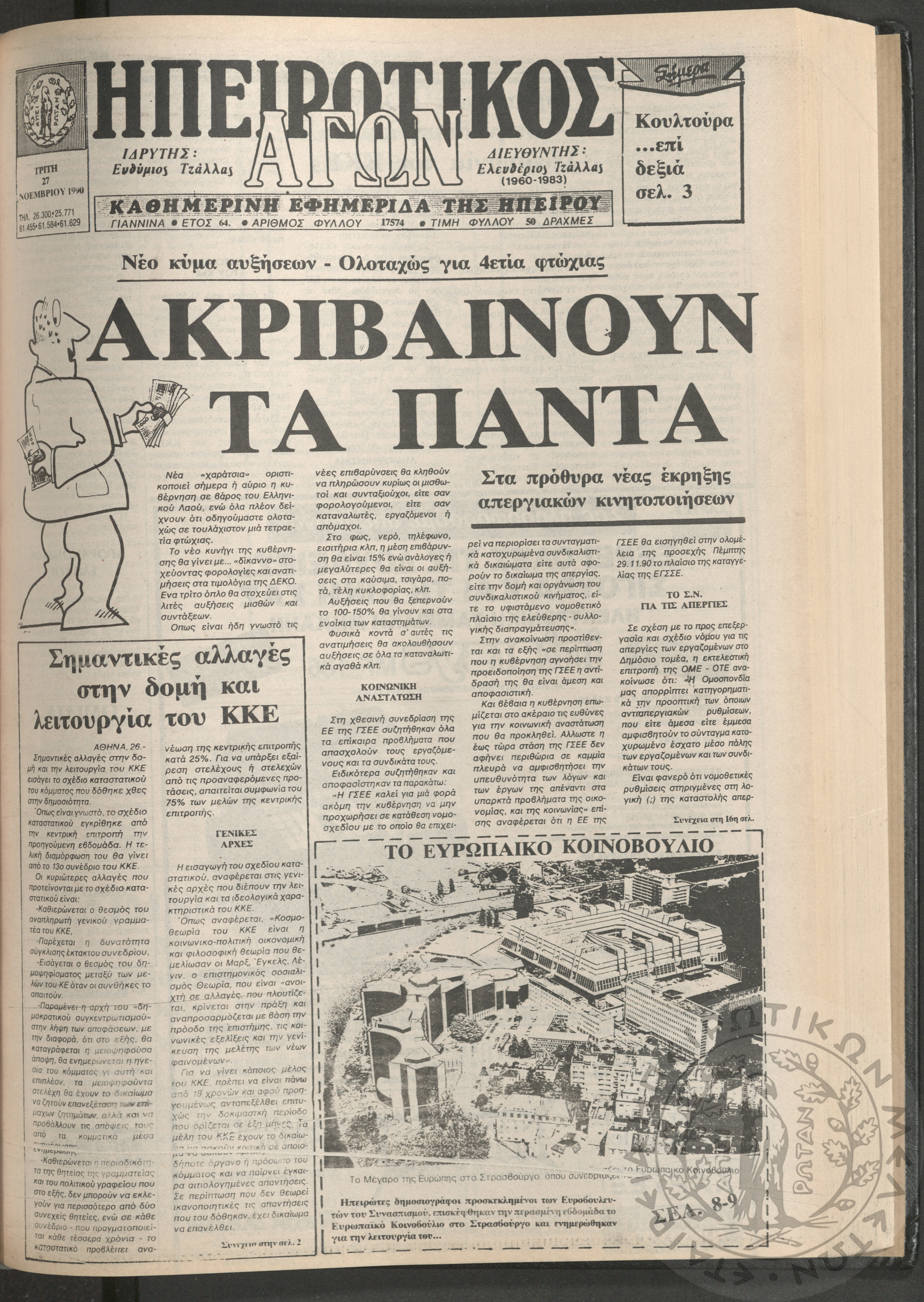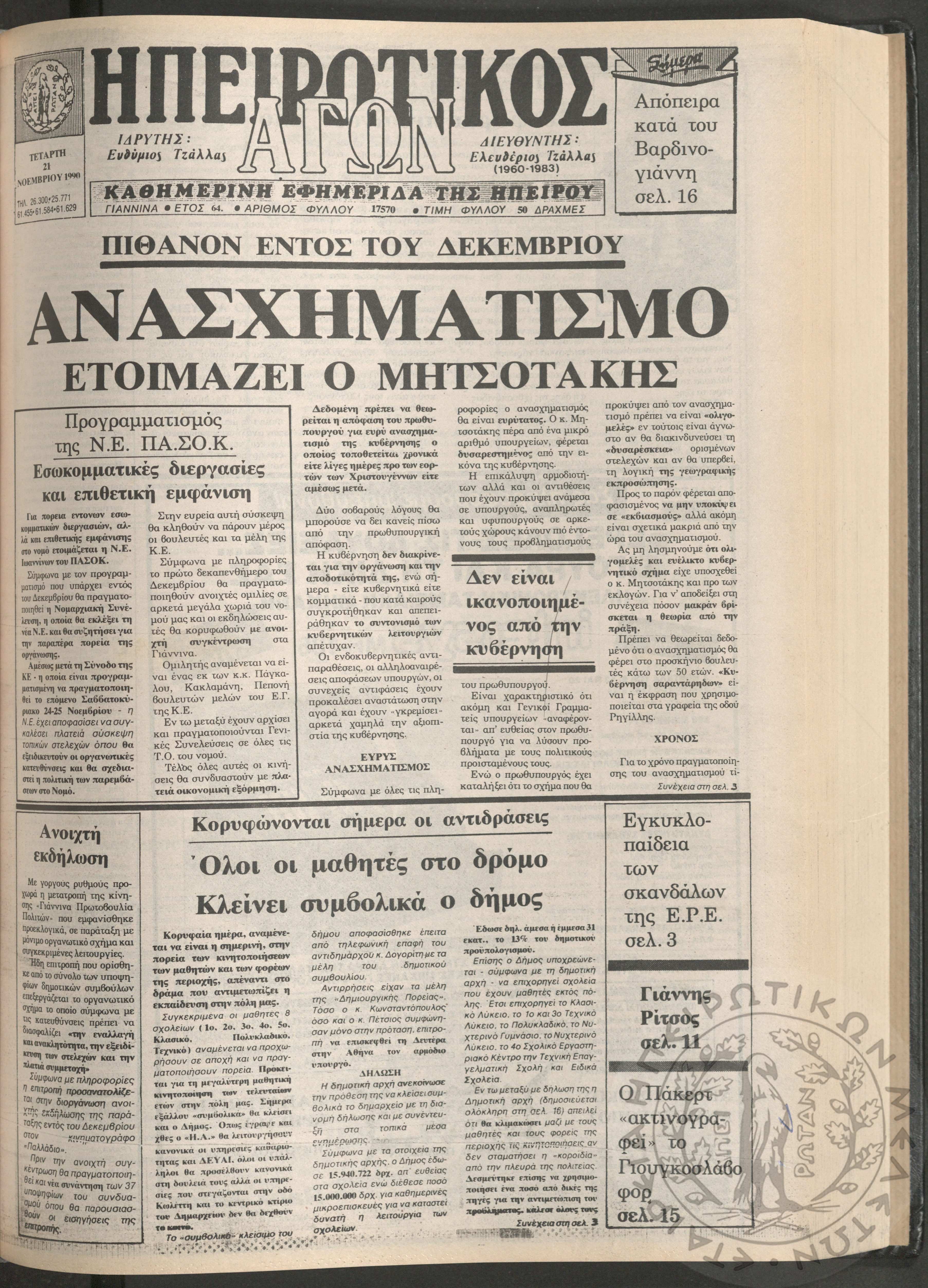 Ηπειρωτικός Αγών: η μεγαλυτέρα Ηπειρωτική εφημερίς εκδιδομένη καθημερινώς εν Ιωαννίνοις, 1979, φ. 14250Έτος 53, φ. 14250...