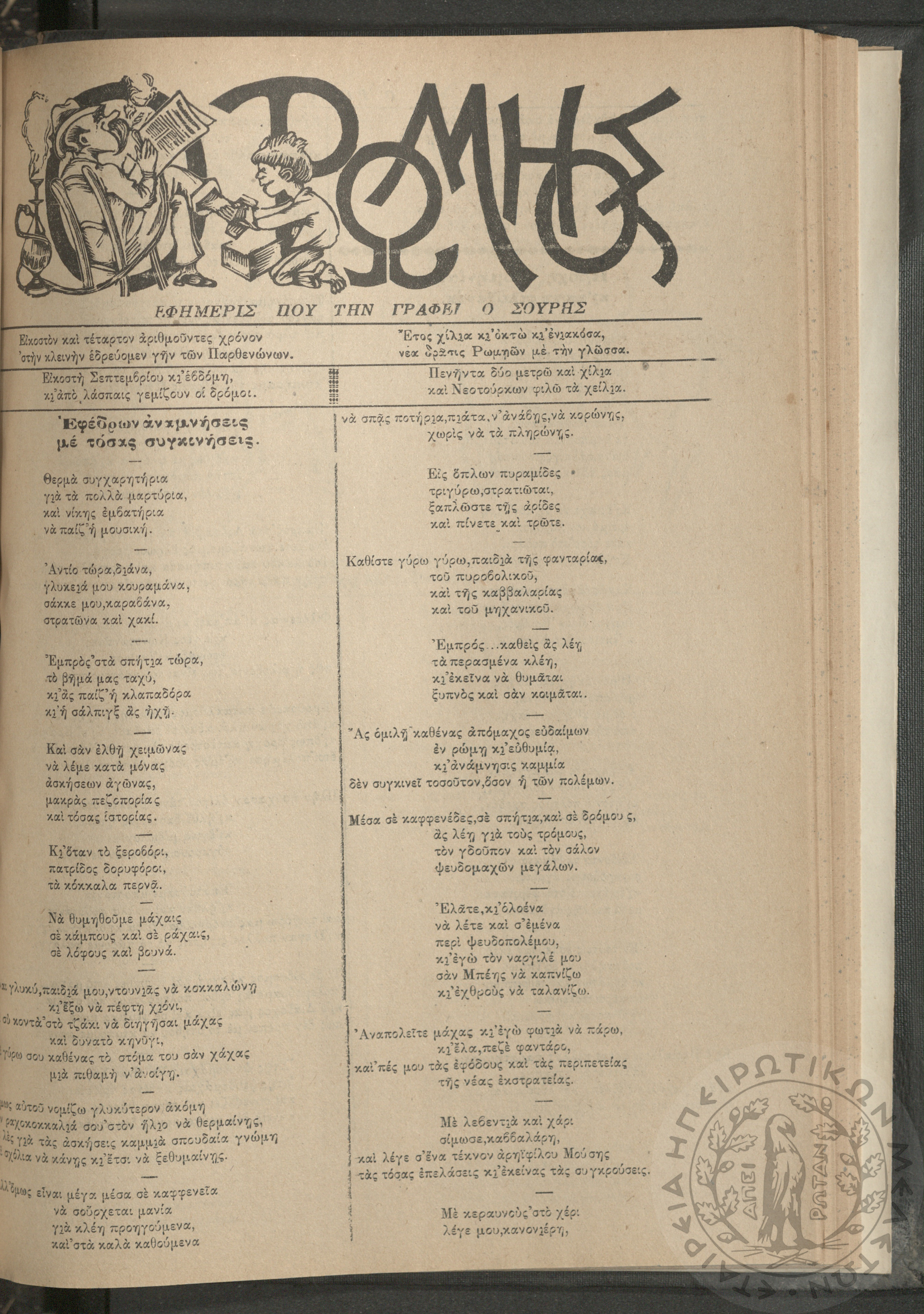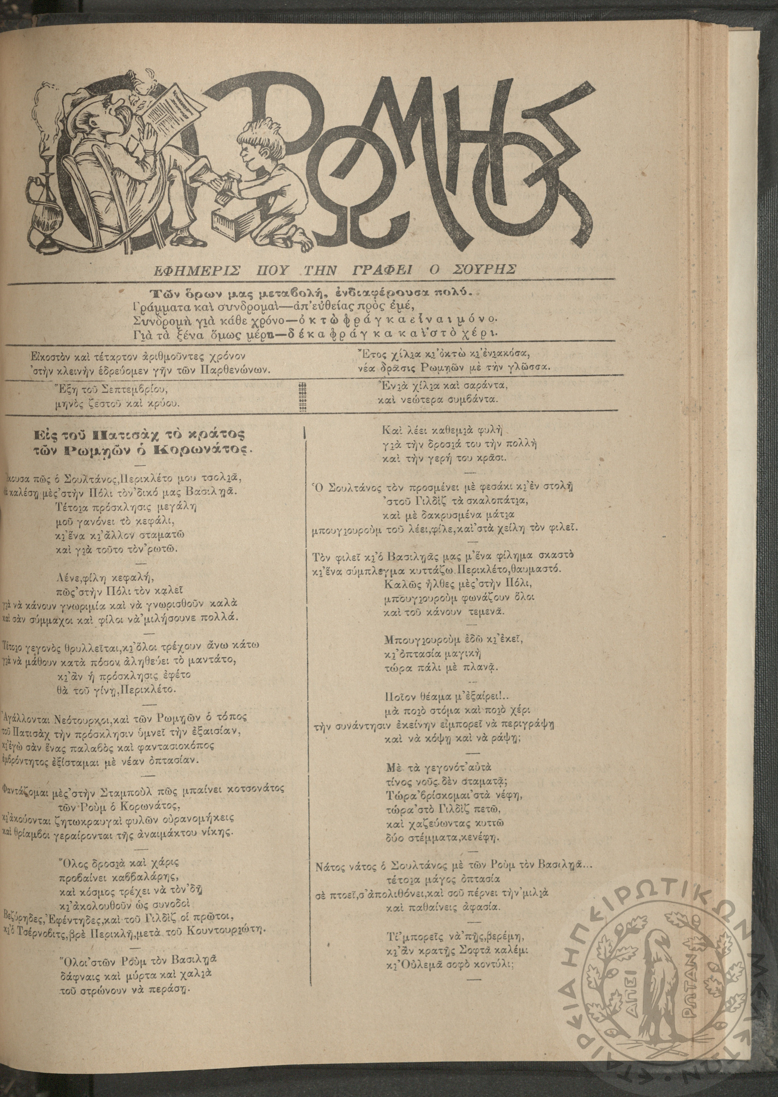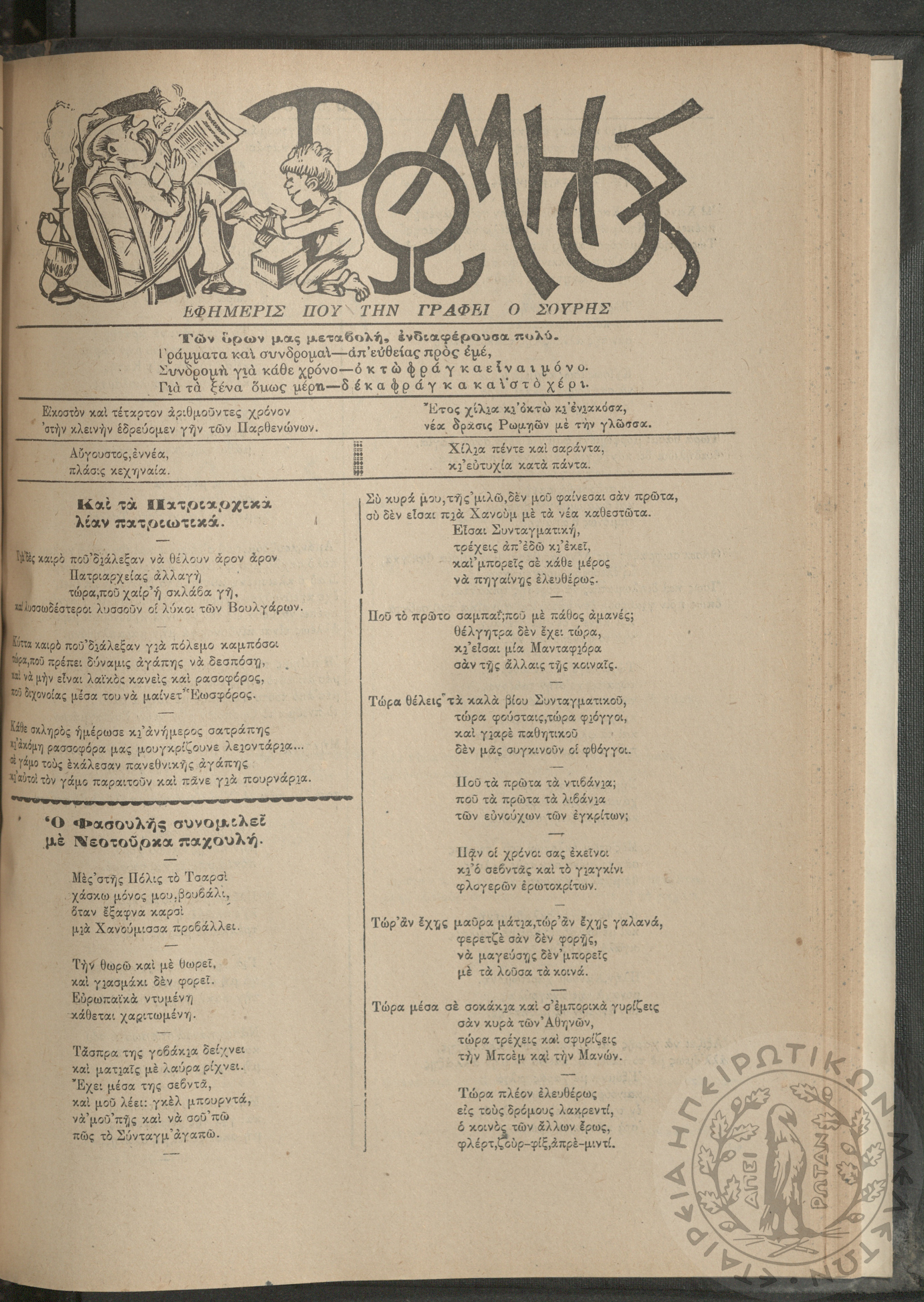 Ο Ρωμηός: Εφημερίς που την γράφει ο Σουρής, 1908, φ. 1051