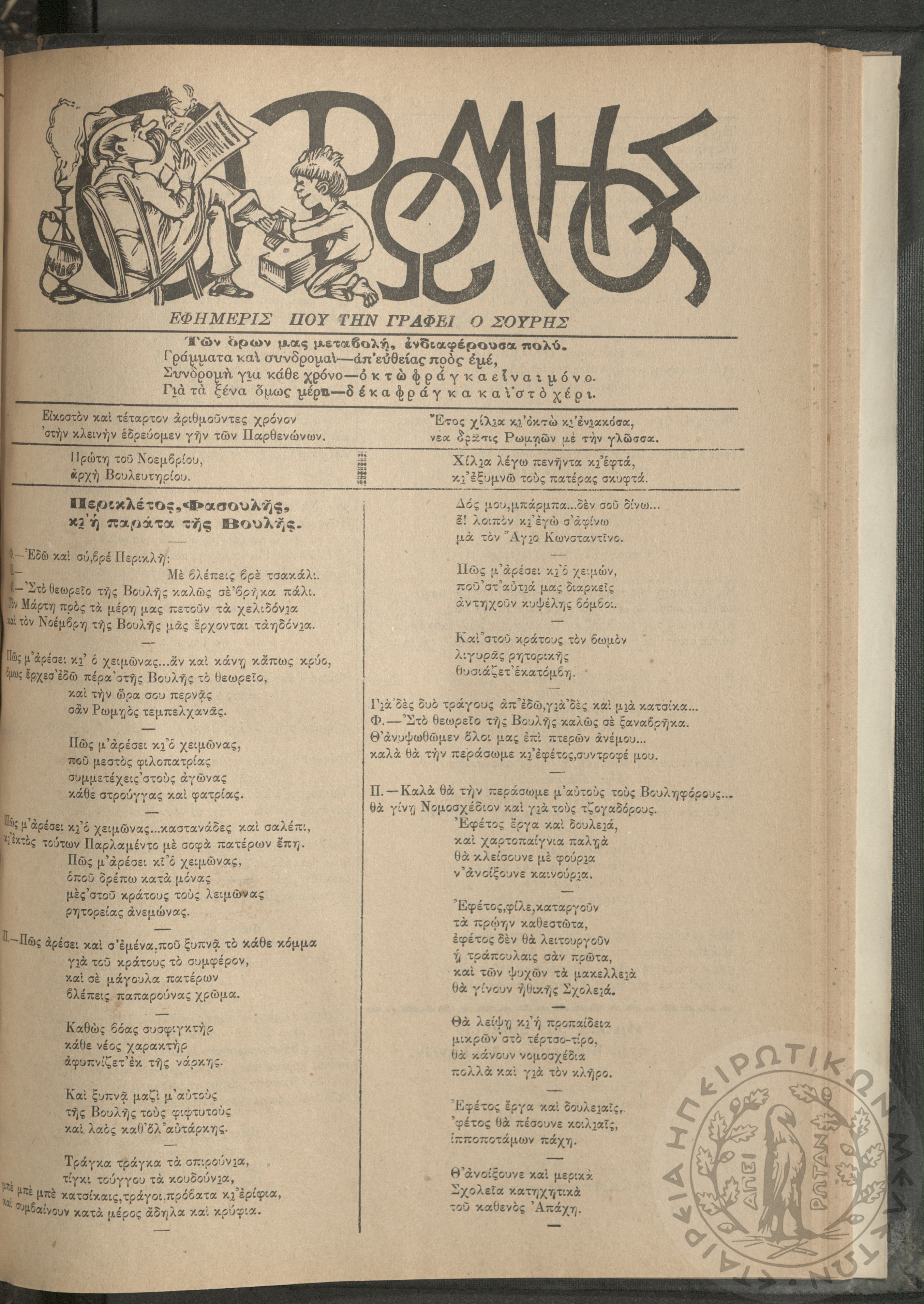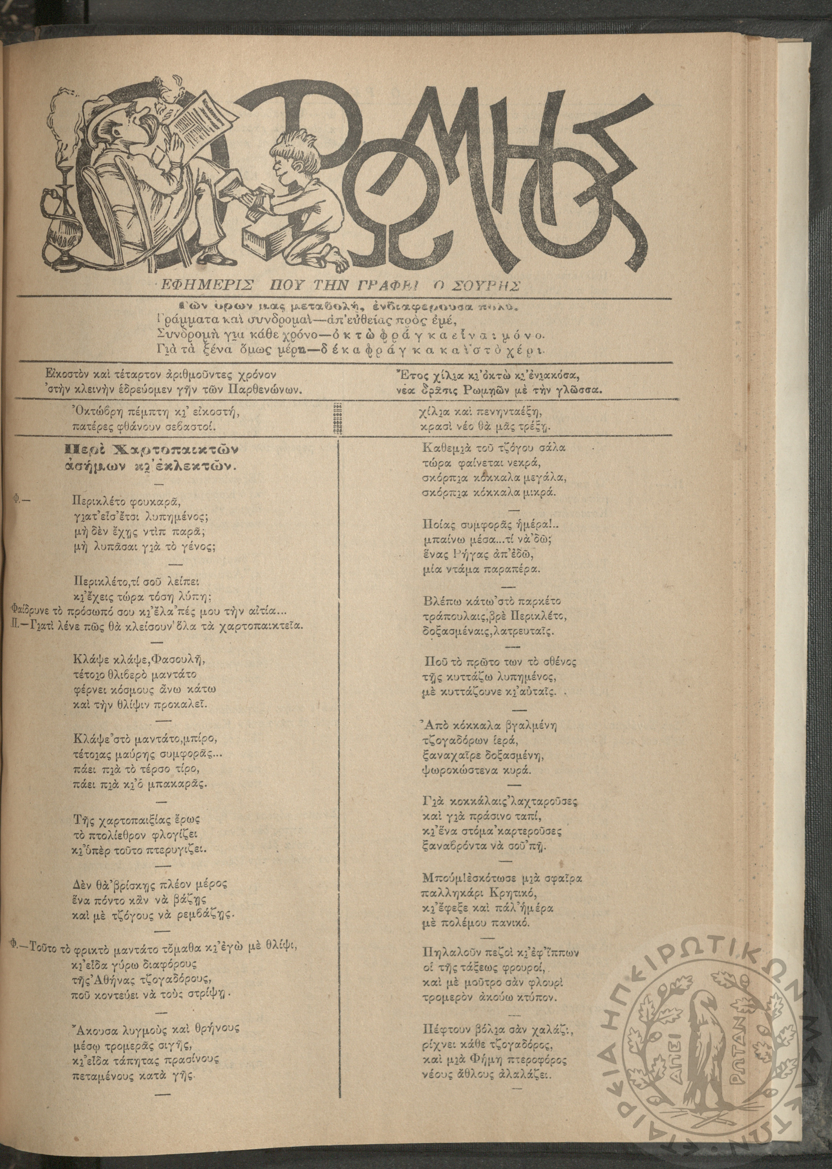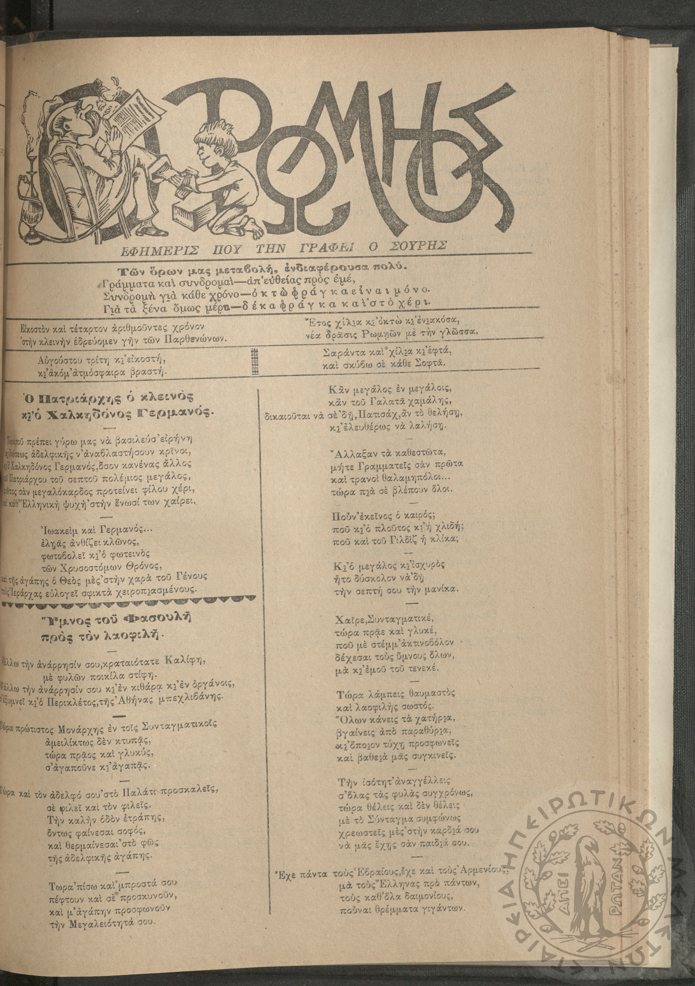 Ο Ρωμηός: Εφημερίς που την γράφει ο Σουρής, 1908, φ. 1051