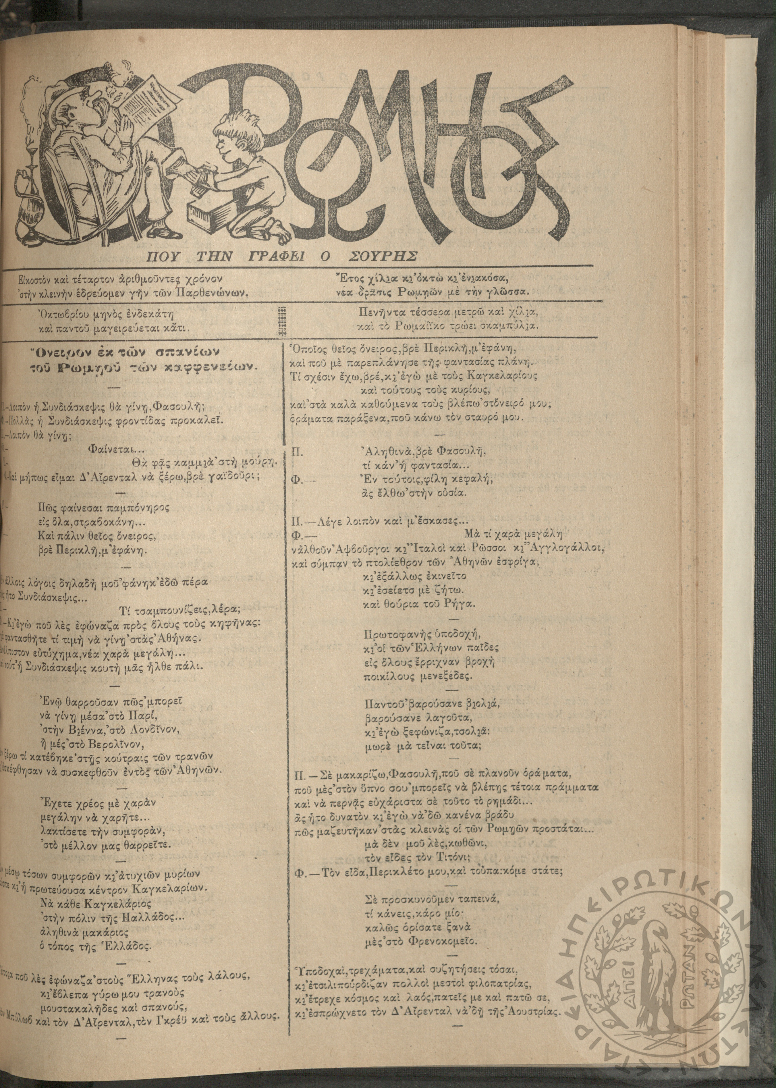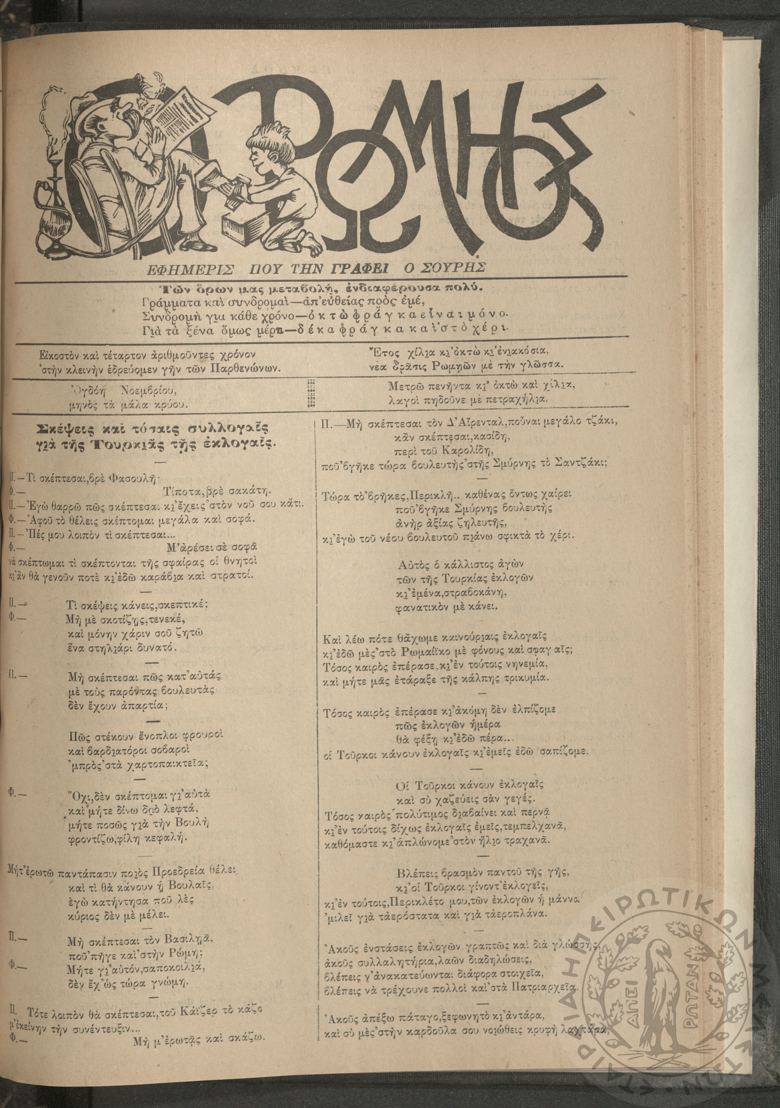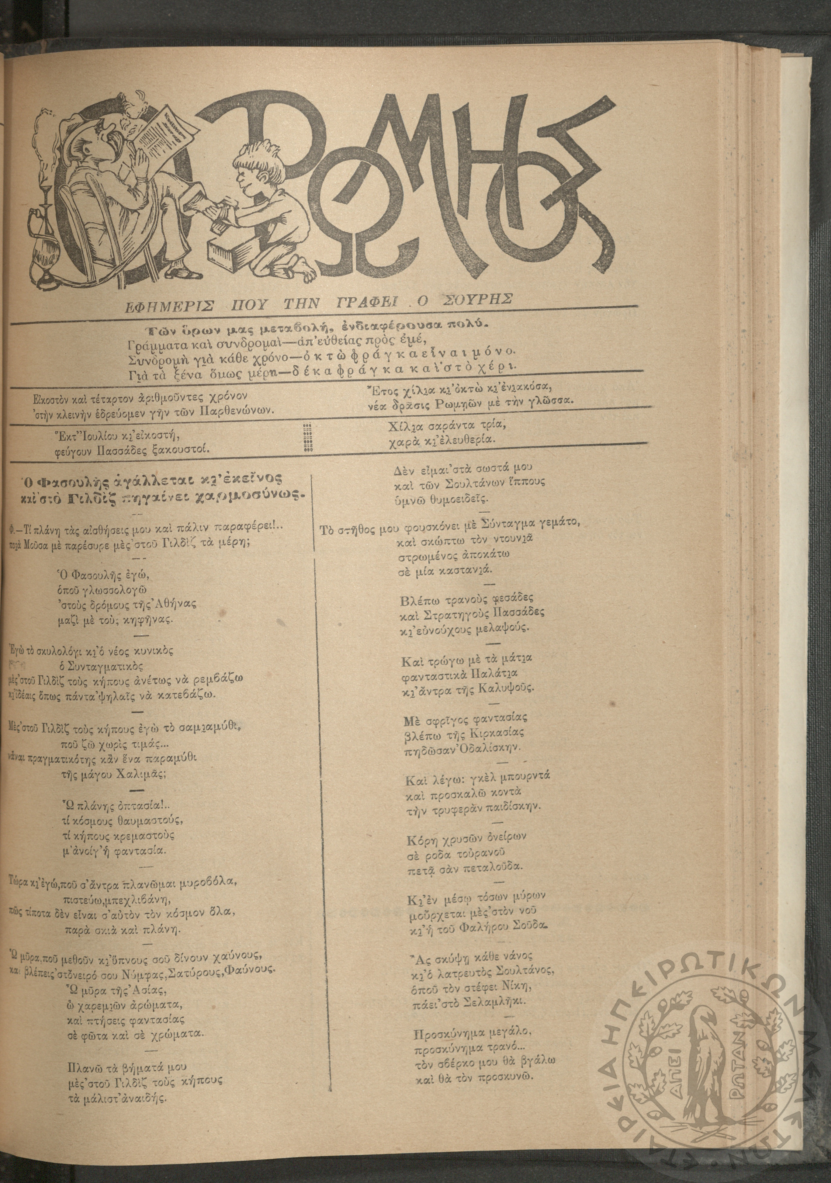 Ο Ρωμηός: Εφημερίς που την γράφει ο Σουρής, 1908, φ. 1059