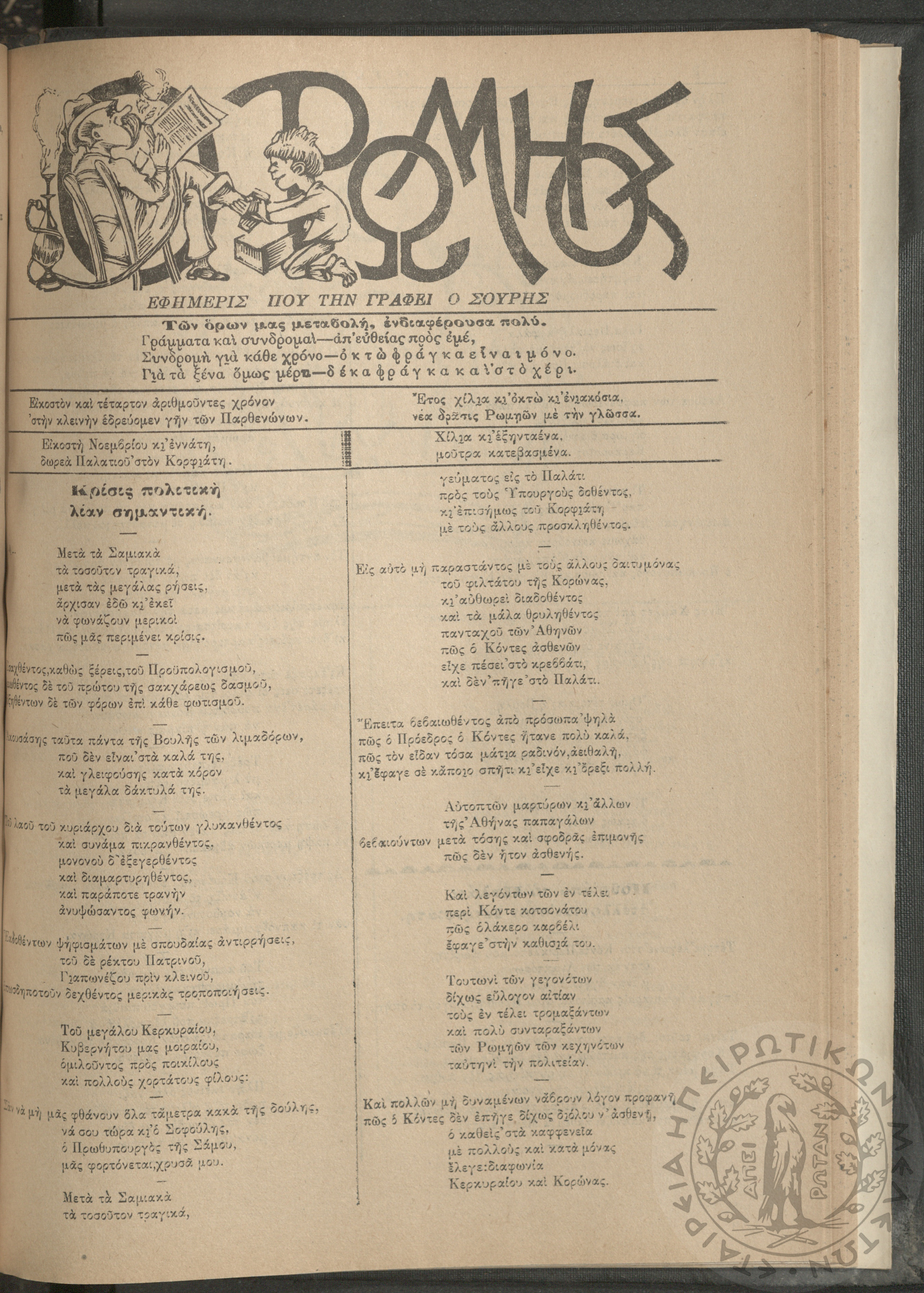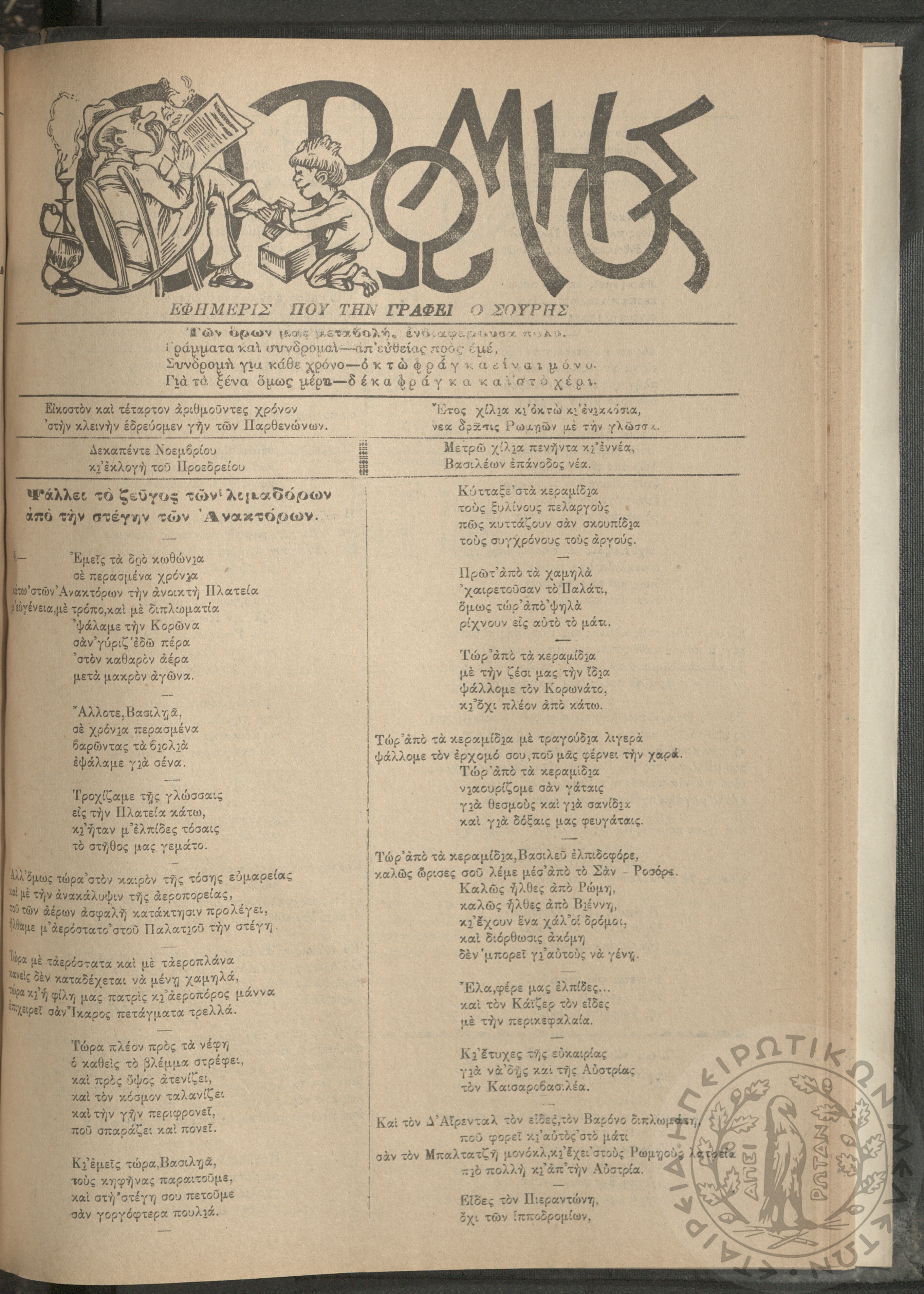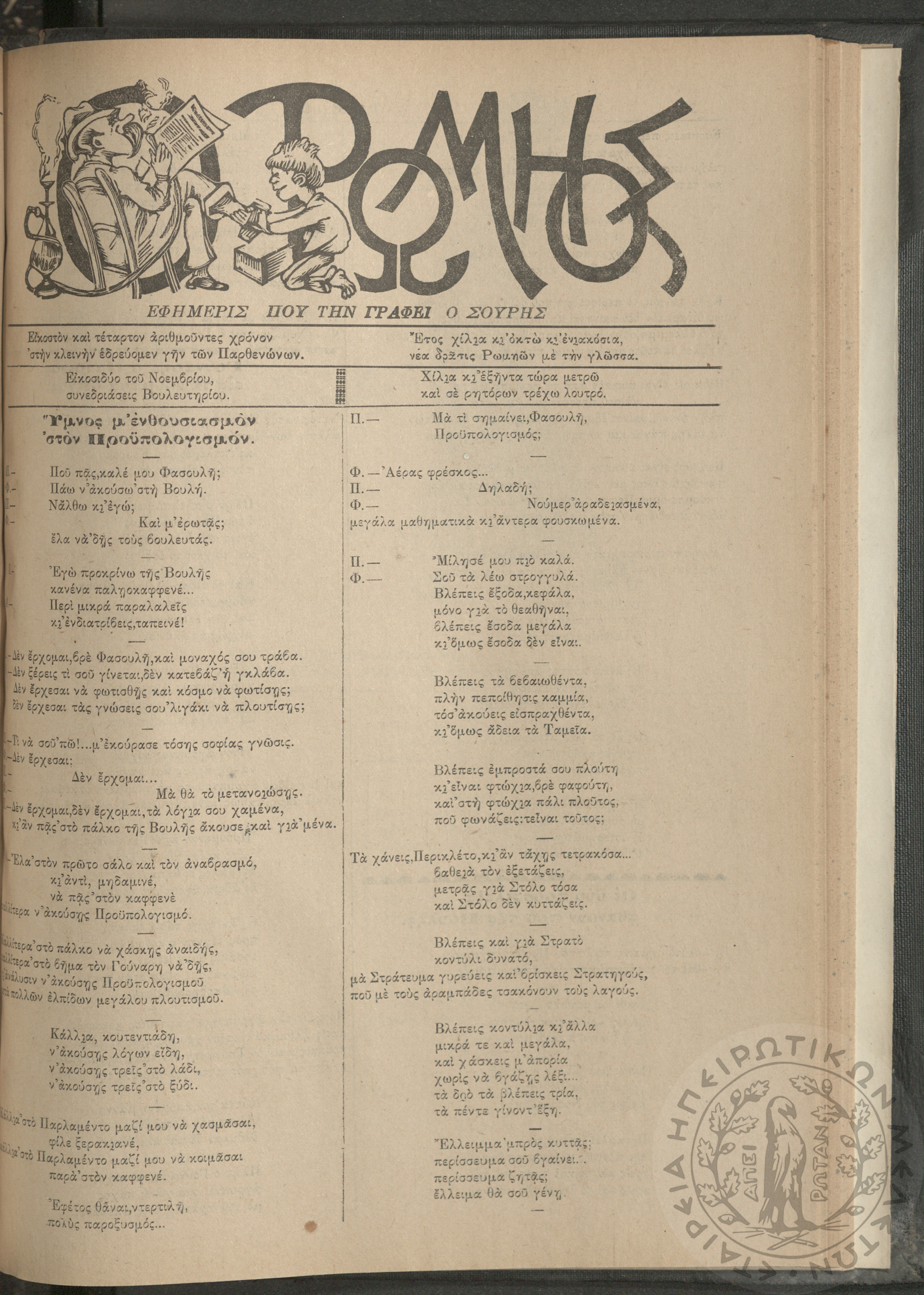 Ο Ρωμηός: Εφημερίς που την γράφει ο Σουρής, 1908, φ. 1059