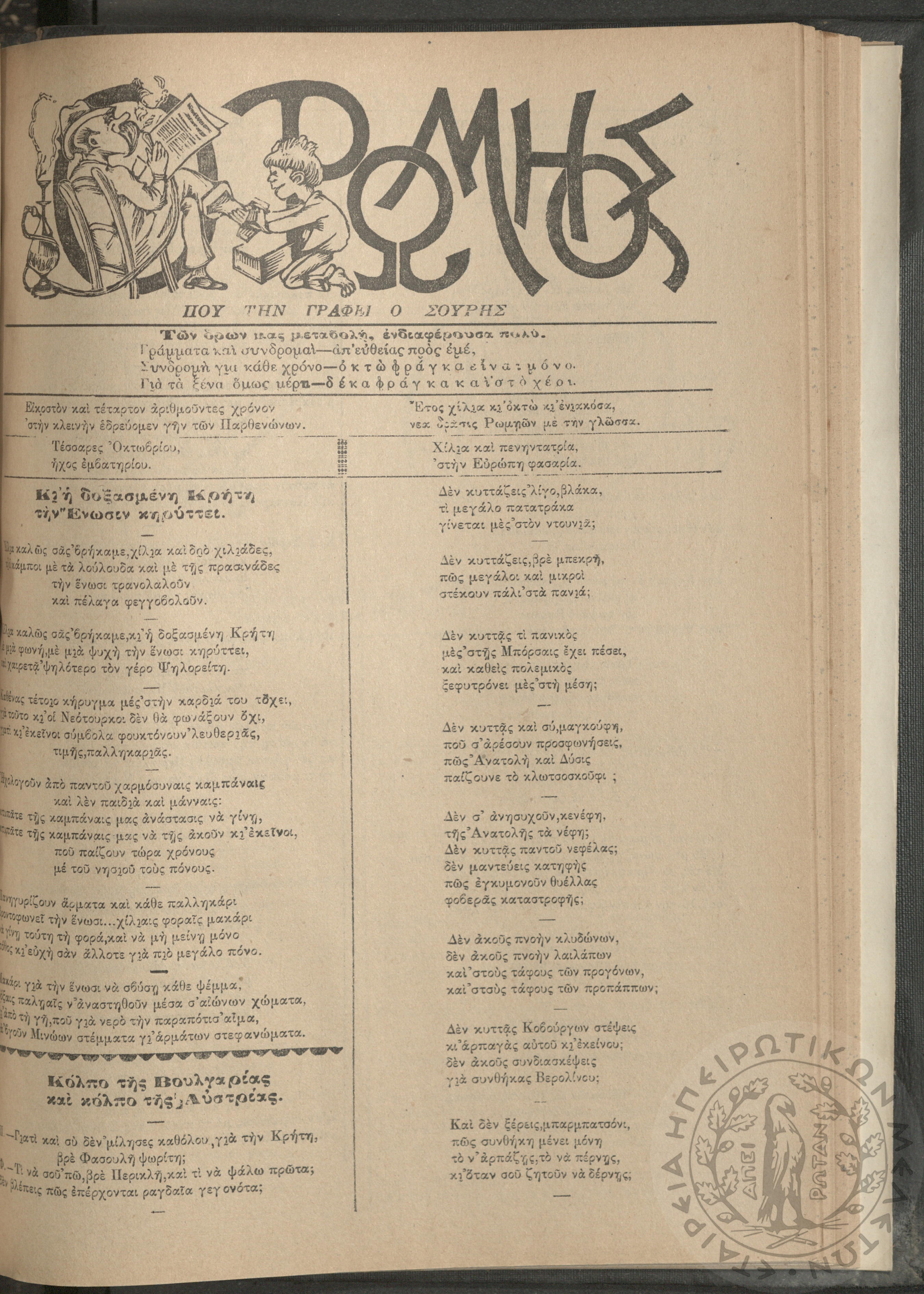 Ο Ρωμηός: Εφημερίς που την γράφει ο Σουρής, 1908, φ. 1050
