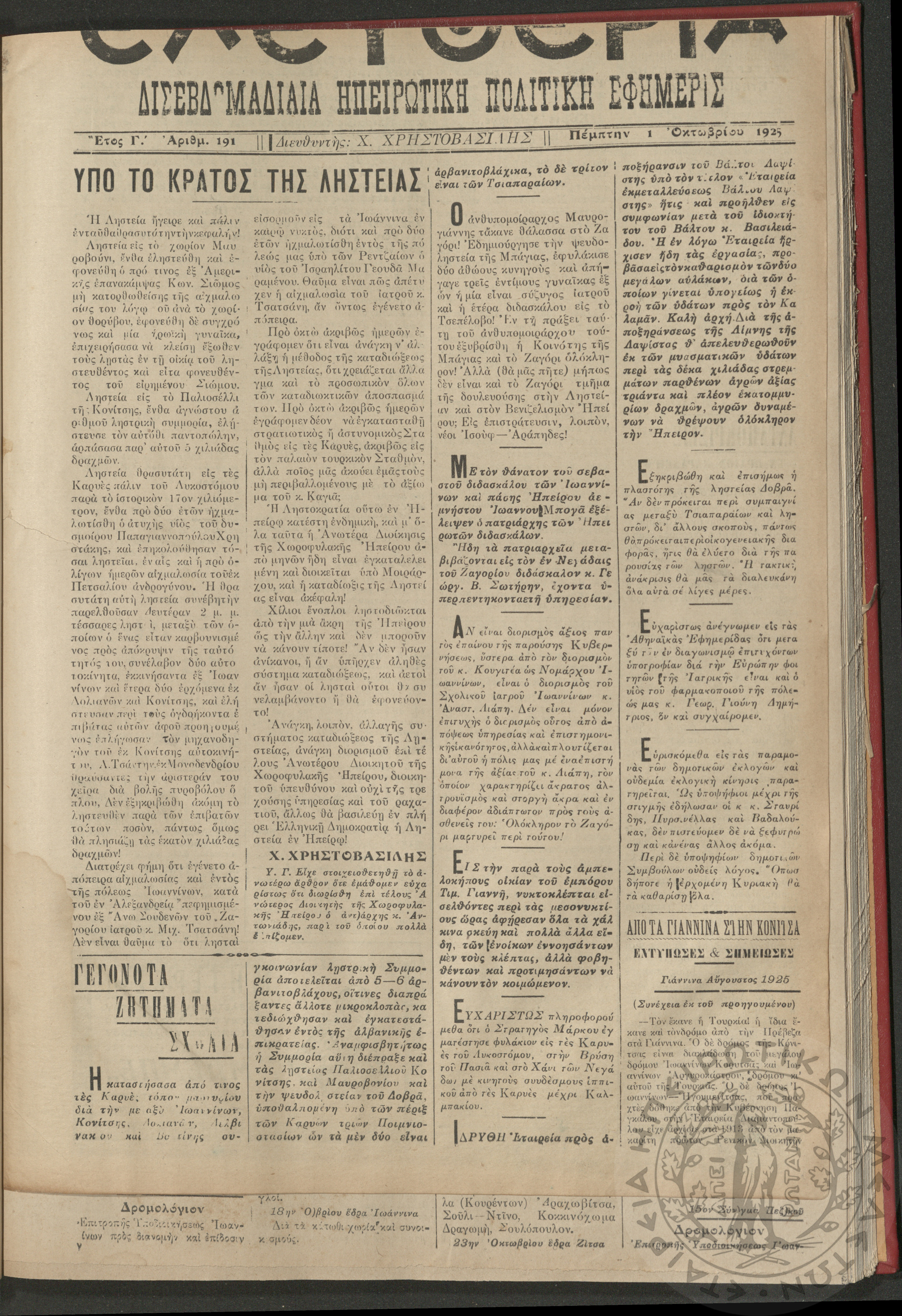 Ελευθερία: δισεβδομαδιαία Ηπειρωτική πολιτική εφημερίς, 1925, φ. 191