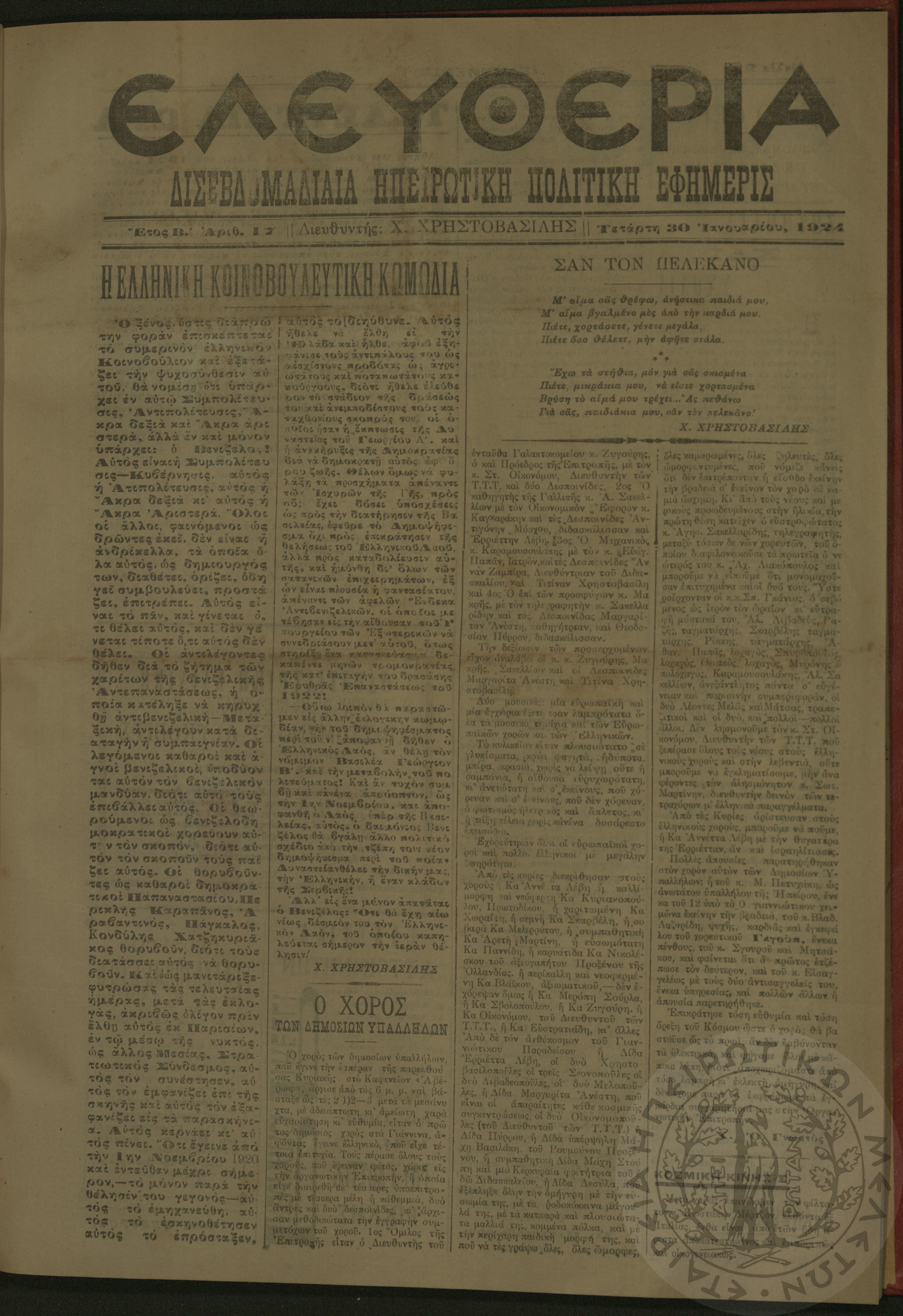 Ελευθερία: δισεβδομαδιαία Ηπειρωτική πολιτική εφημερίς, 1924, φ. 17