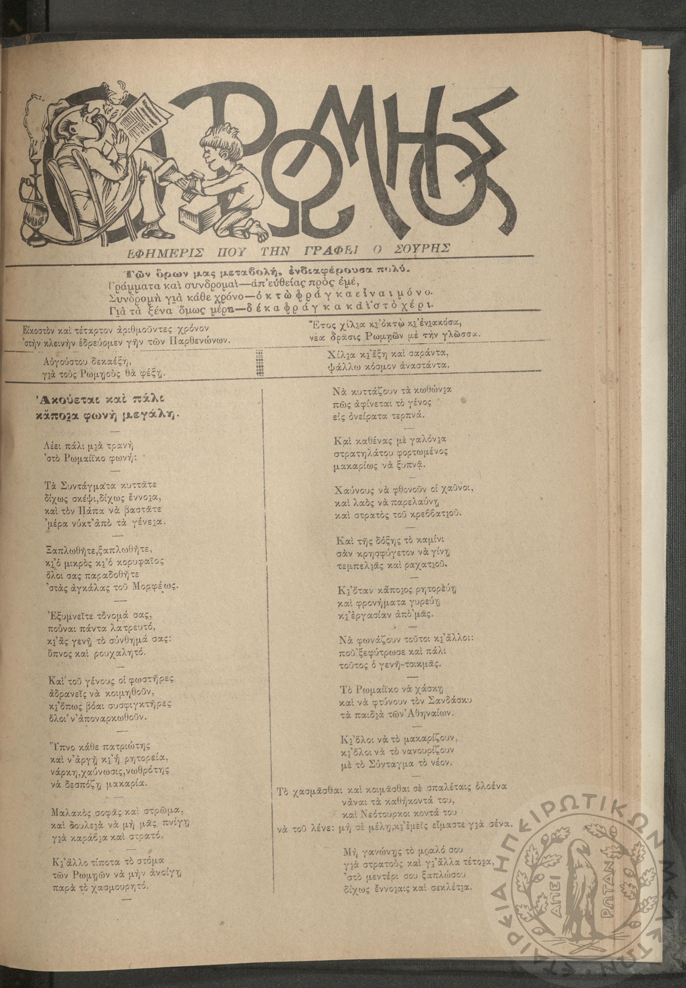 Ο Ρωμηός: Εφημερίς που την γράφει ο Σουρής, 1908, φ. 1053