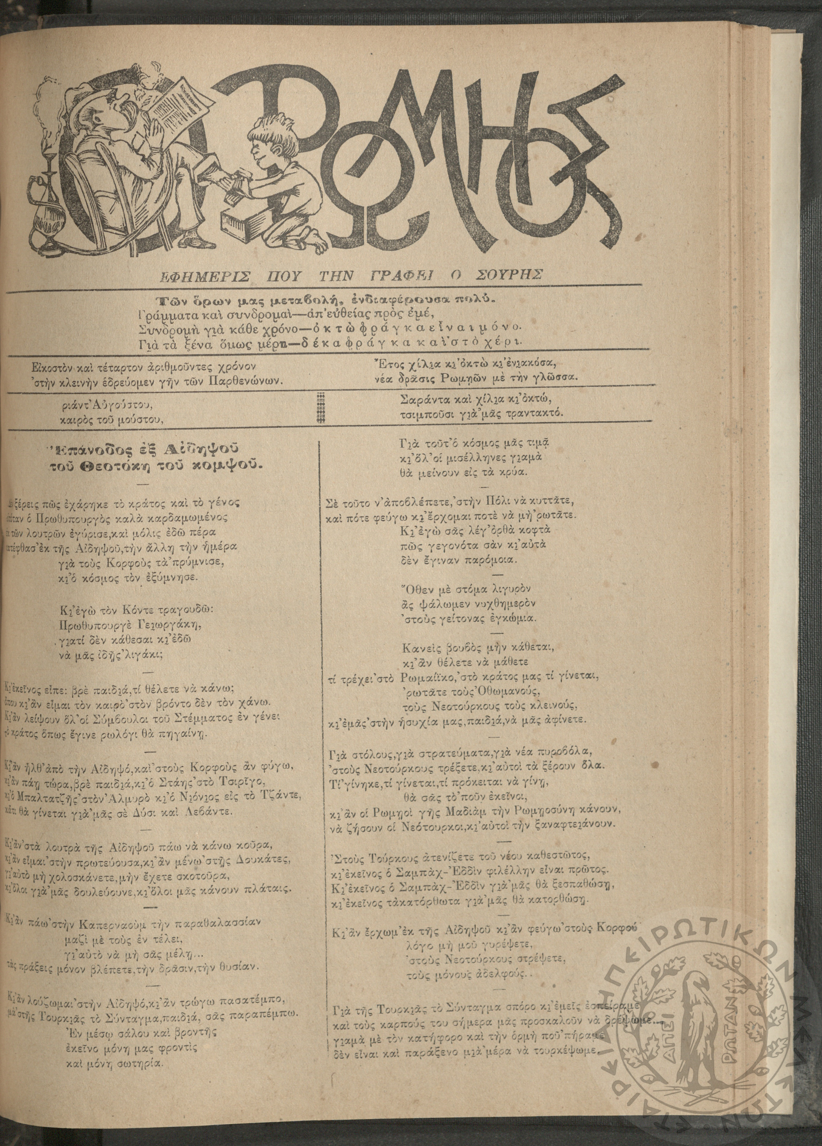 Ο Ρωμηός: Εφημερίς που την γράφει ο Σουρής, 1908, φ. 1046
