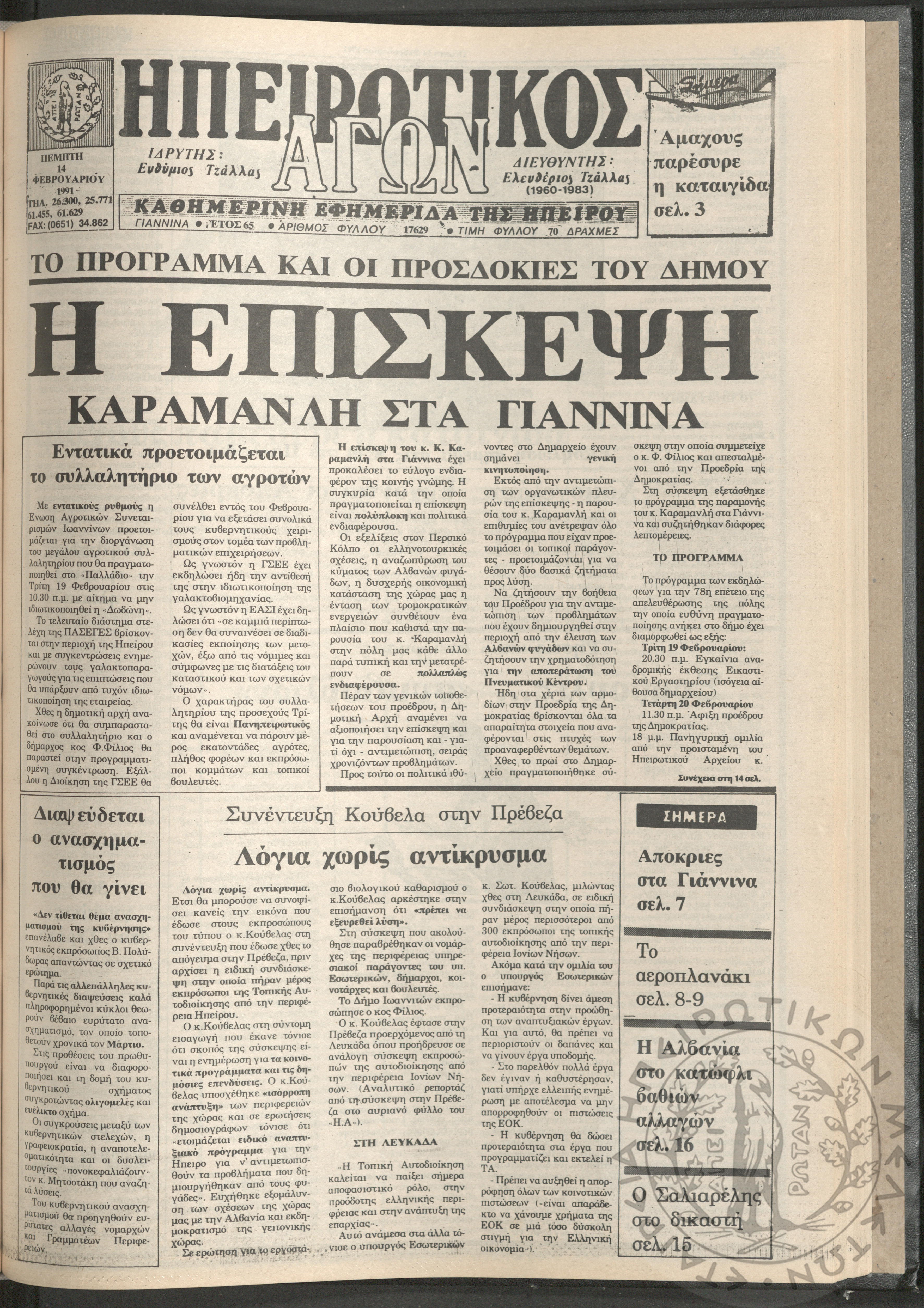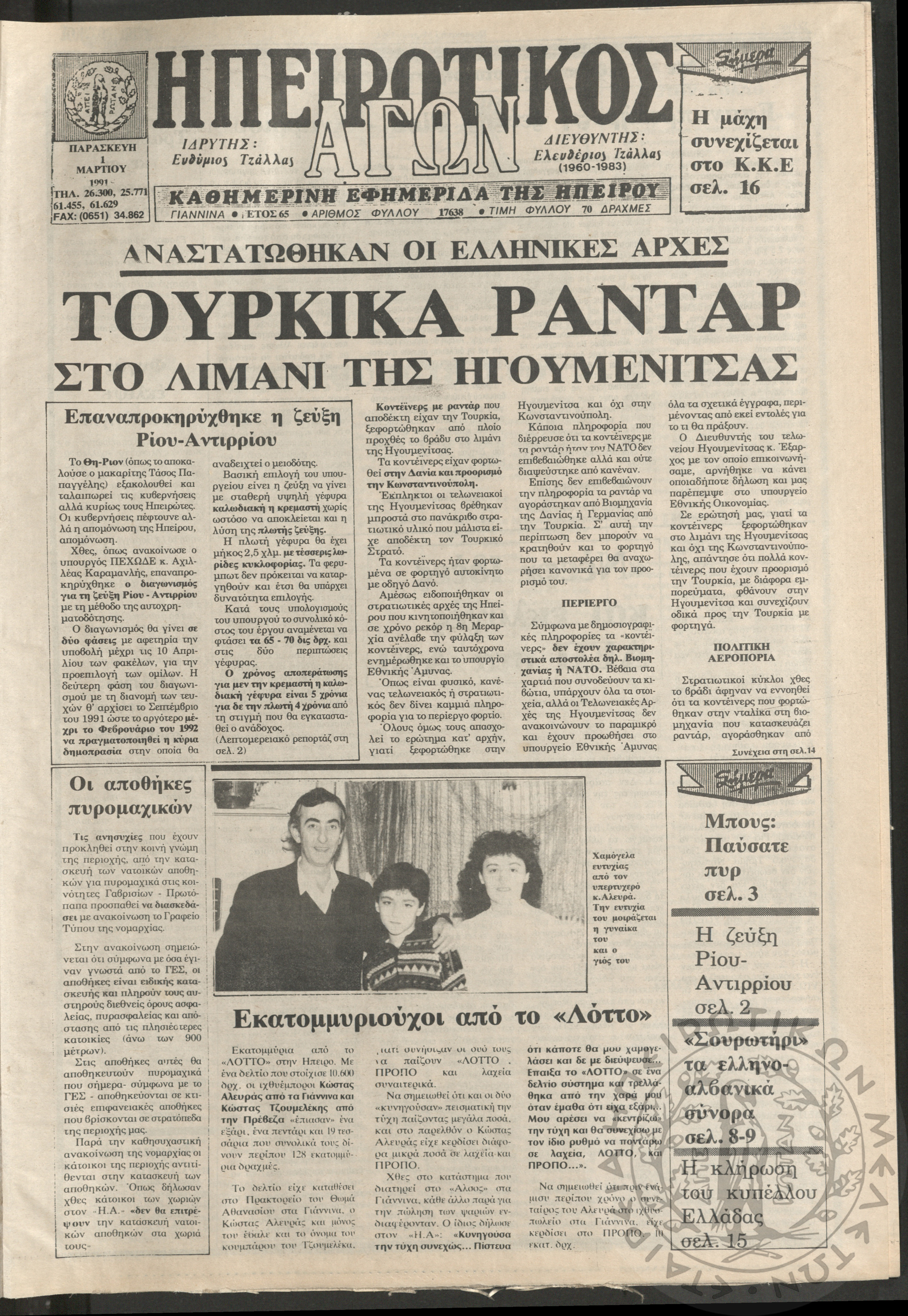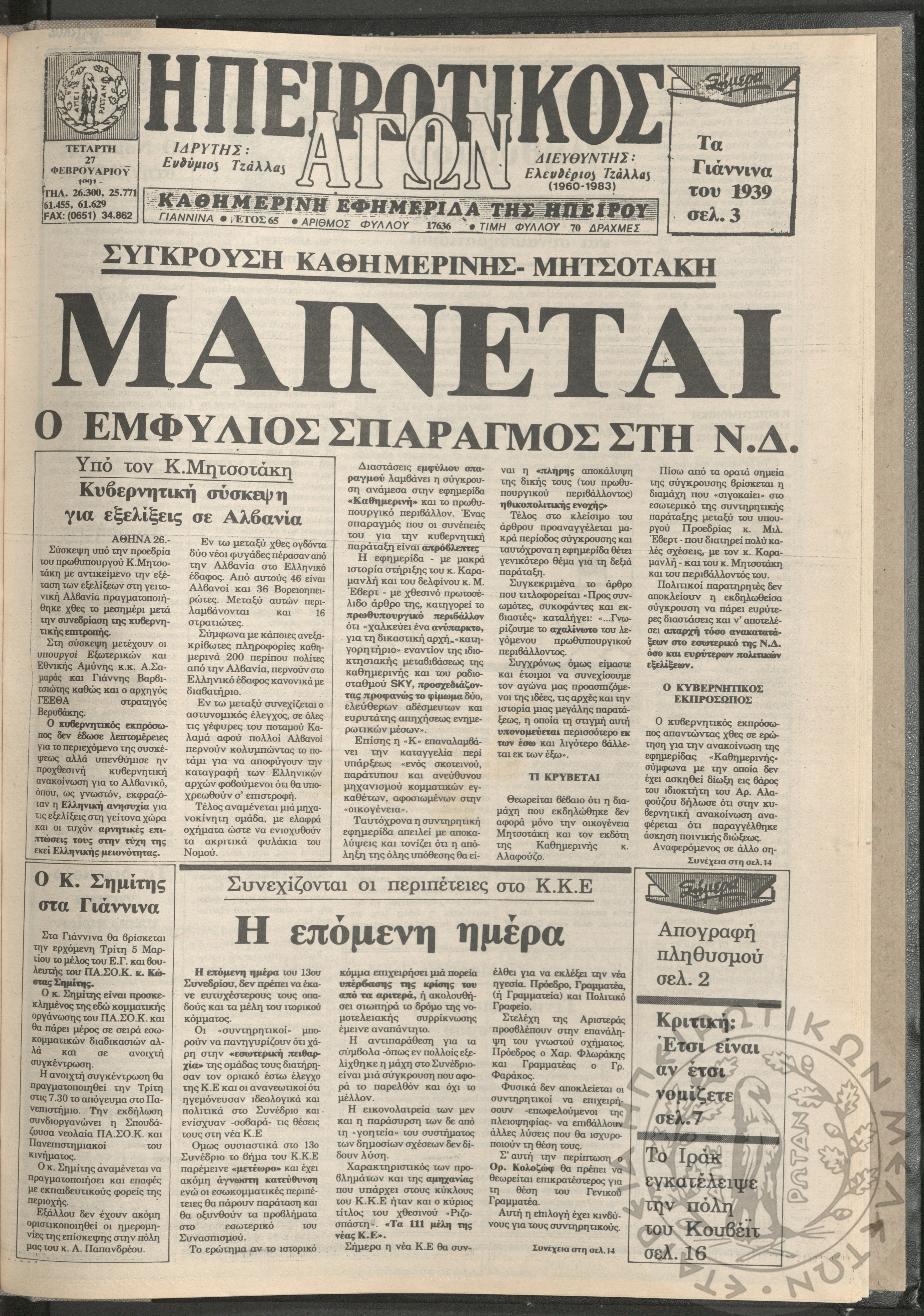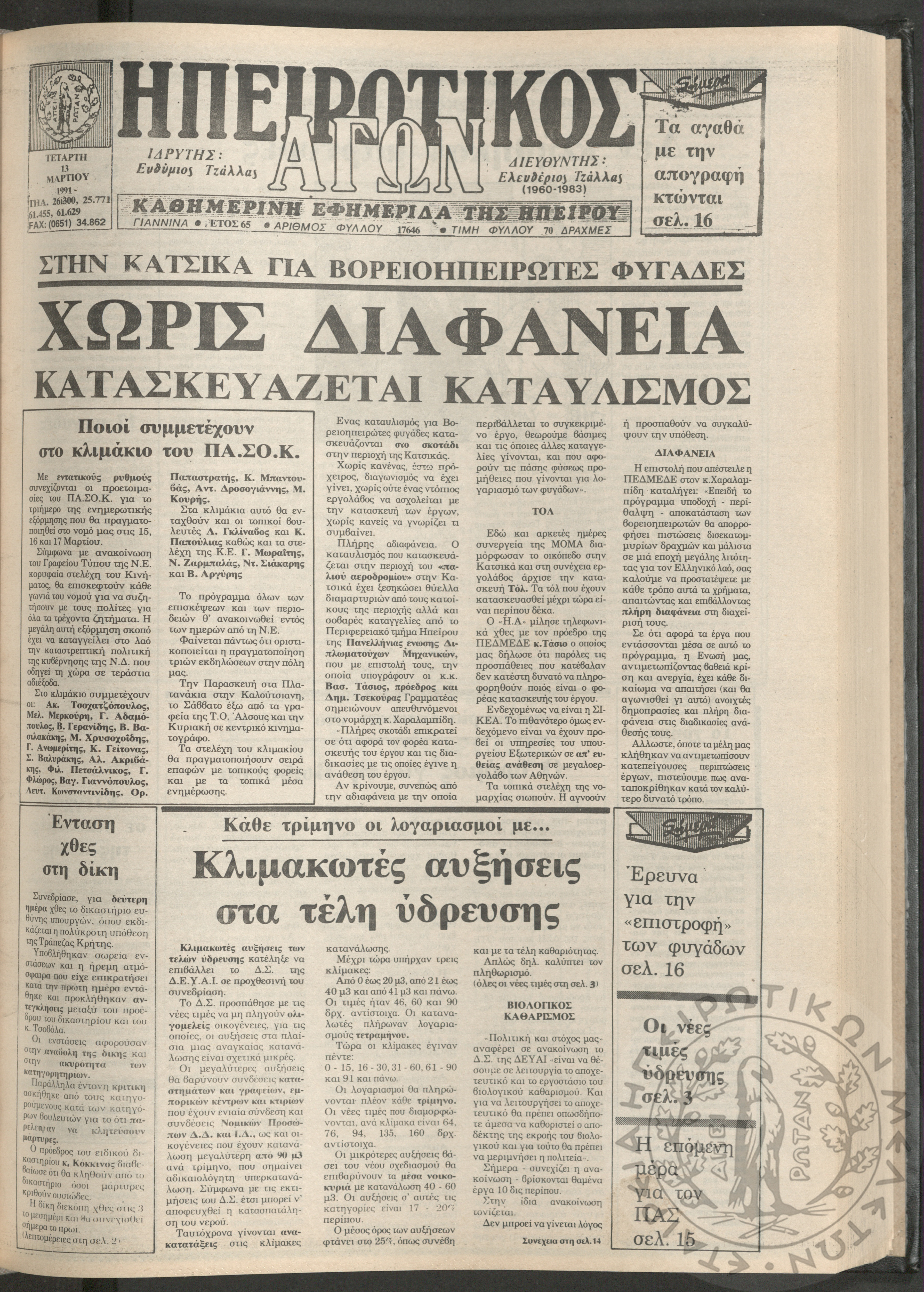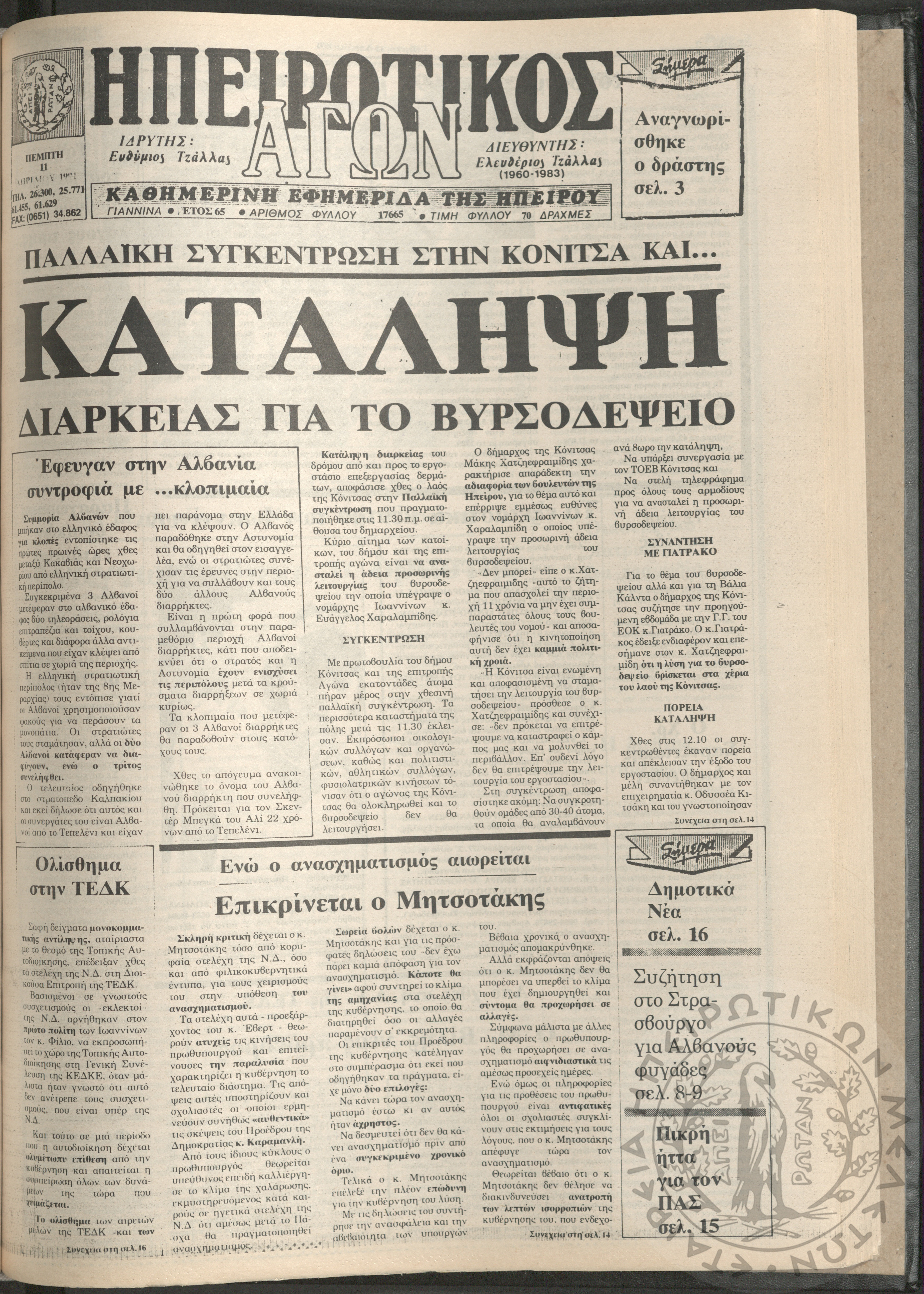 Ηπειρωτικός Αγών: η μεγαλυτέρα ηπειρωτική εφημερίς εκδιδόμενη καθημερινώς εν Ιωαννίνοις, 1978, φ. 13916Έτος 51, φ. 13916...