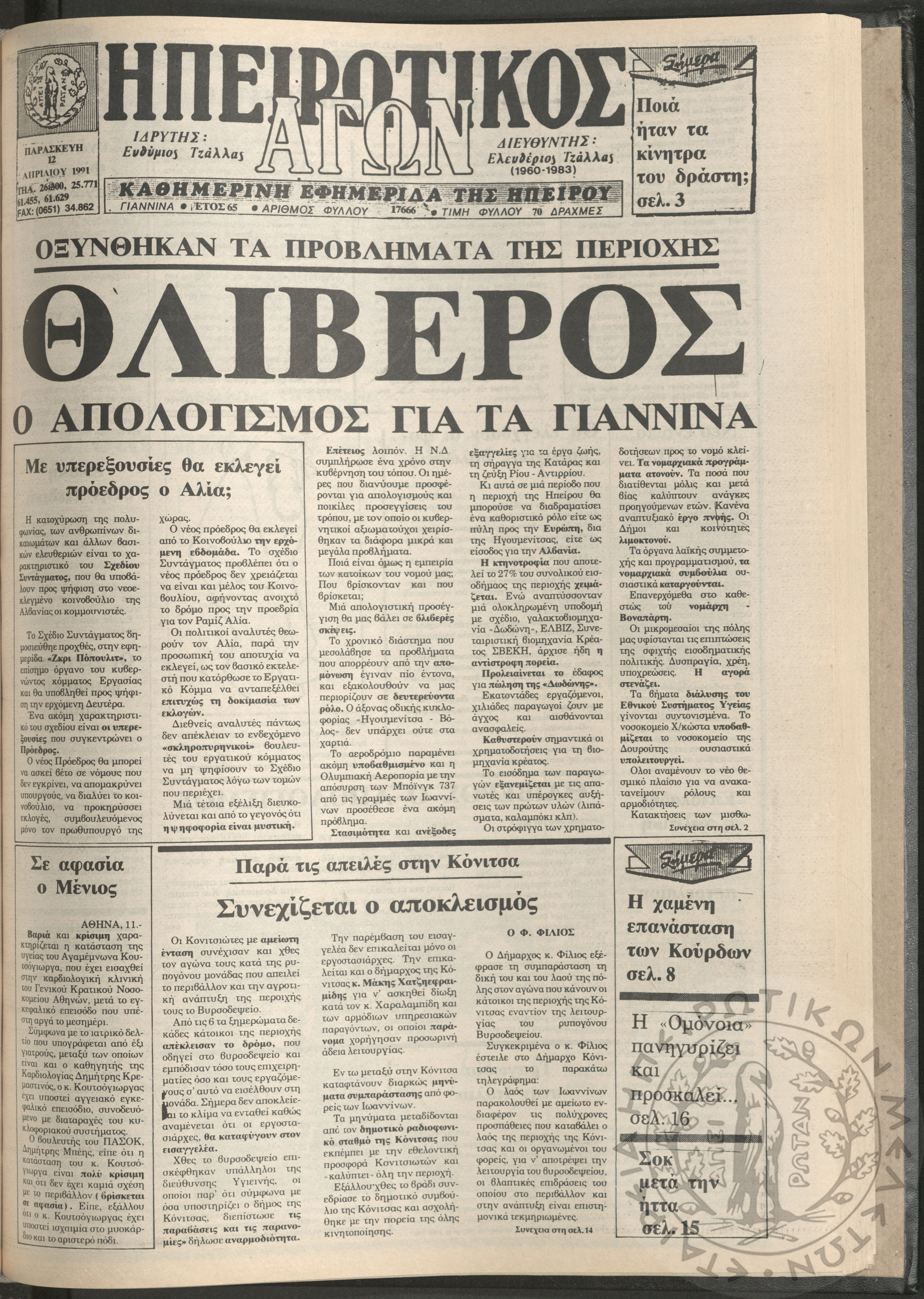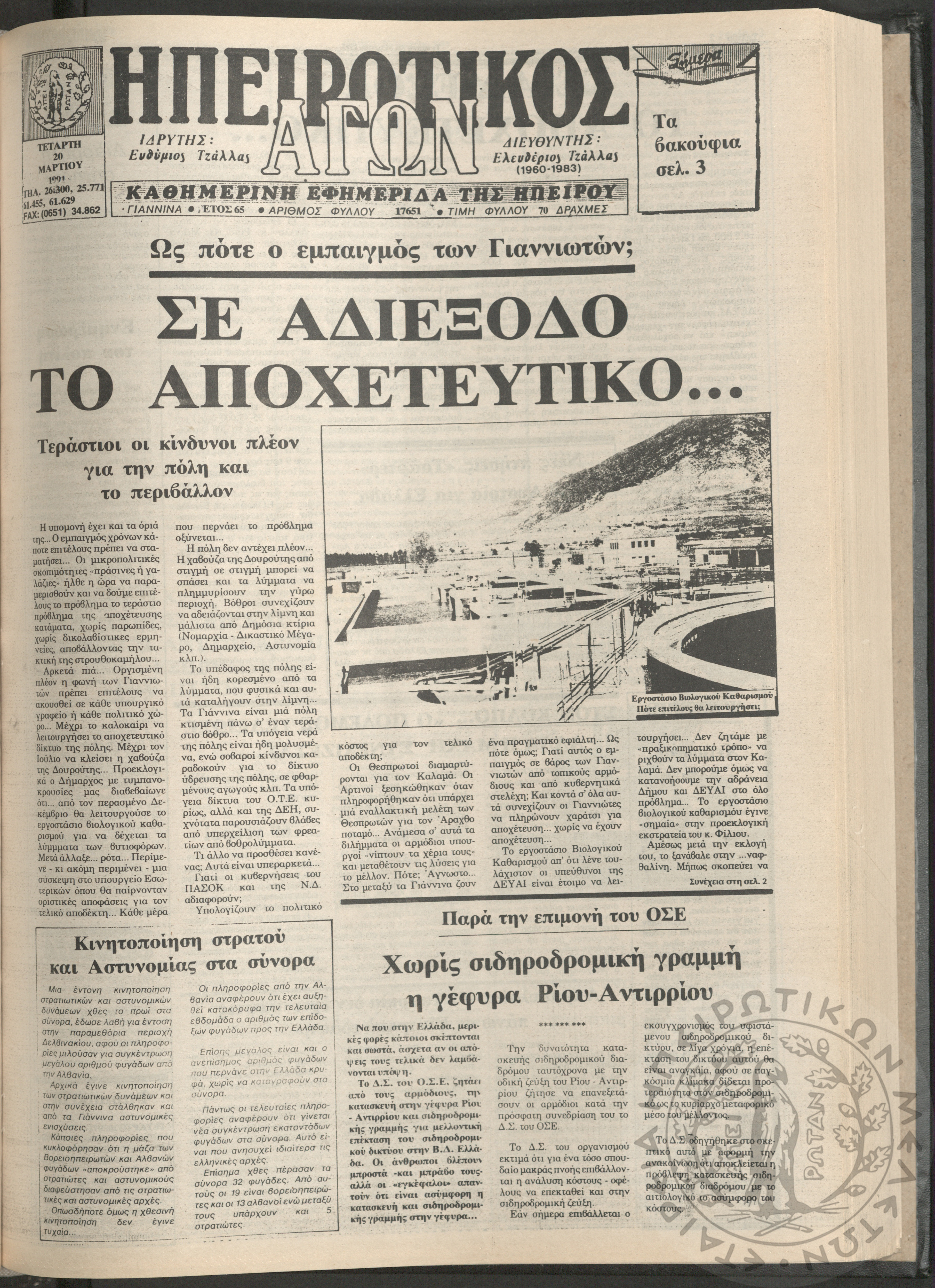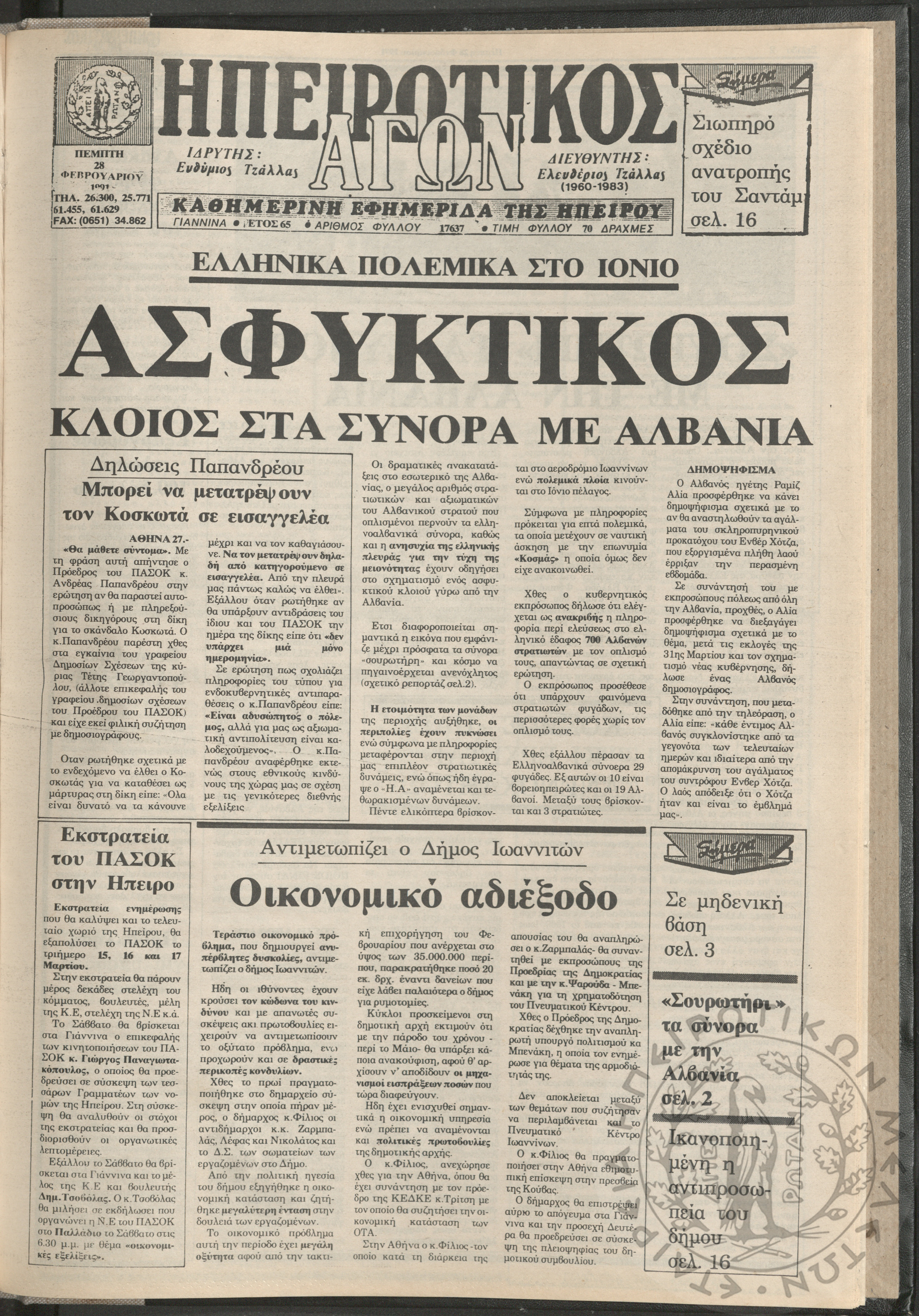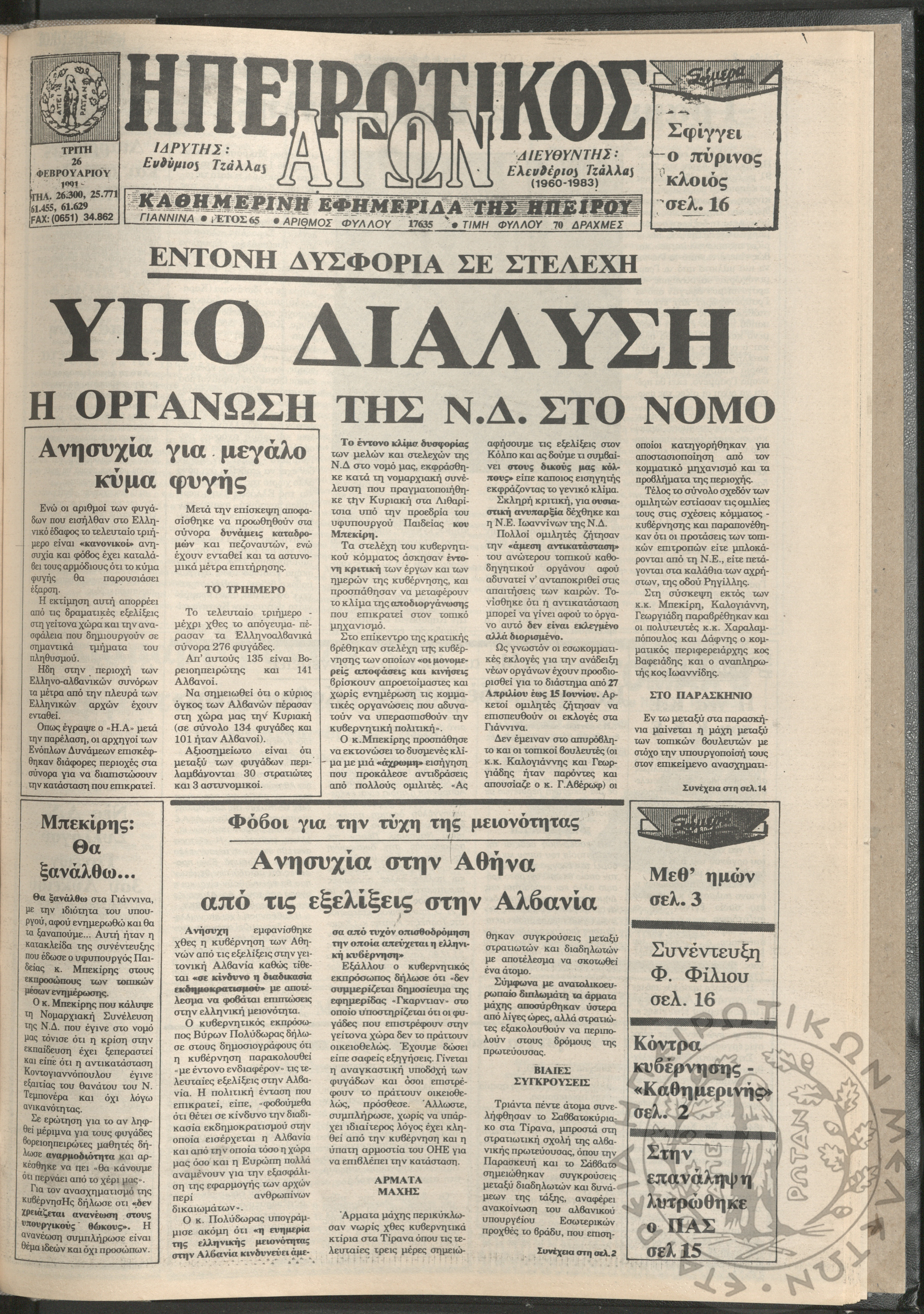 Ηπειρωτικός Αγών: η μεγαλυτέρα ηπειρωτική εφημερίς εκδιδόμενη καθημερινώς εν Ιωαννίνοις, 1978, φ. 13916Έτος 51, φ. 13916...