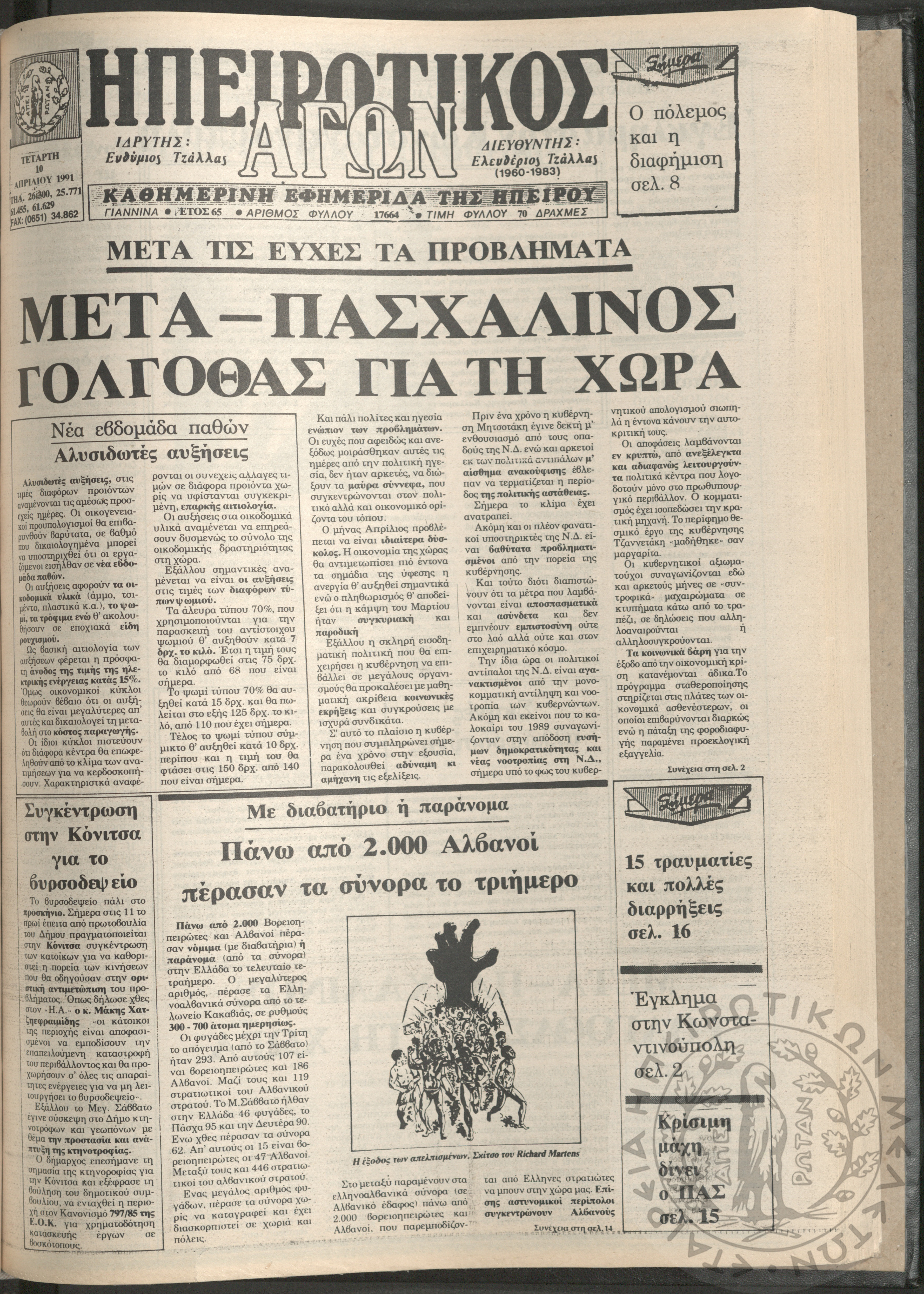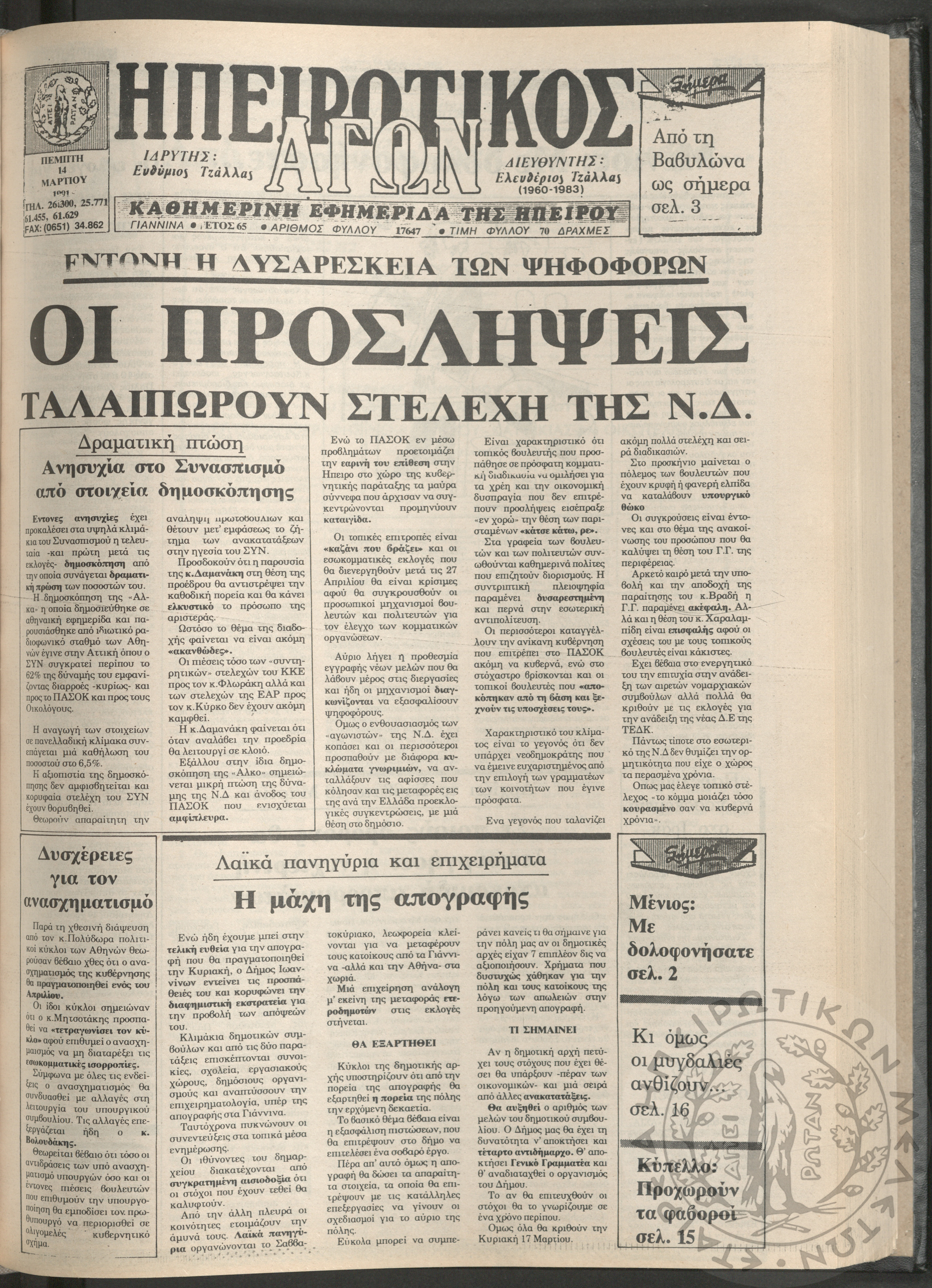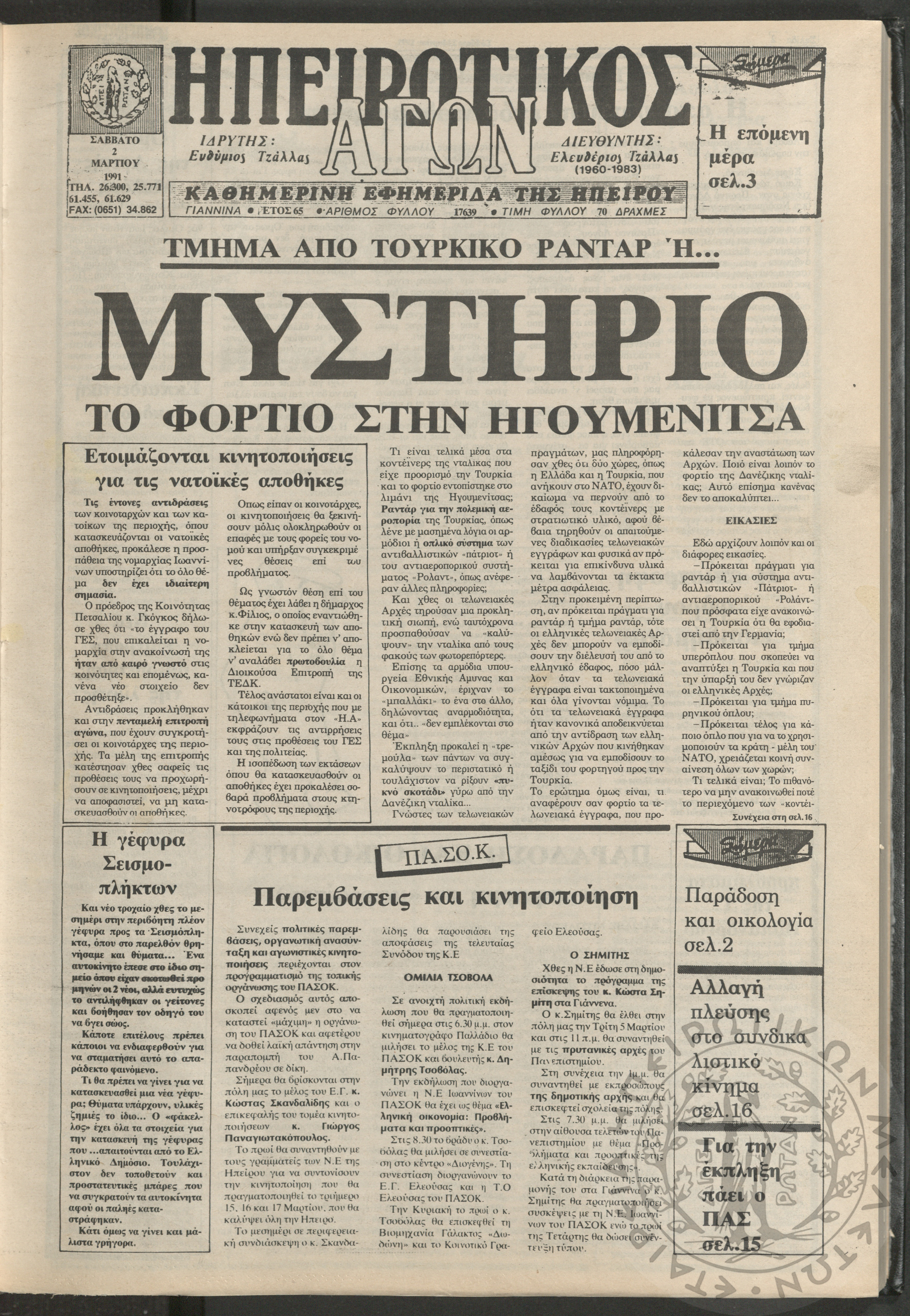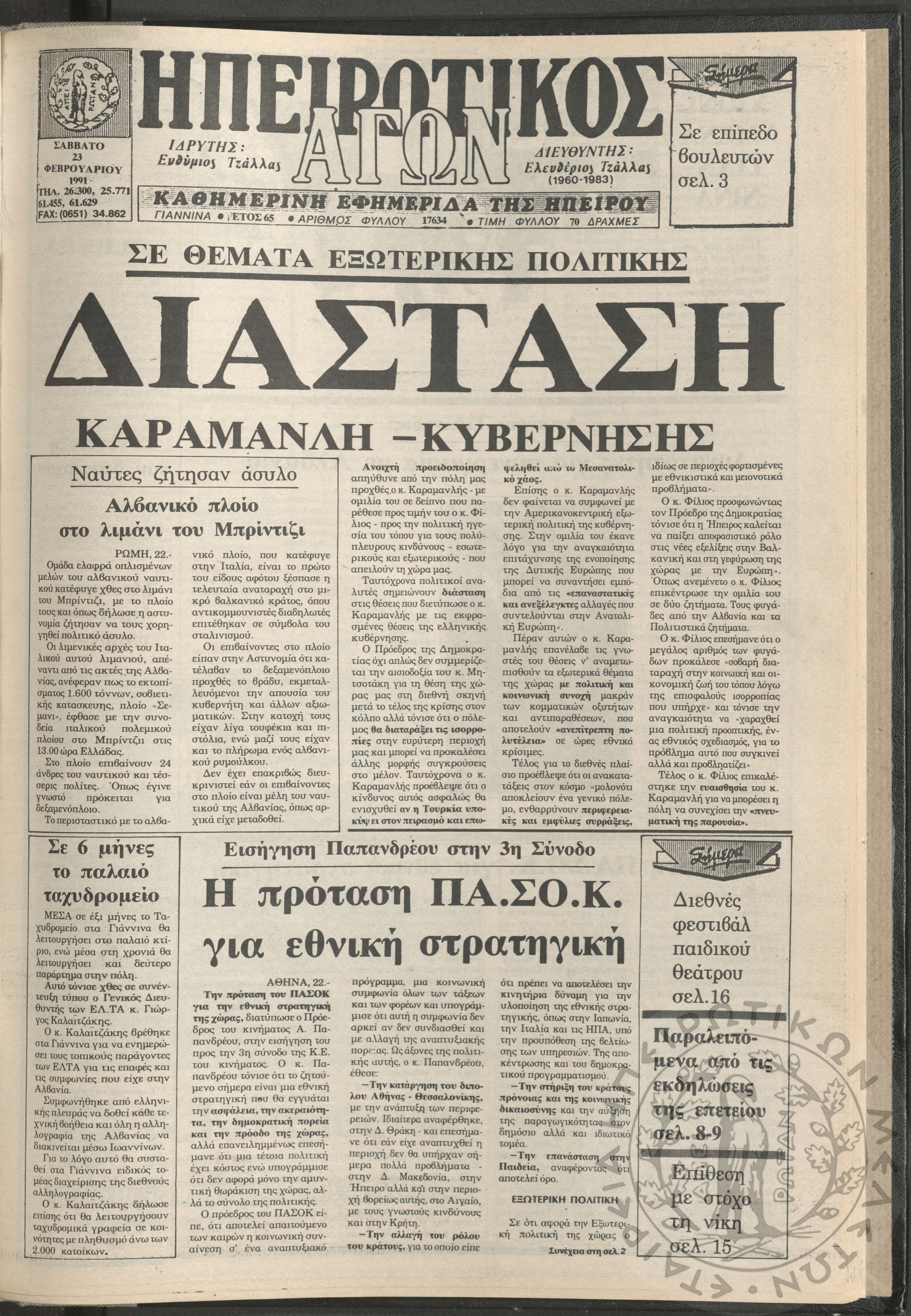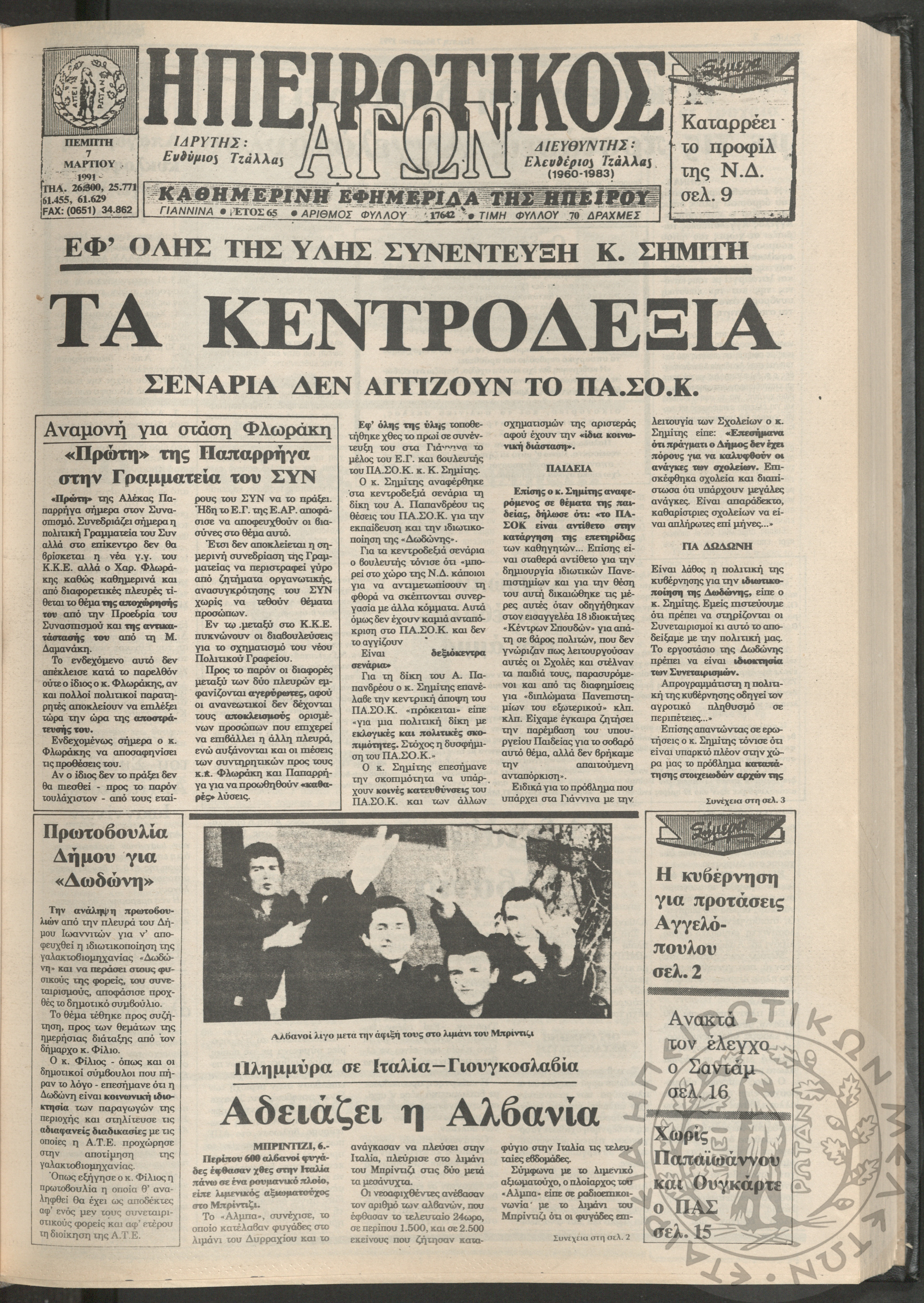 Ηπειρωτικός Αγών: η μεγαλυτέρα ηπειρωτική εφημερίς εκδιδόμενη καθημερινώς εν Ιωαννίνοις, 1978, φ. 13916Έτος 51, φ. 13916...