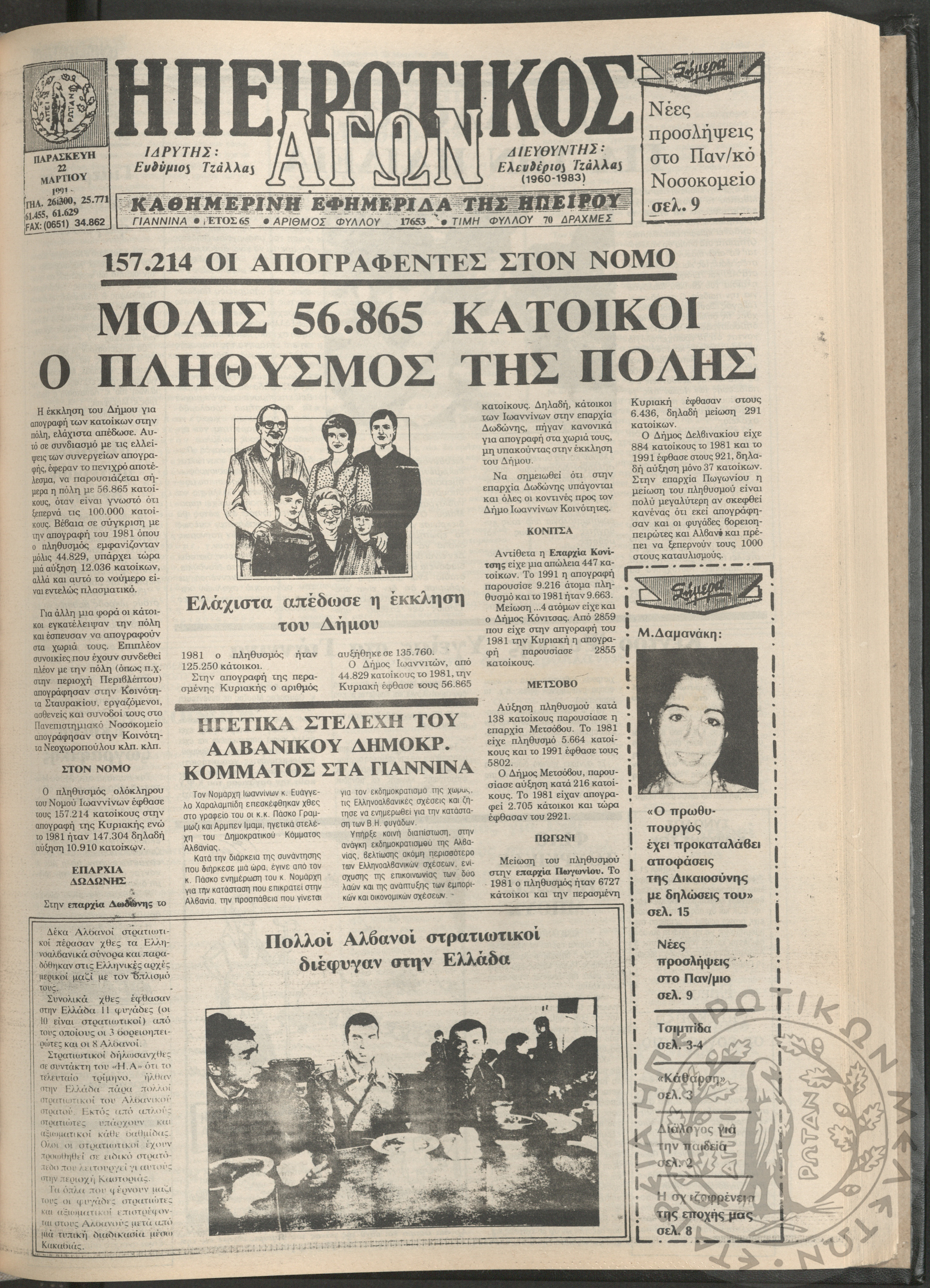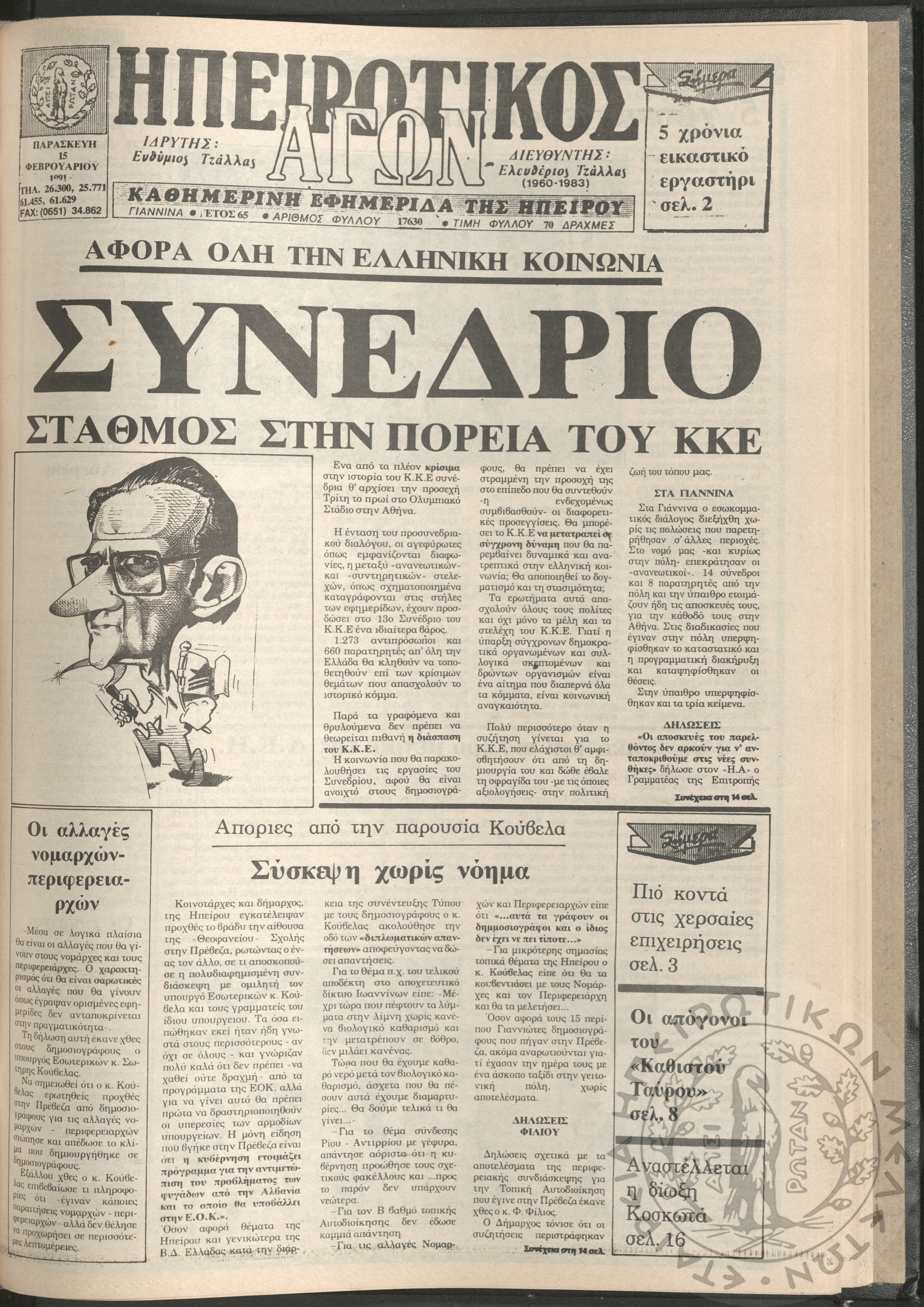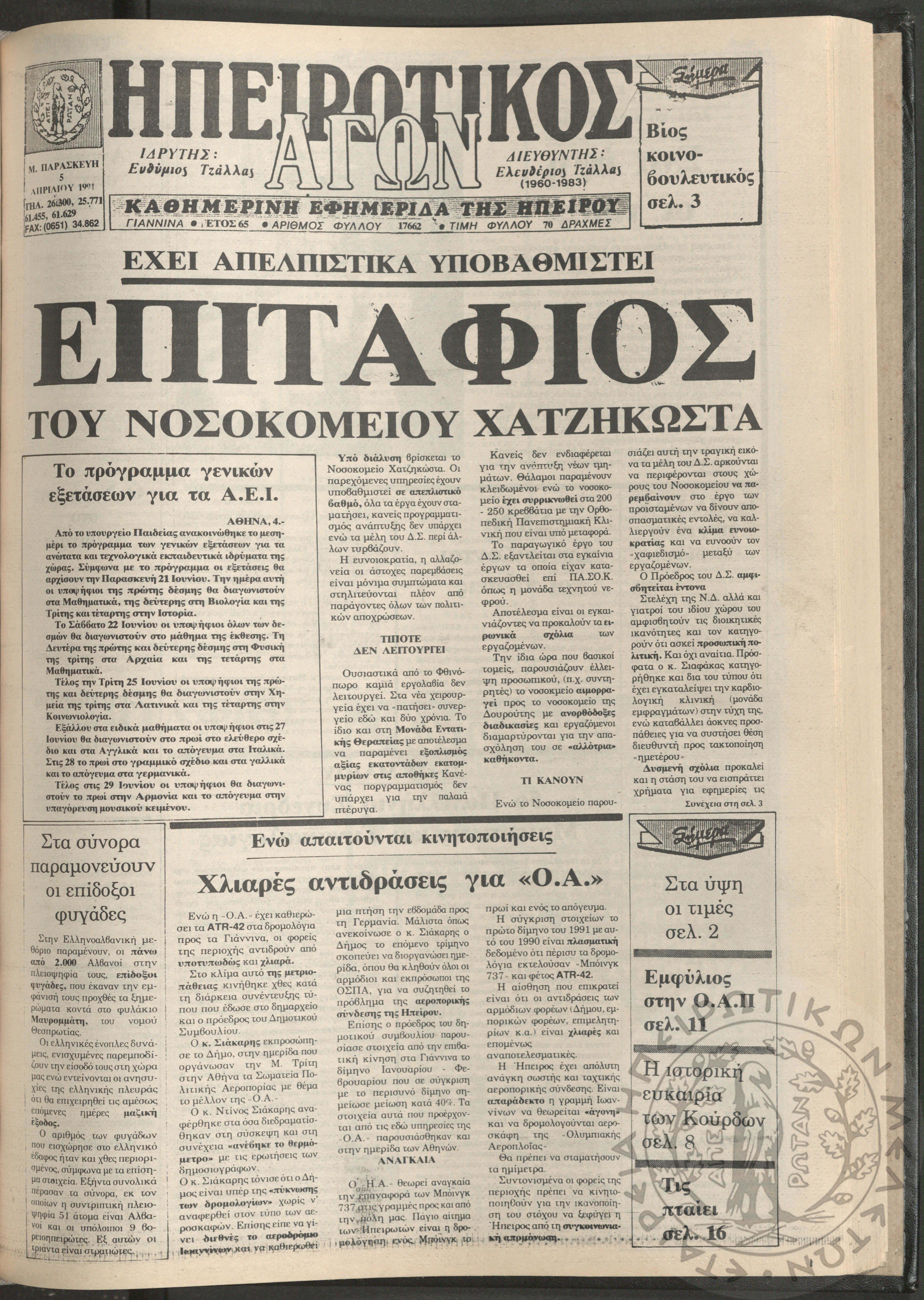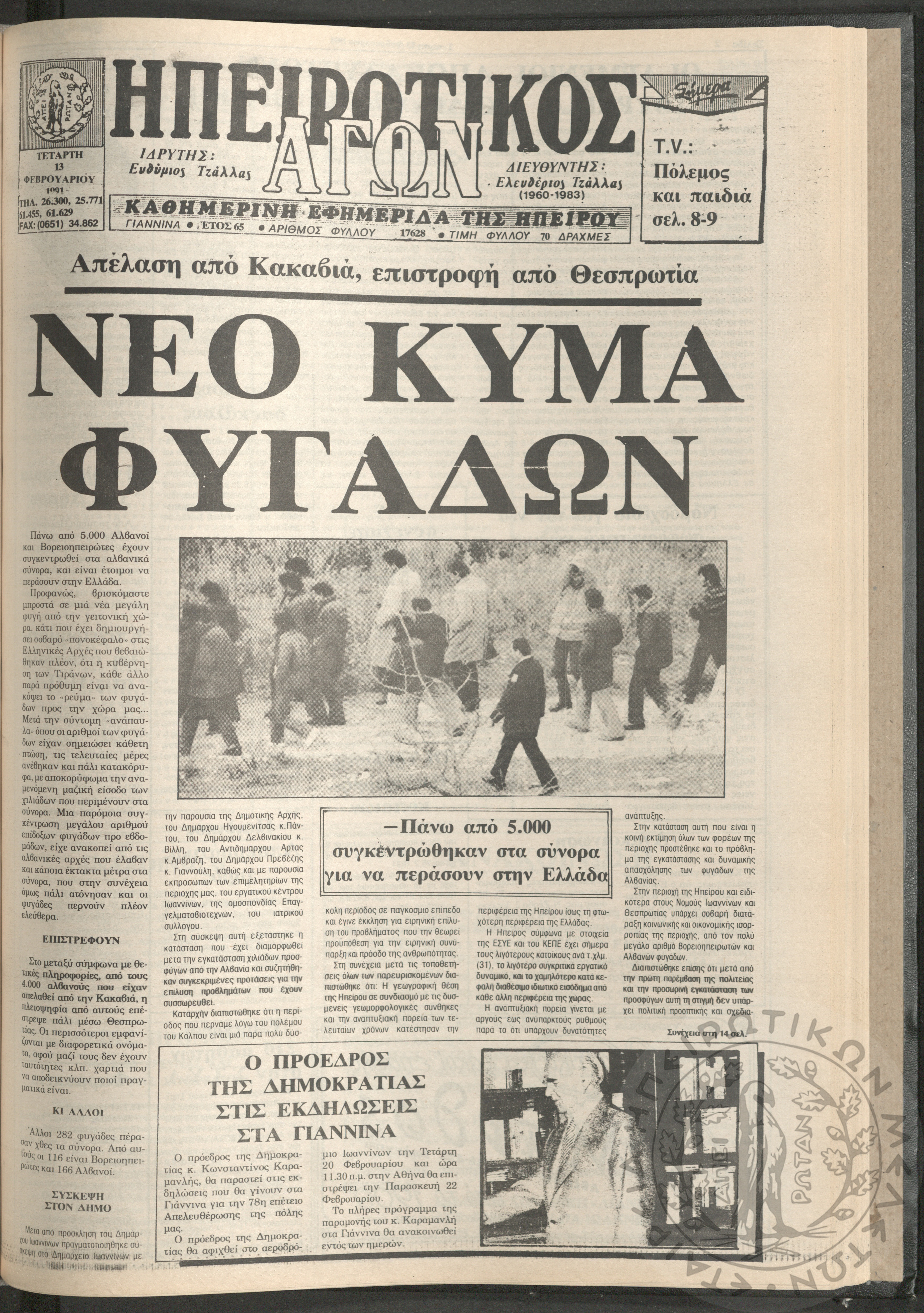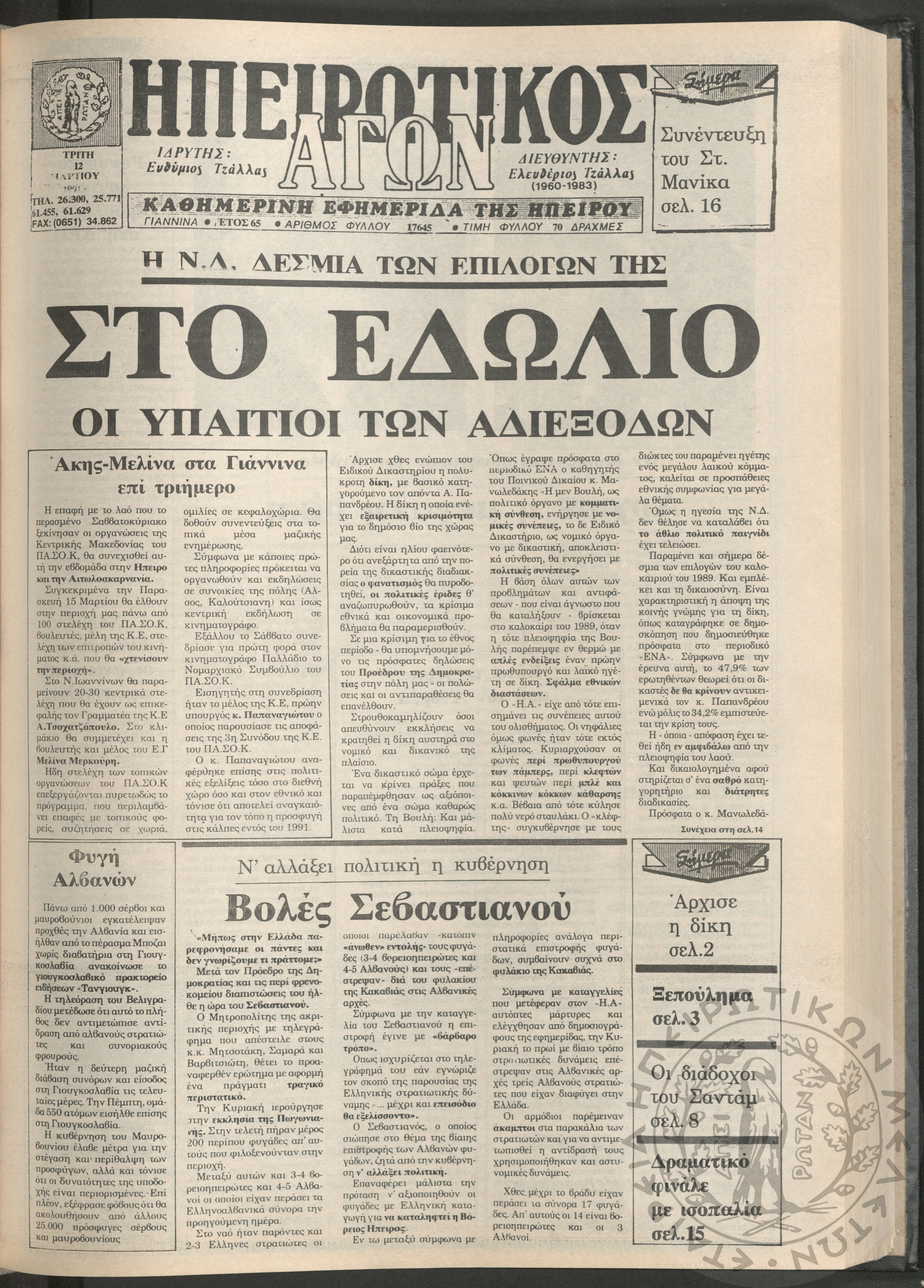 Ηπειρωτικός Αγών: η μεγαλυτέρα ηπειρωτική εφημερίς εκδιδόμενη καθημερινώς εν Ιωαννίνοις, 1978, φ. 13916Έτος 51, φ. 13916...