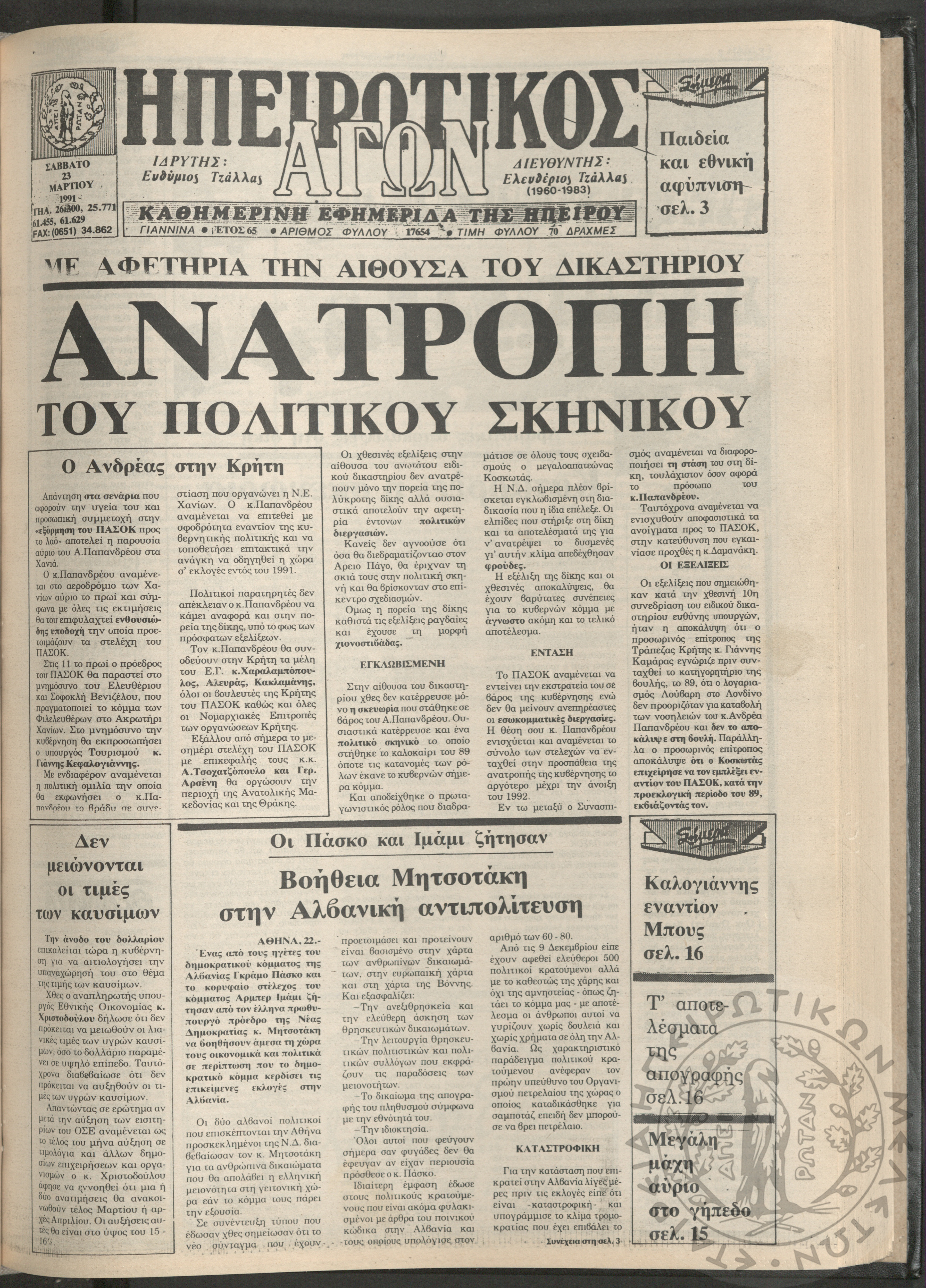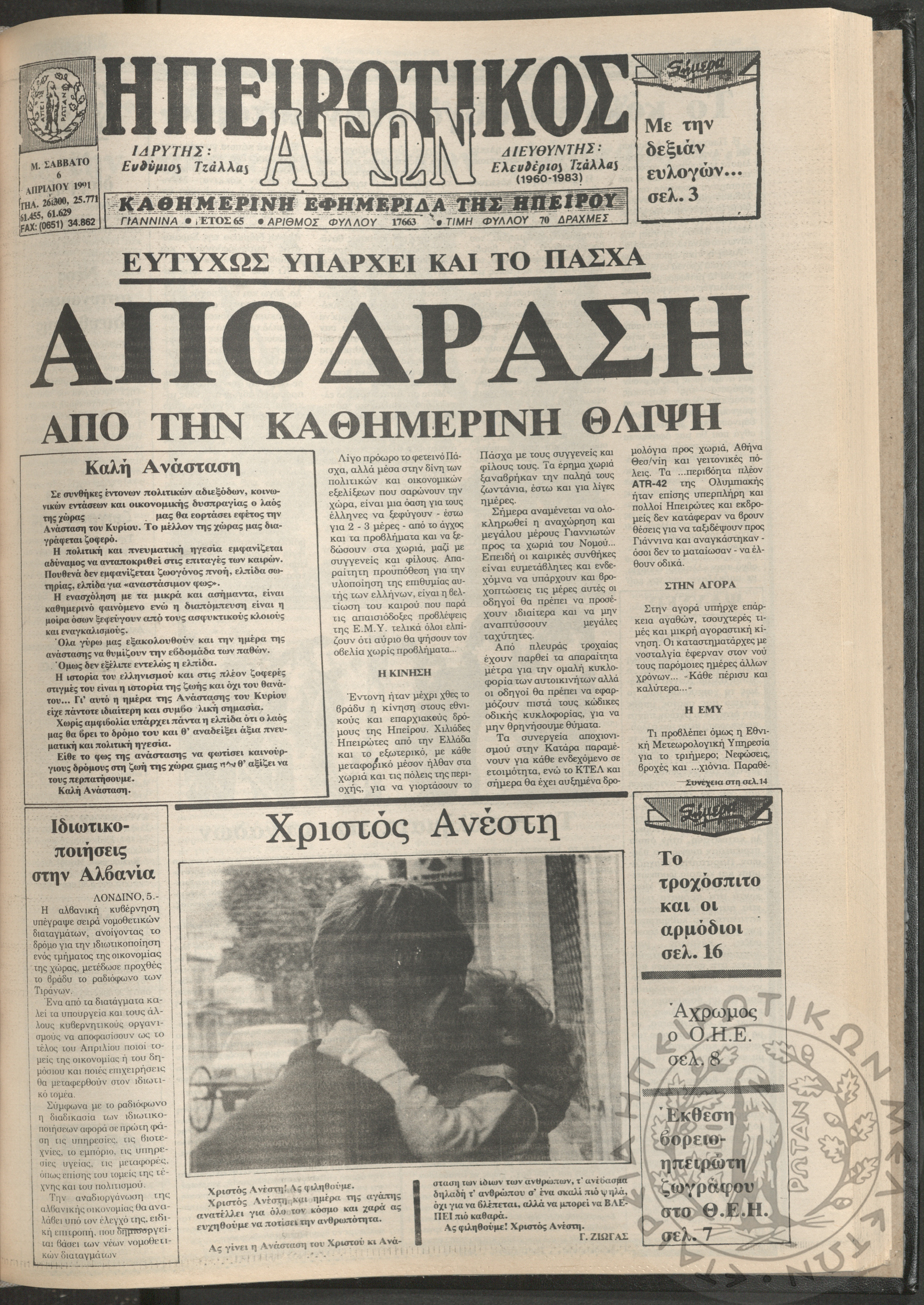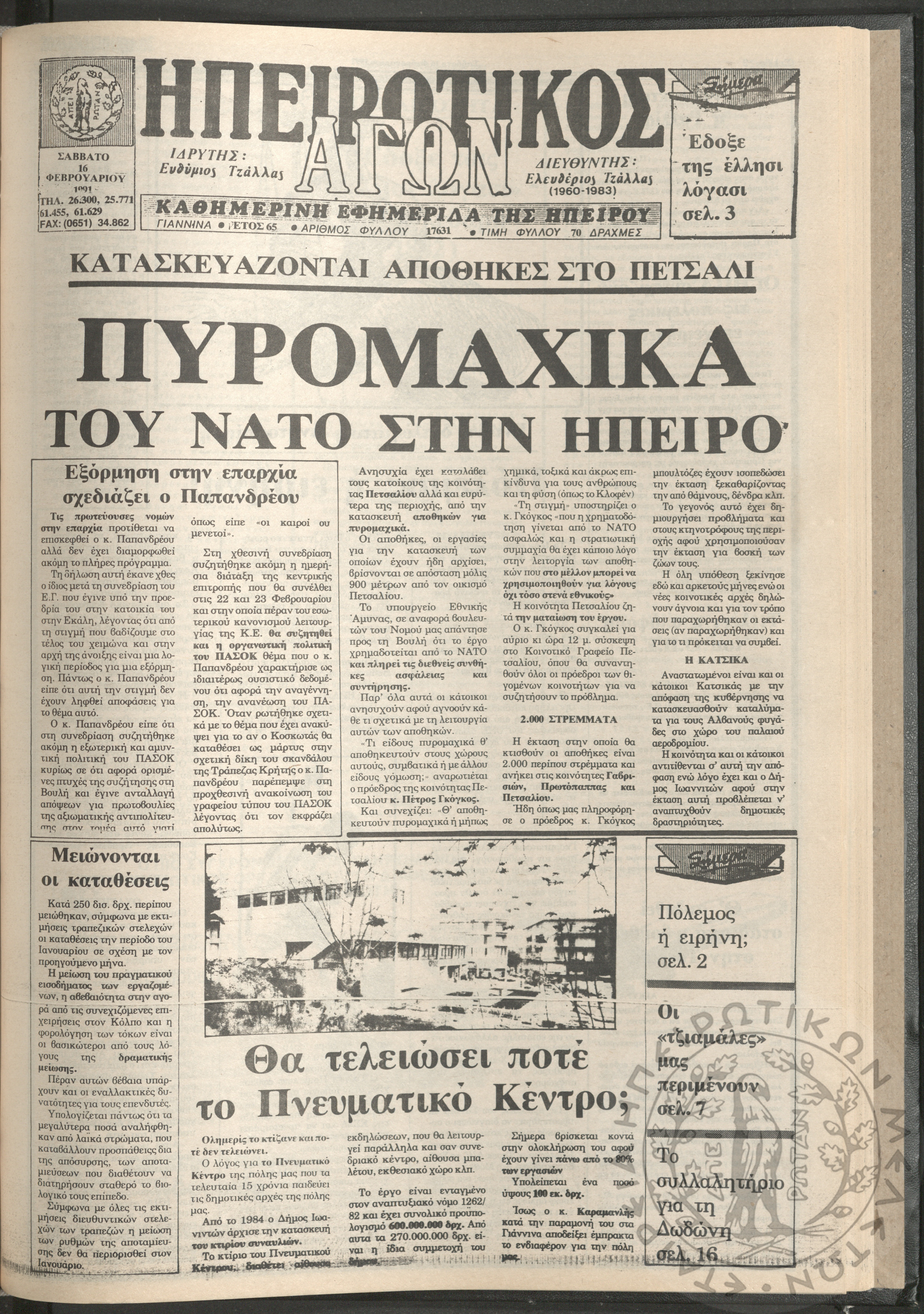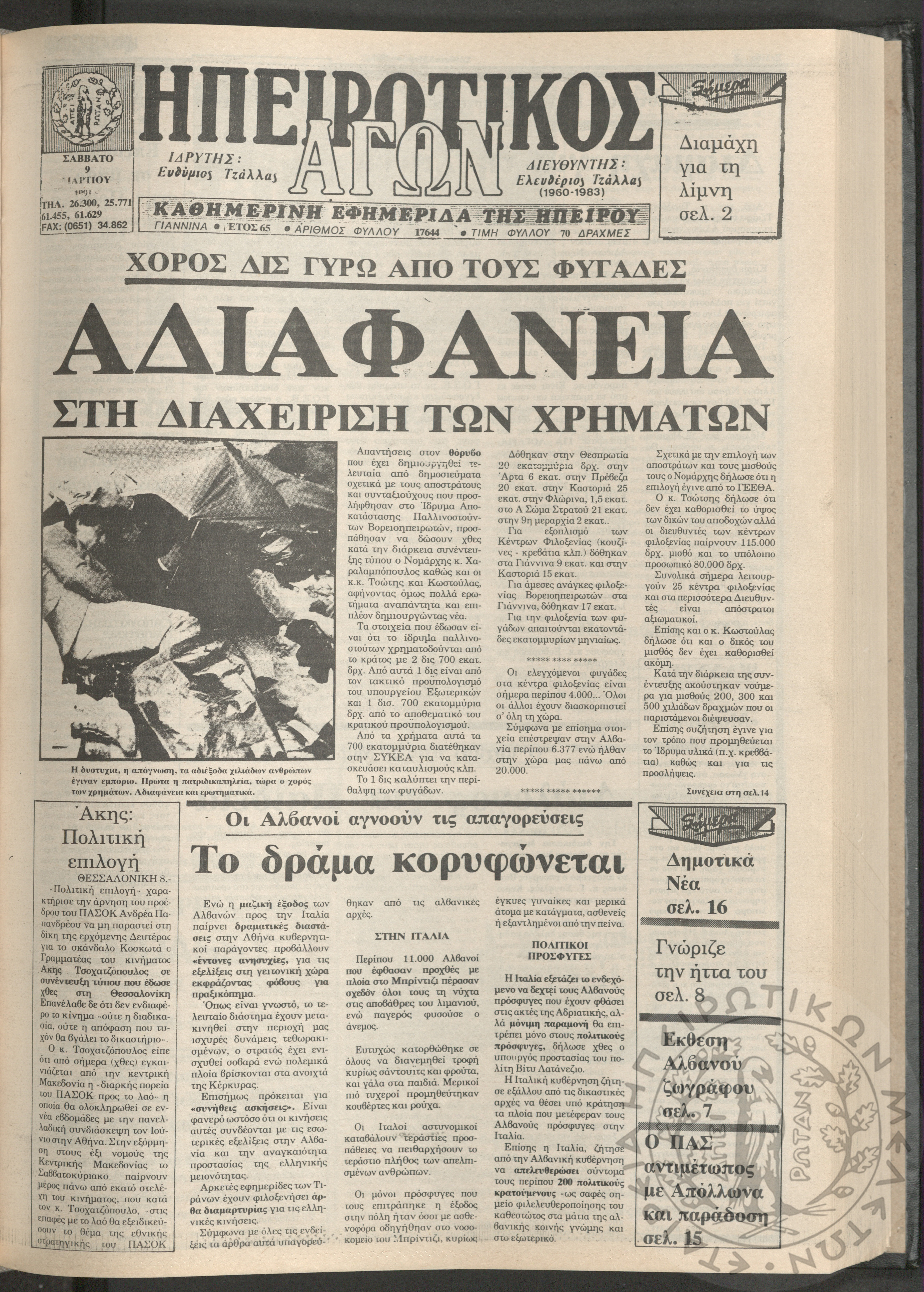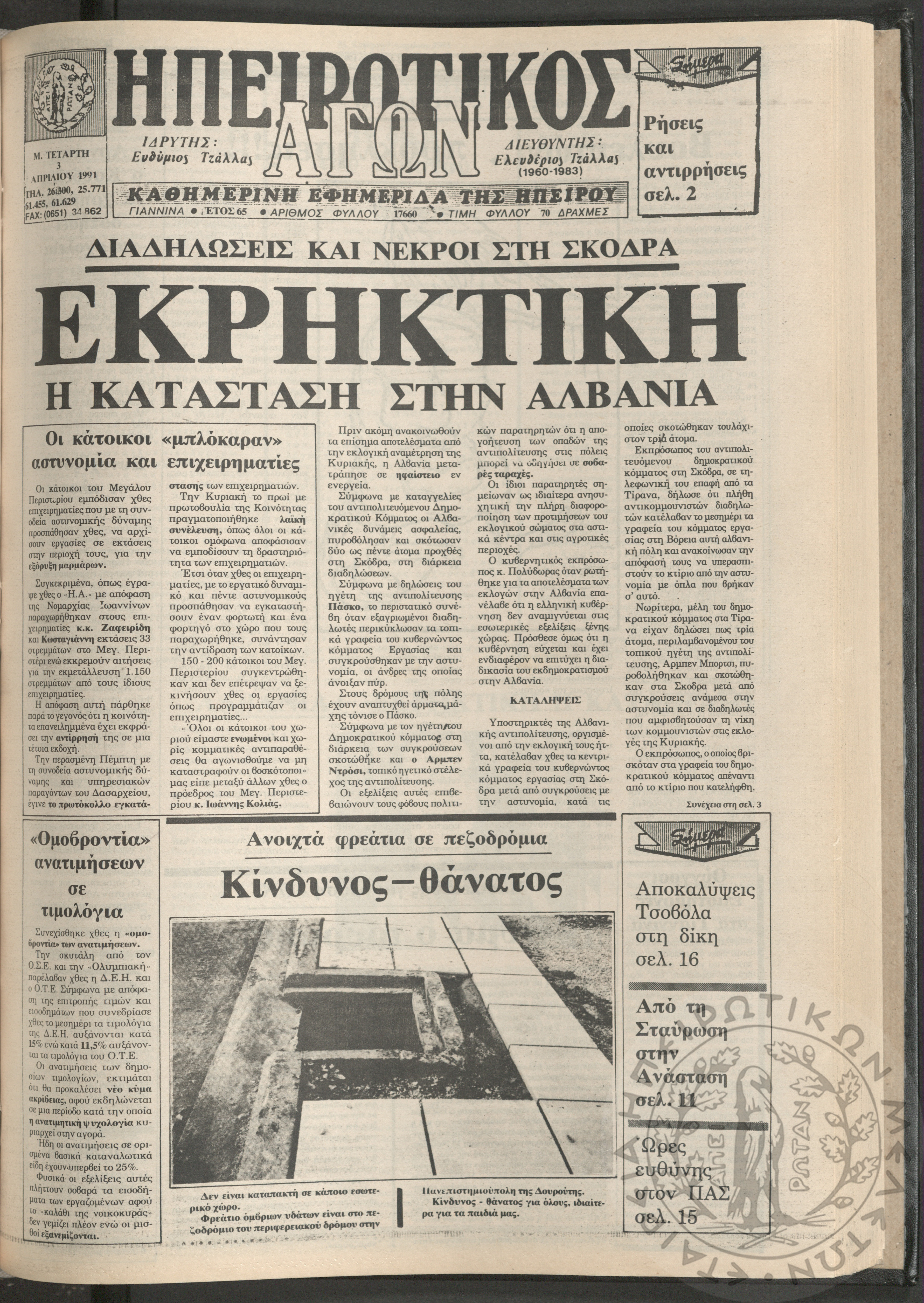 Ηπειρωτικός Αγών: η μεγαλυτέρα ηπειρωτική εφημερίς εκδιδόμενη καθημερινώς εν Ιωαννίνοις, 1978, φ. 13916Έτος 51, φ. 13916...