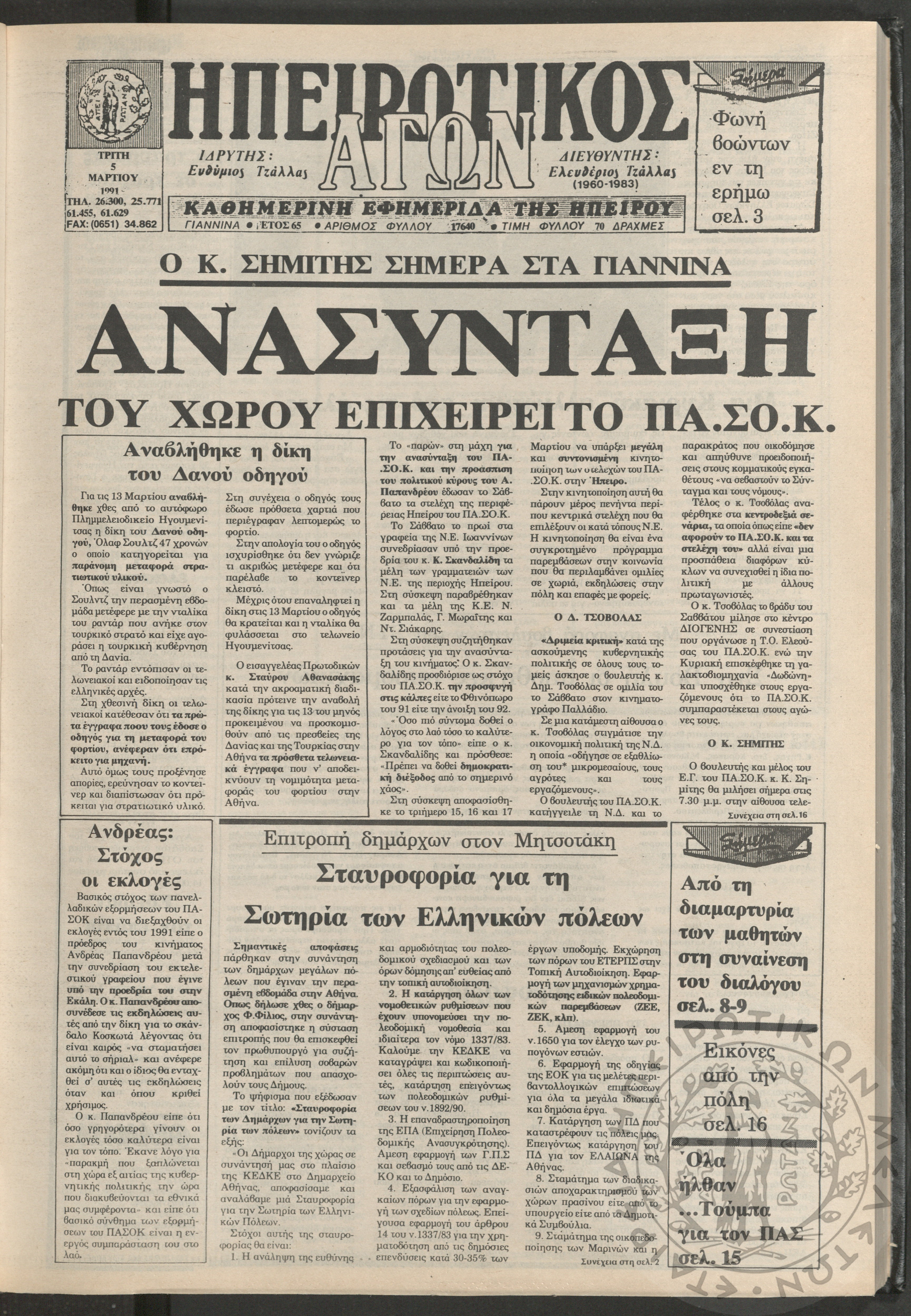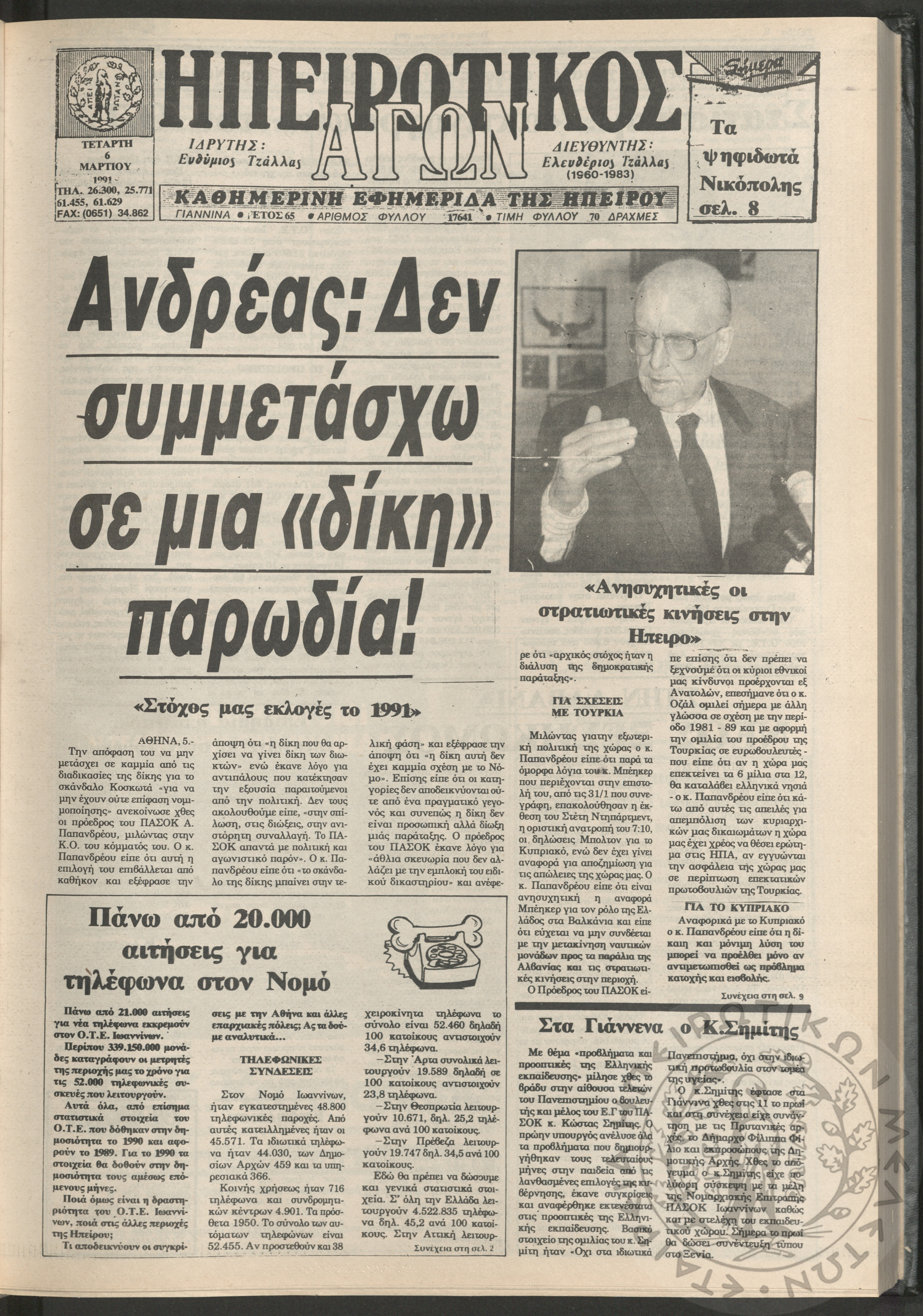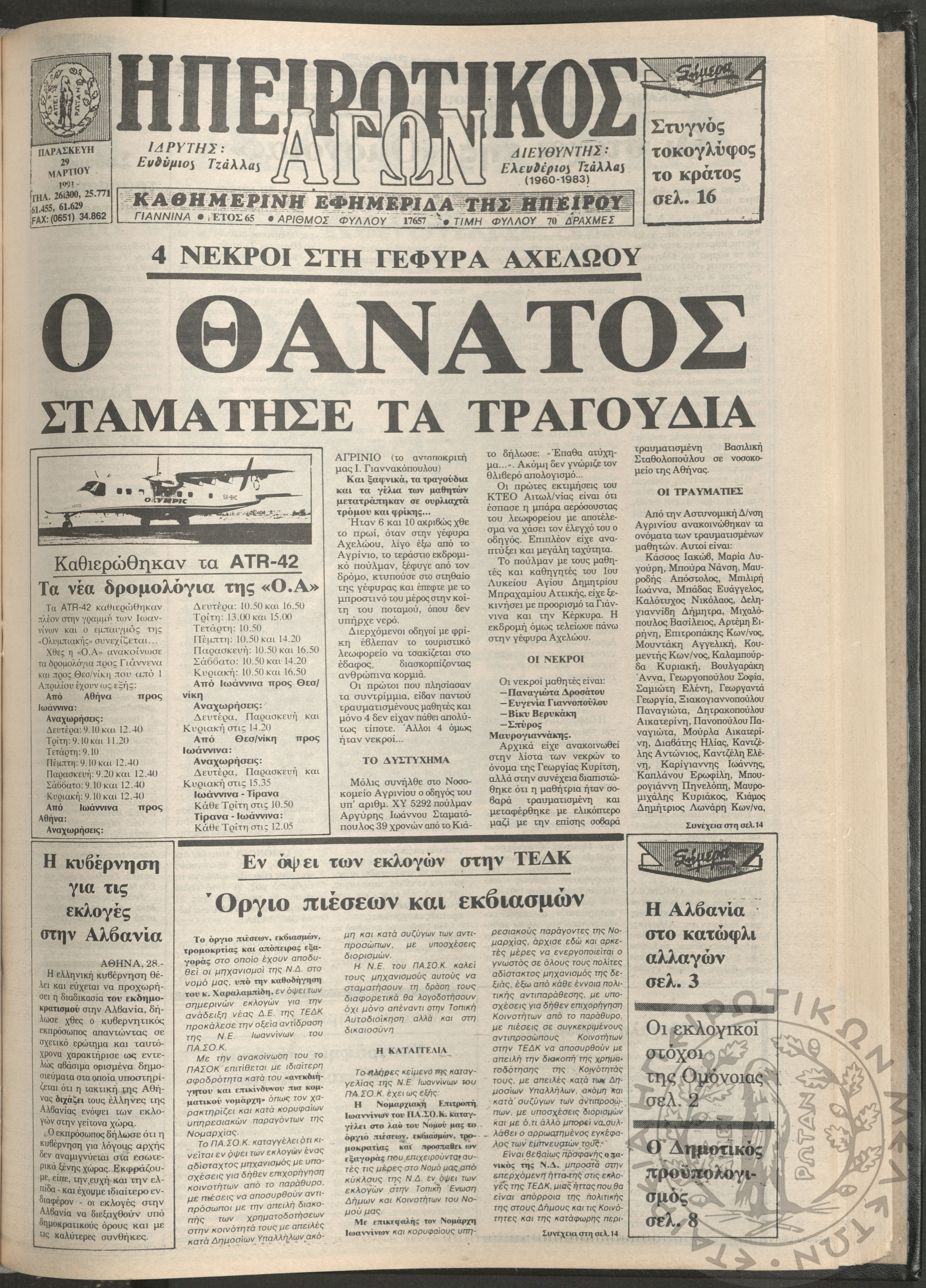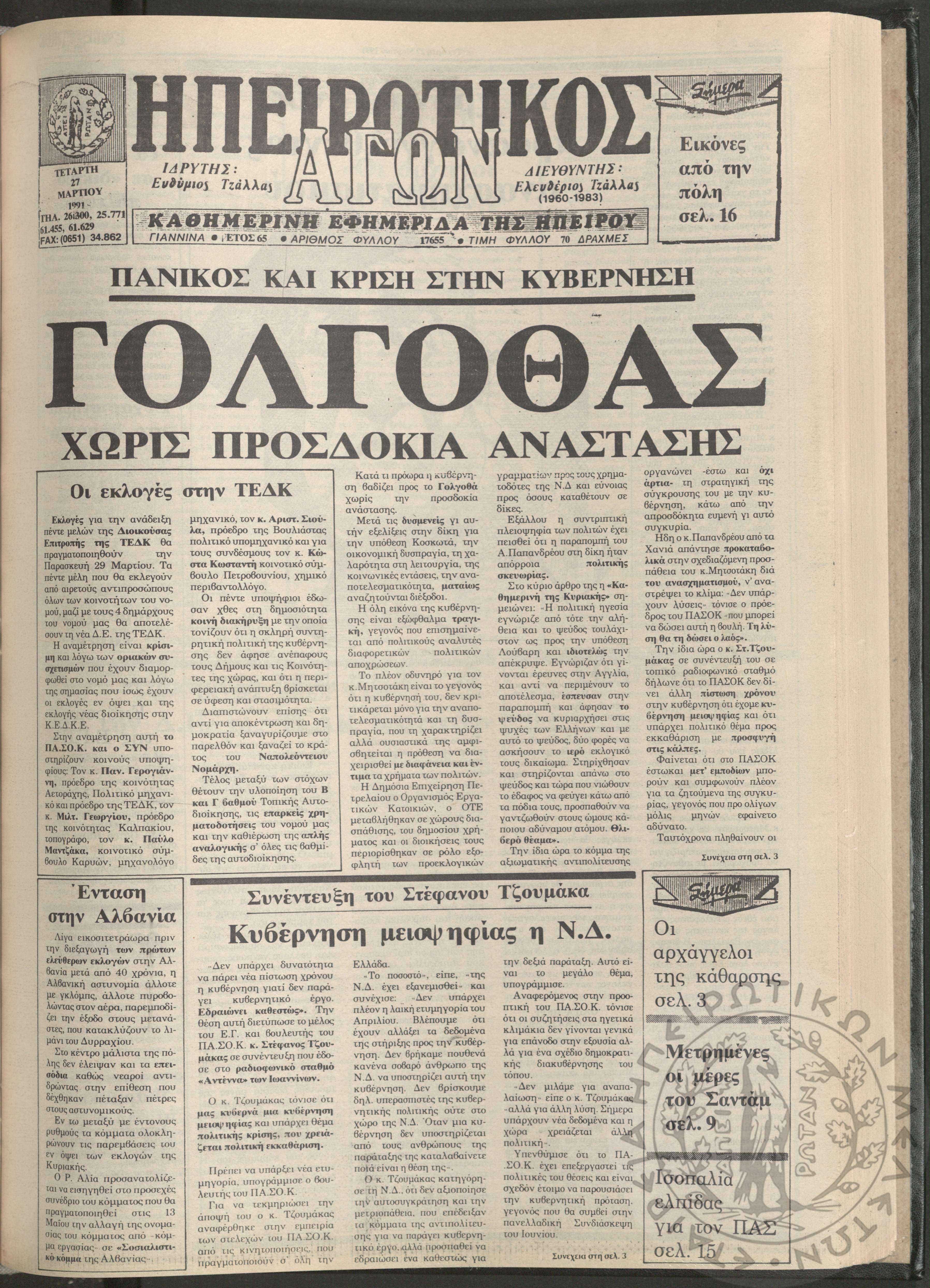 Ηπειρωτικός Αγών: η μεγαλυτέρα ηπειρωτική εφημερίς εκδιδόμενη καθημερινώς εν Ιωαννίνοις, 1978, φ. 13916Έτος 51, φ. 13916...