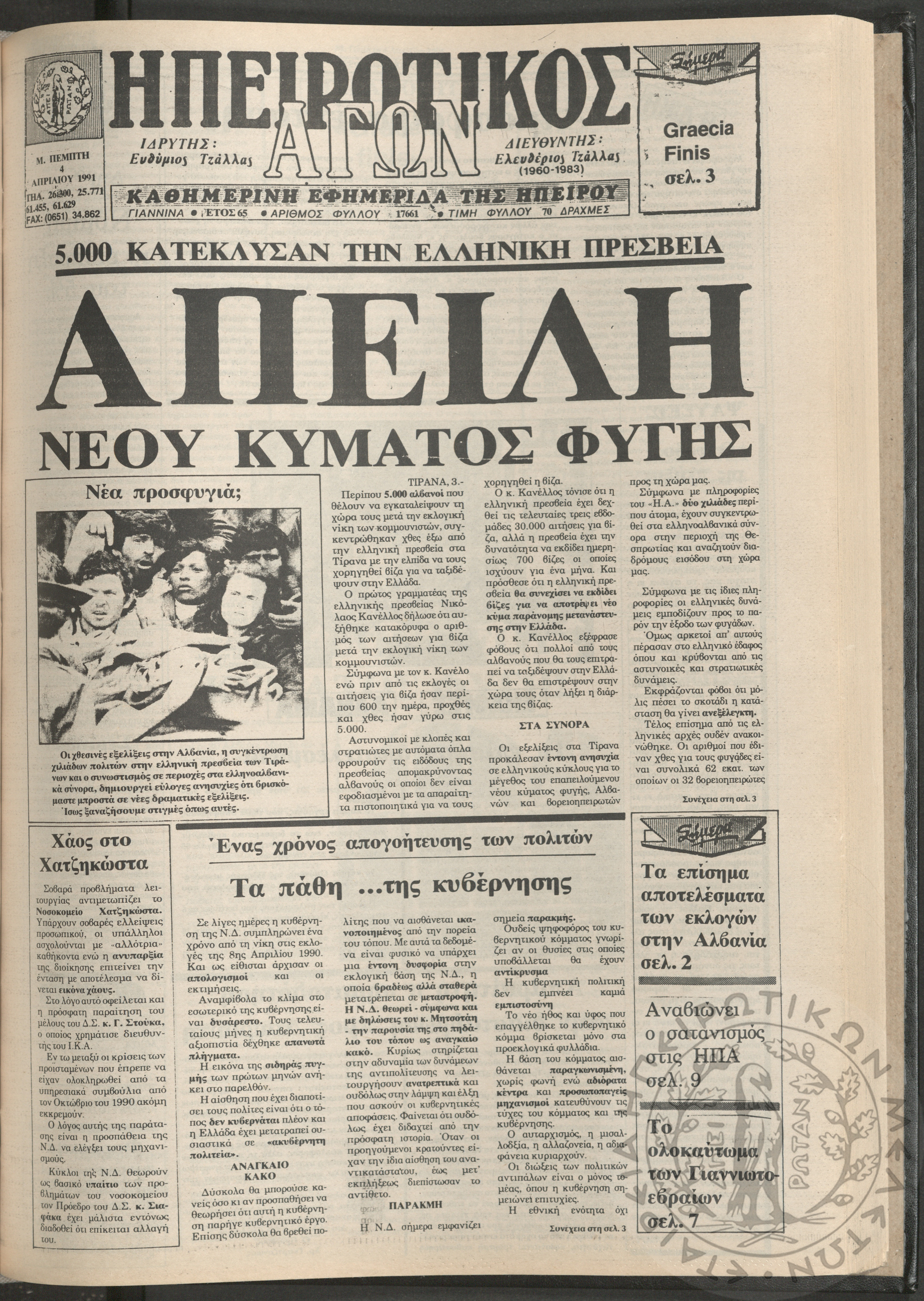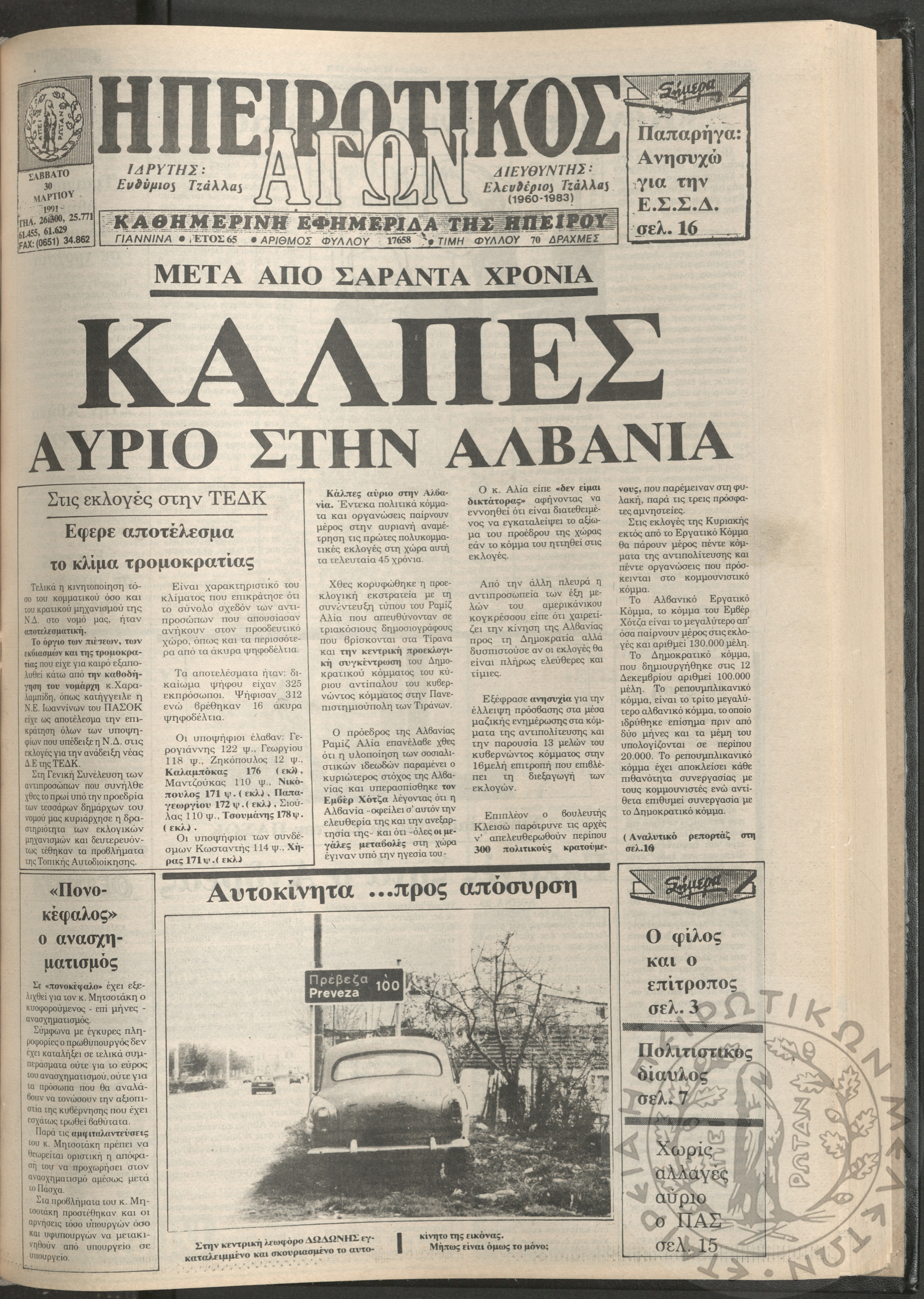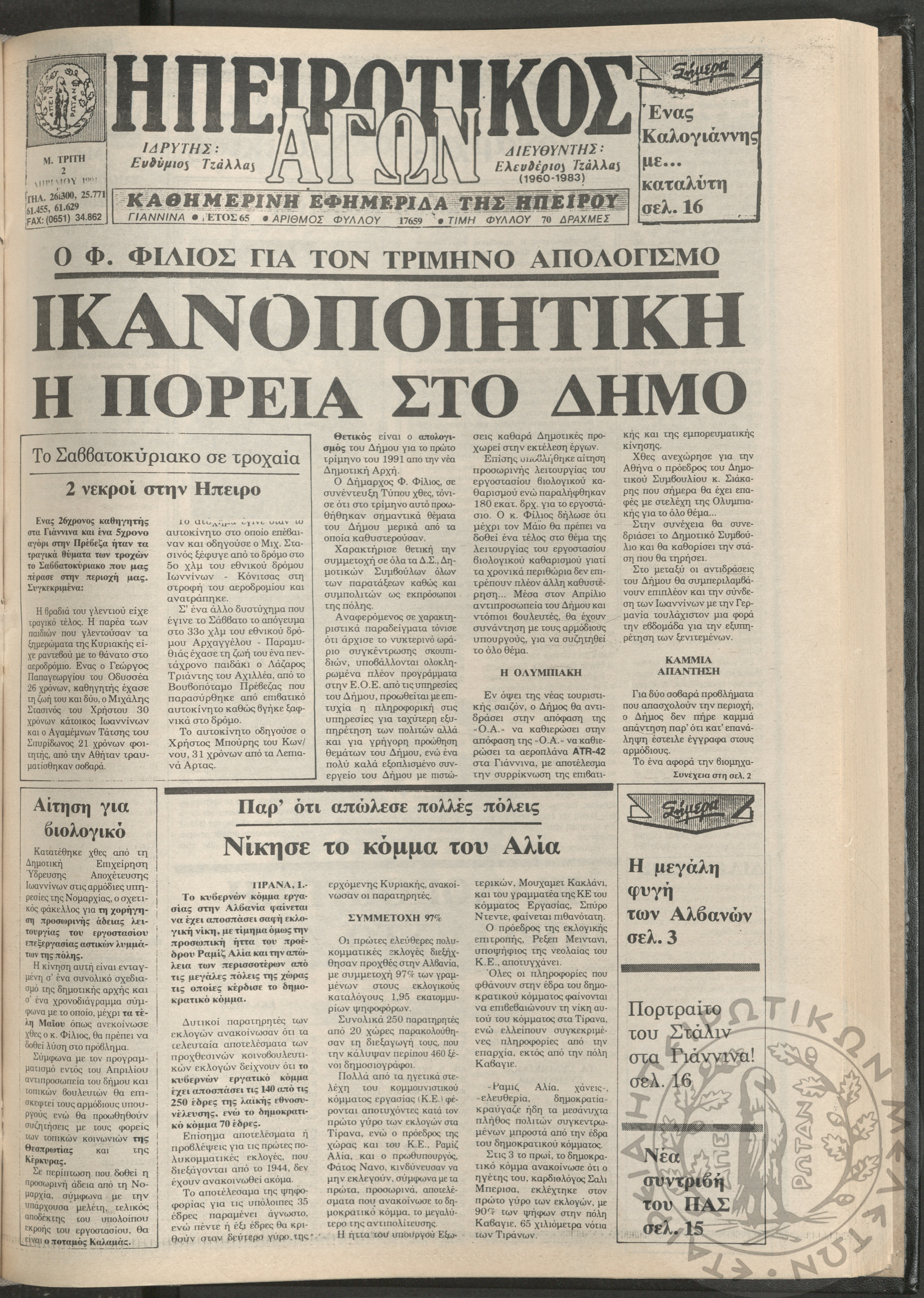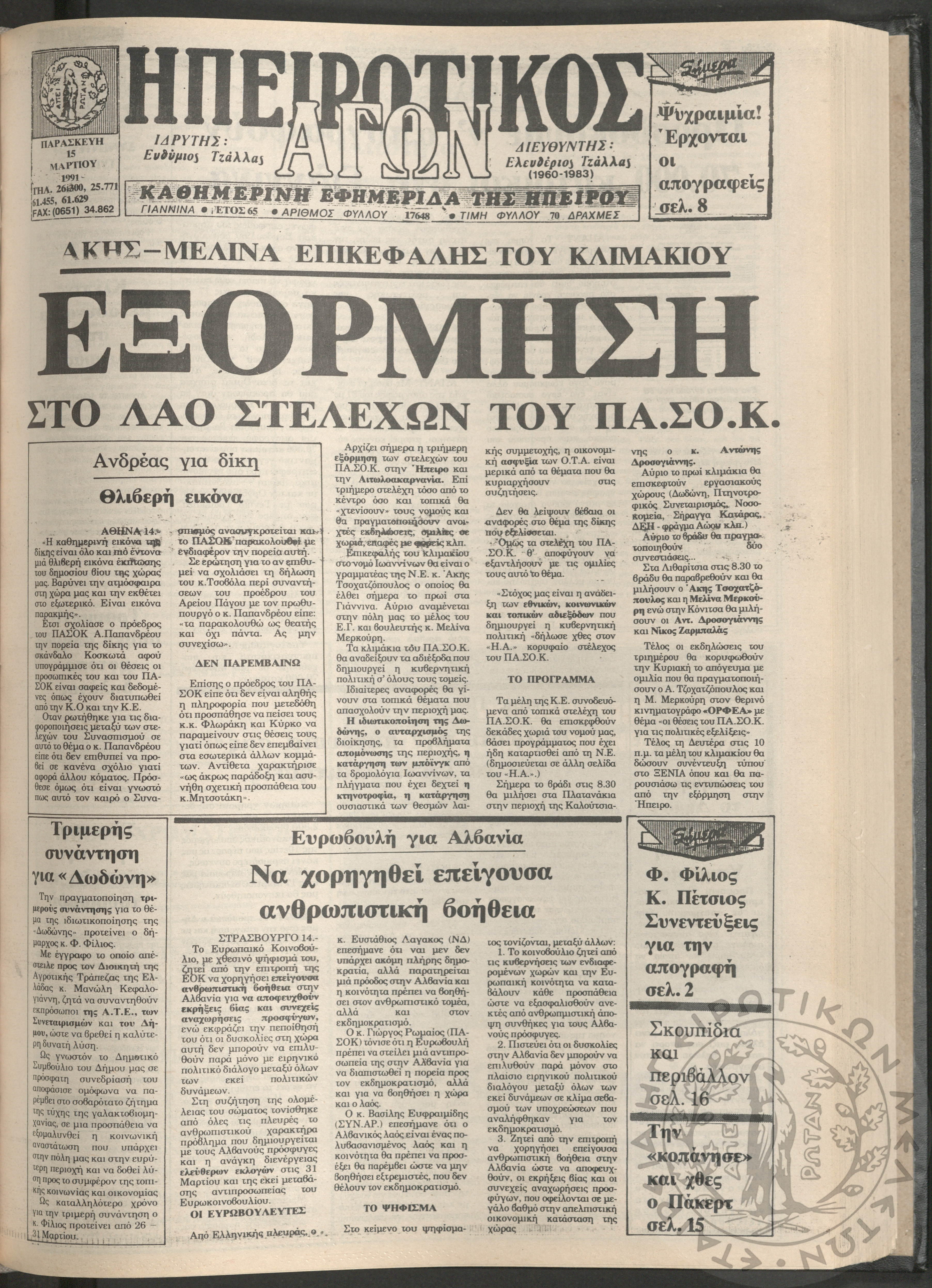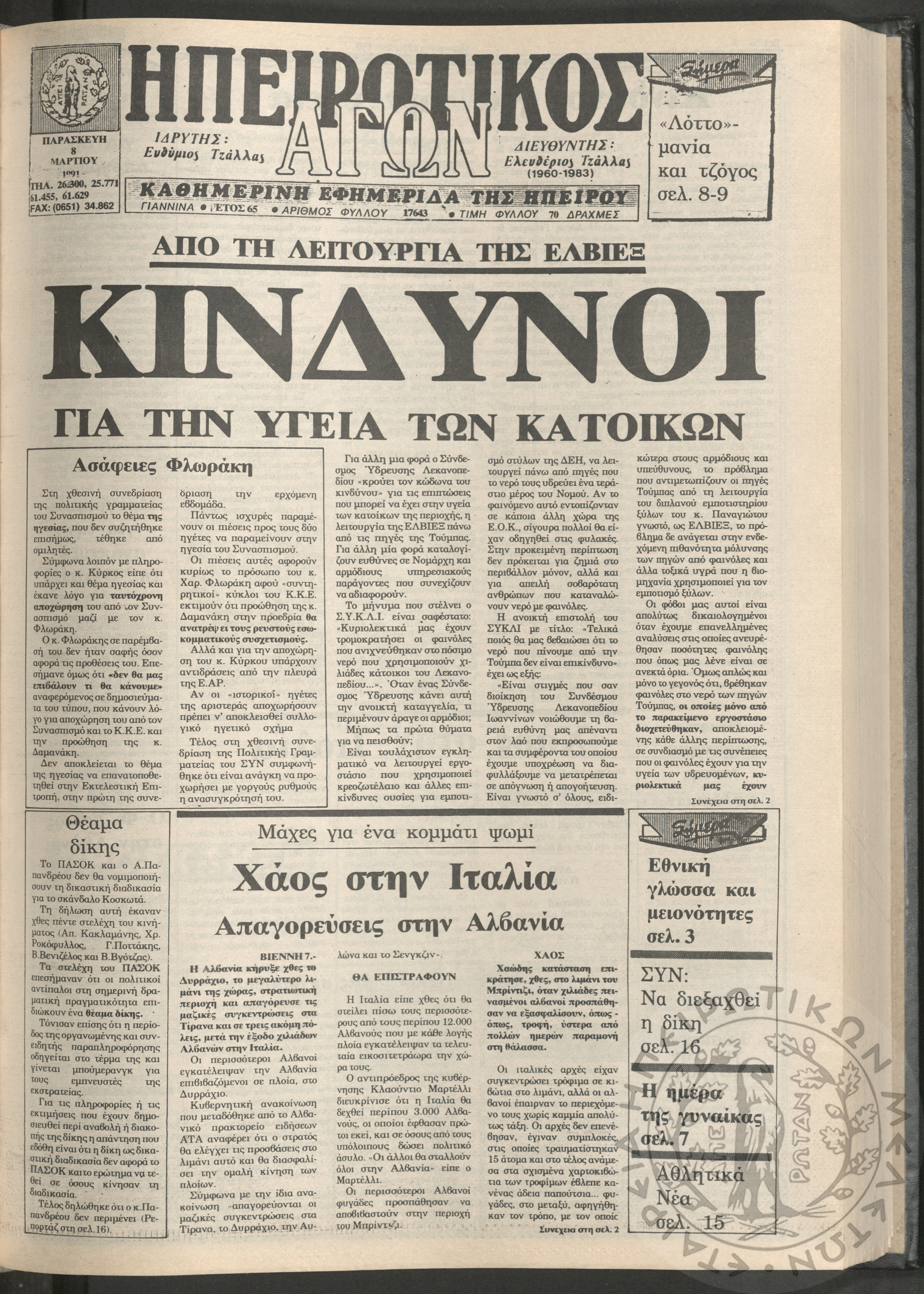 Ηπειρωτικός Αγών: η μεγαλυτέρα ηπειρωτική εφημερίς εκδιδόμενη καθημερινώς εν Ιωαννίνοις, 1978, φ. 13916Έτος 51, φ. 13916...