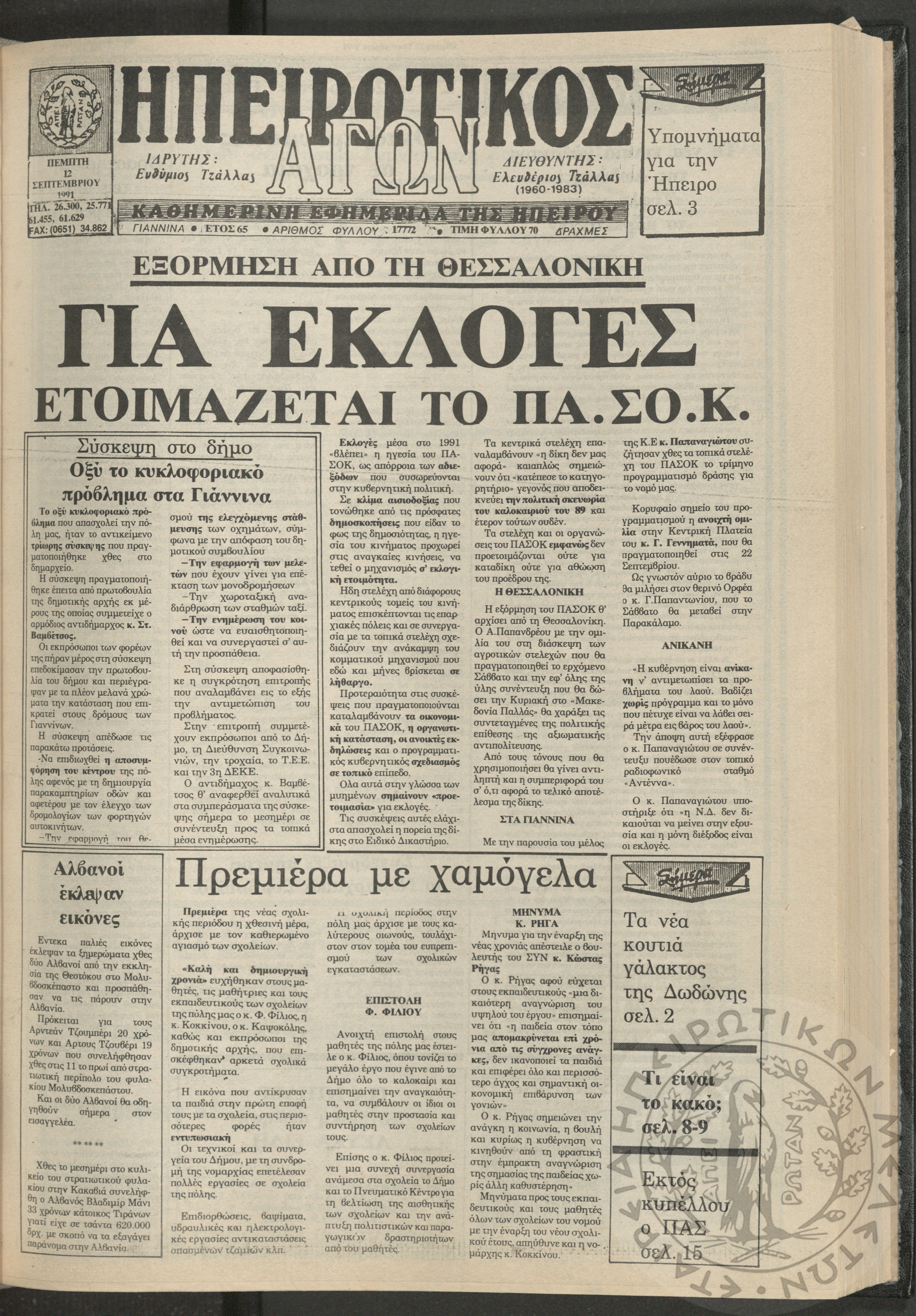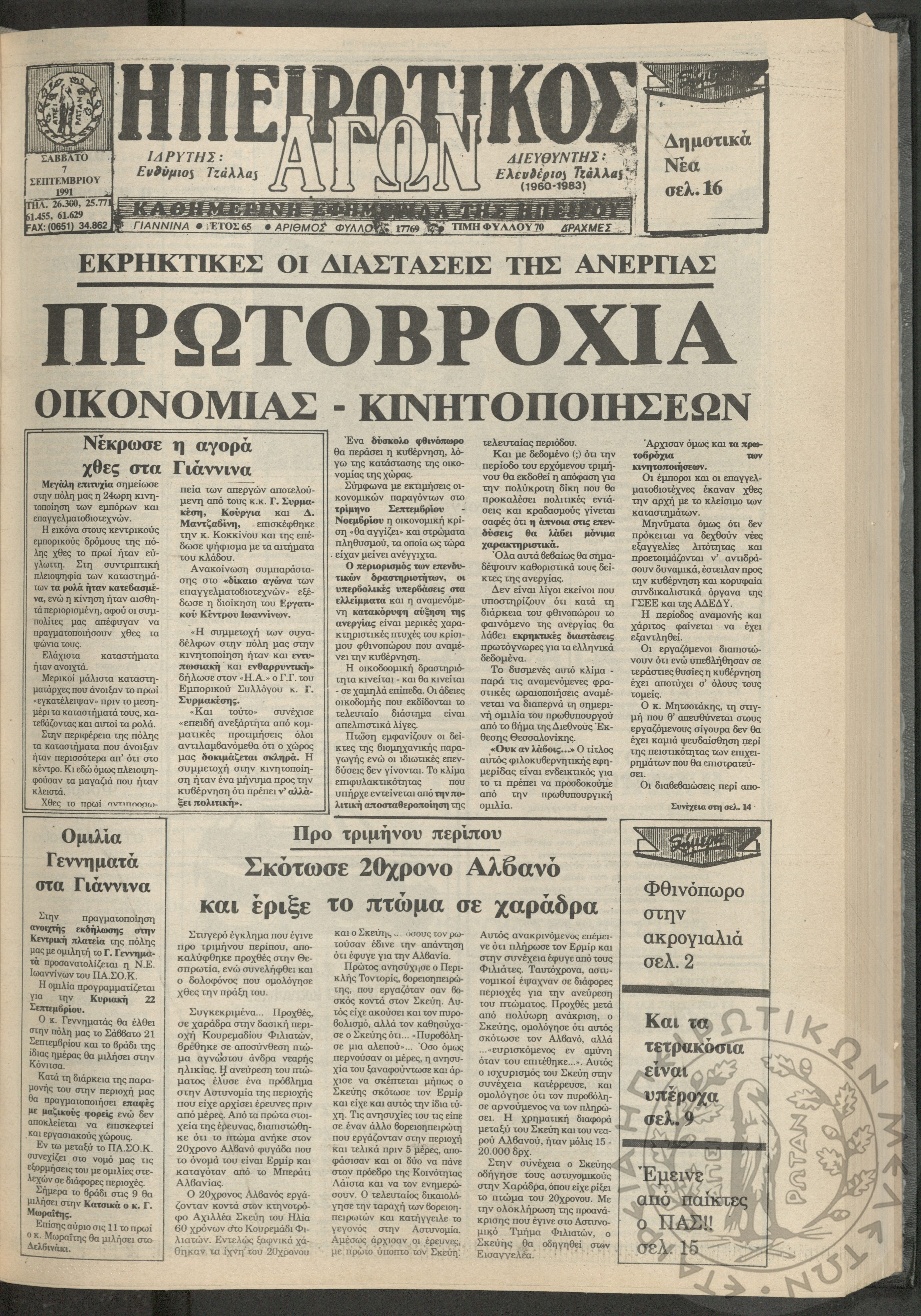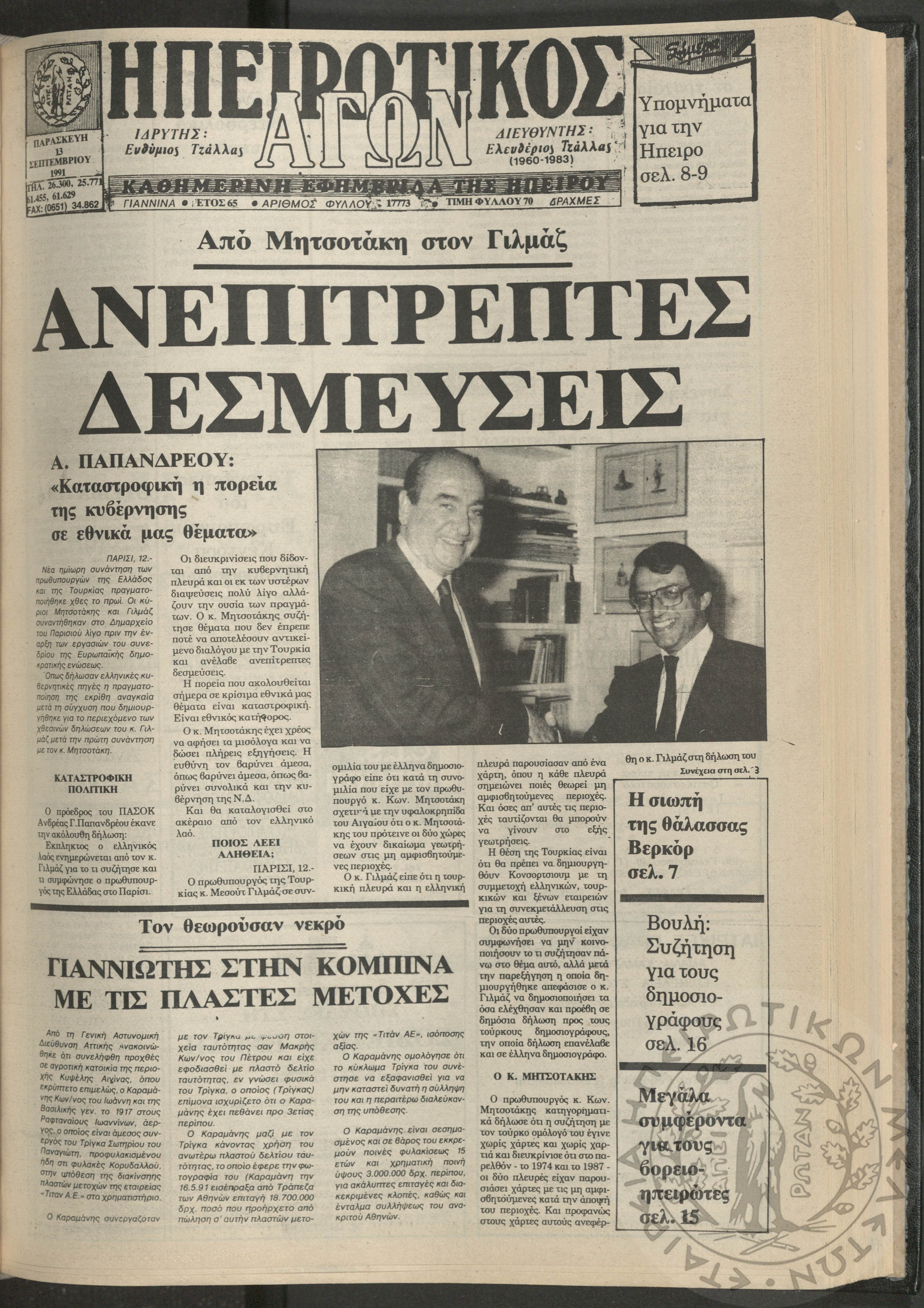 Ηπειρωτικός Αγών: καθημερινή εφημερίδα της Ηπείρου, 1991, φ. 17777