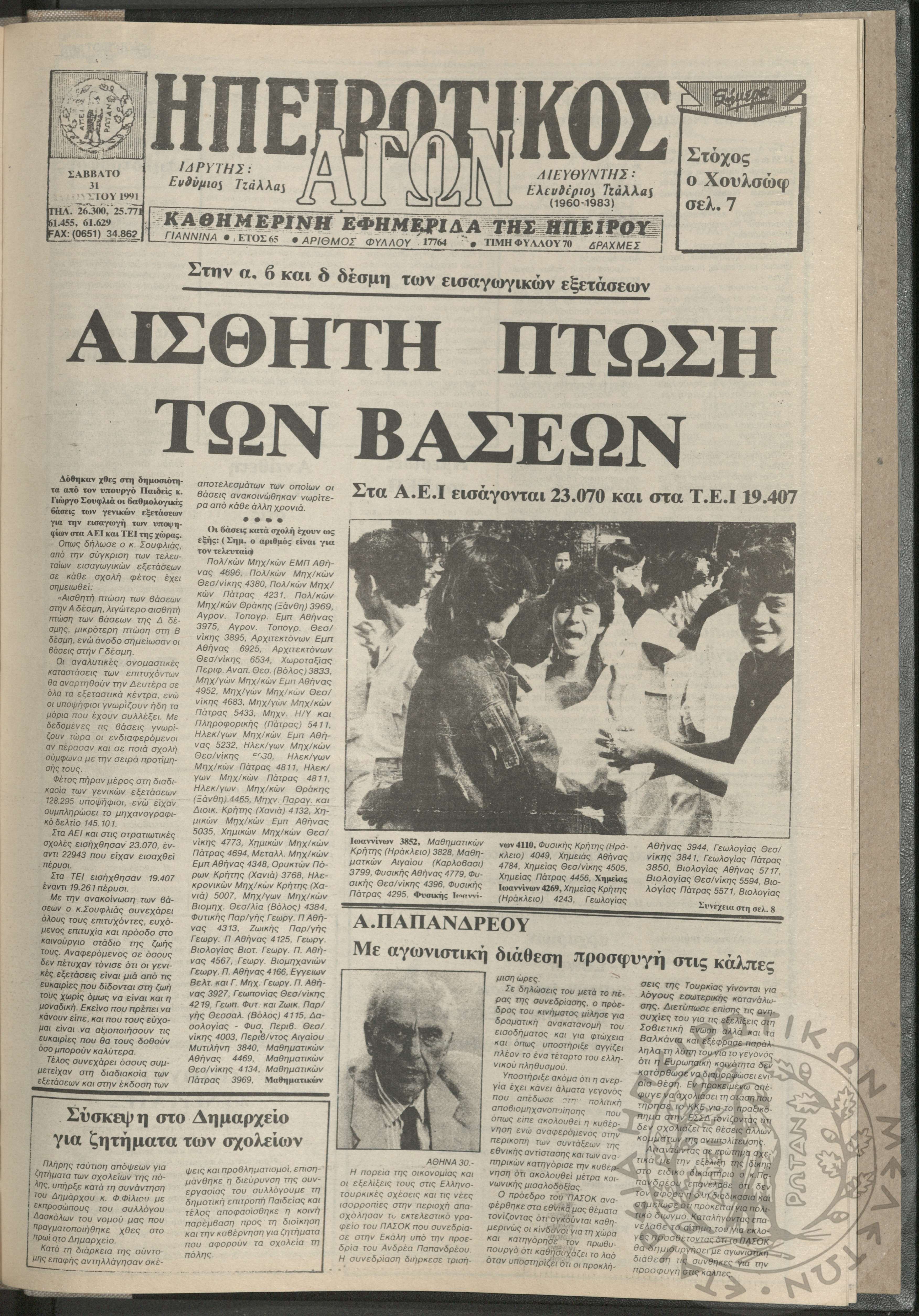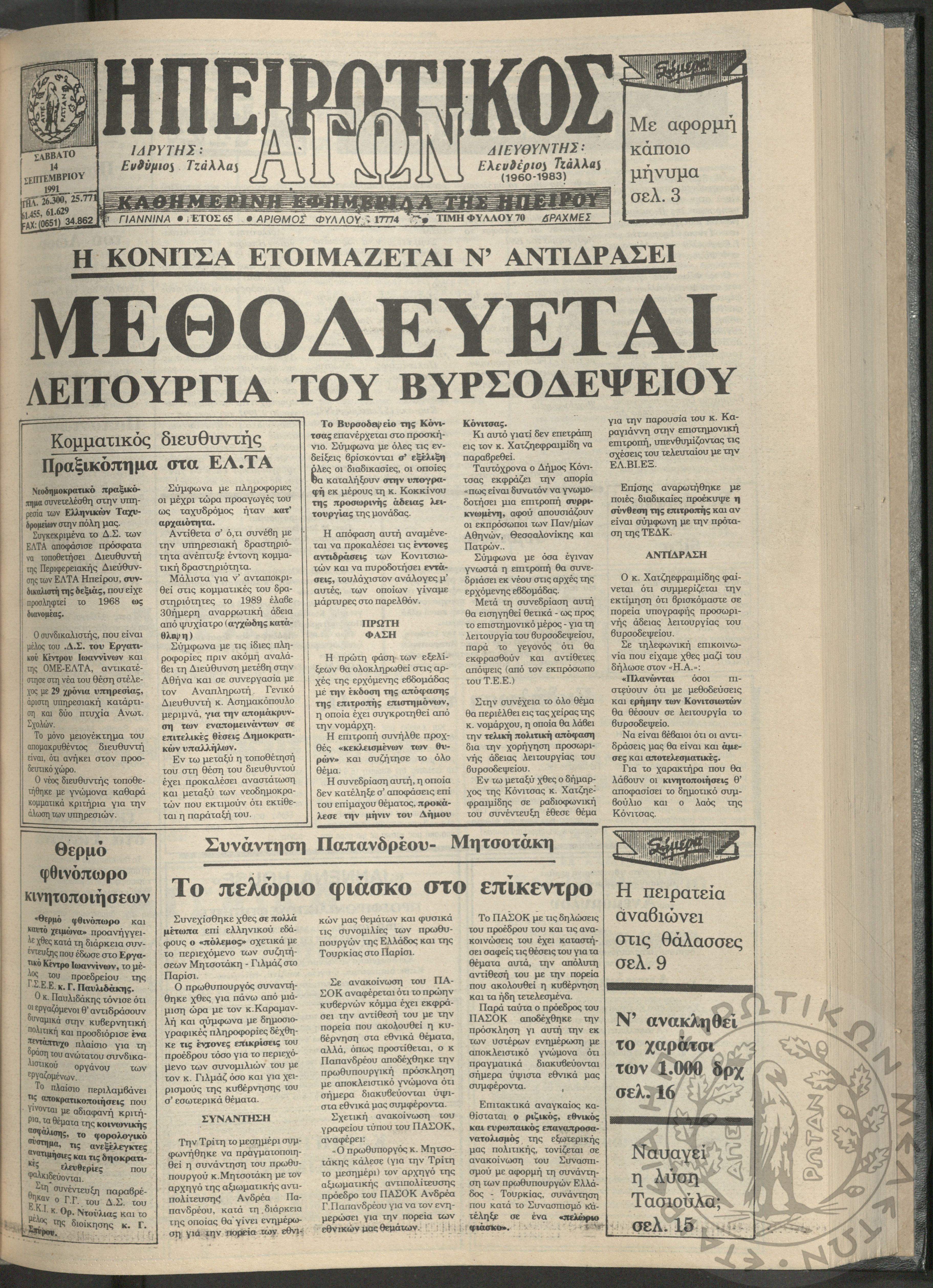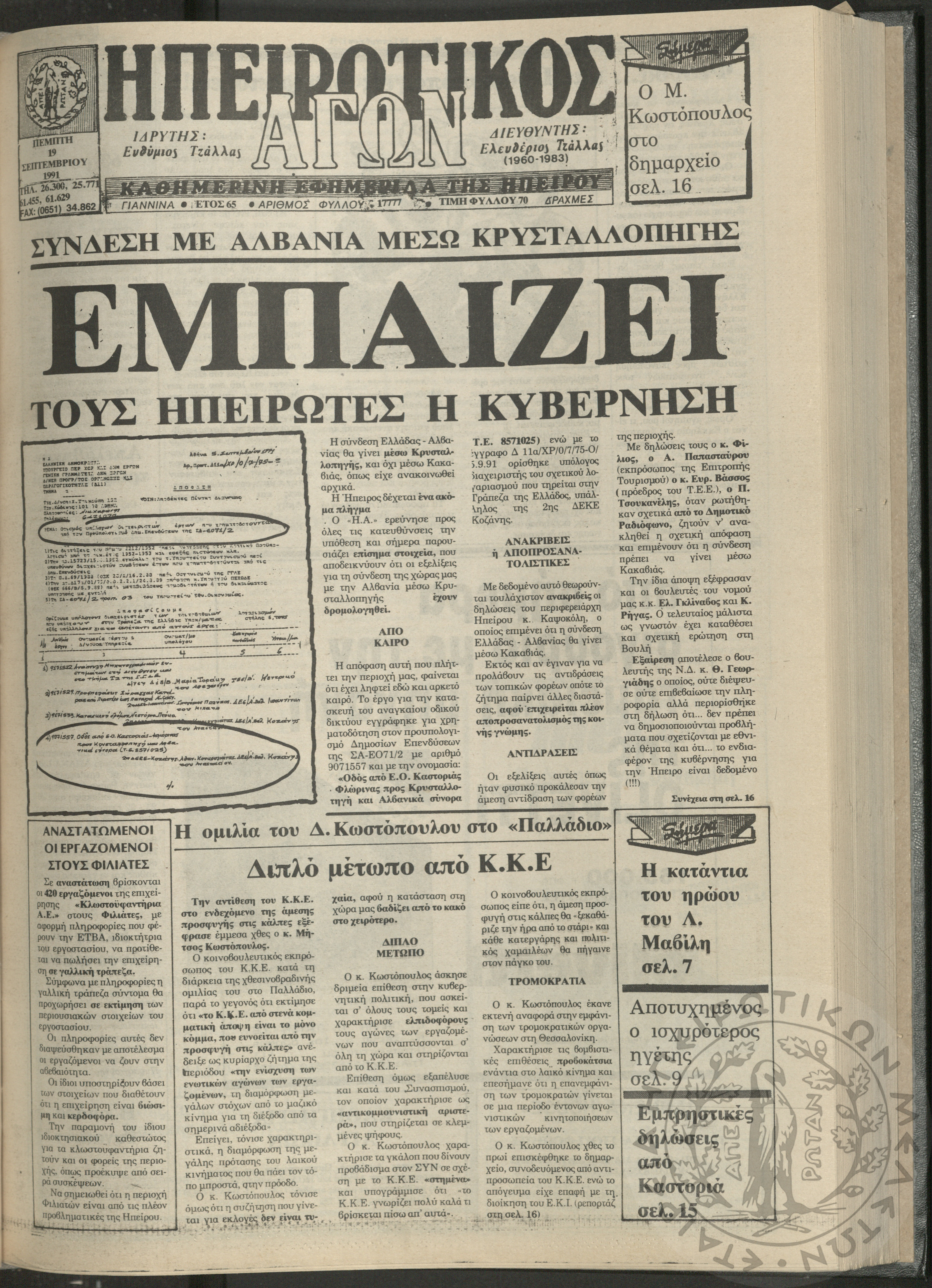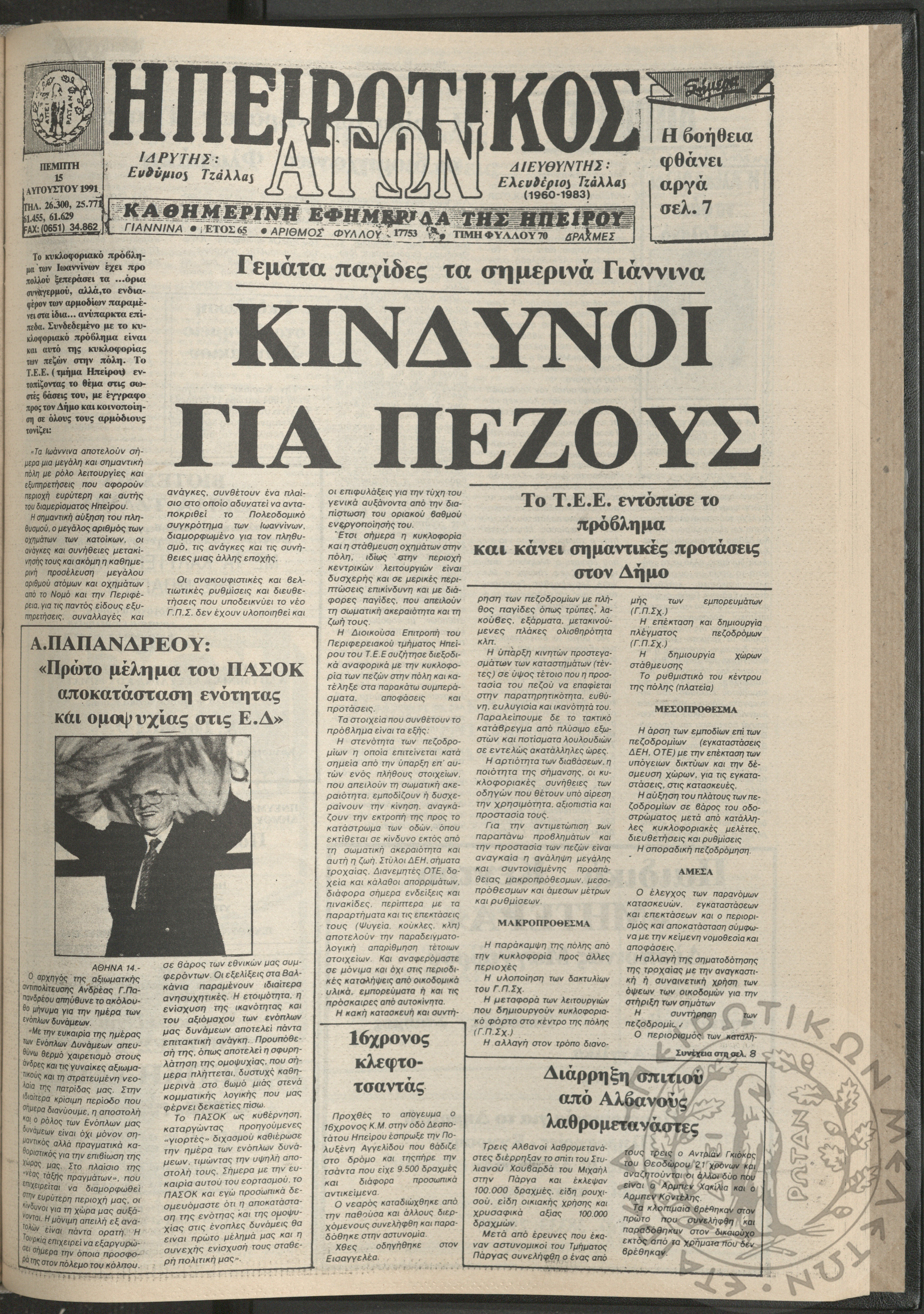 Ηπειρωτικός Αγών: καθημερινή εφημερίδα της Ηπείρου, 1991, φ. 17777