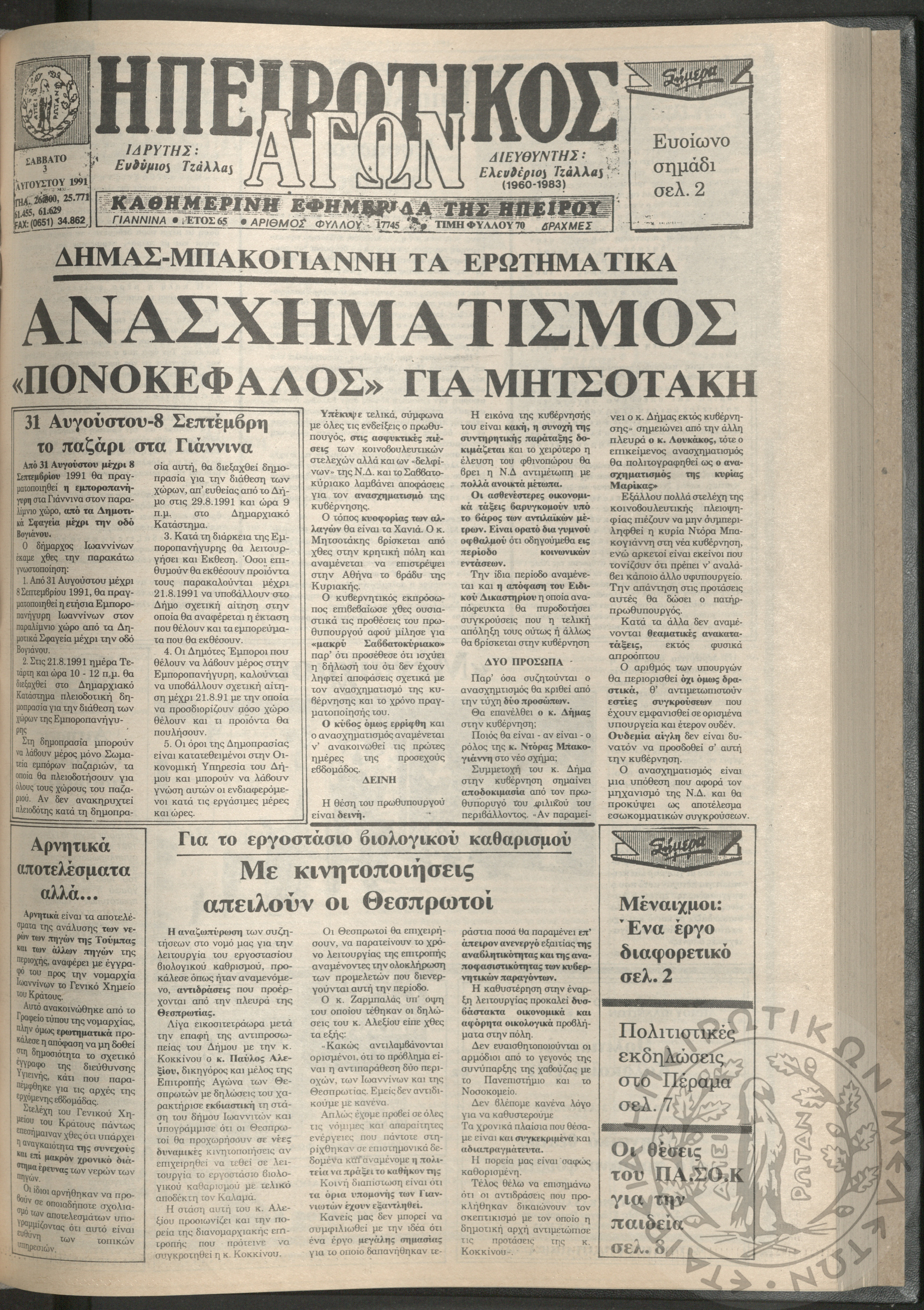 Ηπειρωτικός Αγών: καθημερινή εφημερίδα της Ηπείρου, 1991, φ. 17744