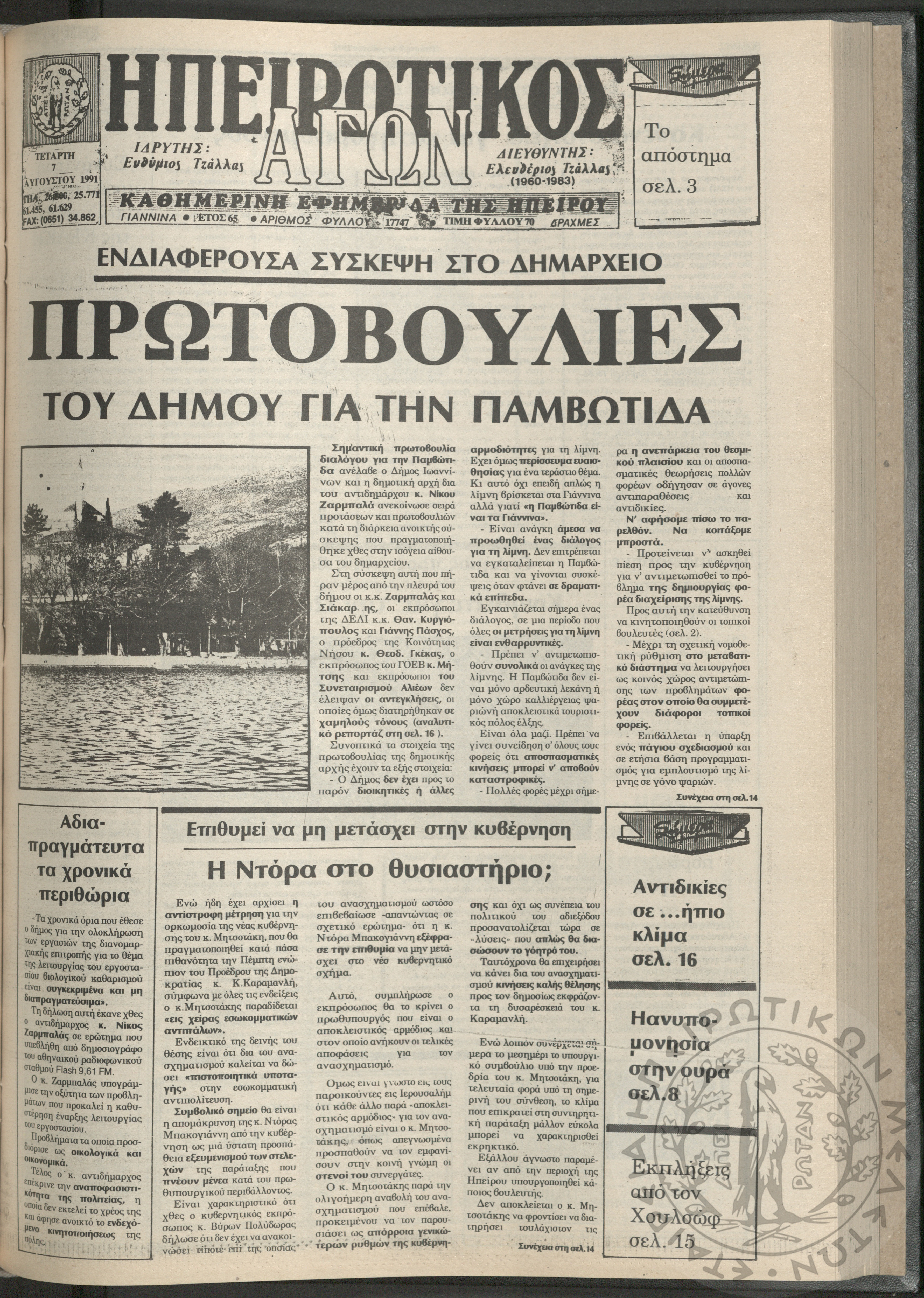 Ηπειρωτικός Αγών: καθημερινή εφημερίδα της Ηπείρου, 1991, φ. 17779