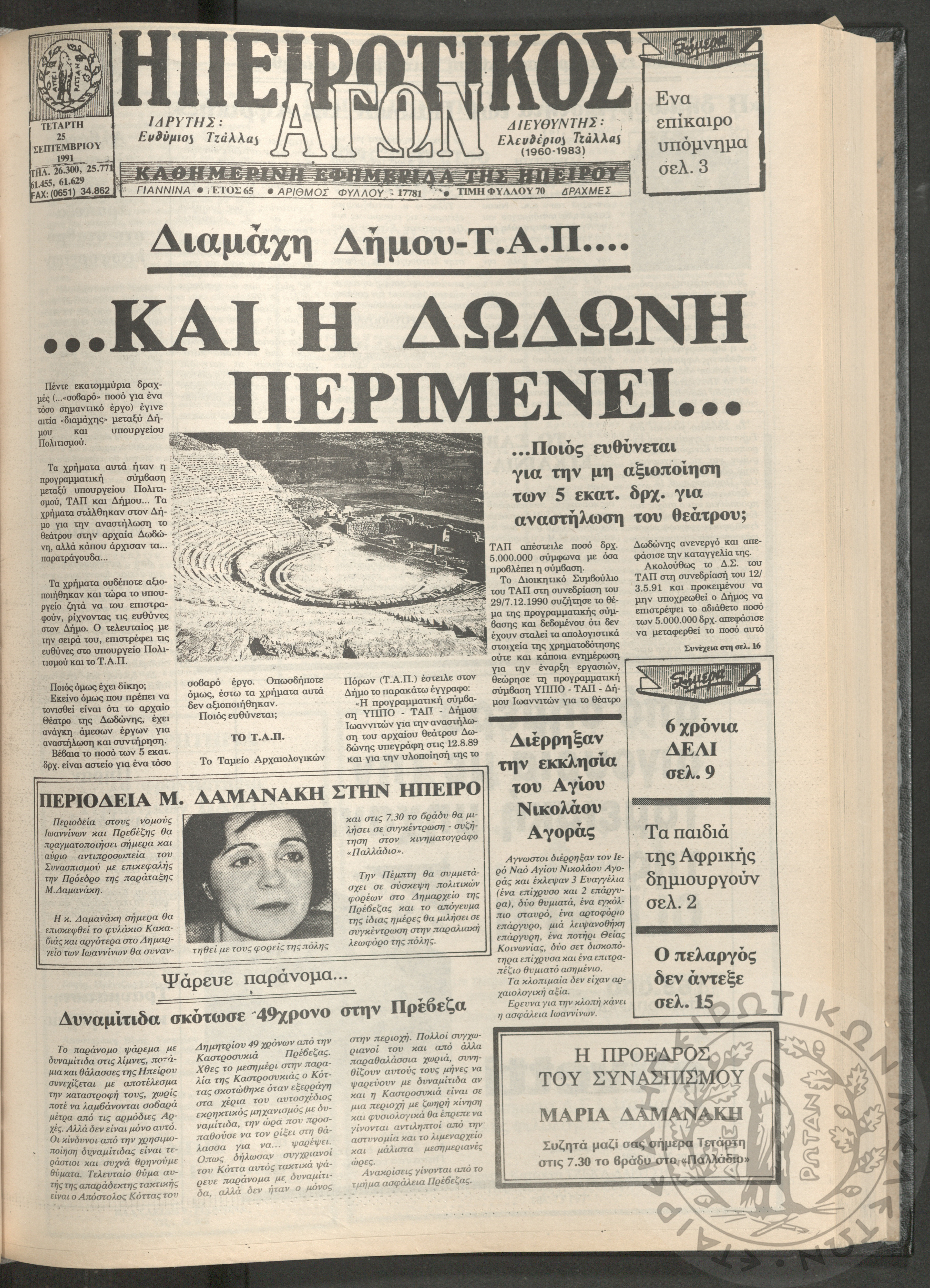 Ηπειρωτικός Αγών: καθημερινή εφημερίδα της Ηπείρου, 1991, φ. 17751