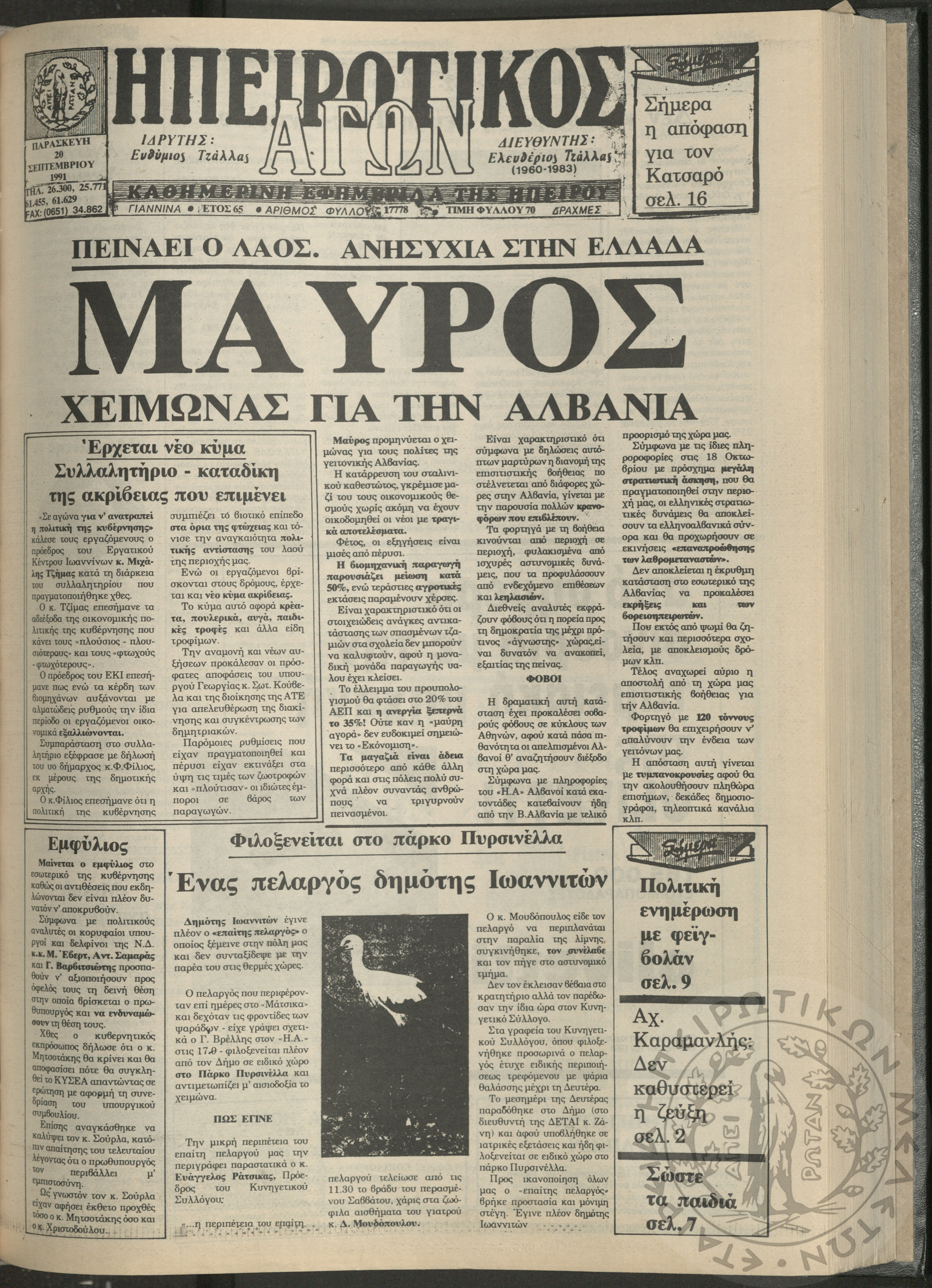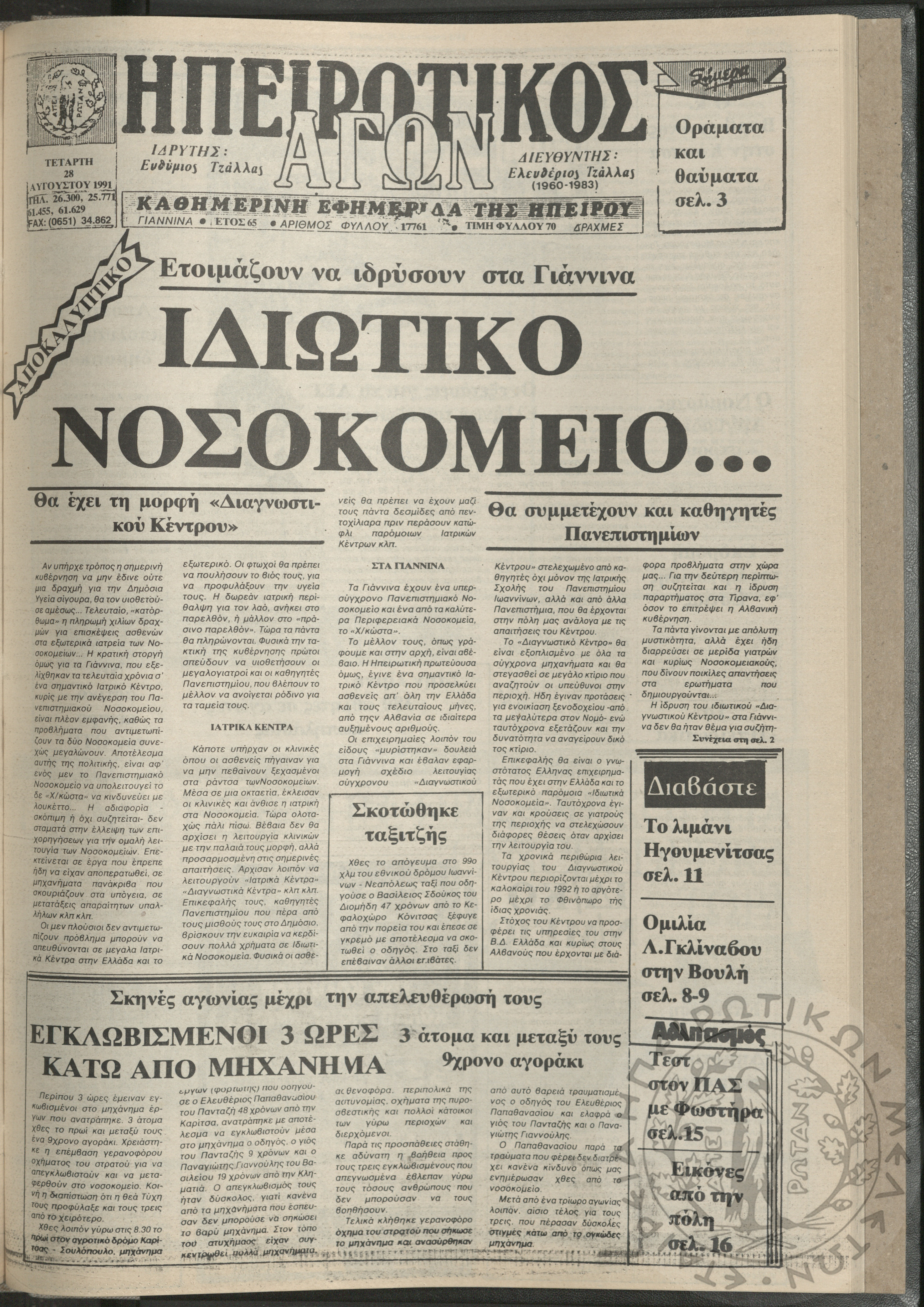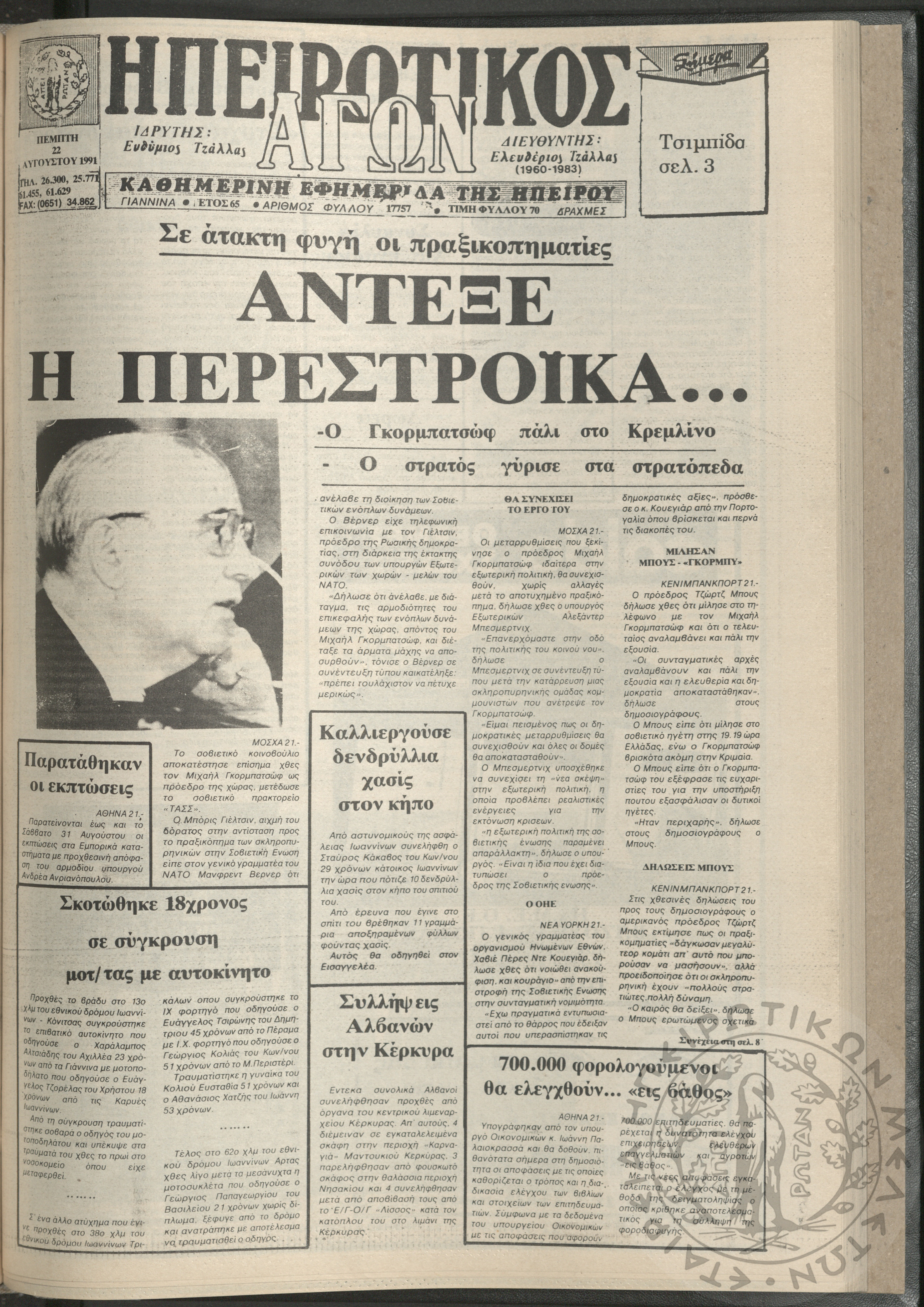 Ηπειρωτικός Αγών: καθημερινή εφημερίδα της Ηπείρου, 1991, φ. 17761