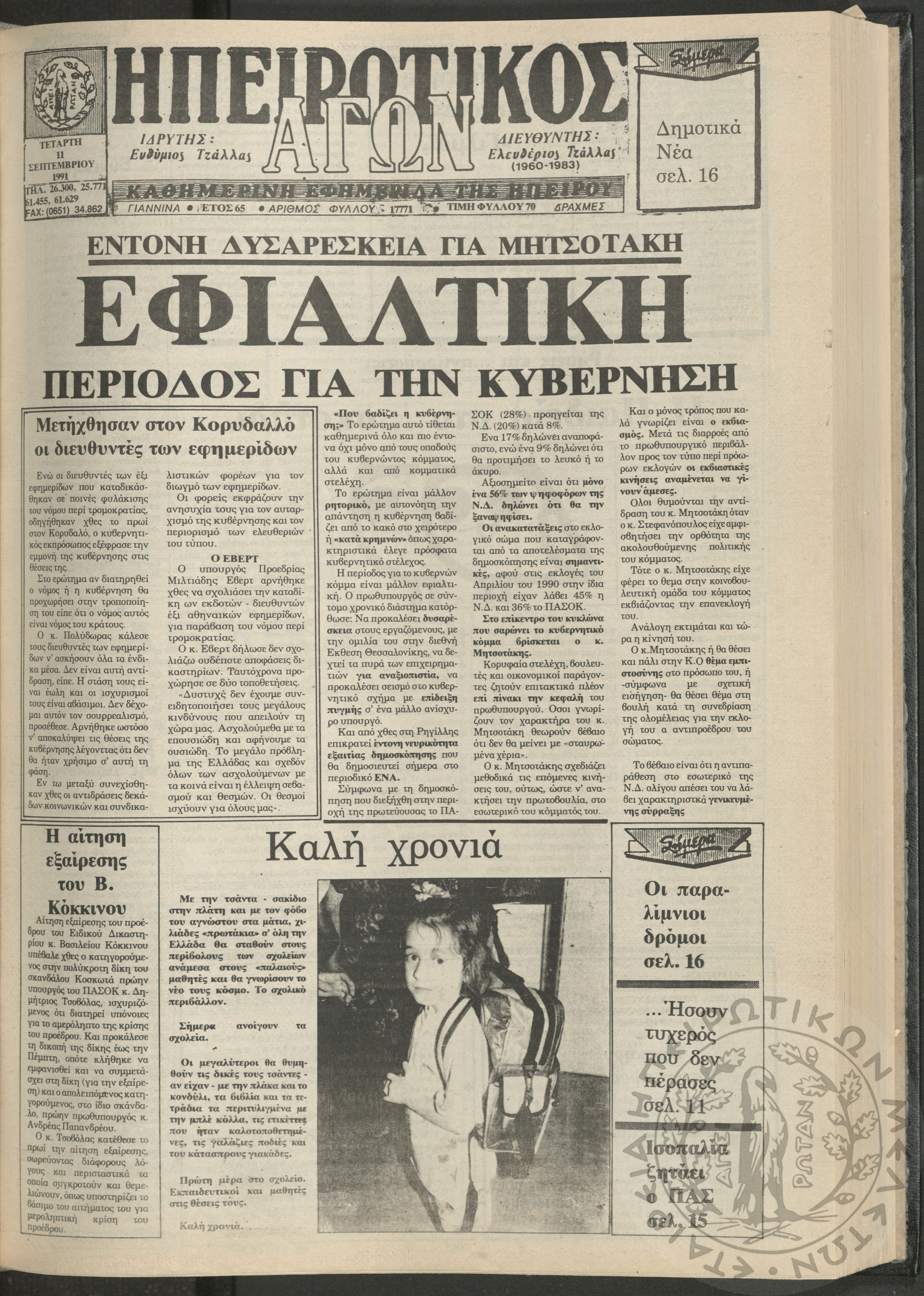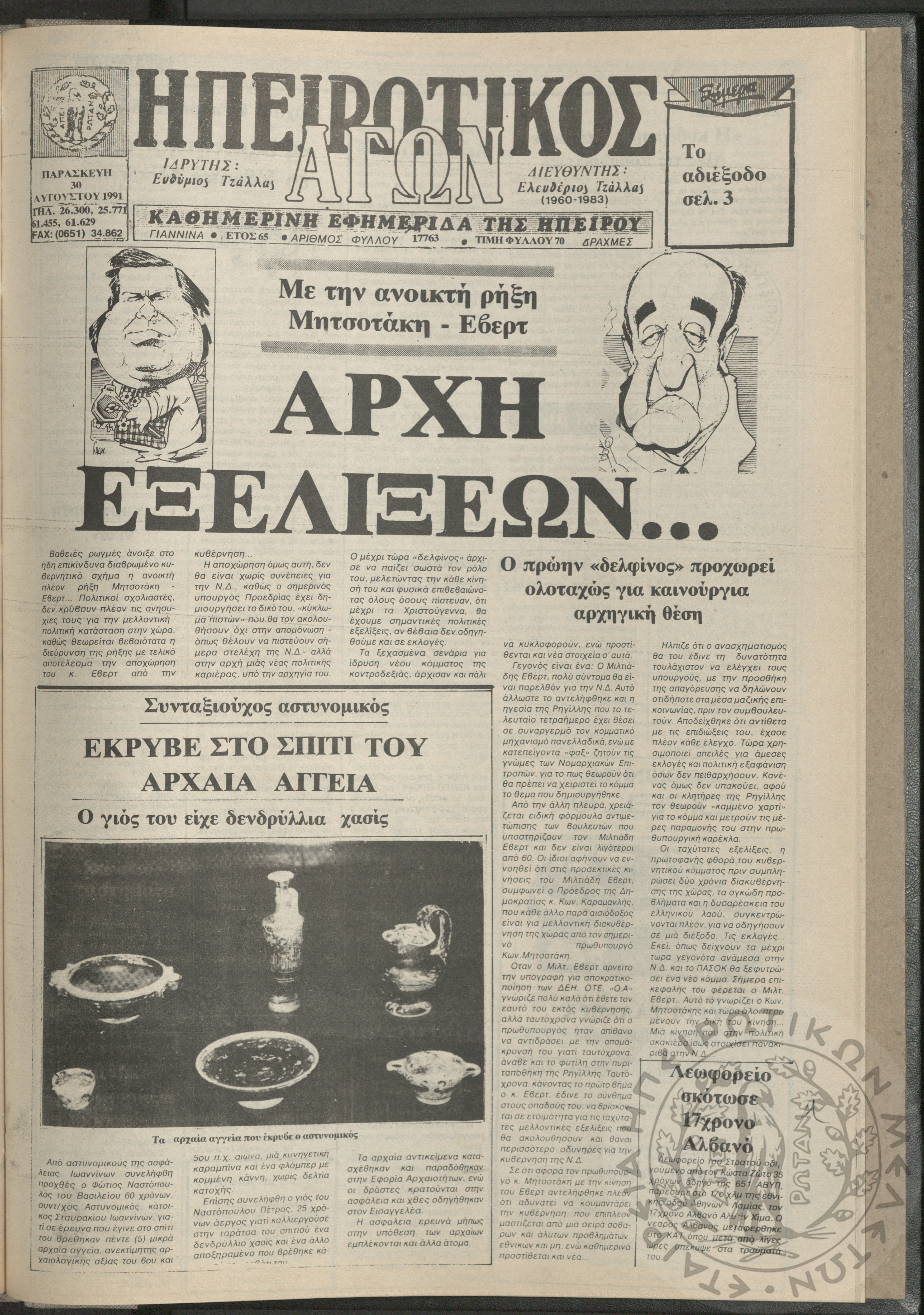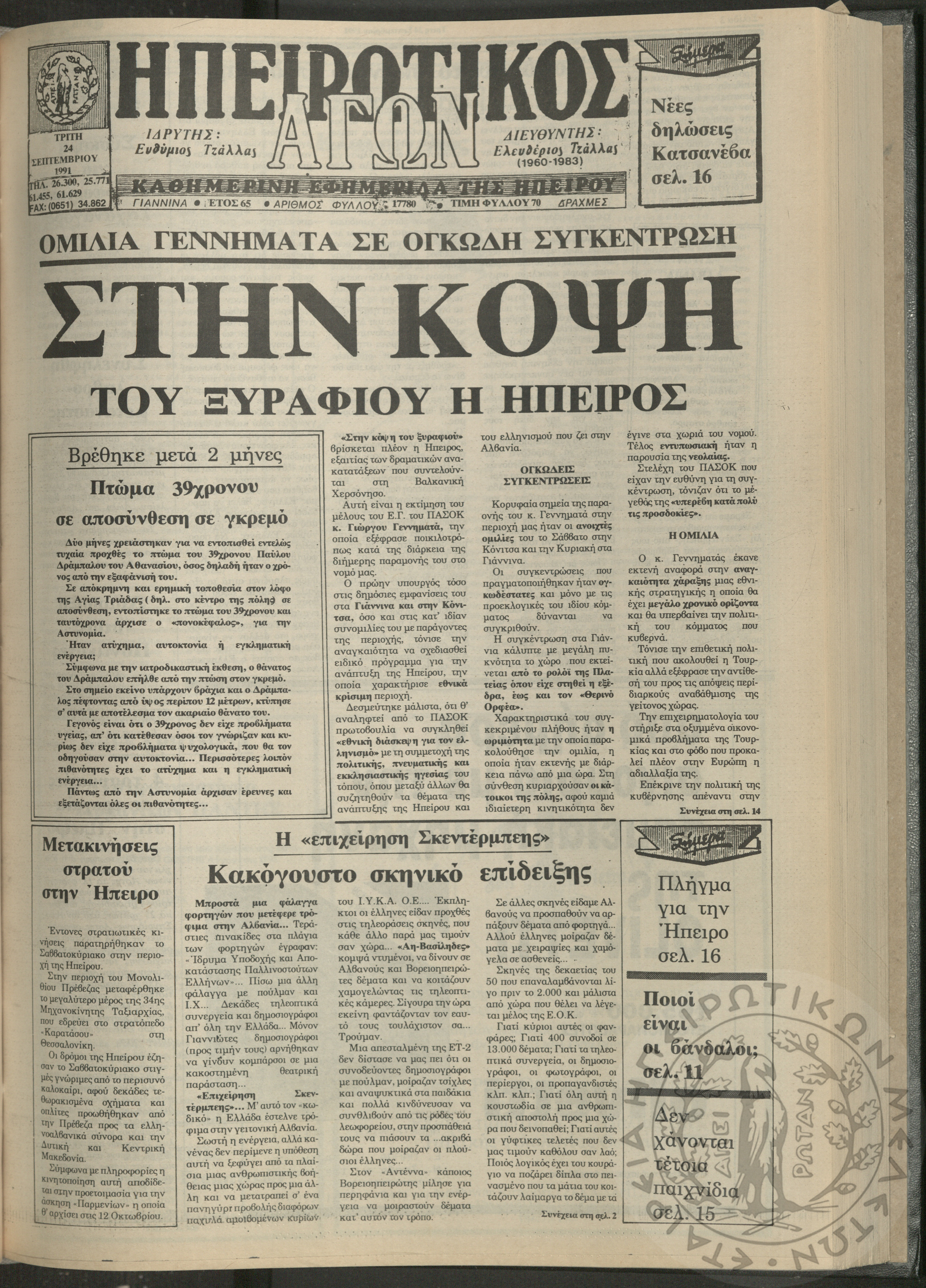 Ηπειρωτικός Αγών: καθημερινή εφημερίδα της Ηπείρου, 1991, φ. 17761