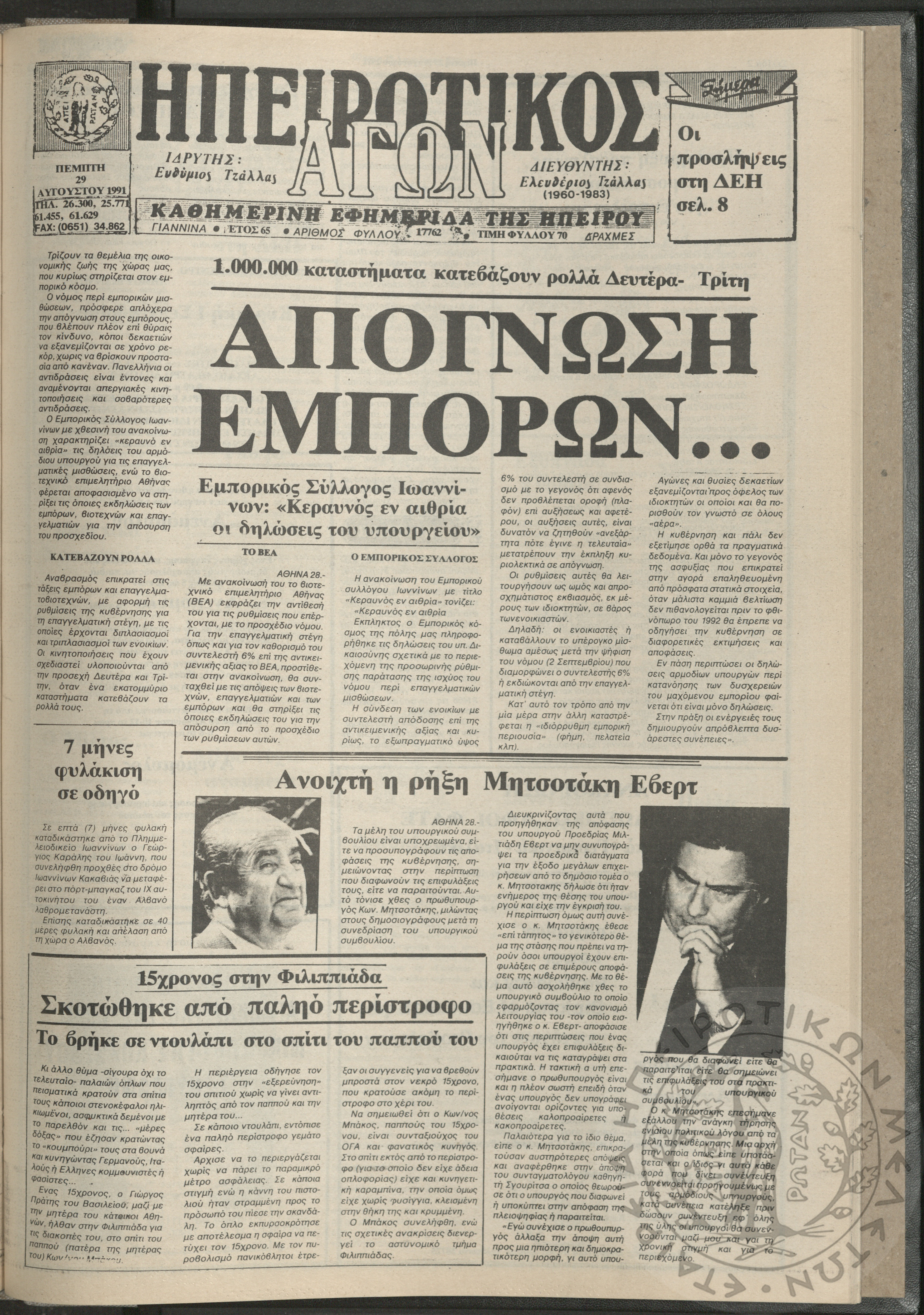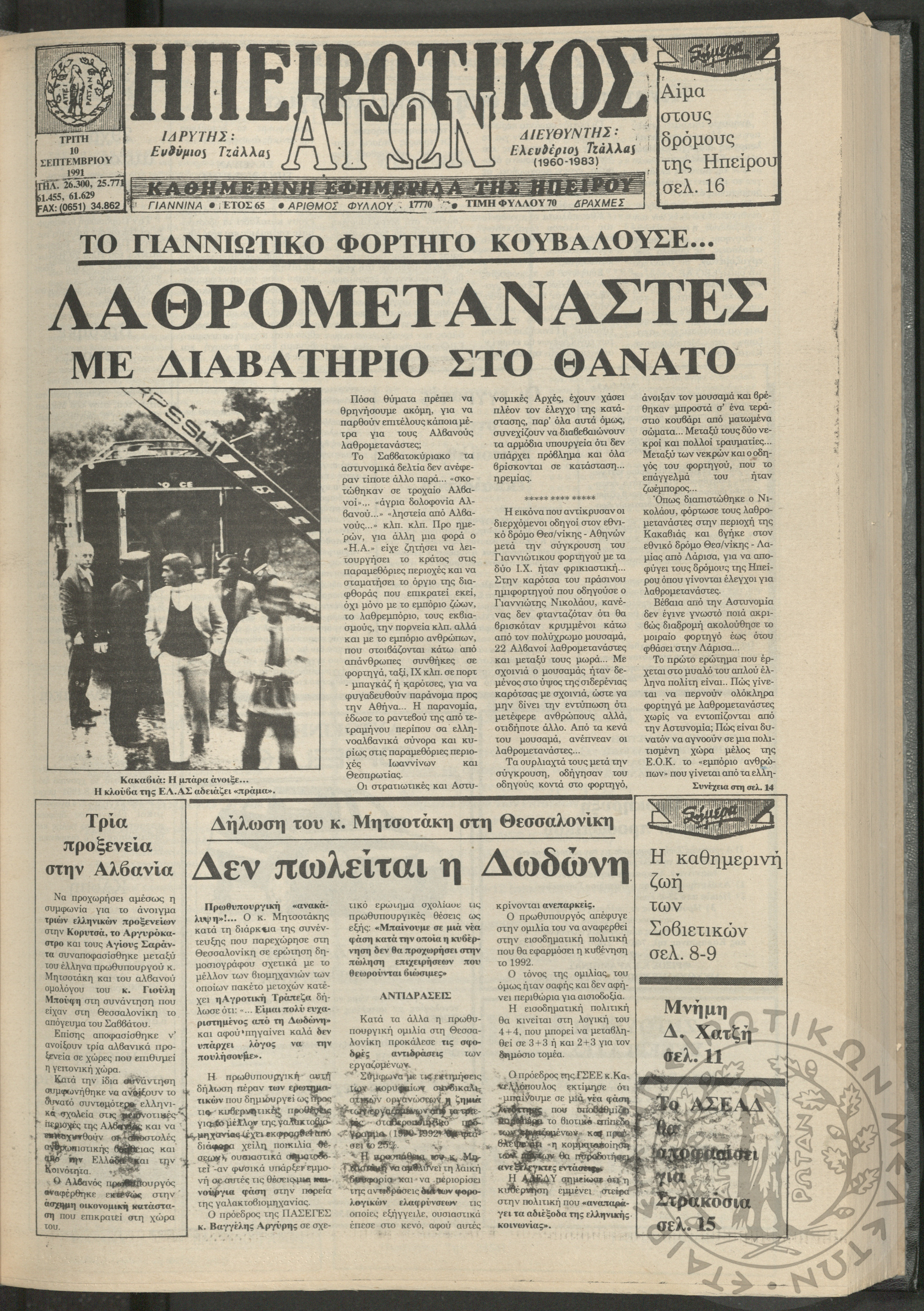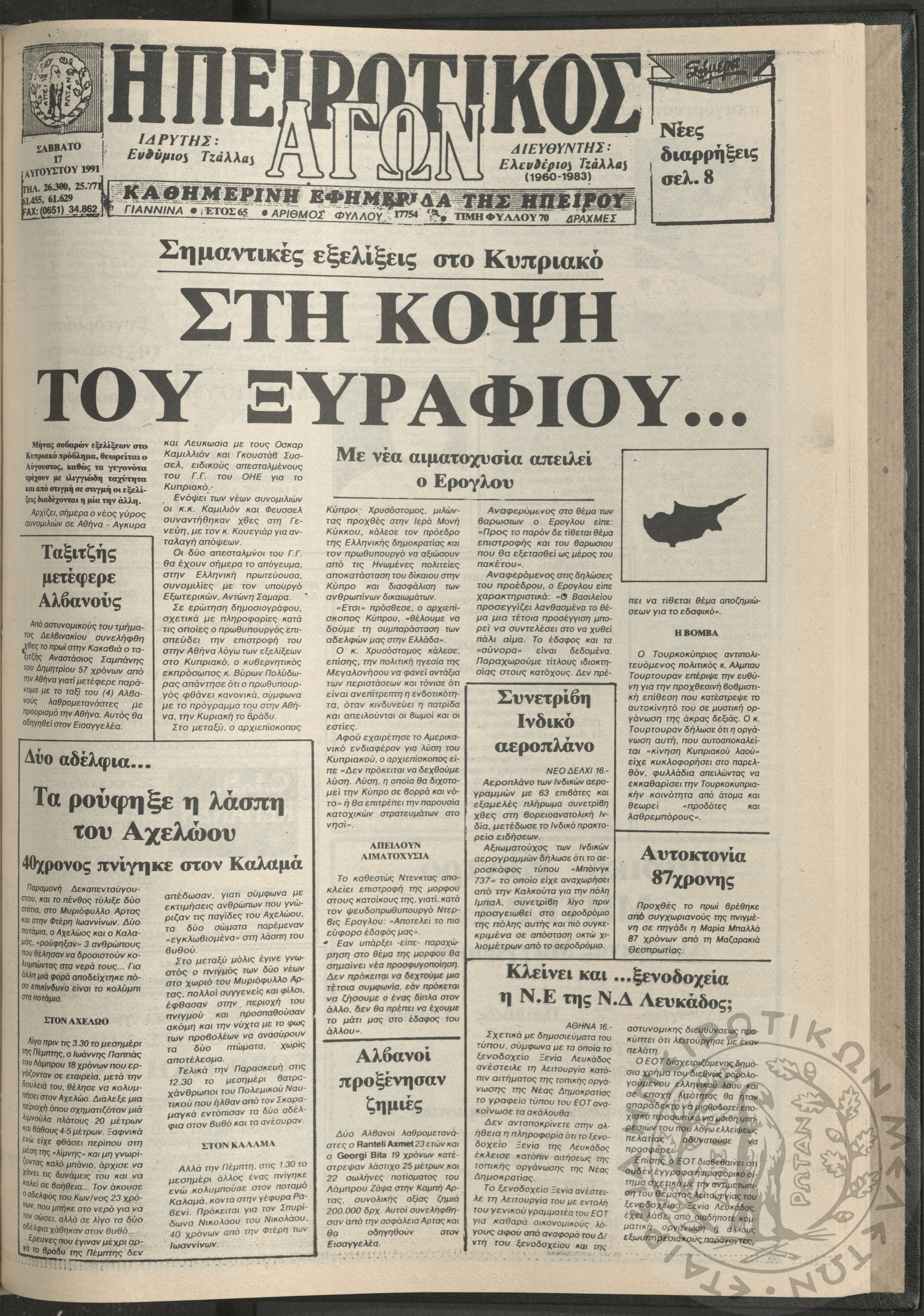 Ηπειρωτικός Αγών: καθημερινή εφημερίδα της Ηπείρου, 1991, φ. 17765