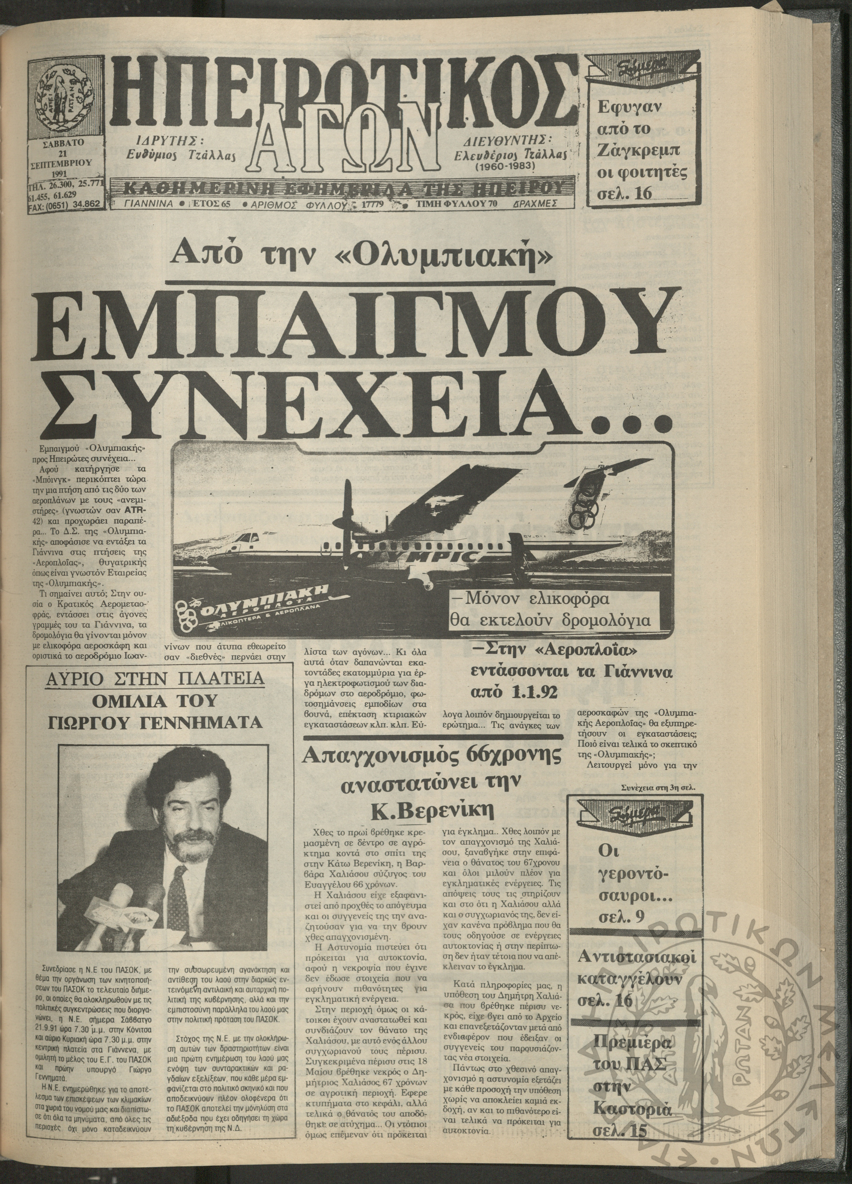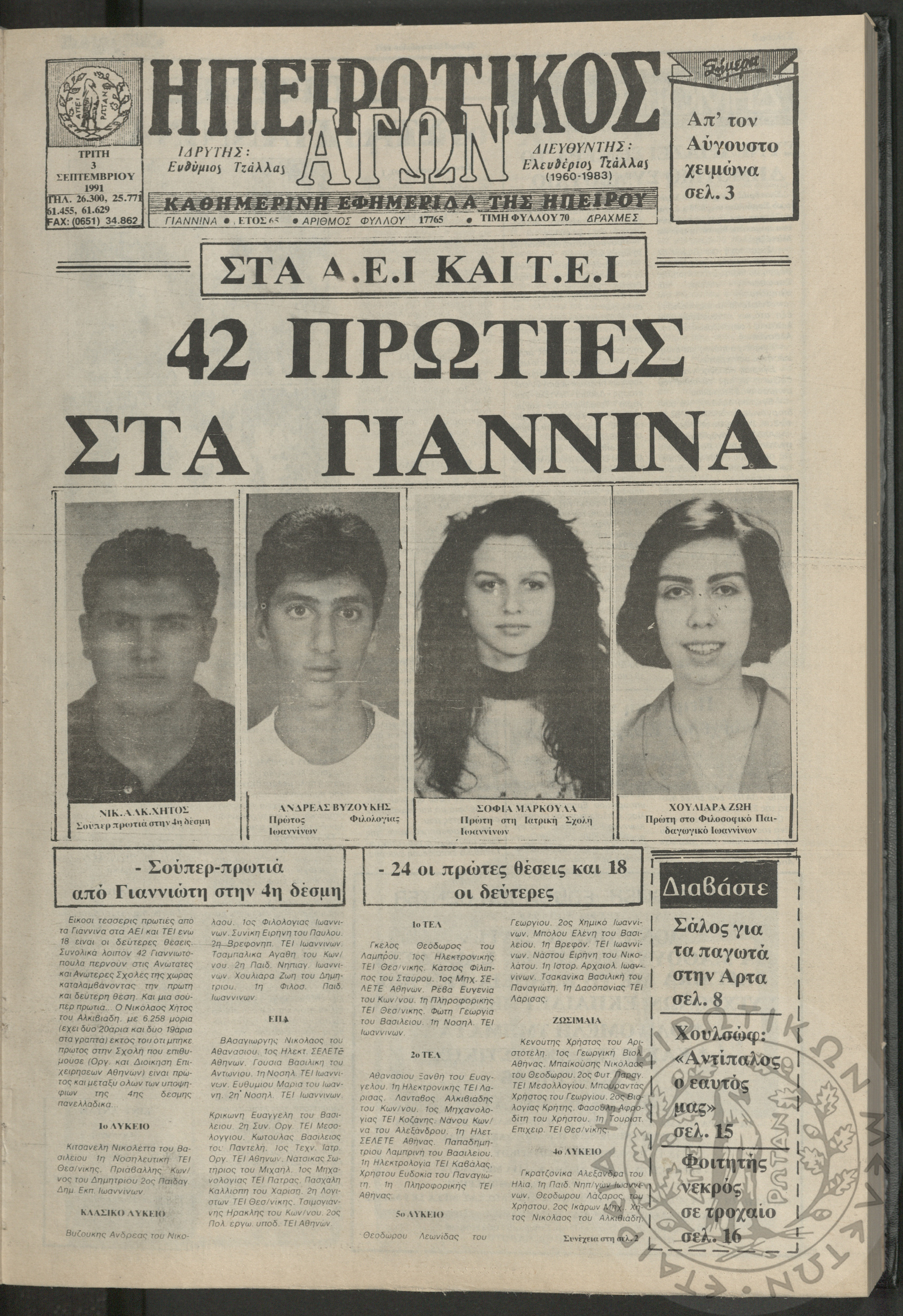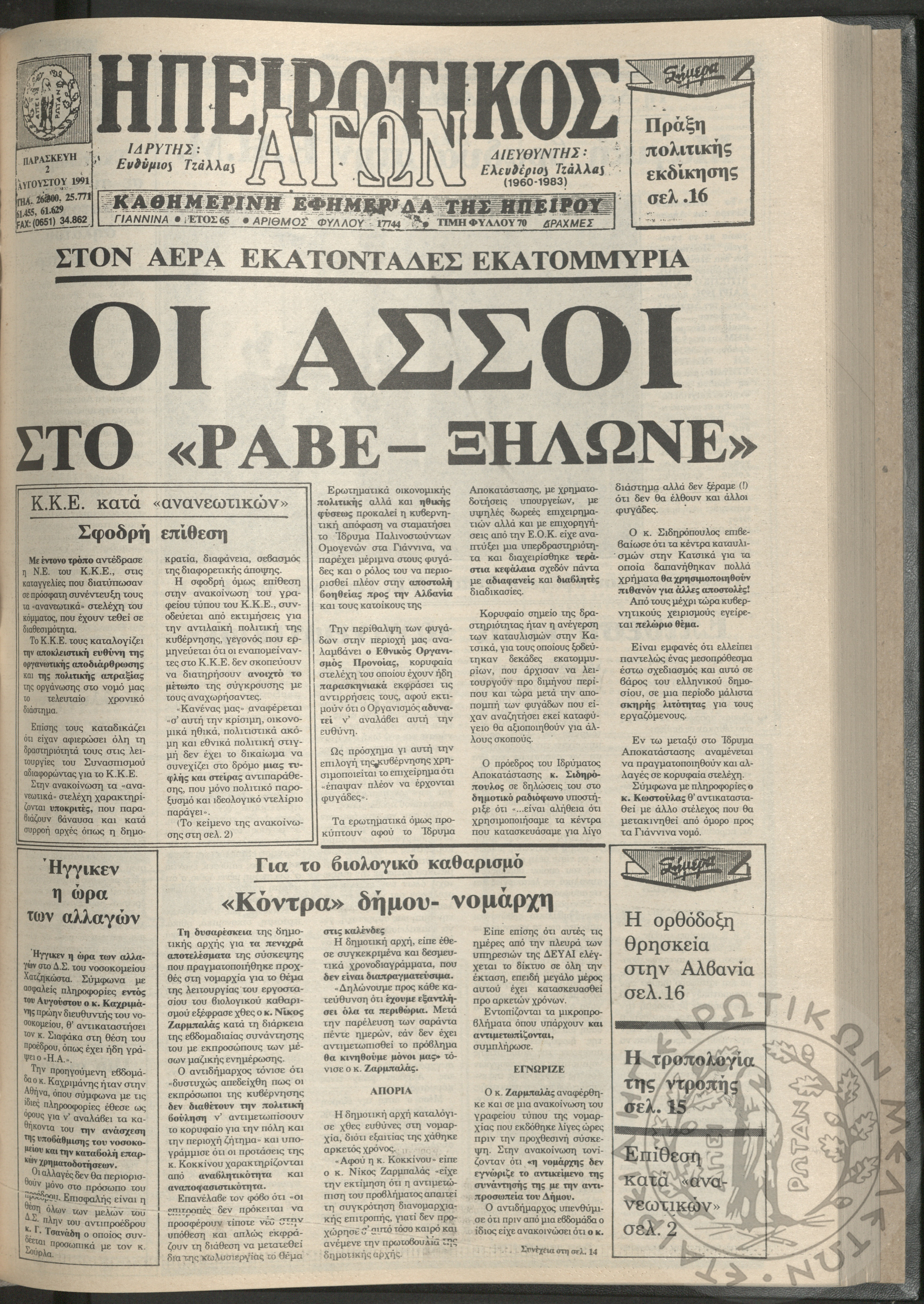 Ηπειρωτικός Αγών: καθημερινή εφημερίδα της Ηπείρου, 1991, φ. 17765