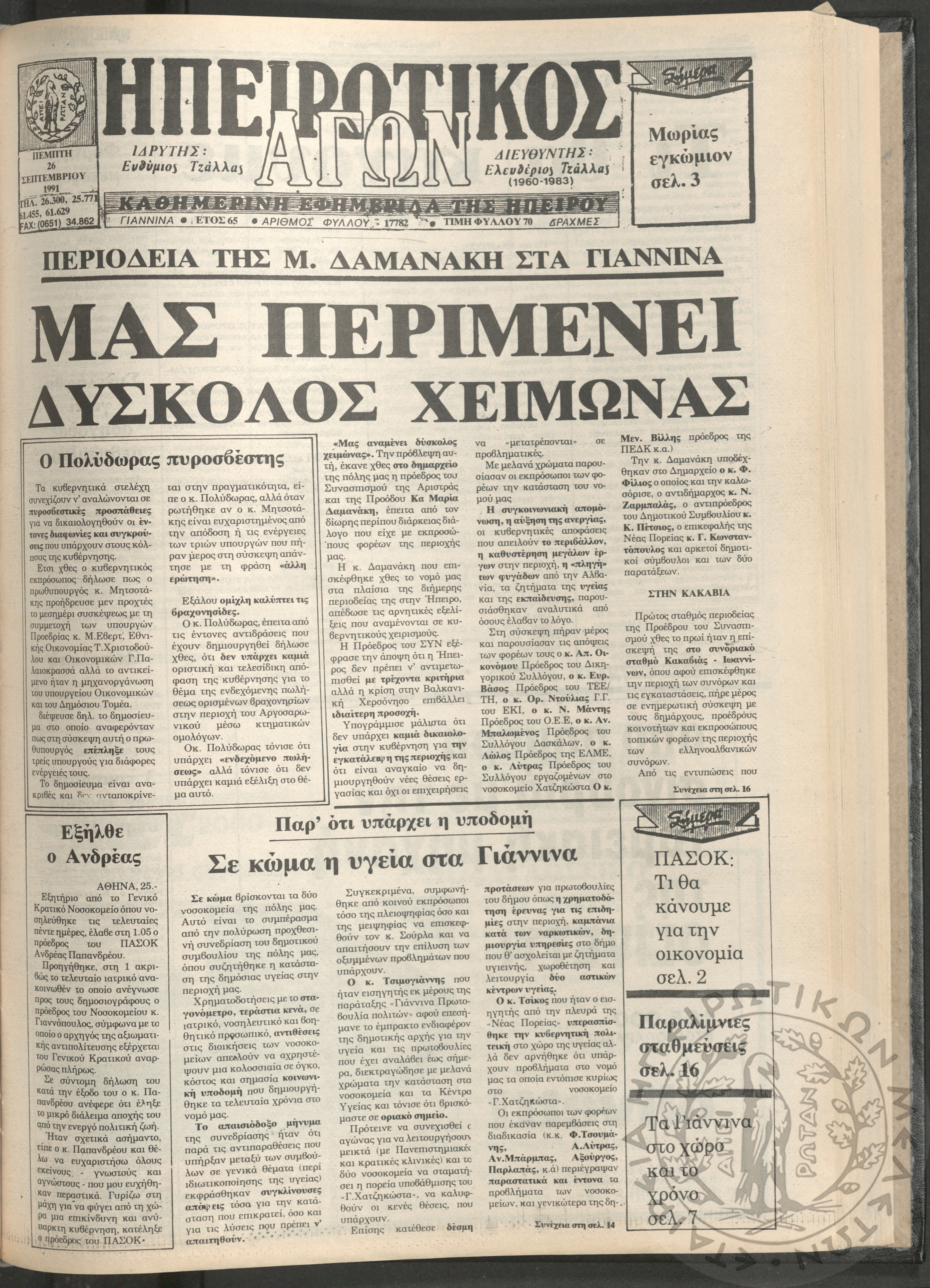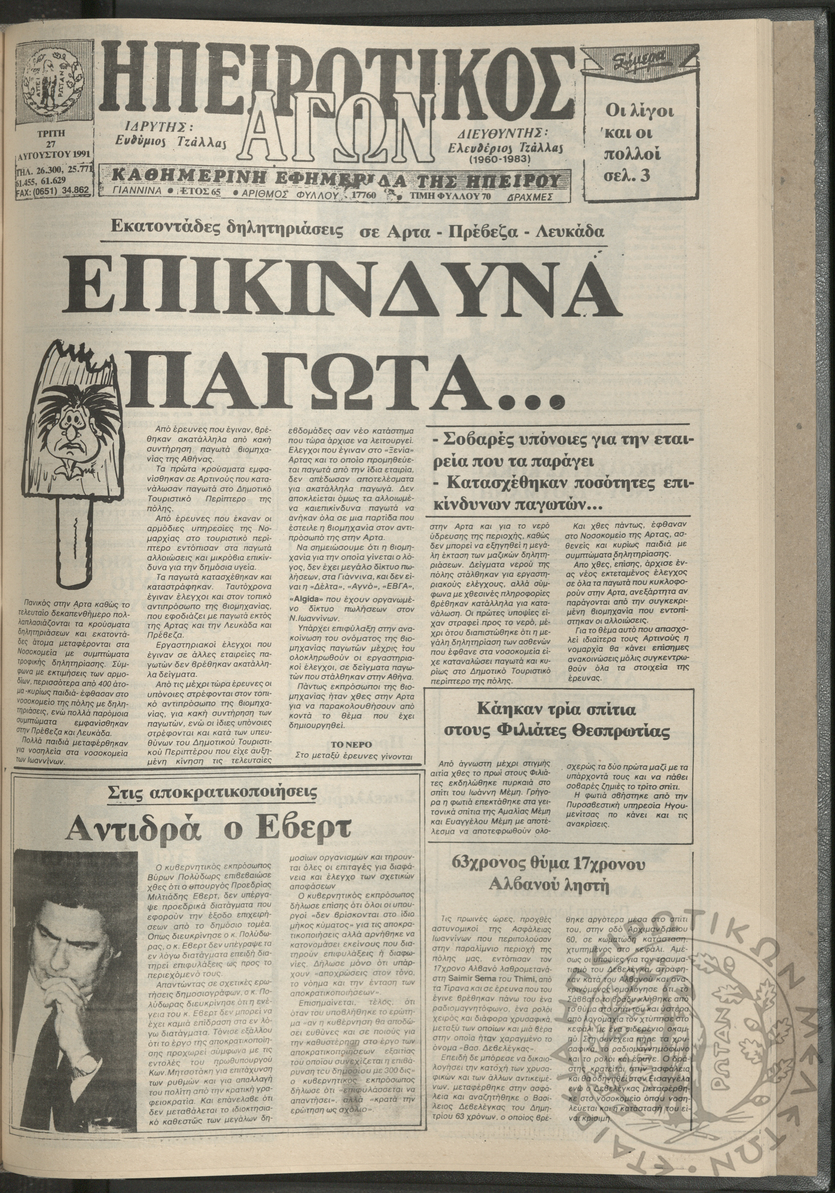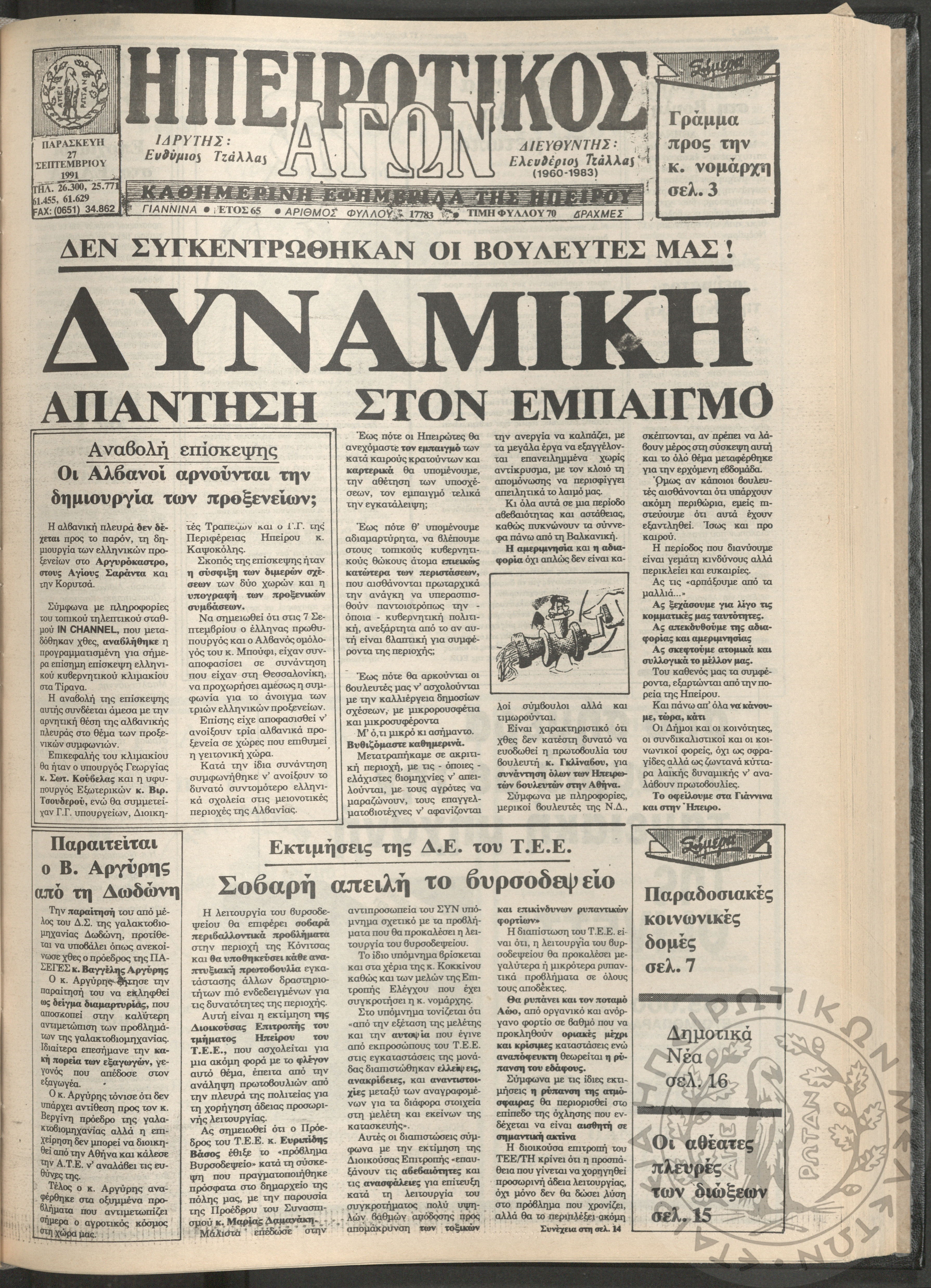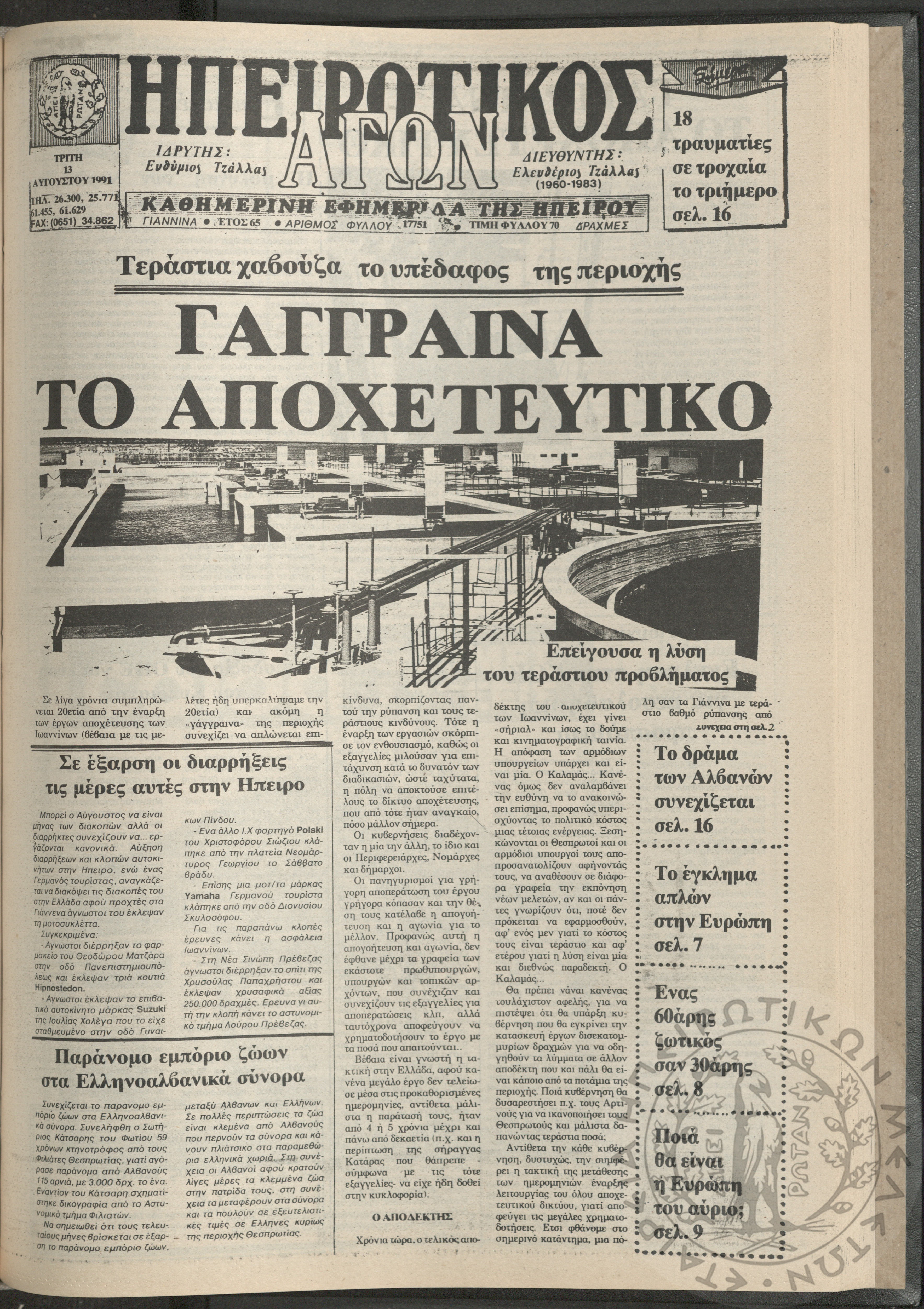 Ηπειρωτικός Αγών: καθημερινή εφημερίδα της Ηπείρου, 1991, φ. 17783