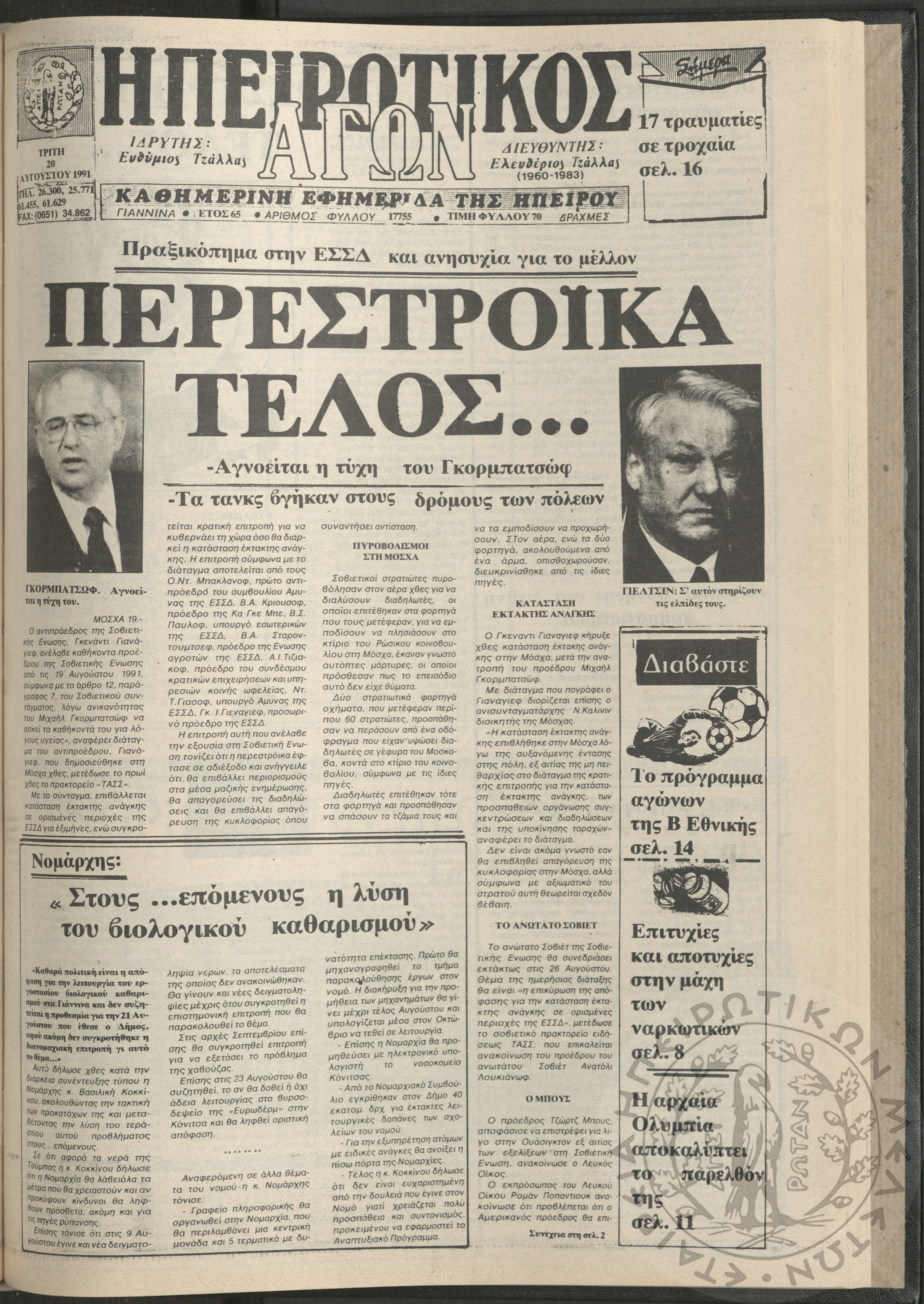 Ηπειρωτικός Αγών: καθημερινή εφημερίδα της Ηπείρου, 1991, φ. 17769