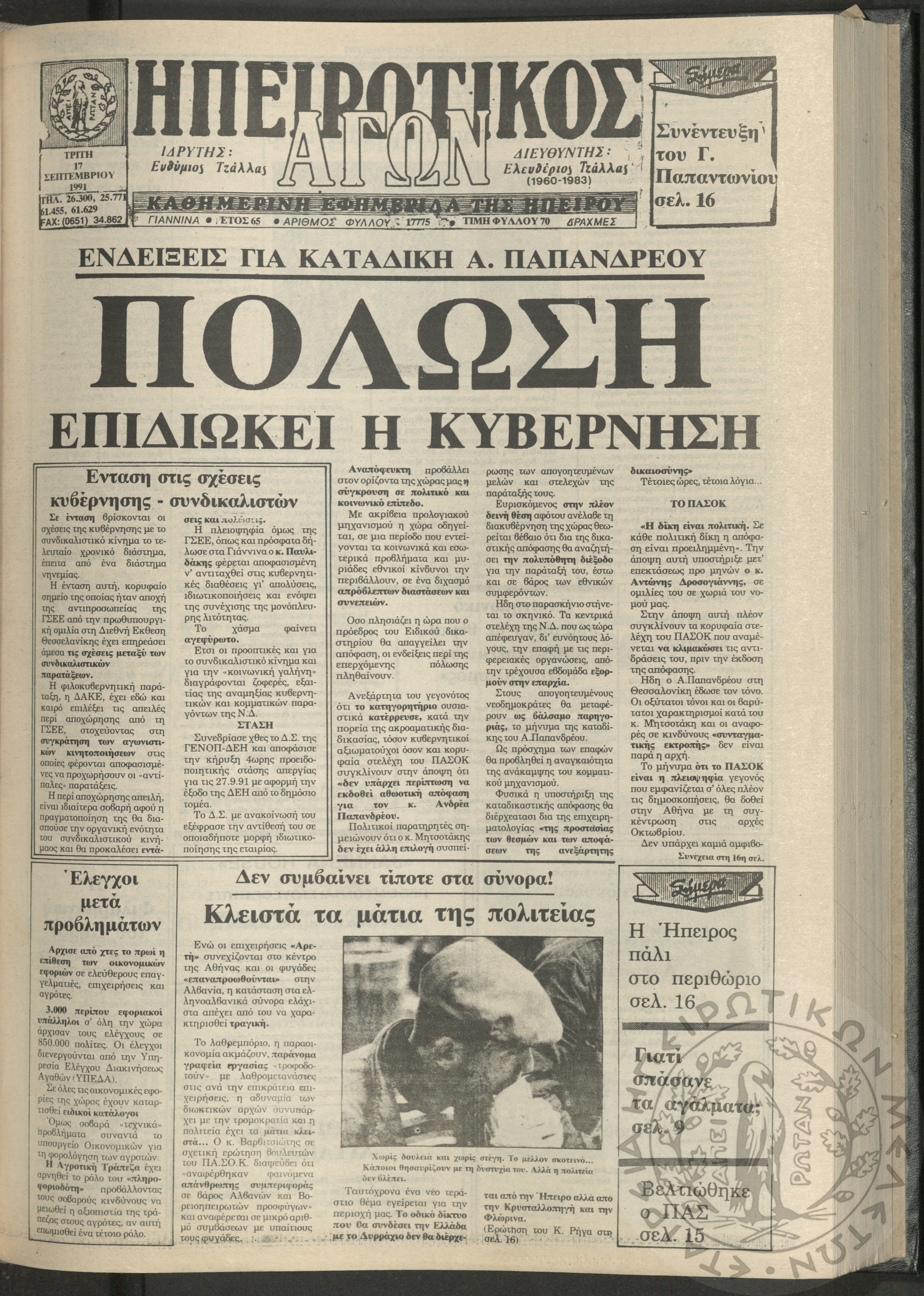 Ηπειρωτικός Αγών: καθημερινή εφημερίδα της Ηπείρου, 1991, φ. 17775